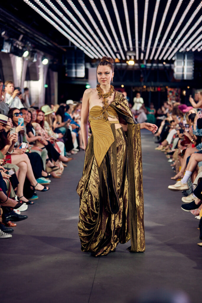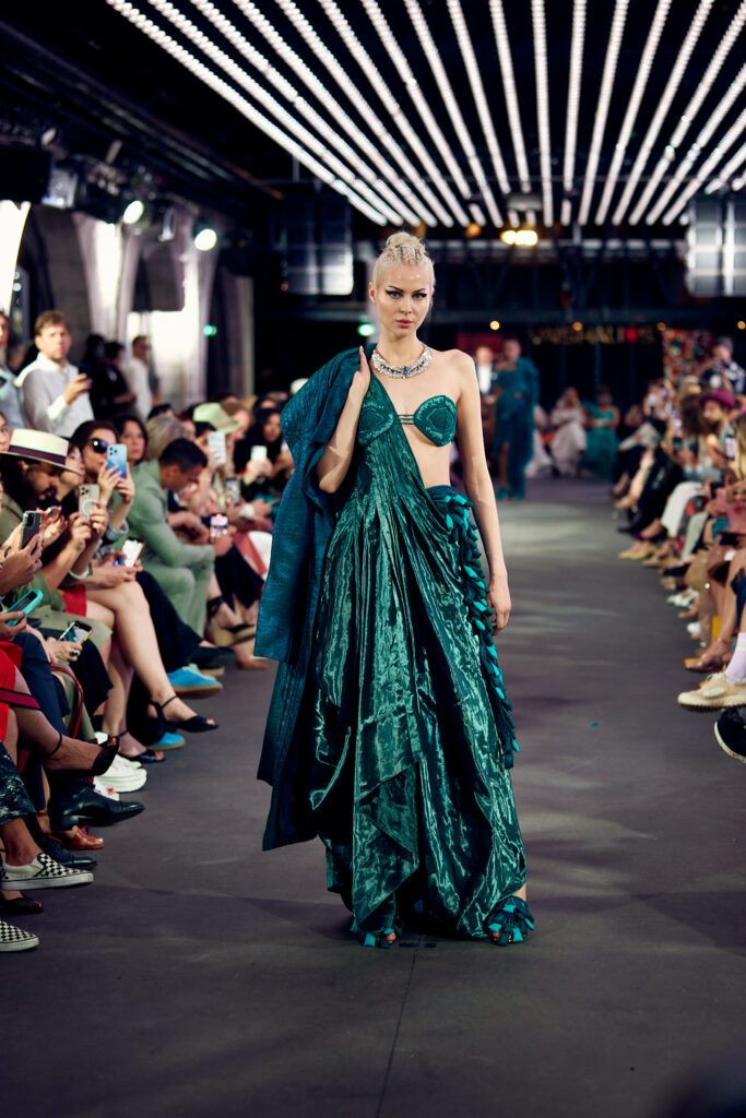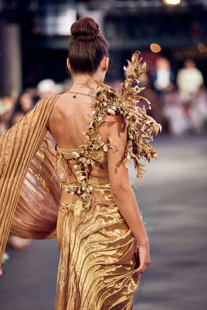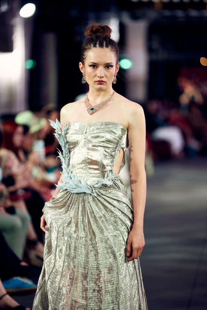 La collection « Satori » ne se contente pas de présenter la beauté de la couture, elle propose également une connexion profonde avec les principes de la nature et de l’énergie universelle. Elle invite les spectateurs à vivre un moment de clarté et de paix, tout en célébrant la fusion harmonieuse de la tradition et de la modernité.