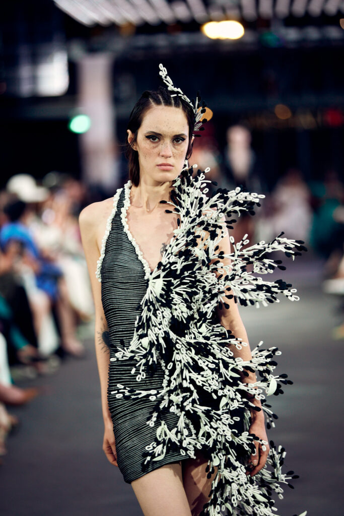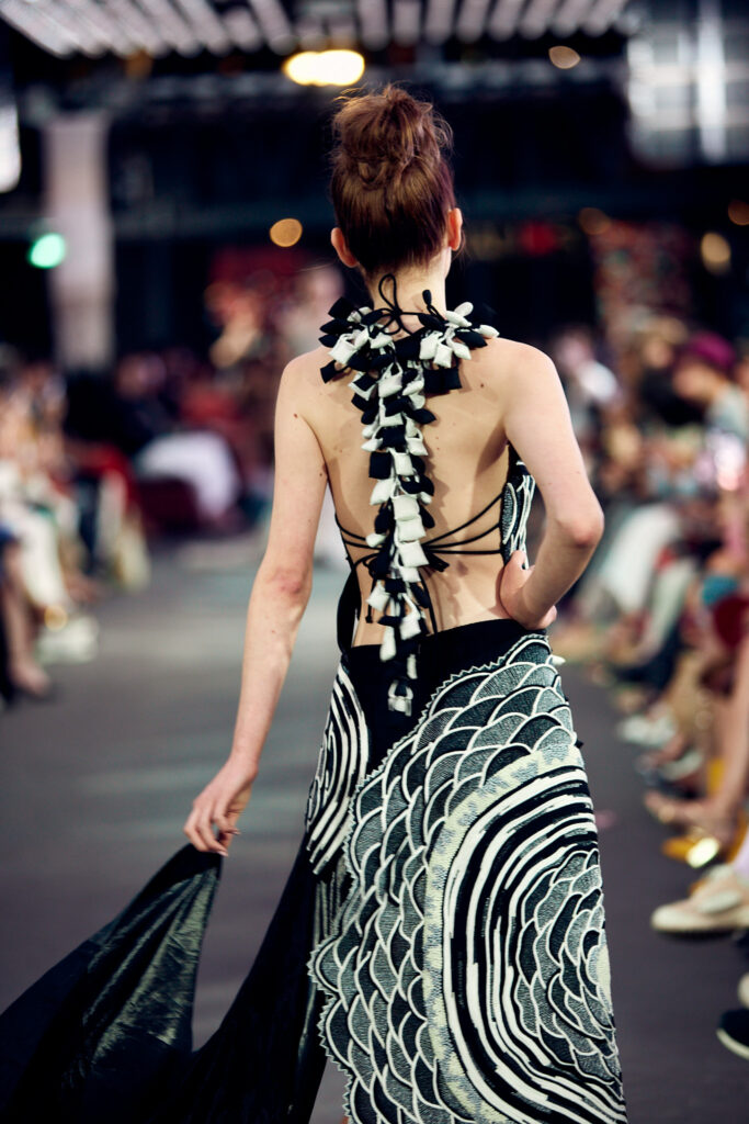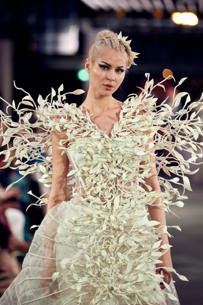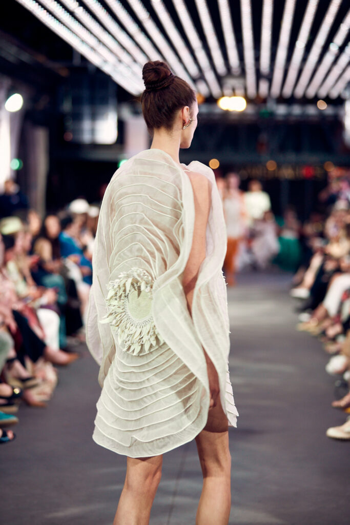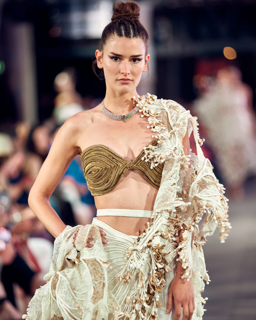 La collection « Satori » ne se contente pas de présenter la beauté de la couture, elle propose également une connexion profonde avec les principes de la nature et de l’énergie universelle. Elle invite les spectateurs à vivre un moment de clarté et de paix, tout en célébrant la fusion harmonieuse de la tradition et de la modernité.