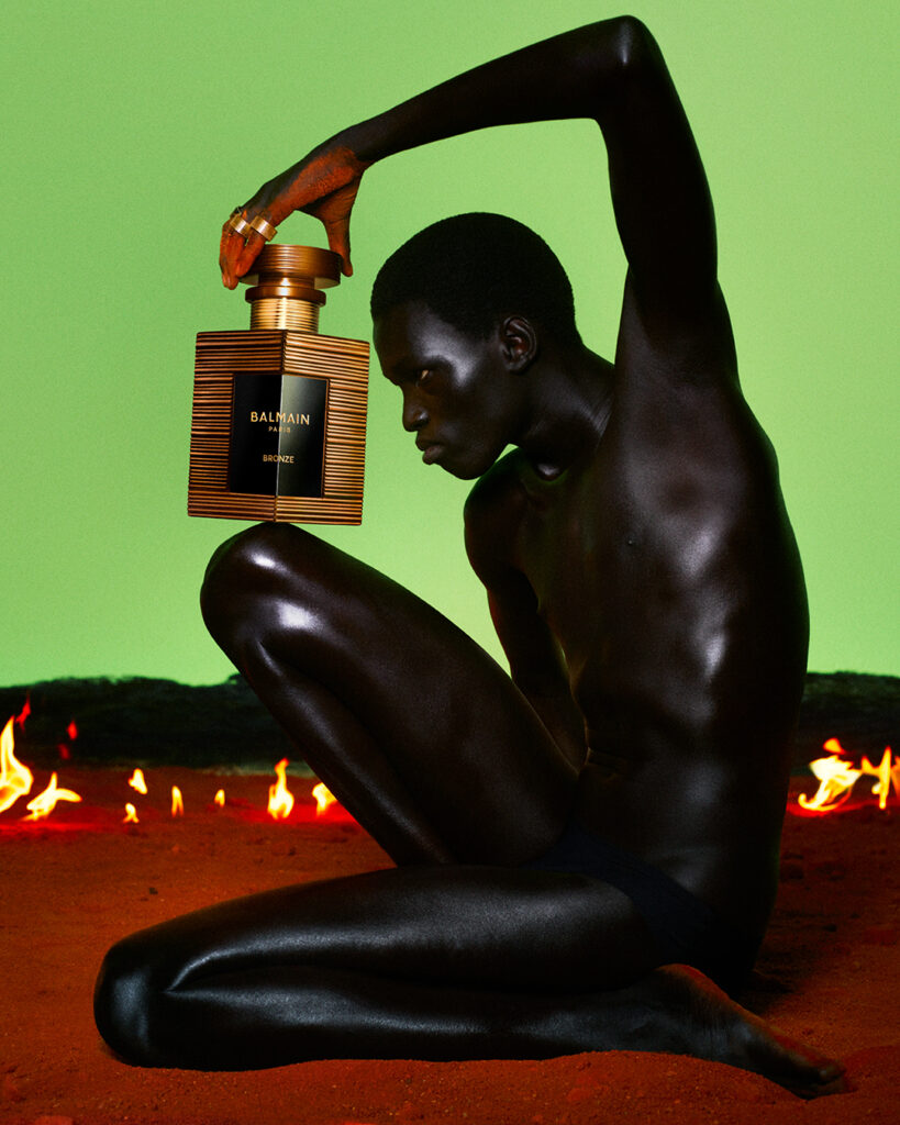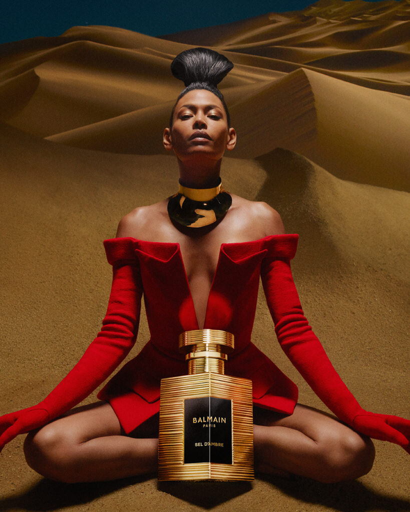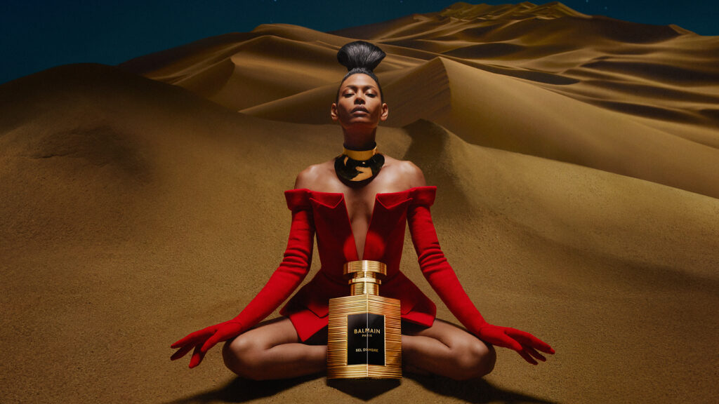 Les Éternels de Balmain sont organisés en quatre familles olfactives : musc, ambre, floral et boisé, chacune explorant une facette de la recherche de soi. Parmi les plus remarquables, on trouve des créations audacieuses comme Carbone, qui associe un musc maximaliste à une rose minimaliste, et Sel d’Ambre, un mélange lumineux d’ambre et d’ambre gris minéral. Vent Vert réinvente l’iconique parfum vert pour une nouvelle ère, tandis que Ébène et Bleu Infini invitent à un voyage sensoriel à travers des accords boisés et marins.