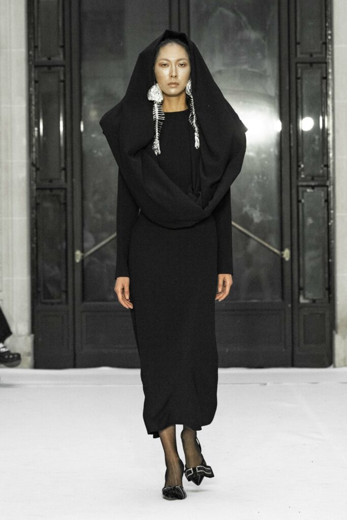 La collection Automne-Hiver 2024 de Juana Martin, intitulée « Pared de Cal », explore les thèmes profonds du bien et du mal, de la tentation et de la divinité, à travers une approche poétique qui marie élégamment l’Andalousie éternelle et ses récits infinis. Inspirée par la sagesse populaire de Sainte Thérèse, la collection évoque le dicton espagnol « entre nonnes et moines, mur de chaux et de pierre », symbolisant la séparation, mais aussi l’indissociabilité, du bien et du mal.