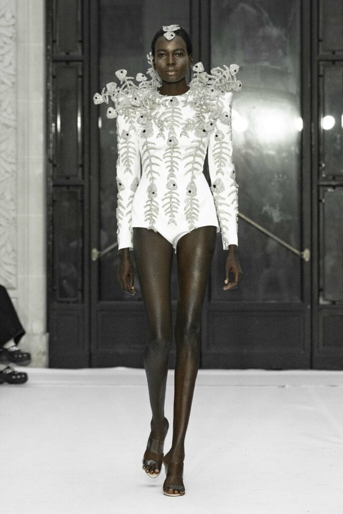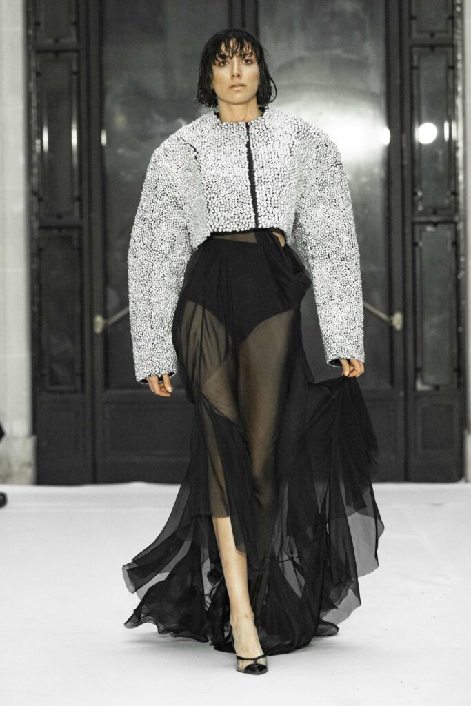 Les contrastes sont au cœur de cette collection, où le blanc et le noir se côtoient, reflétant la lutte intérieure entre les bonnes actions et les tentations charnelles. Juana Martin s’inspire des murs blanchis à la chaux, emblématiques des villages andalous, pour créer des pièces qui évoquent cette frontière subtile entre le céleste et le péché.