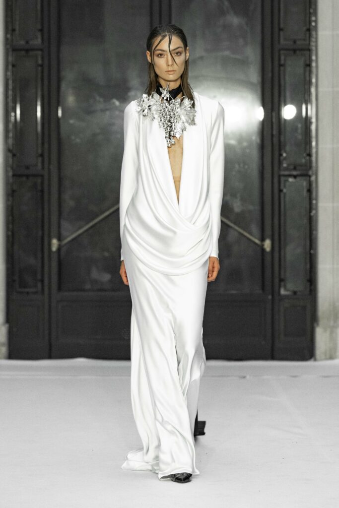 Avec « Pared de Cal », Juana Martin continue de défier les conventions de la mode, en utilisant la culture et l’histoire comme toiles de fond pour une réflexion sur la dualité de l’existence humaine. Cette collection, riche en symbolisme et en émotion, captive par sa capacité à fusionner l’esthétique avec une profondeur philosophique, offrant ainsi une expérience de mode qui transcende le simple vêtement.