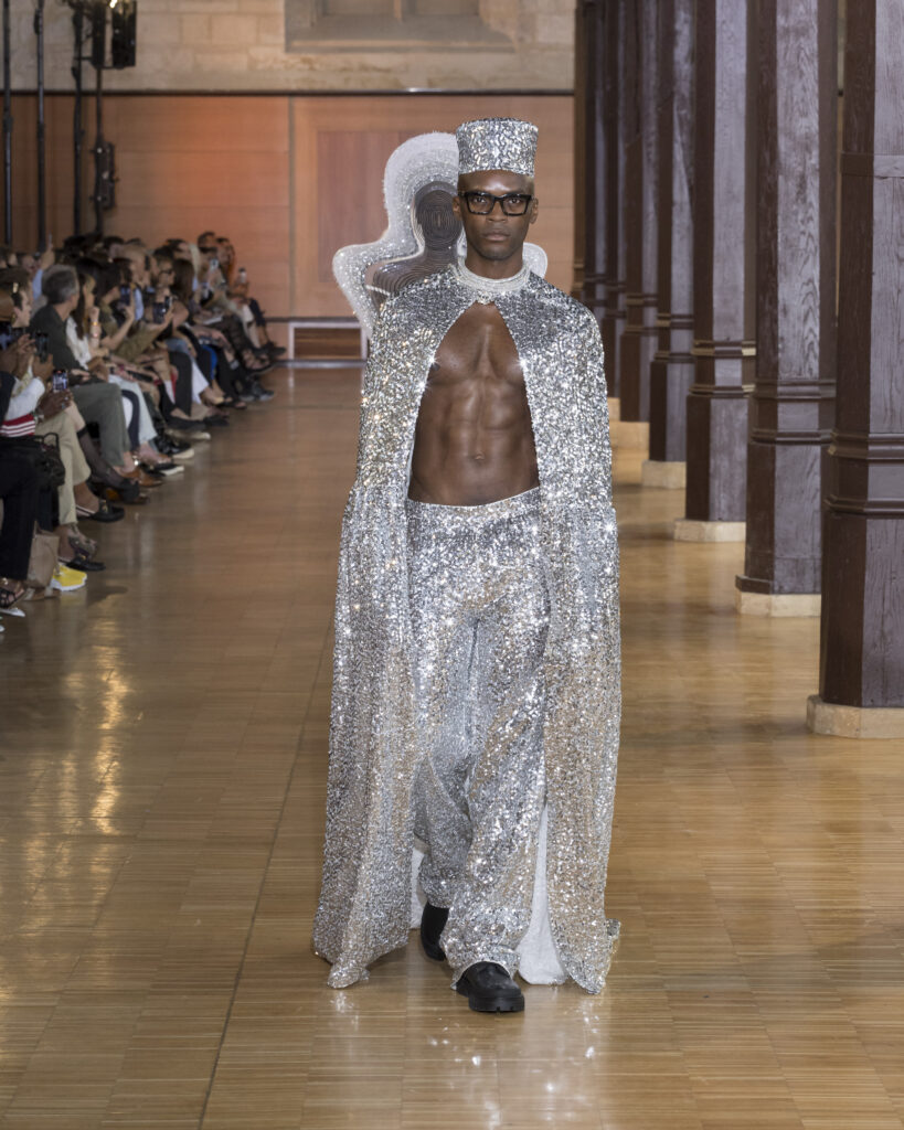 L’aura, dans son essence cosmique, est bien plus qu’une simple vibration électromagnétique. Elle est le lien subtil entre l’individu et l’univers, un pont entre le tangible et l’intangible. Mishra, à travers sa collection, tente de capturer et de transposer cette énergie cosmique en matière, en forme et en mouvement, défiant ainsi les limites de la mode pour s’aventurer dans les domaines de la philosophie et de la métaphysique.