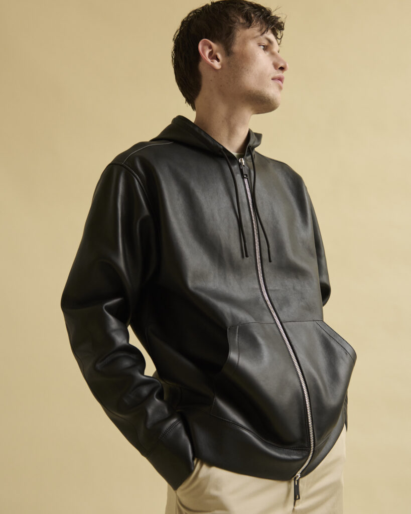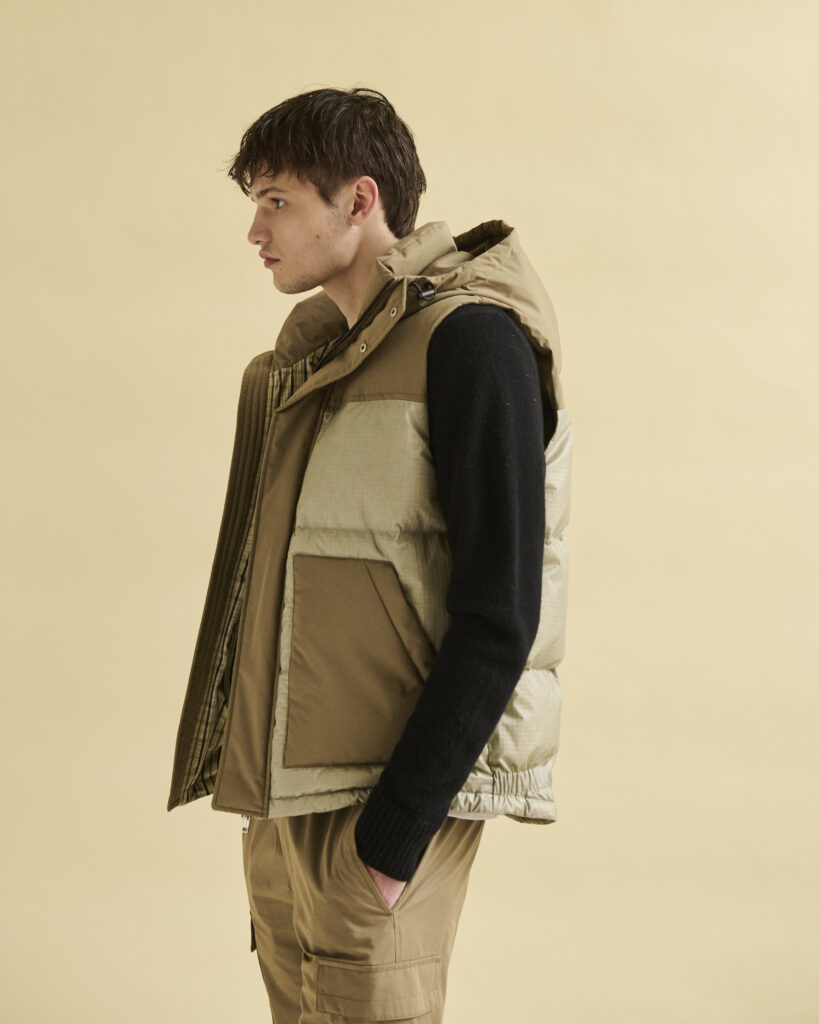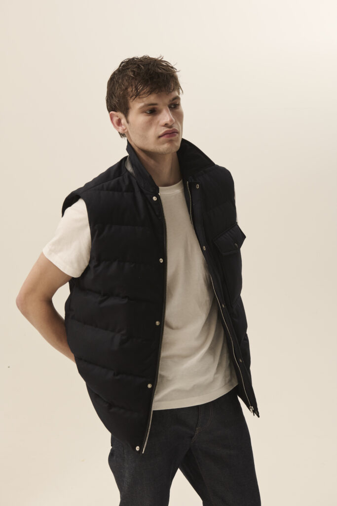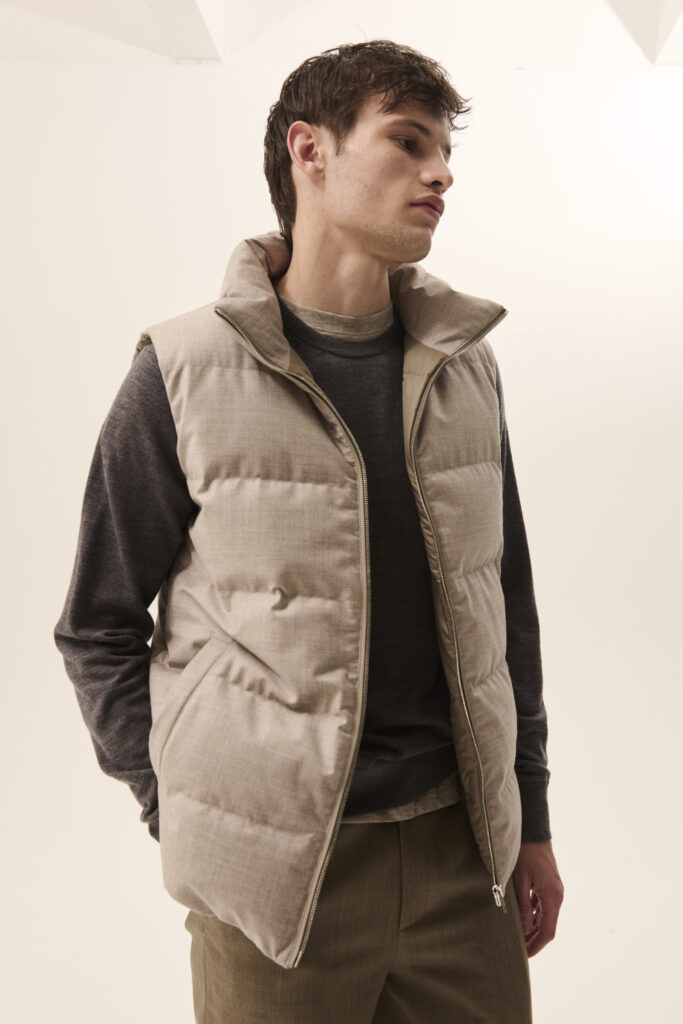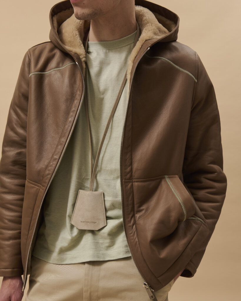 La collection se distingue par des pièces de sportswear hybrides, réalisées en tissus à double face, alliant confort et polyvalence. Ces vêtements, conçus pour l’outdoor tout en étant parfaitement adaptés aux environnements citadins, incarnent le style résolument moderne de la Maison. Les finitions en cuir, signature d’Yves Salomon, s’allient à des broderies discrètes, subtilement inspirées de l’artisanat marocain, ajoutant une dimension artisanale à la collection.