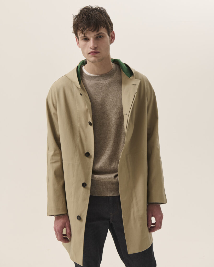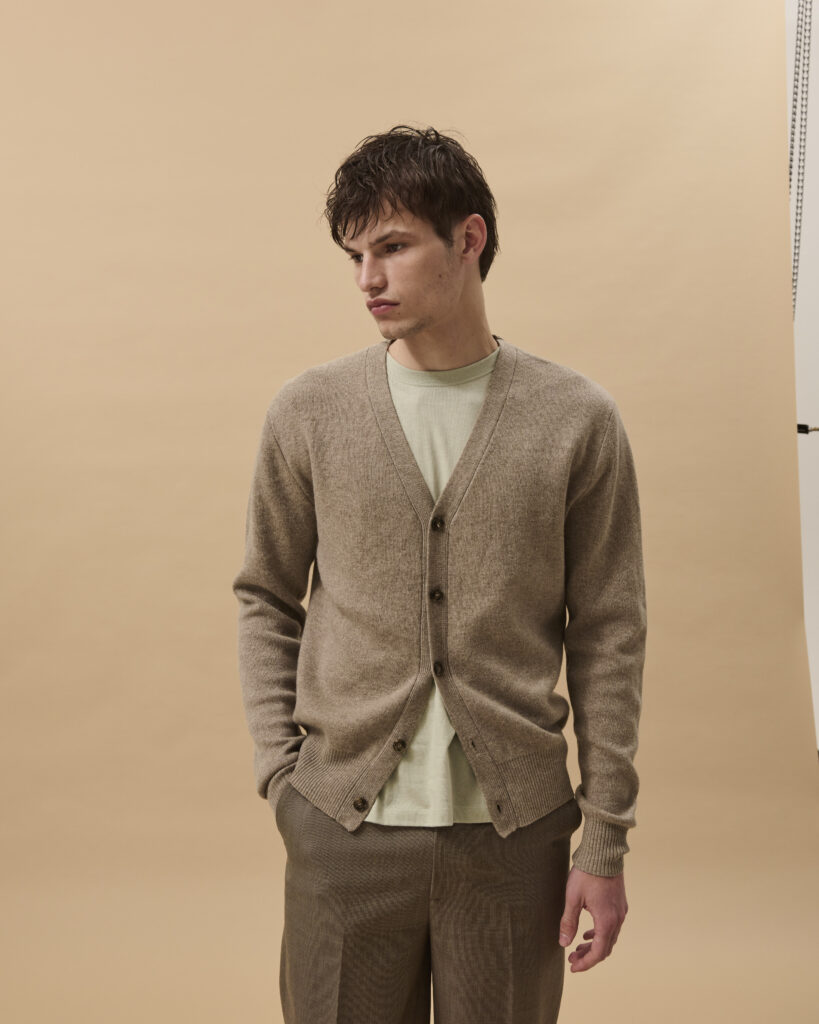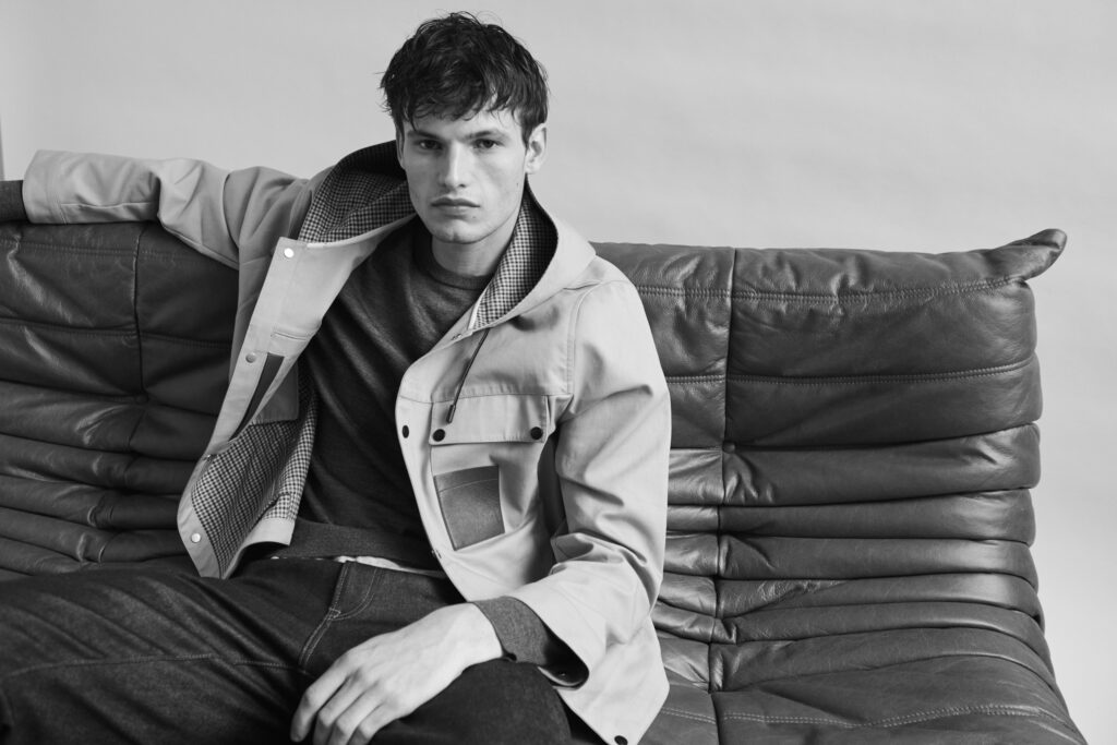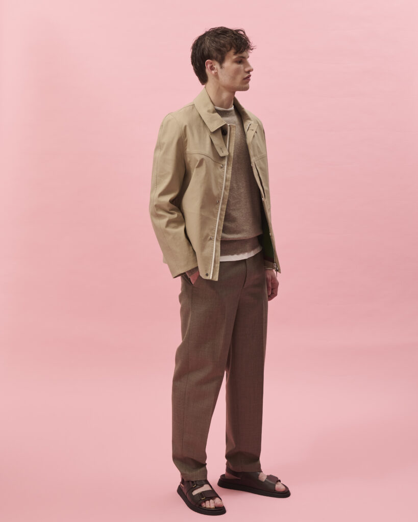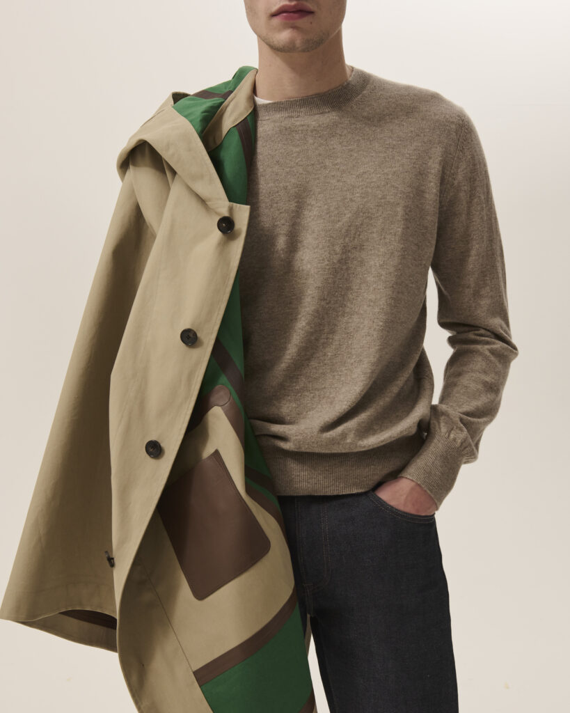Entièrement confectionnée à partir de matières 100% naturelles, la collection homme Printemps-Été 2025 met en avant des tissus nobles tels que le coton et le cachemire. Ces matériaux sont sublimés par des détails en cuir, offrant une texture raffinée et une durabilité exceptionnelle. De plus, la collection intègre des matières judicieusement désaisonnalisées, permettant une adaptabilité à différents climats et saisons, assurant ainsi une garde-robe aussi polyvalente qu’élégante.