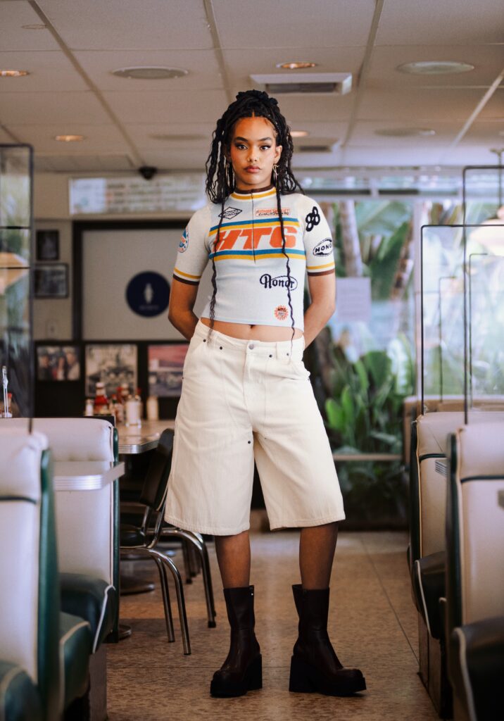 La collection Printemps 2025 d’Honor The Gift, intitulée « Inner City Auto Club », plonge ses racines dans la vibrante culture des années 90 à Los Angeles. Célébrant l’esprit de communauté et la liberté inhérente à ces années, cette ligne ready-to-wear (RTW) propose une revisite contemporaine de cette époque emblématique, tout en honorant les souvenirs d’une jeunesse passée dans les rues de la Cité des Anges.