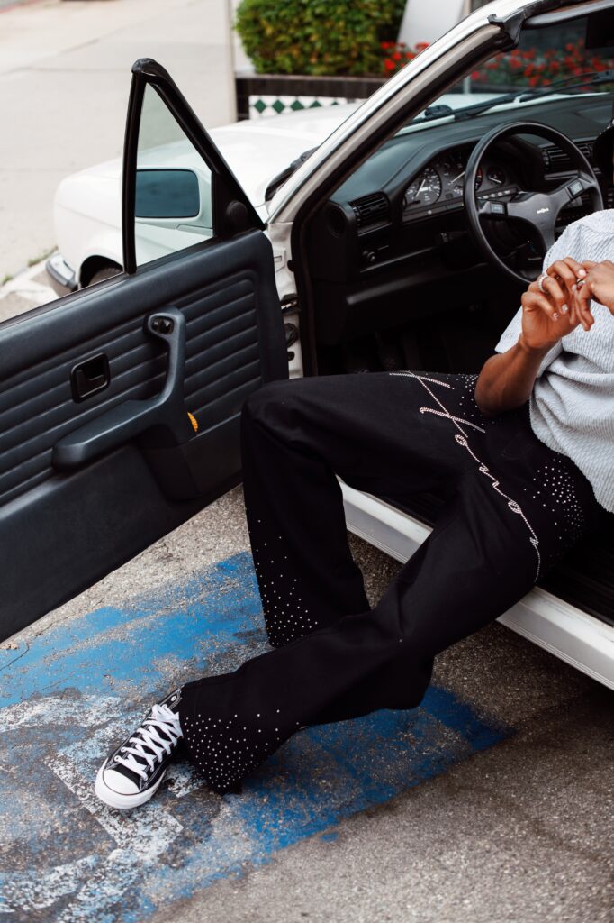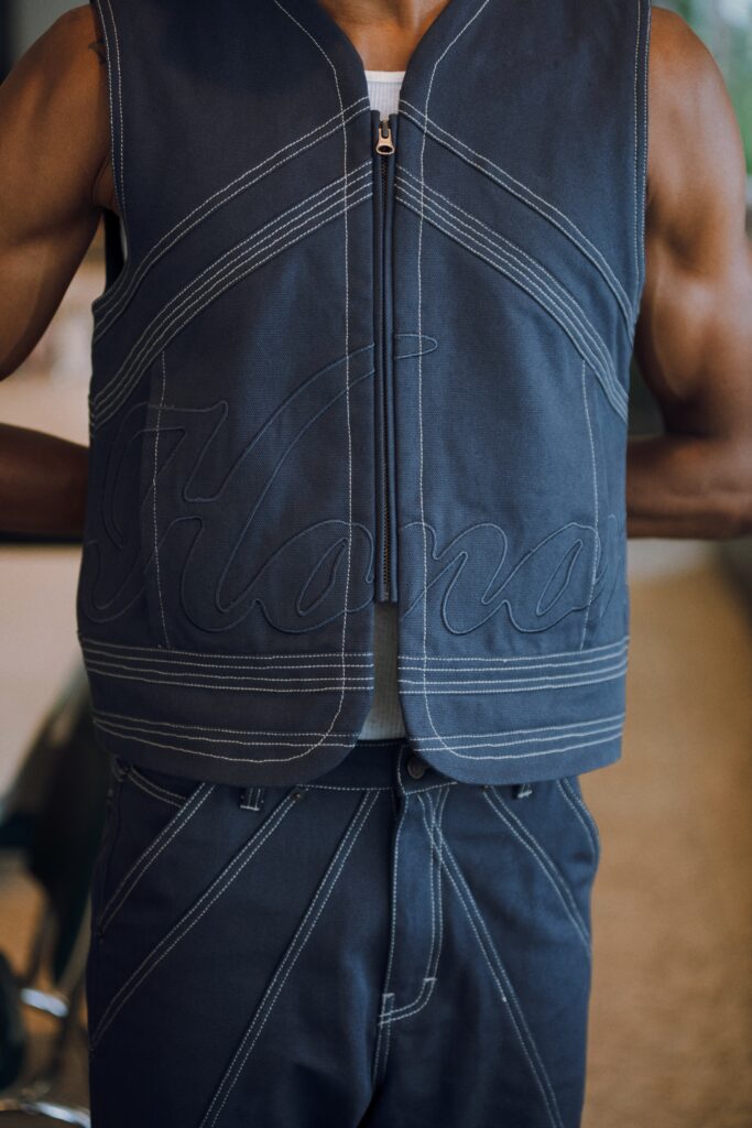 Les pièces phares de la collection, telles que les vestes en daim, les pantalons en toile épaisse et les ensembles de survêtements « Auto Tracksuit », incarnent cette fusion entre le passé et le présent. Les survêtements, en particulier, sont revisités avec une touche contemporaine tout en conservant l’essence brute de la culture automobile des années 90. Cette nouvelle interprétation du classique du genre se distingue par un savoir-faire minutieux, combinant confort et style dans des coupes ajustées et des matières raffinées.