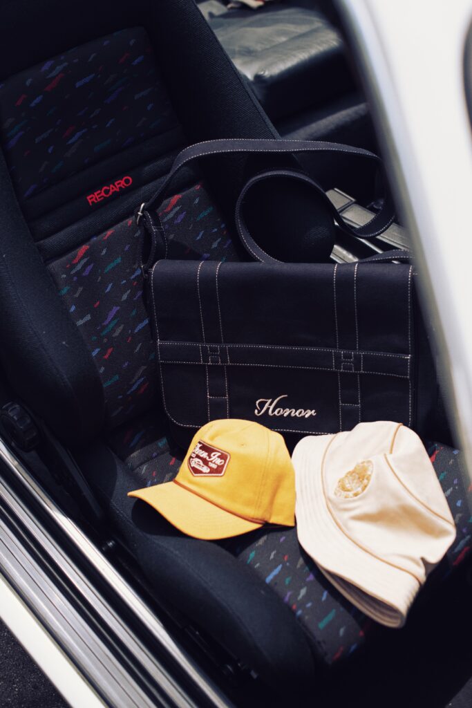 Les accessoires jouent un rôle crucial dans cette collection, élargissant l’univers visuel de l’ »Inner City Auto Club ». Les sacs en toile épaisse, les chapeaux seau et les sacs messagers sont conçus pour compléter parfaitement les tenues, en renforçant l’aspect pratique et fonctionnel sans sacrifier le style. Chaque accessoire est pensé pour s’adapter aux diverses occasions, qu’il s’agisse d’une promenade décontractée en ville ou d’une sortie plus formelle.