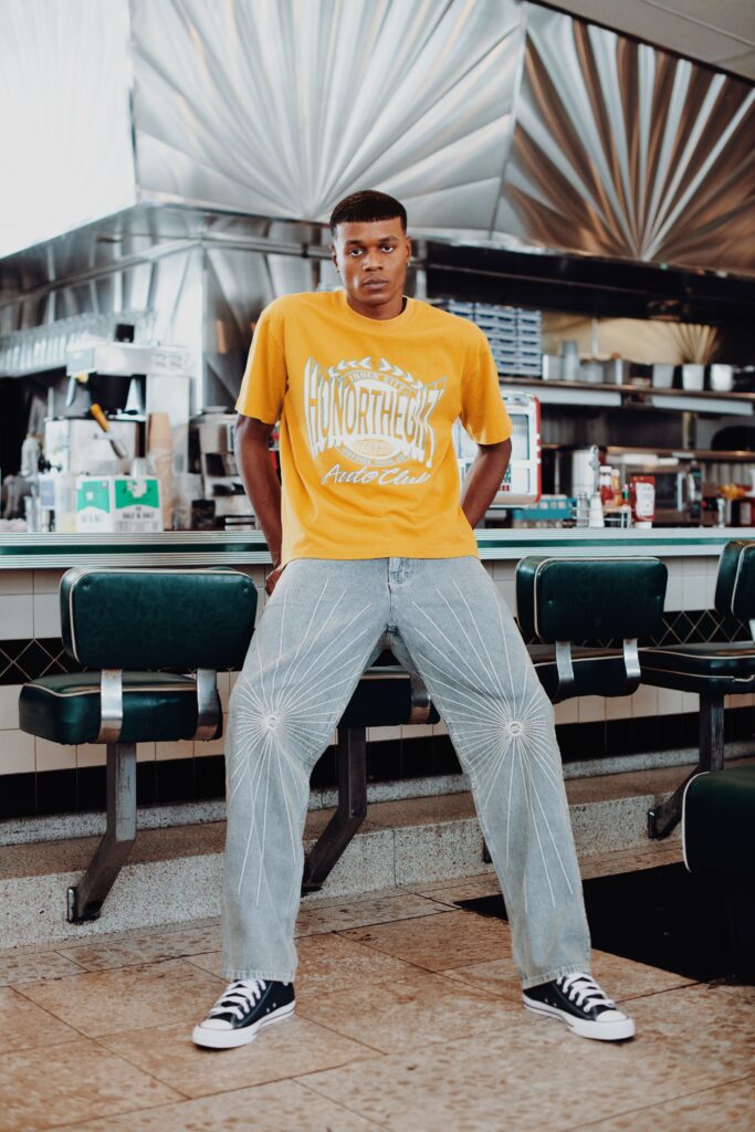 L’ »Inner City Auto Club » évoque ces étés infinis où les rues de Los Angeles devenaient un terrain de jeu pour les jeunes. C’était une époque où les communautés se forgeaient à l’extérieur, dans un environnement où le sentiment d’appartenance et de liberté régnaient en maître. Cette collection est un voyage à travers ces souvenirs, traduisant cette expérience collective en une série de pièces où chaque détail raconte une histoire.