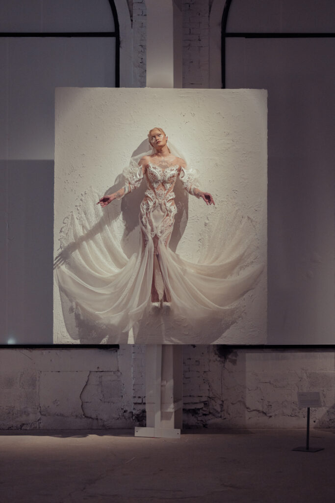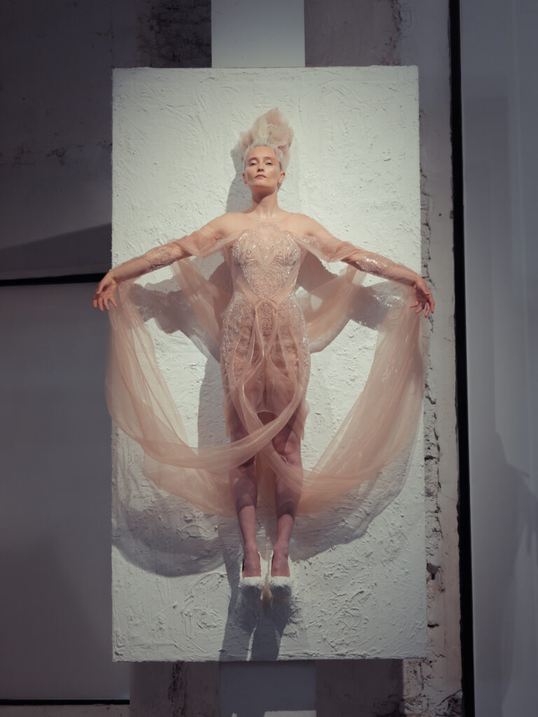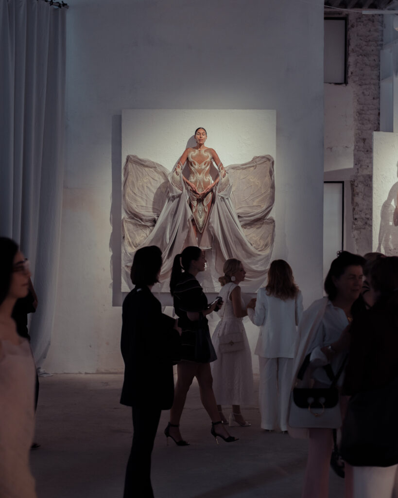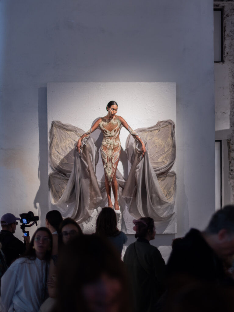 Cette présentation hybride, fusionnant l’art, la couture et l’architecture, embrasse pleinement l’approche interdisciplinaire qui a fait la renommée de van Herpen. Elle illustre une fois de plus comment la créatrice a su redéfinir non seulement les frontières de la mode, mais aussi celles de l’art, en insufflant une nouvelle vie à l’Haute Couture et en établissant un dialogue profond entre l’artisanat et l’innovation.