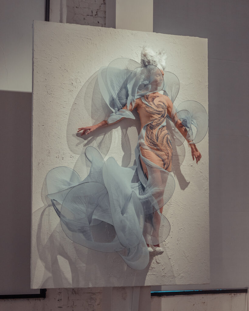 Préparant une rétrospective au Musée des Arts Décoratifs de Paris intitulée Sculpting the Senses, qui se tiendra du 29 novembre 2023 au 28 avril 2024, van Herpen a ressenti l’appel irrésistible de renouer avec une autre de ses passions : la sculpture. Cette exposition, qui sera ensuite présentée à Brisbane, Singapour et Rotterdam, avant de traverser l’Atlantique pour les États-Unis, marque une étape charnière dans la carrière de l’artiste. La rétrospective propose une réflexion sur la place du corps dans l’espace, son rapport au mouvement, à la transformation, et à son environnement, tout en interrogeant son avenir dans un monde en mutation rapide.