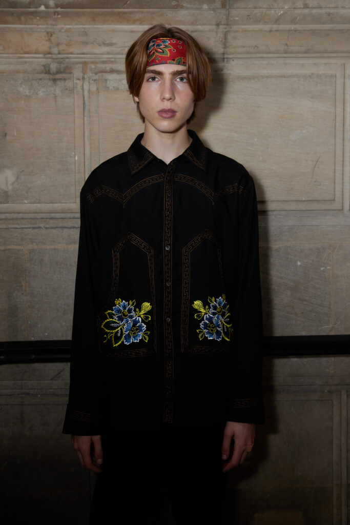 Les chemises à manches longues et courtes, inspirées des imprimés workwear occidentaux et du vintage, sont ornées de broderies des années 70 sur les poches, créant un contraste entre le passé et le présent. Le tricot, quant à lui, est tissé avec le symbole iconographique de vowels, tandis que les cardigans et les polos redéfinissent les styles héritage avec une touche contemporaine.