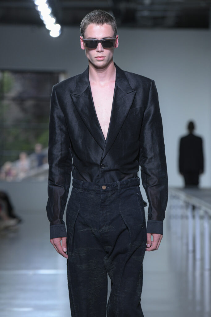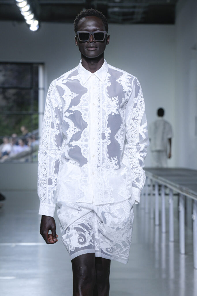 La collection Printemps-Été 2025 de TAAKK, sous la direction du créateur Takuya Morikawa, s’inscrit dans cette interrogation. Elle propose une exploration technique et artistique visant à redécouvrir et à réinventer les possibilités du design Yo-fuku. Takuya, en effet, n’hésite pas à retourner à l’essence même des techniques de fabrication pour y insuffler une nouvelle dynamique.