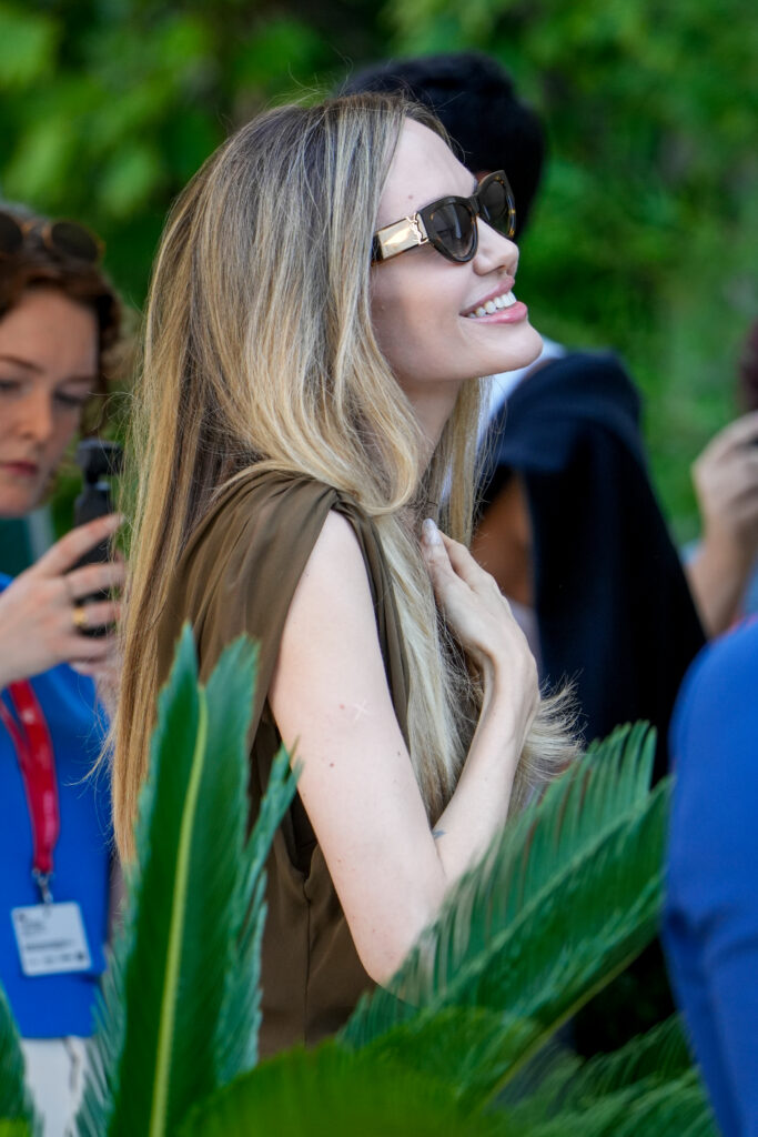 Lors de la deuxième journée du 81e Festival international du film de Venise, Angelina Jolie a une fois de plus captivé l’attention par son élégance intemporelle. L’actrice et réalisatrice est apparue dans une robe vaporeuse en soie sans manches, dotée d’un décolleté en V, qui mettait en valeur sa silhouette gracieuse tout en reflétant une sophistication minimaliste. La fluidité du tissu en soie apportait un effet aérien, accentuant l’allure chic et raffinée d’Angelina.
