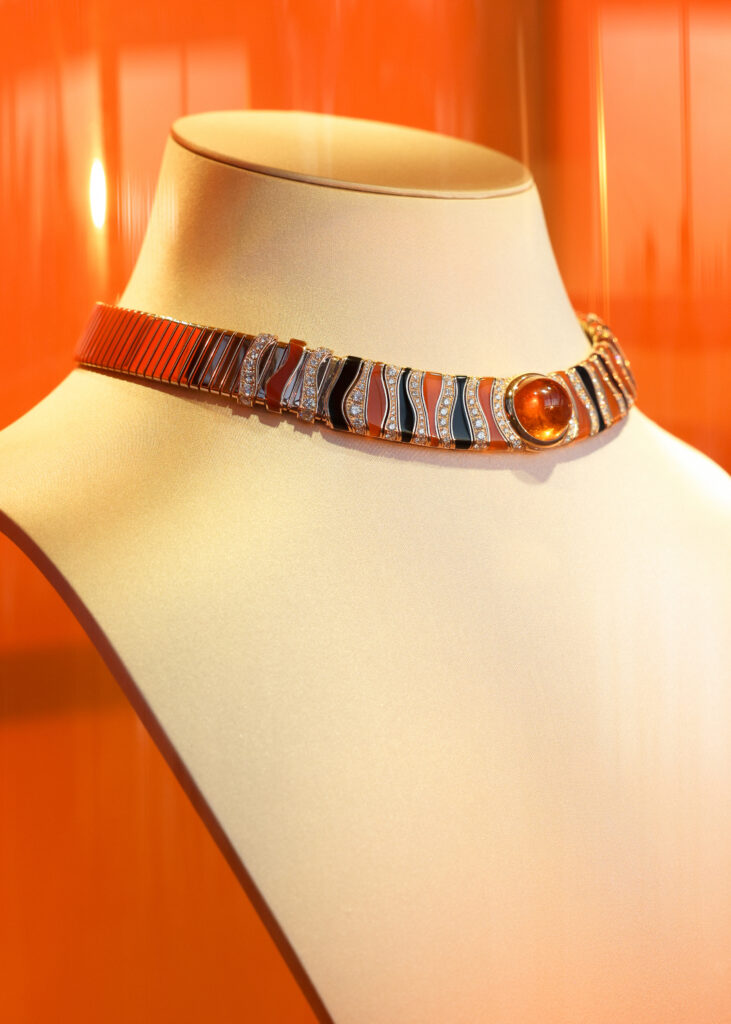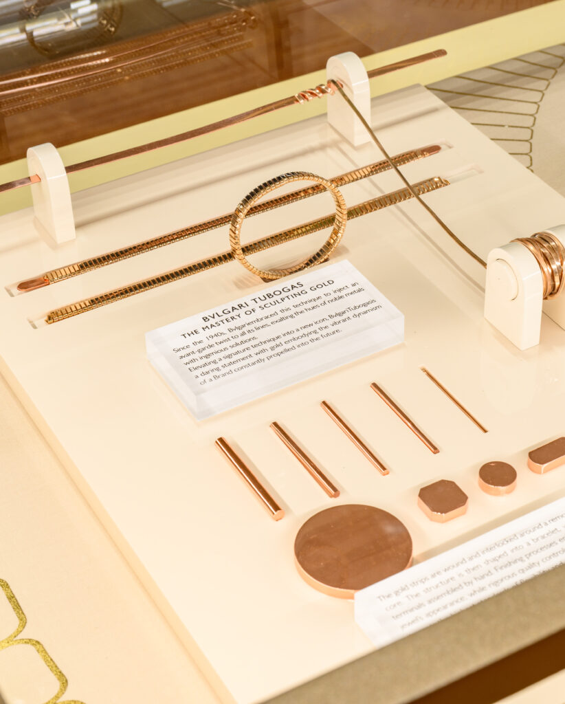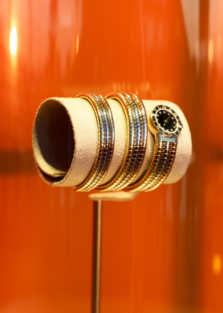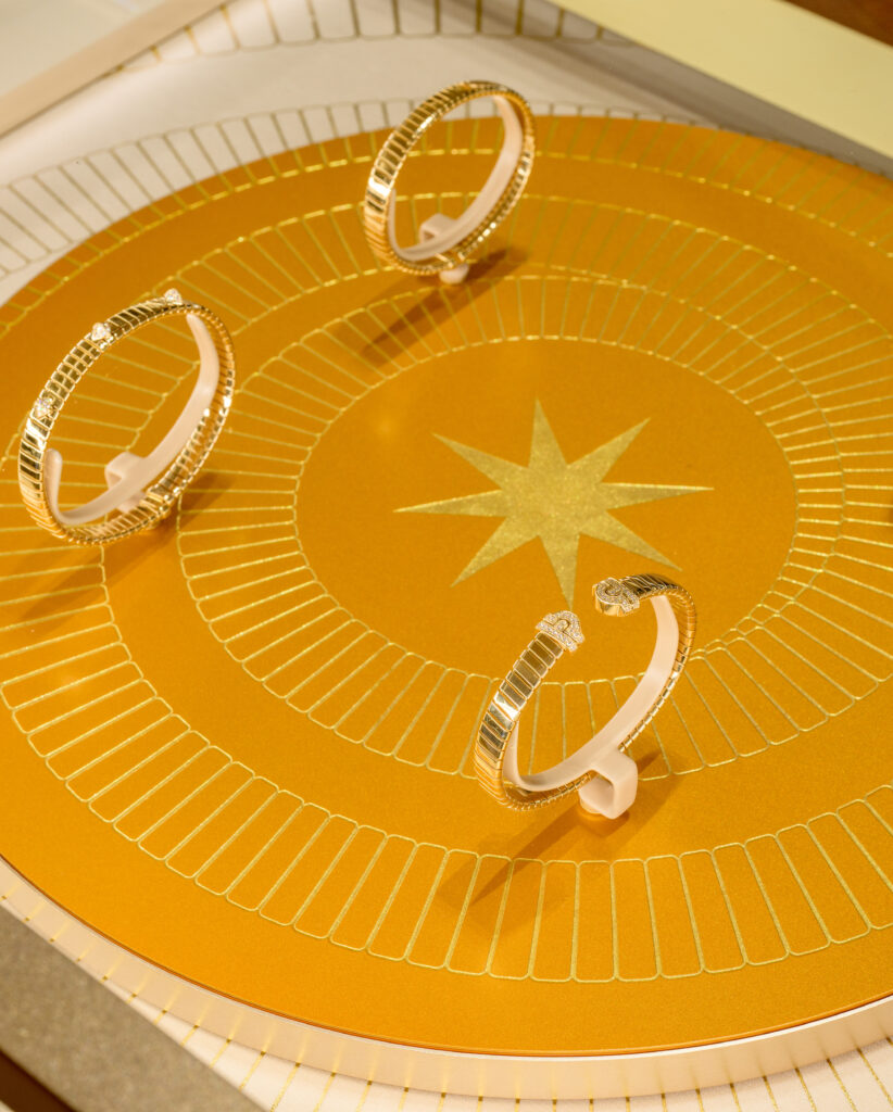 La technique Tubogas, introduite par Bvlgari en 1948, se distingue par ses bandes en or flexibles qui s’enroulent sans soudure, offrant un design à la fois innovant et intemporel. Inspirée des conduites de gaz des années 1920, cette méthode a d’abord été appliquée à la première montre joaillière Serpenti, et a ensuite évolué pour devenir un incontournable de la haute joaillerie de Bvlgari dans les années 1970. Aujourd’hui, Tubogas réapparaît dans une collection qui allie héritage et modernité, réaffirmant son rôle central dans l’esthétique de la Maison.