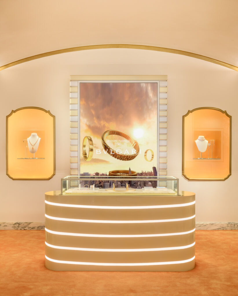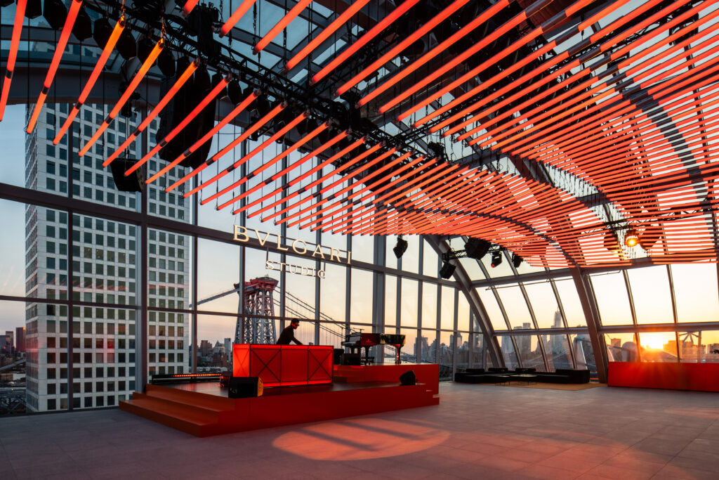 Le 4 septembre 2024, Bvlgari a célébré le lancement de sa collection Tubogas lors d’un événement exclusif à New York, au penthouse du Skylight The Refinery. Cette soirée immersive a rassemblé des célébrités et des artistes, dont Naomi Campbell, Dakota Johnson, et Masego, dans une célébration de l’art, de la musique et de la haute joaillerie. La soirée a également été marquée par une installation lumineuse cinétique, « The Wave », conçue par Christopher Bauder, qui a magnifié les spirales infinies des créations Tubogas à travers un jeu hypnotique de lumière et de mouvement.