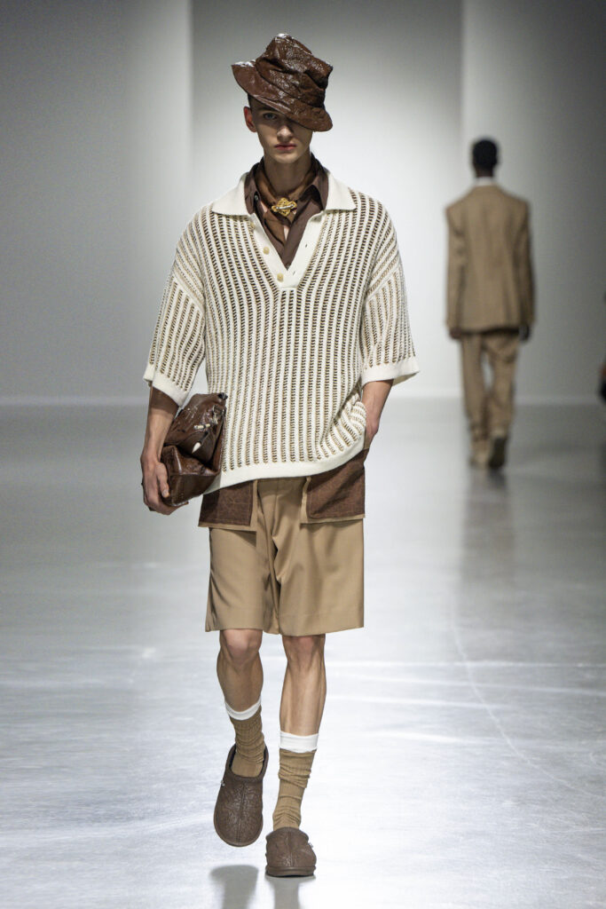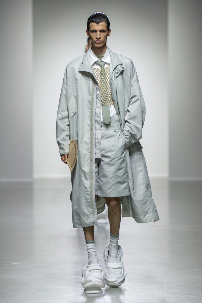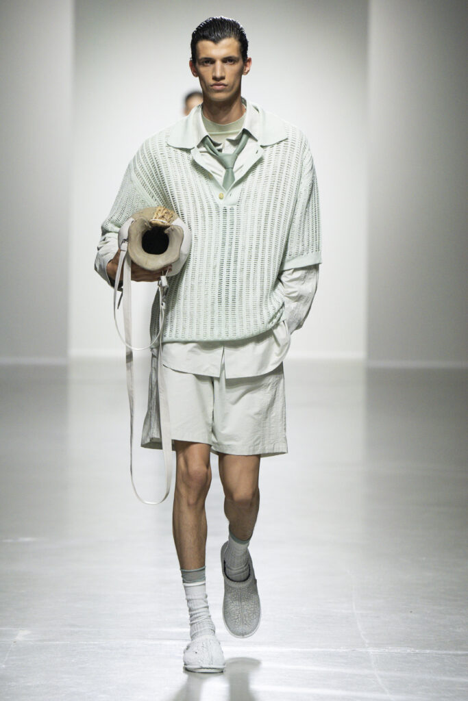 Avec cette collection Printemps-Été 2025, Feng Chen Wang fusionne l’ancien et le moderne, en revisitant l’artisanat traditionnel à travers une esthétique résolument contemporaine. Sa capacité à donner vie aux souvenirs anciens tout en les projetant dans le présent témoigne de sa maîtrise exceptionnelle des matières et des textures, faisant de cette collection un voyage poétique dans le temps.