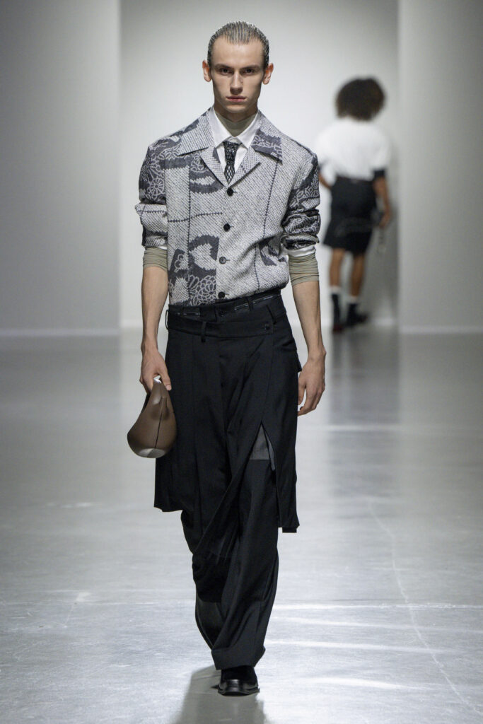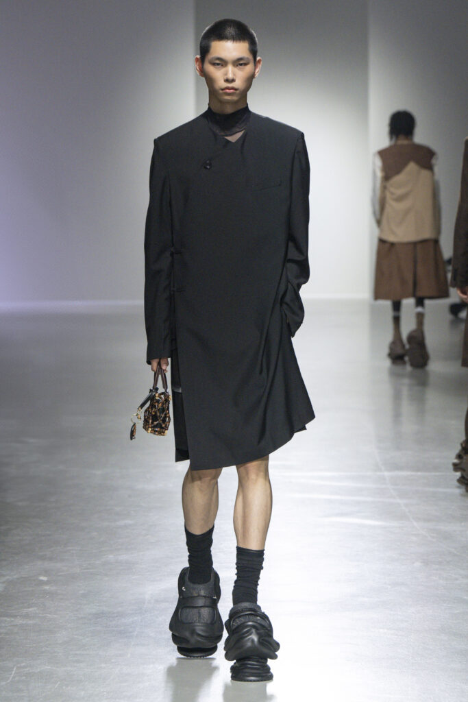 Lors de la Fashion Week Printemps-Été 2025, Feng Chen Wang a présenté une collection inspirée par le passage du temps et la beauté des objets anciens. Intitulée The Porcelain Luster Remains the Same, and the Sun and Moon are New Again, cette collection explore l’artisanat traditionnel à travers des textures et des matériaux raffinés, tout en les intégrant à des silhouettes contemporaines, offrant une réflexion poétique sur la relation entre passé et futur.