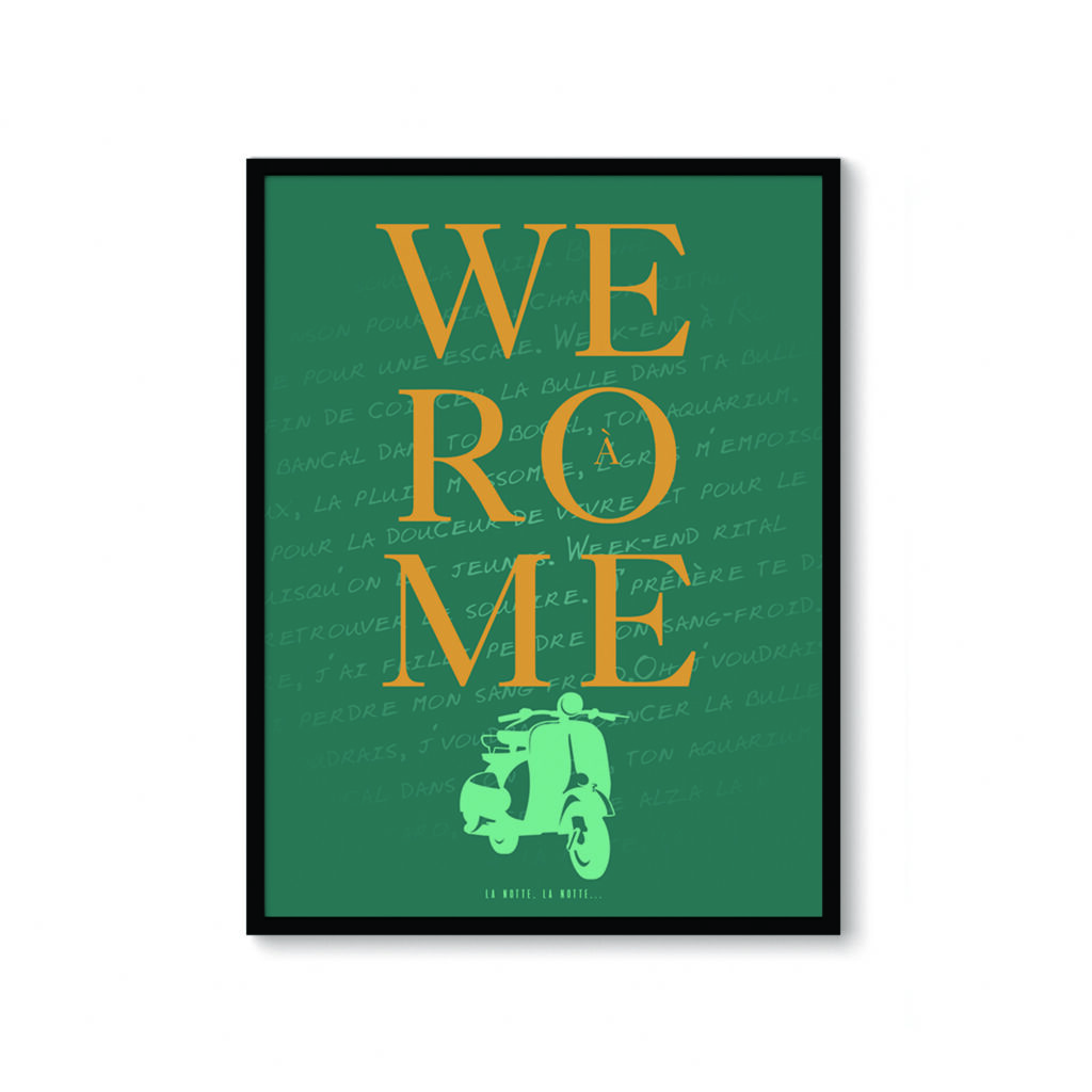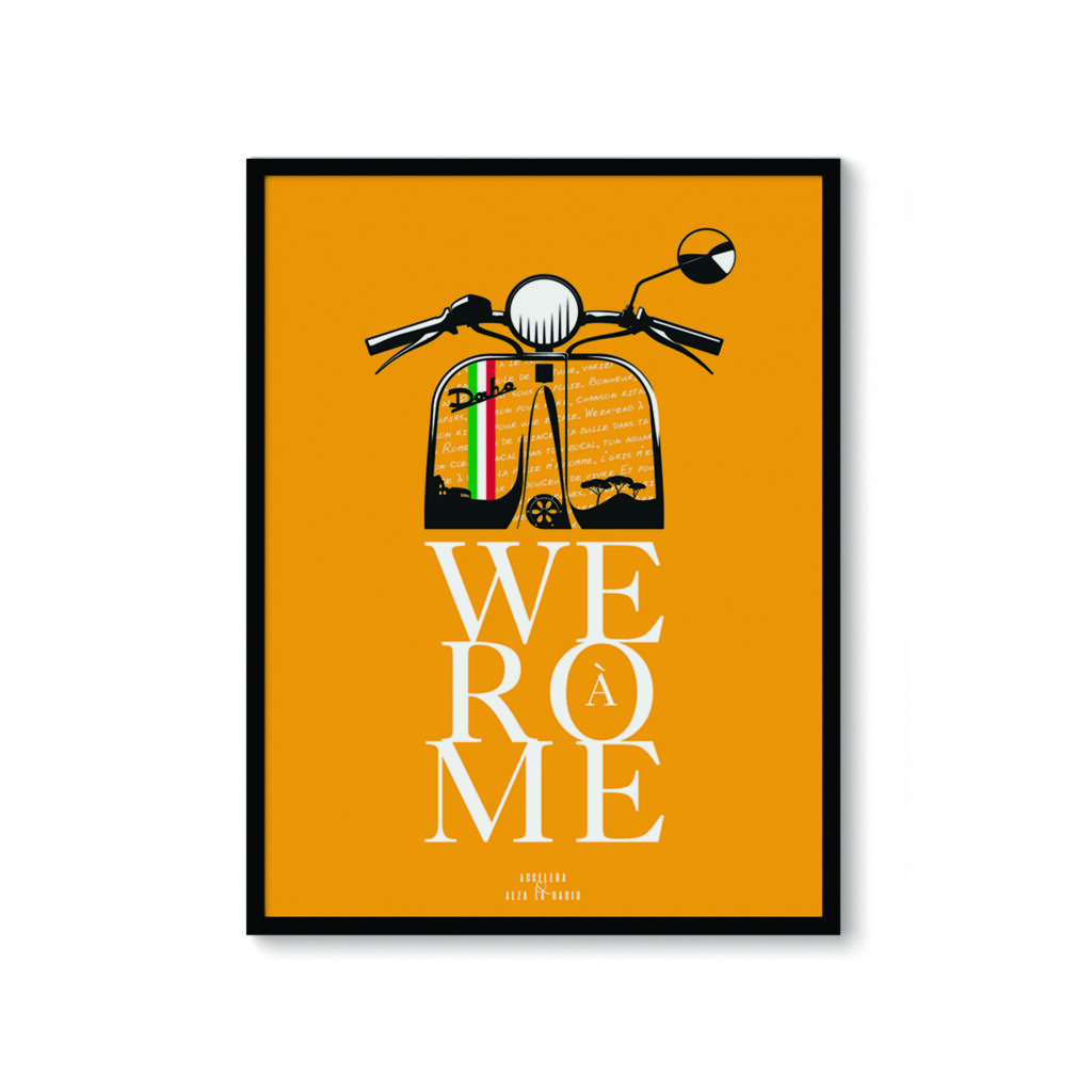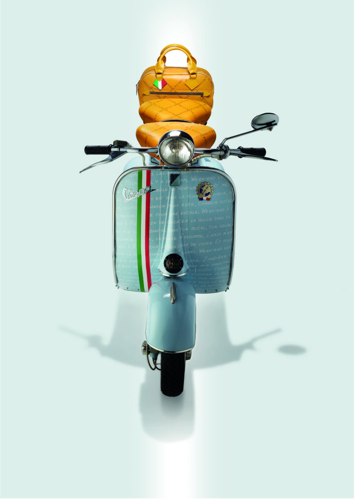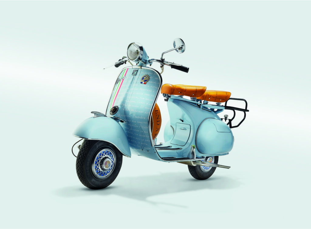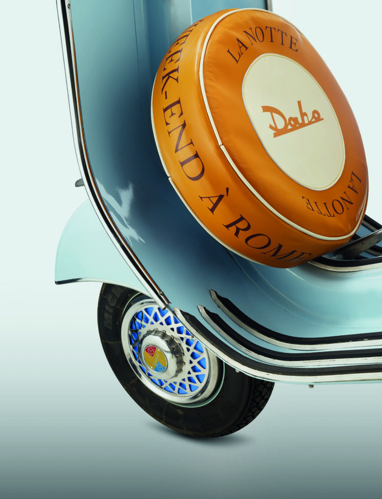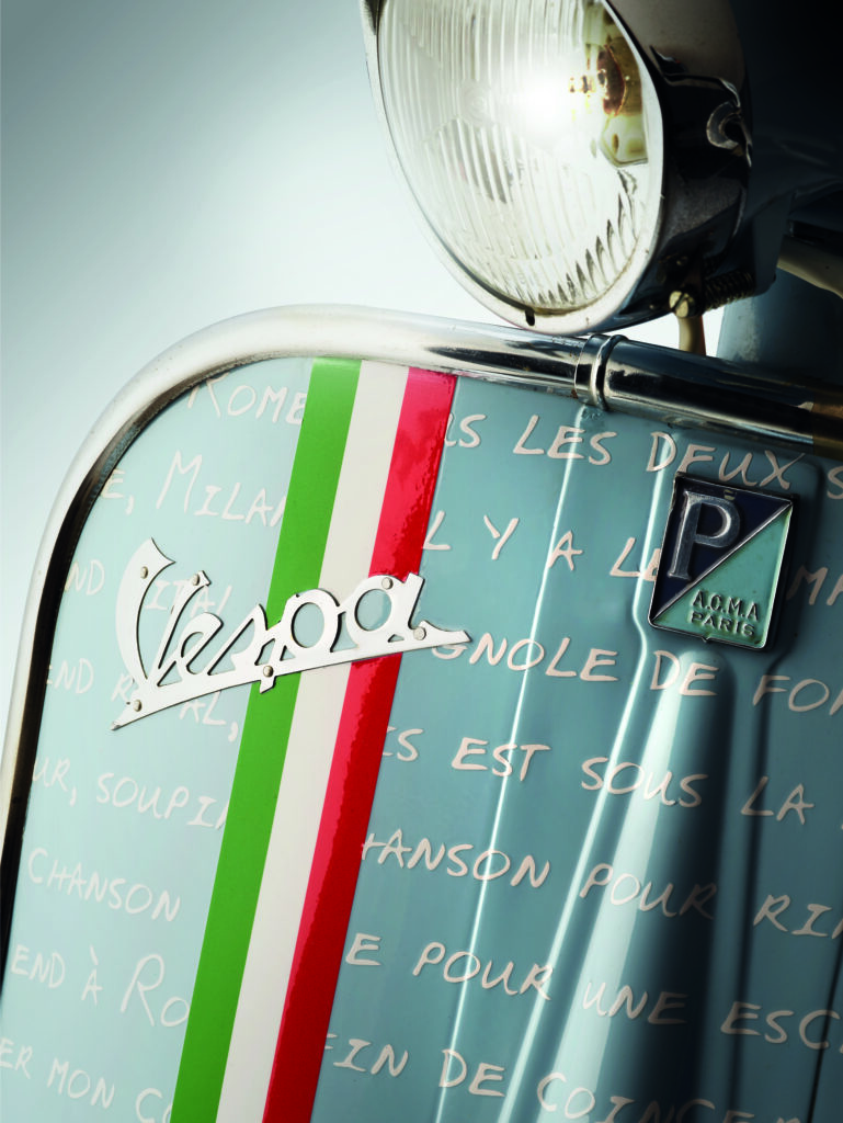 Anne Claire Bottos, une designer reconnue, a su capturer l’essence de la dolce vita pour représenter l’Italie et le voyage amoureux évoqué dans la chanson d’Étienne Daho. Les paroles de la chanson sont délicatement inscrites sur le devant de la Vespa, apportant une touche poétique et personnelle à cette œuvre unique.