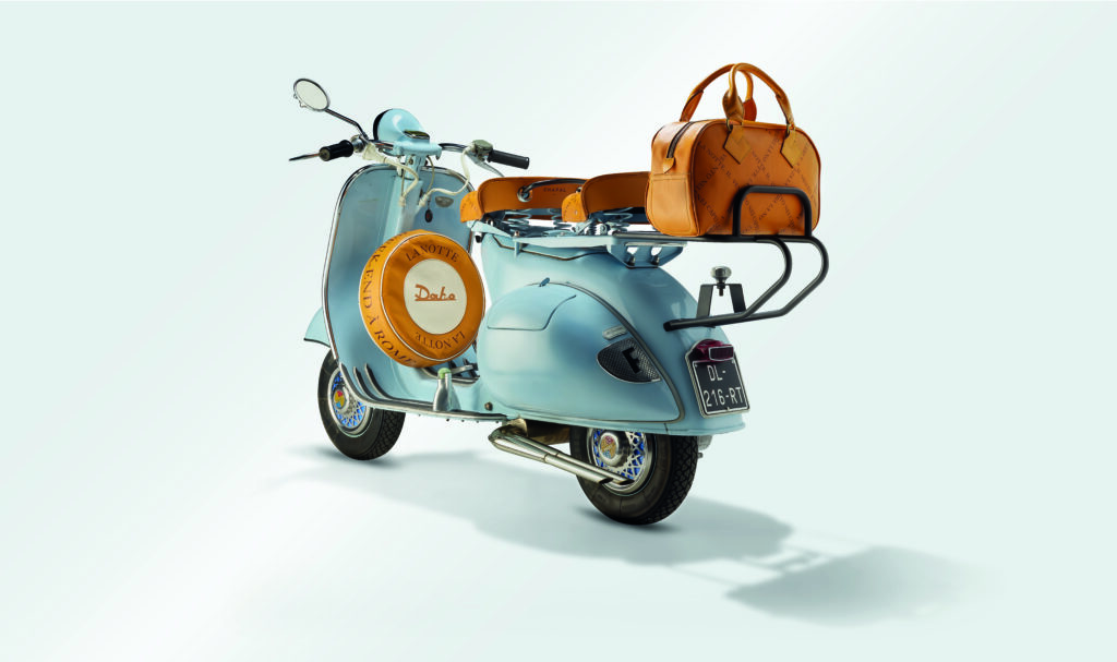 Les deux selles, la housse de la roue de secours et le petit sac week-end ont été réalisés par la maison du cuir français Chapal Paris, ajoutant une note de luxe et de savoir-faire artisanal à l’ensemble. Non seulement cette Vespa est une pièce de collection, mais elle est également fonctionnelle, combinant art et utilité.