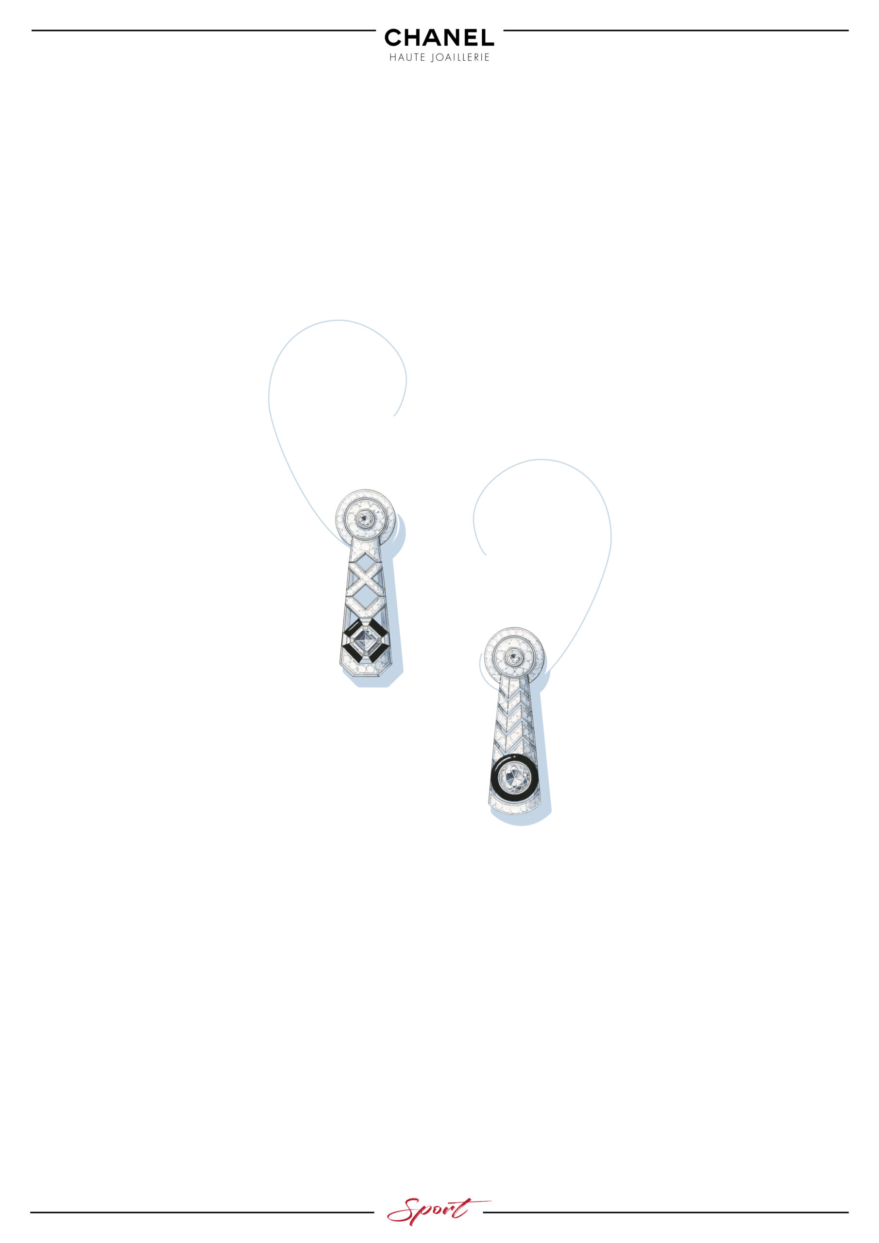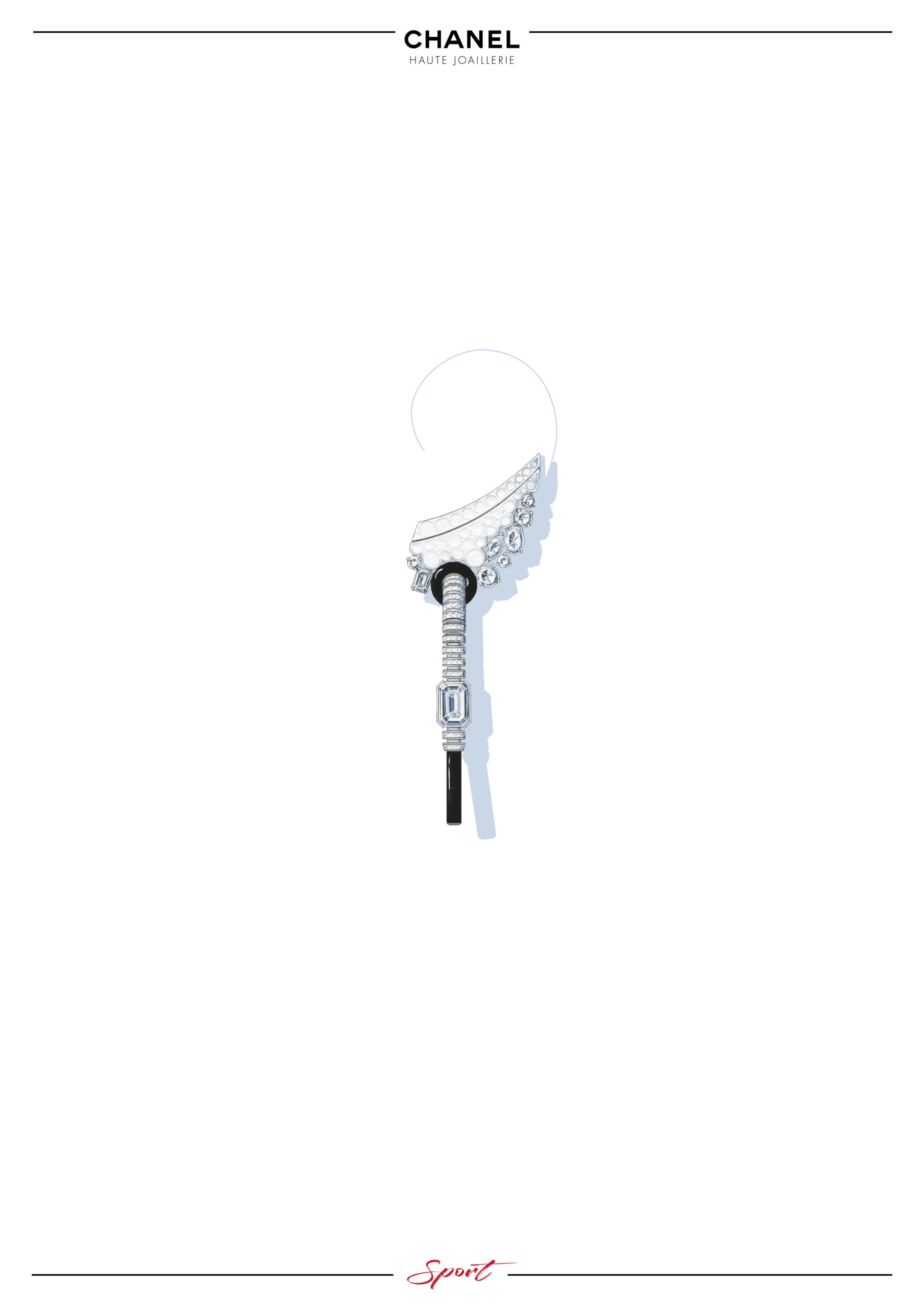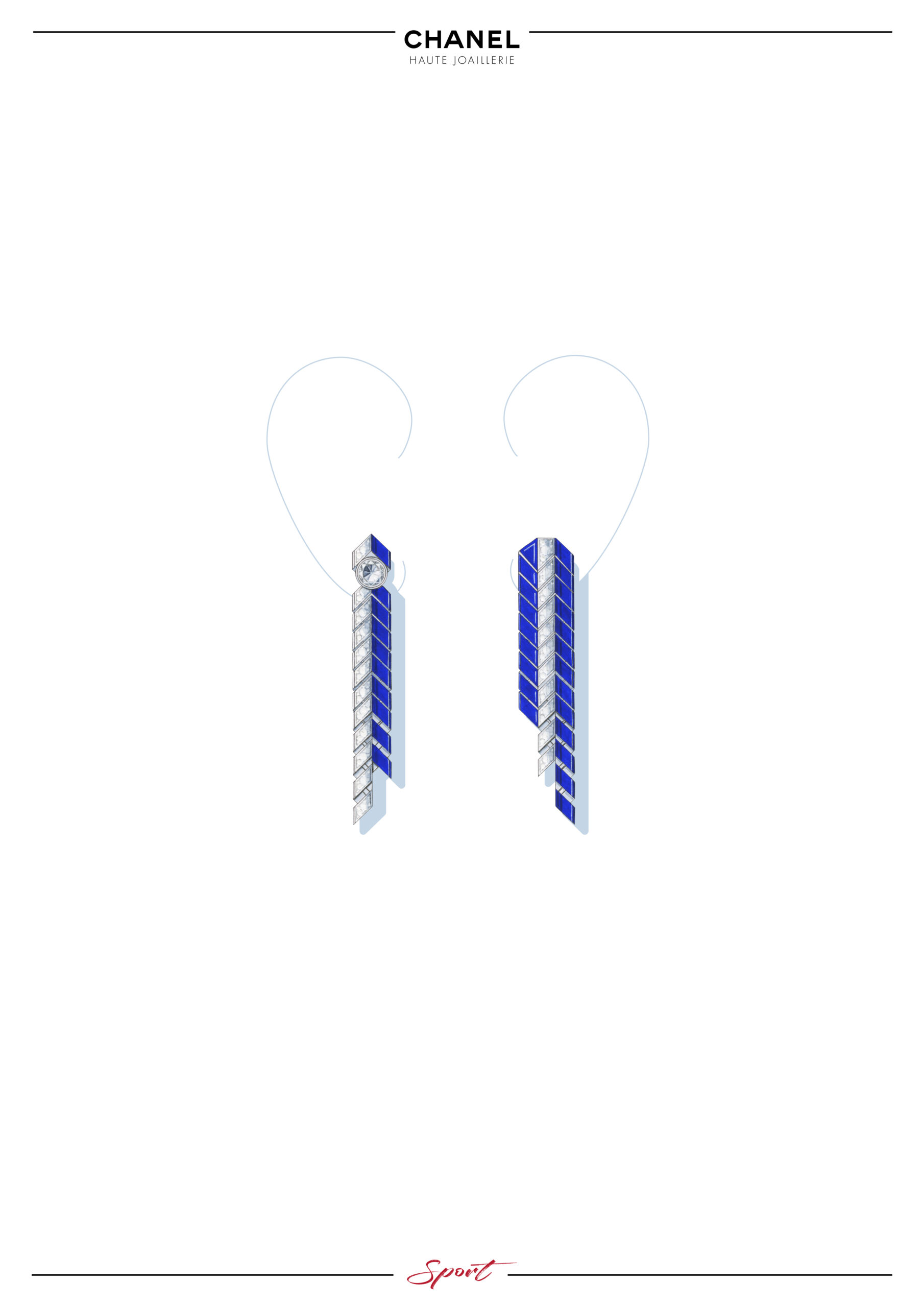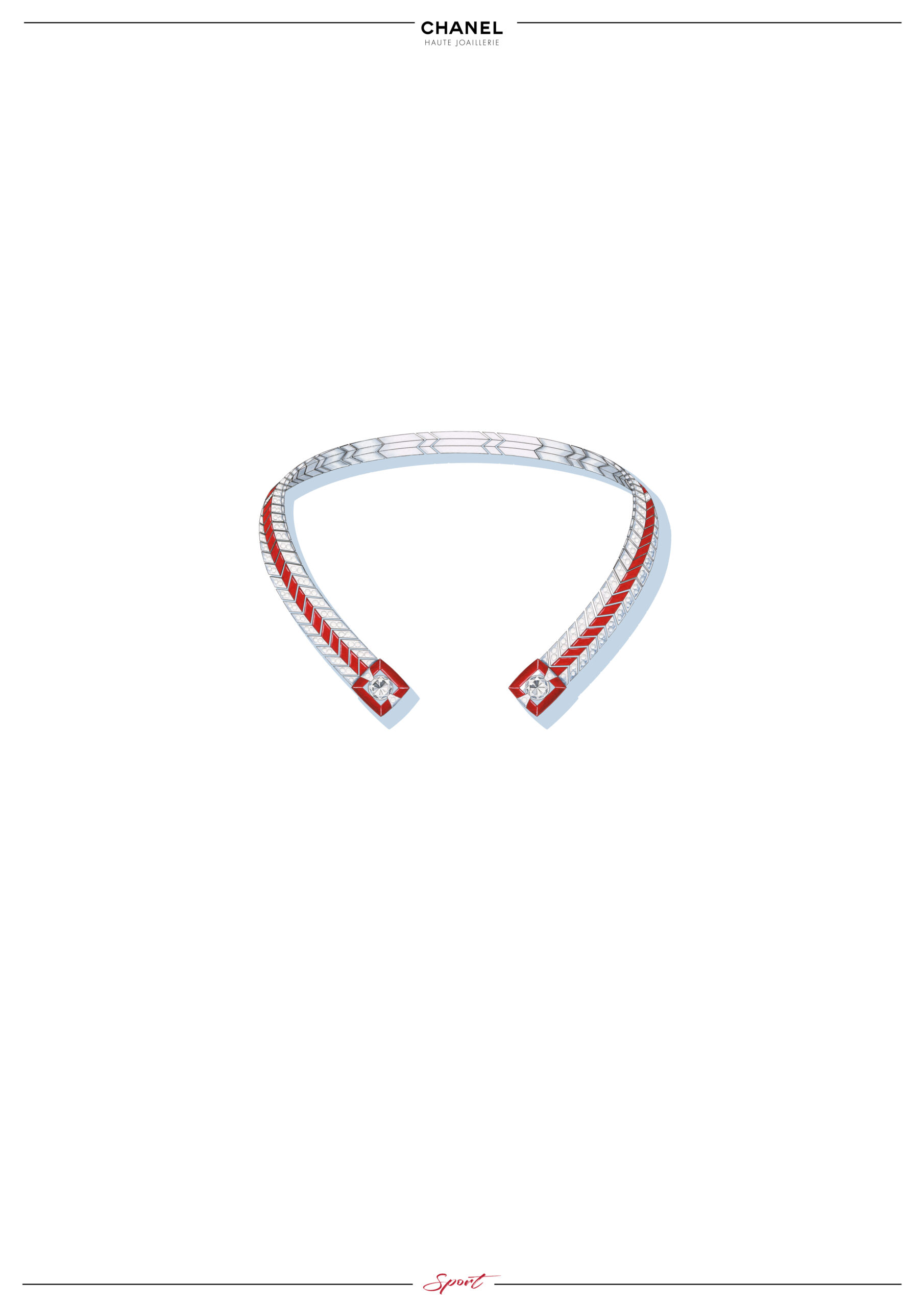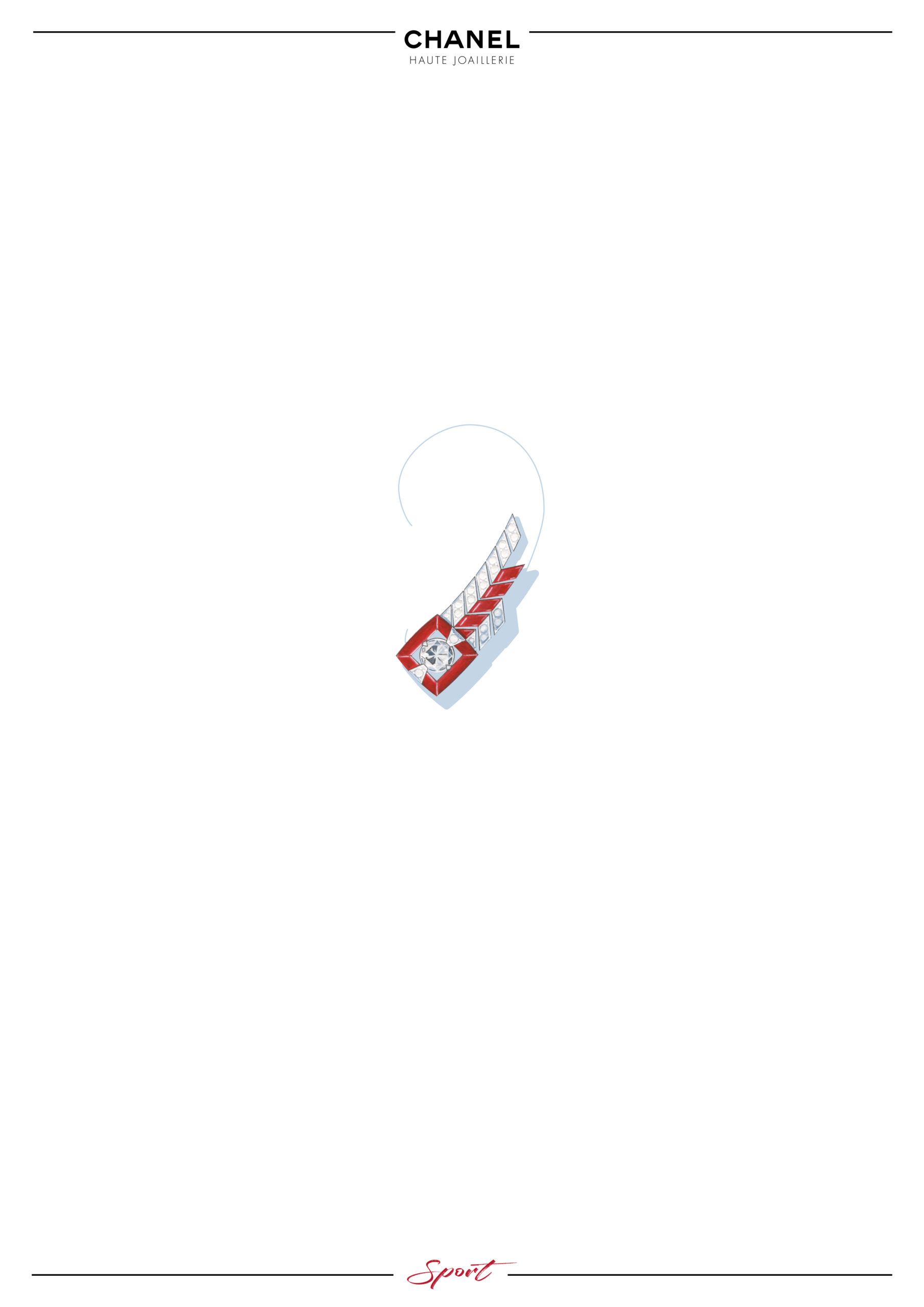 La collection Haute Joaillerie Sport s’inspire des codes de l’univers sportif en intégrant des motifs et des lignes dynamiques. Le chevron, symbole de rythme et de vitesse, est au cœur de cette collection, avec des volumes profilés qui rappellent l’anatomie du corps. Des graphismes et motifs emblématiques de CHANEL, comme le lion ou l’étoile, sont réinterprétés dans une version moderne et sportive. La signature CHANEL s’invite également à travers des imprimés ajourés pour la première fois dans la haute joaillerie.