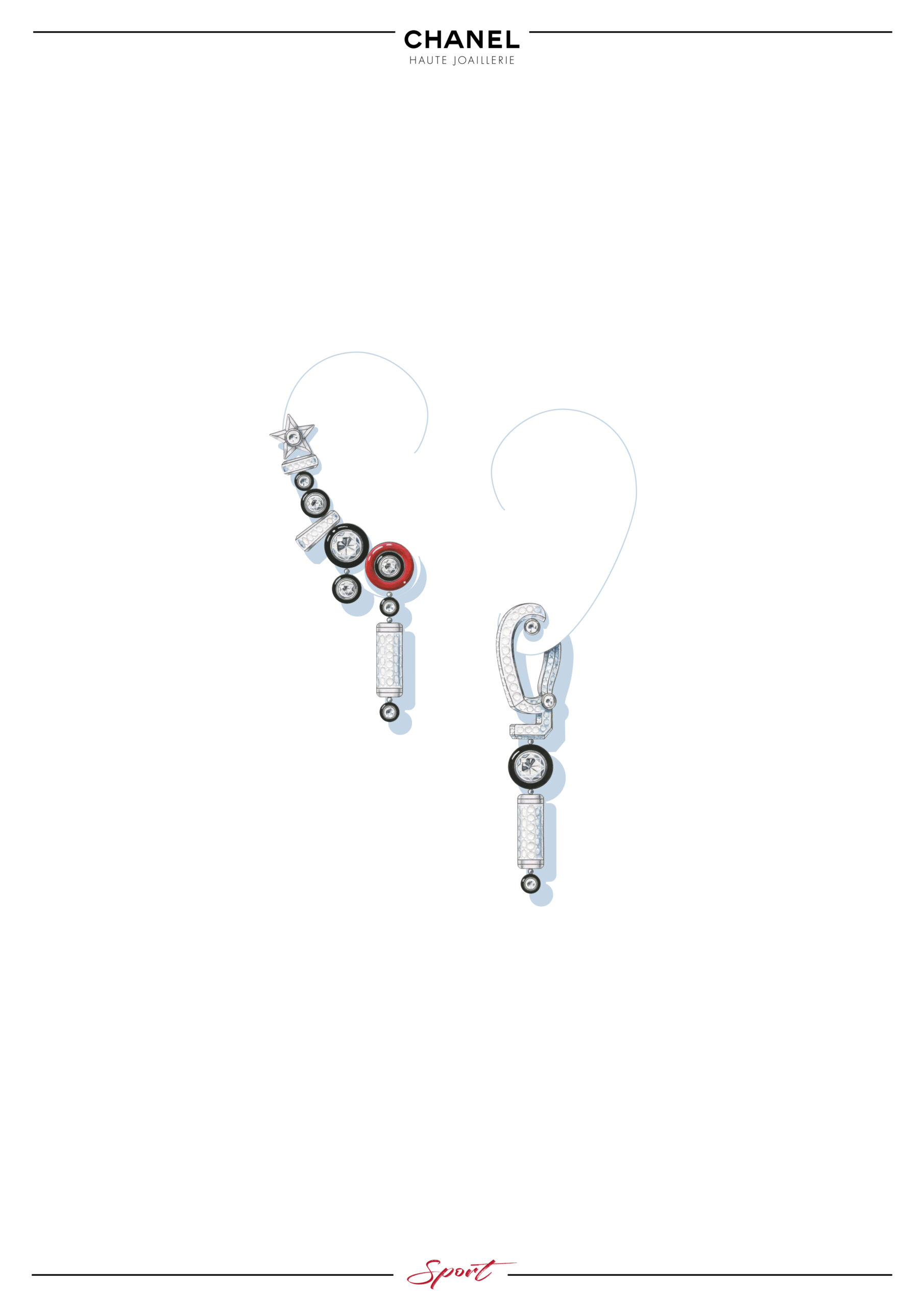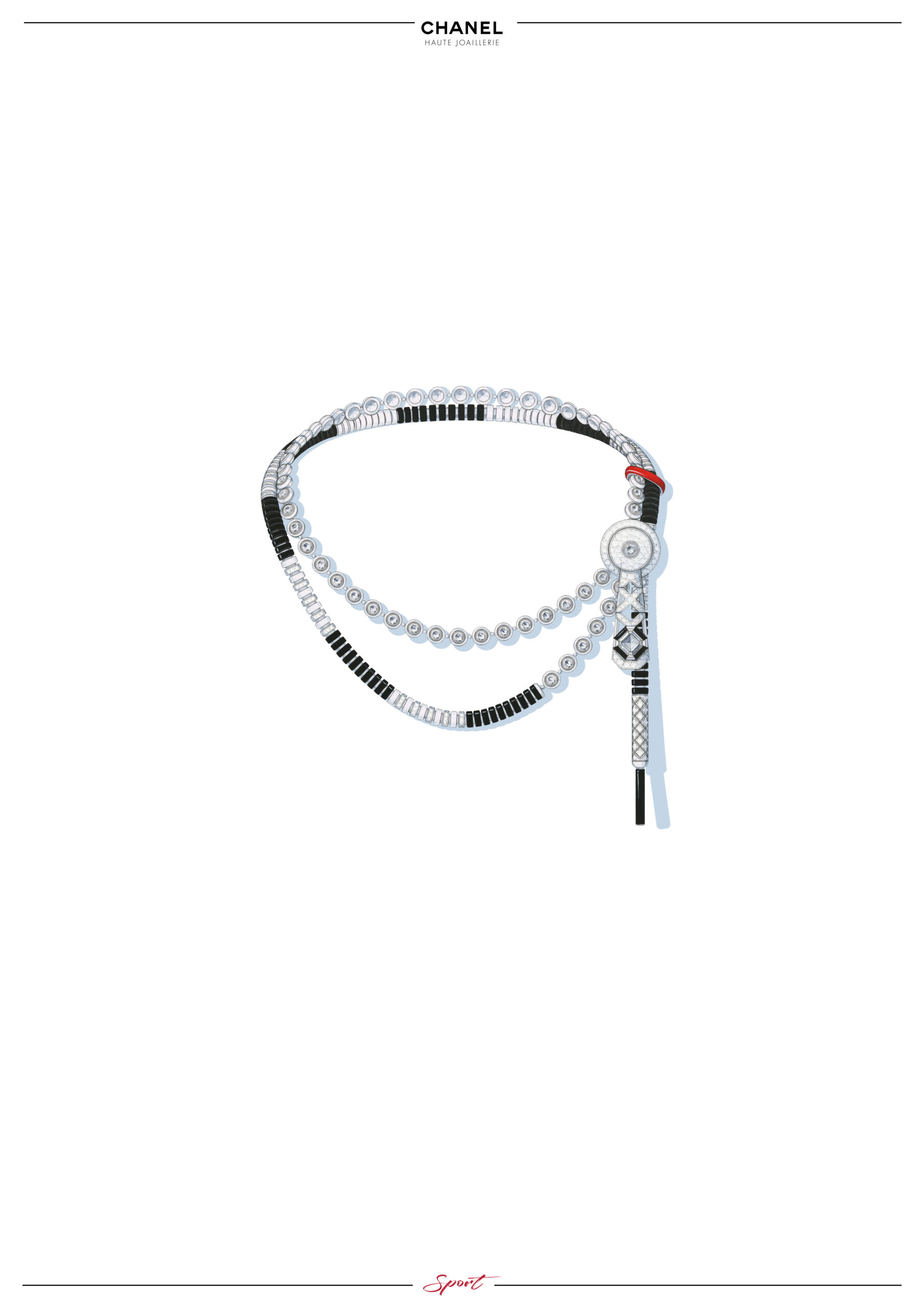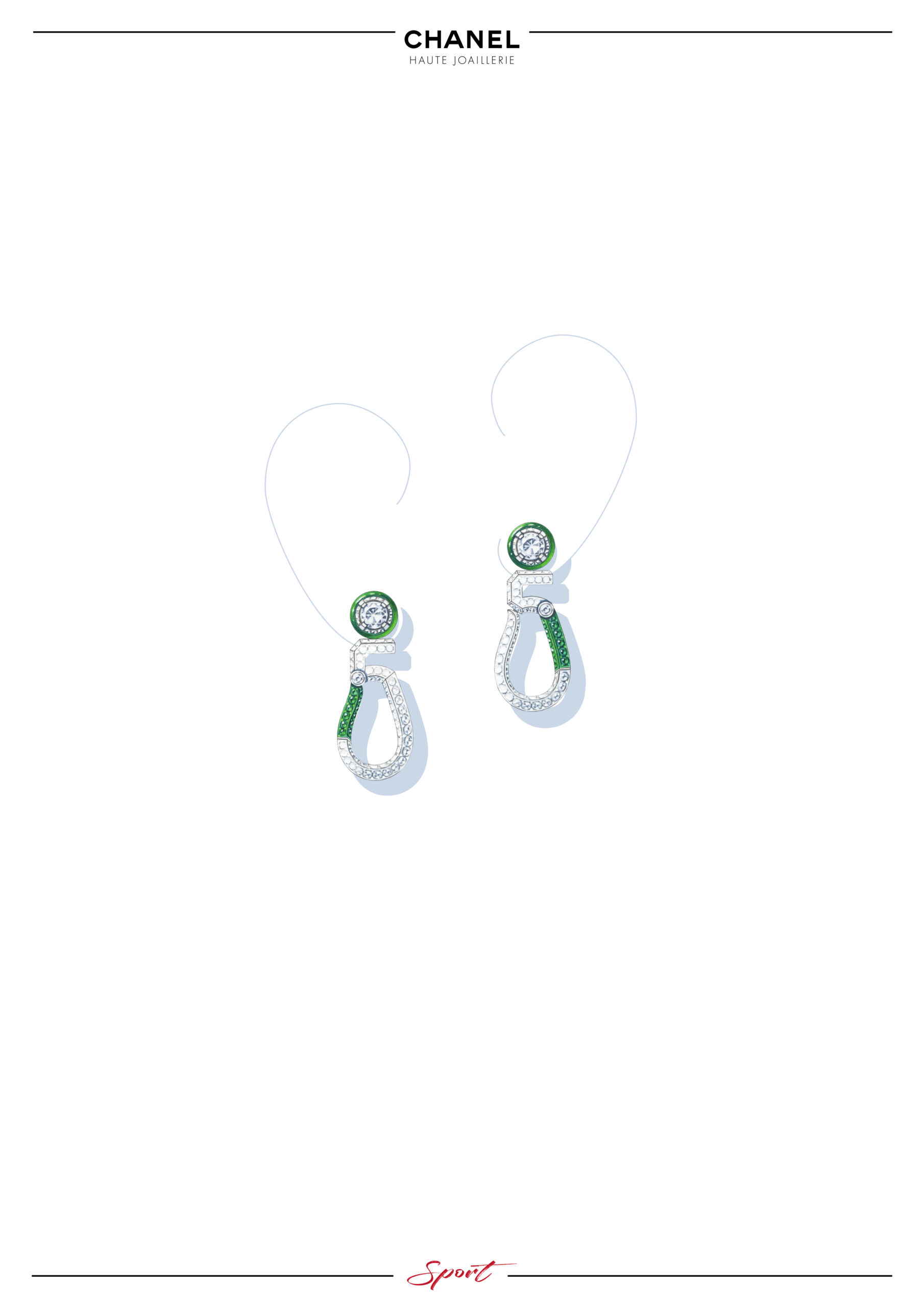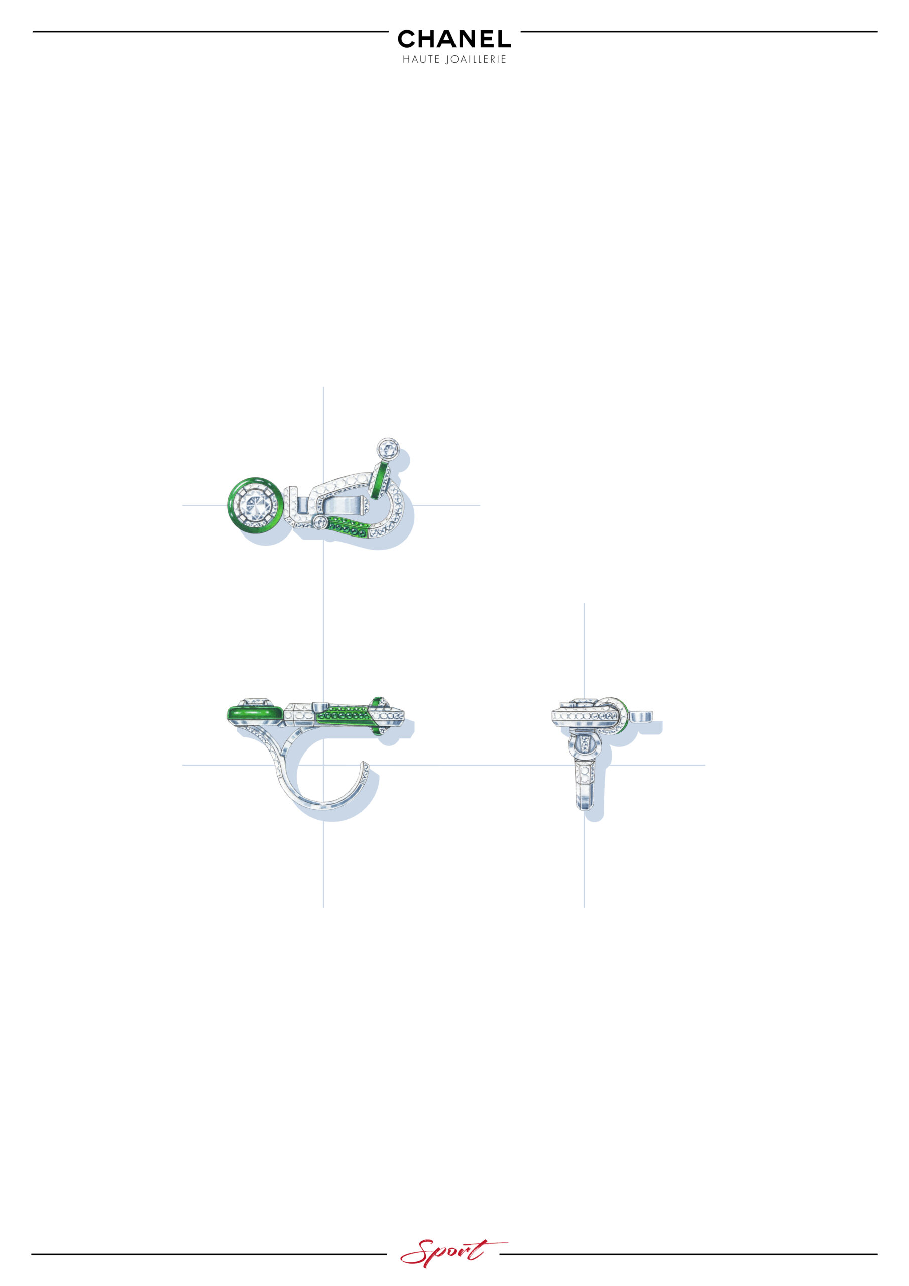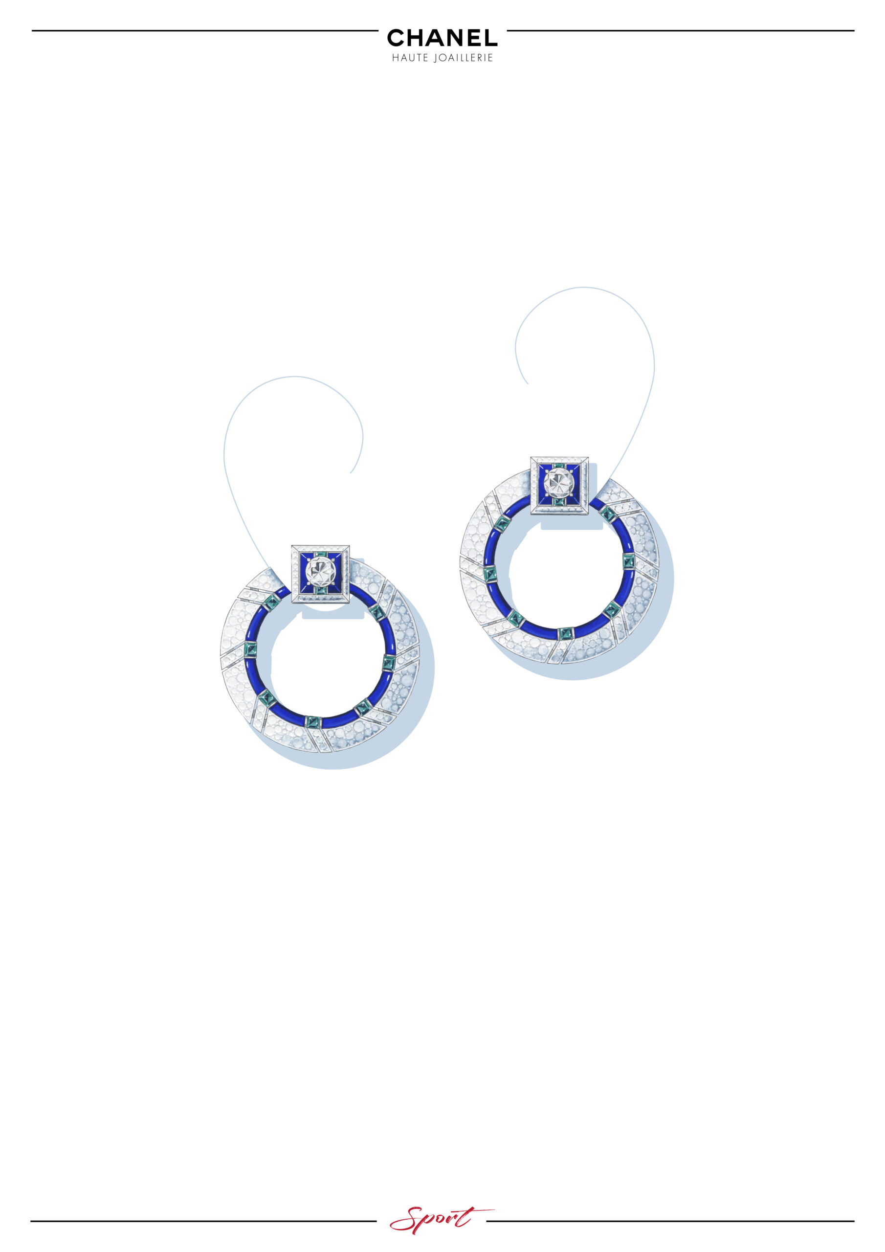 La collection Haute Joaillerie Sport s’inspire des codes de l’univers sportif en intégrant des motifs et des lignes dynamiques. Le chevron, symbole de rythme et de vitesse, est au cœur de cette collection, avec des volumes profilés qui rappellent l’anatomie du corps. Des graphismes et motifs emblématiques de CHANEL, comme le lion ou l’étoile, sont réinterprétés dans une version moderne et sportive. La signature CHANEL s’invite également à travers des imprimés ajourés pour la première fois dans la haute joaillerie.