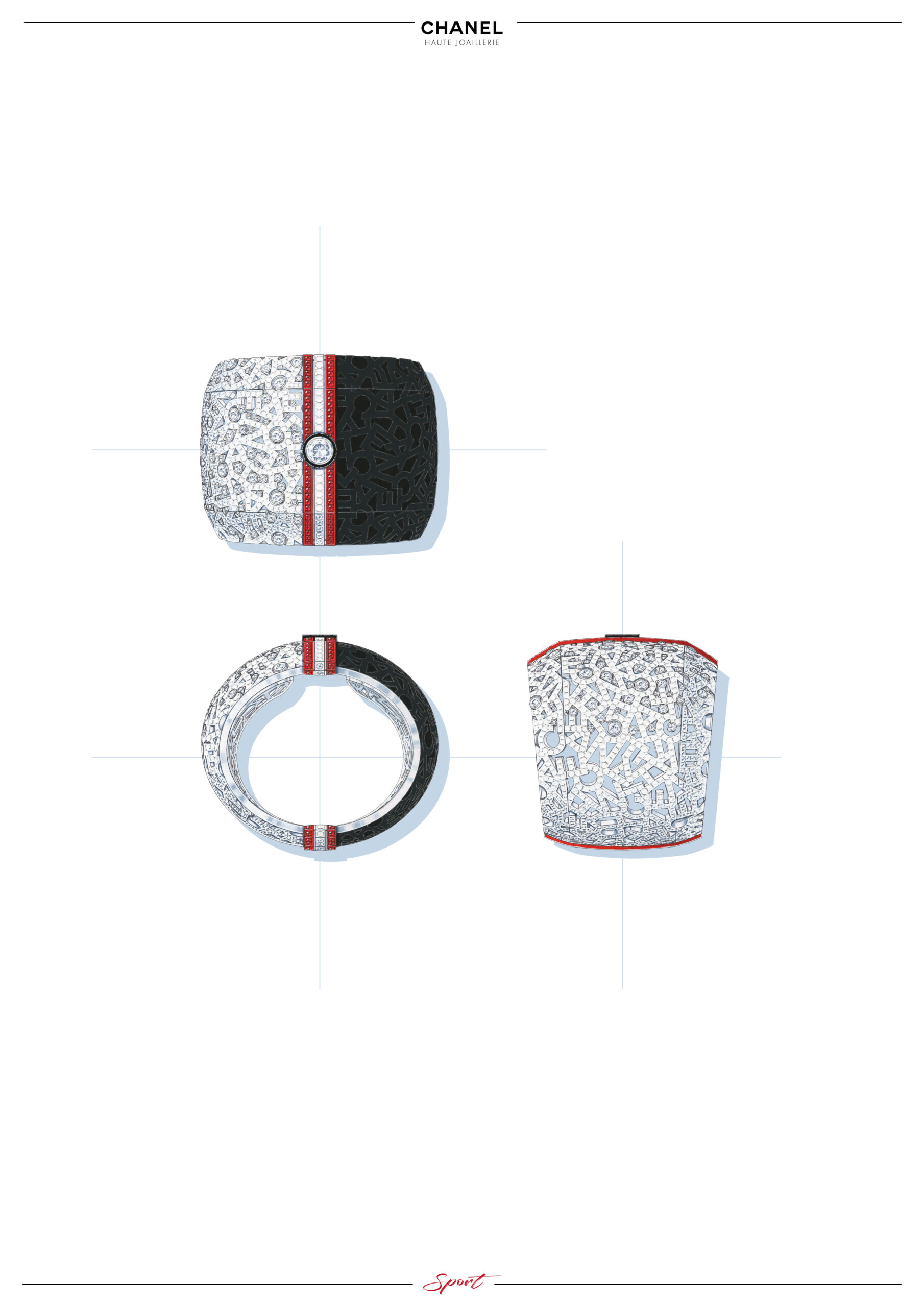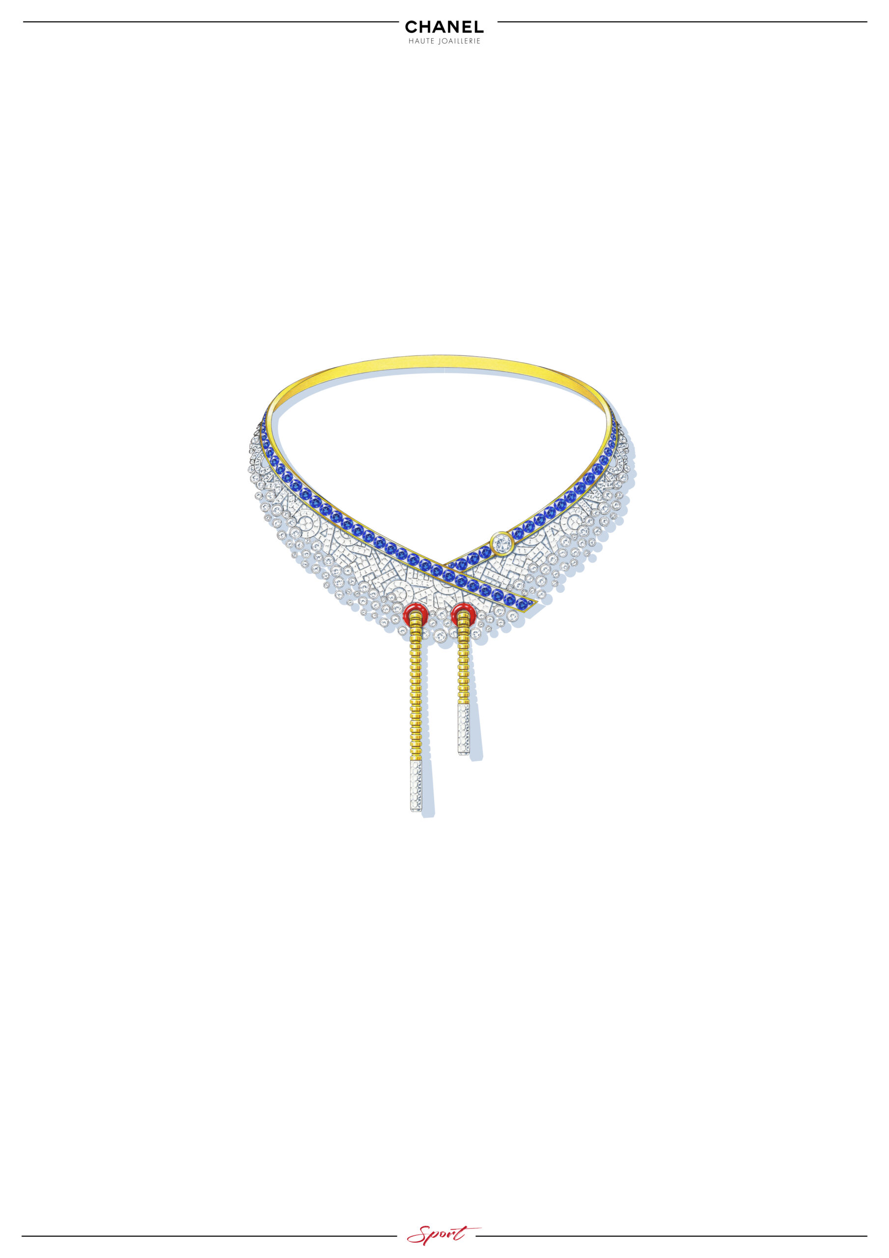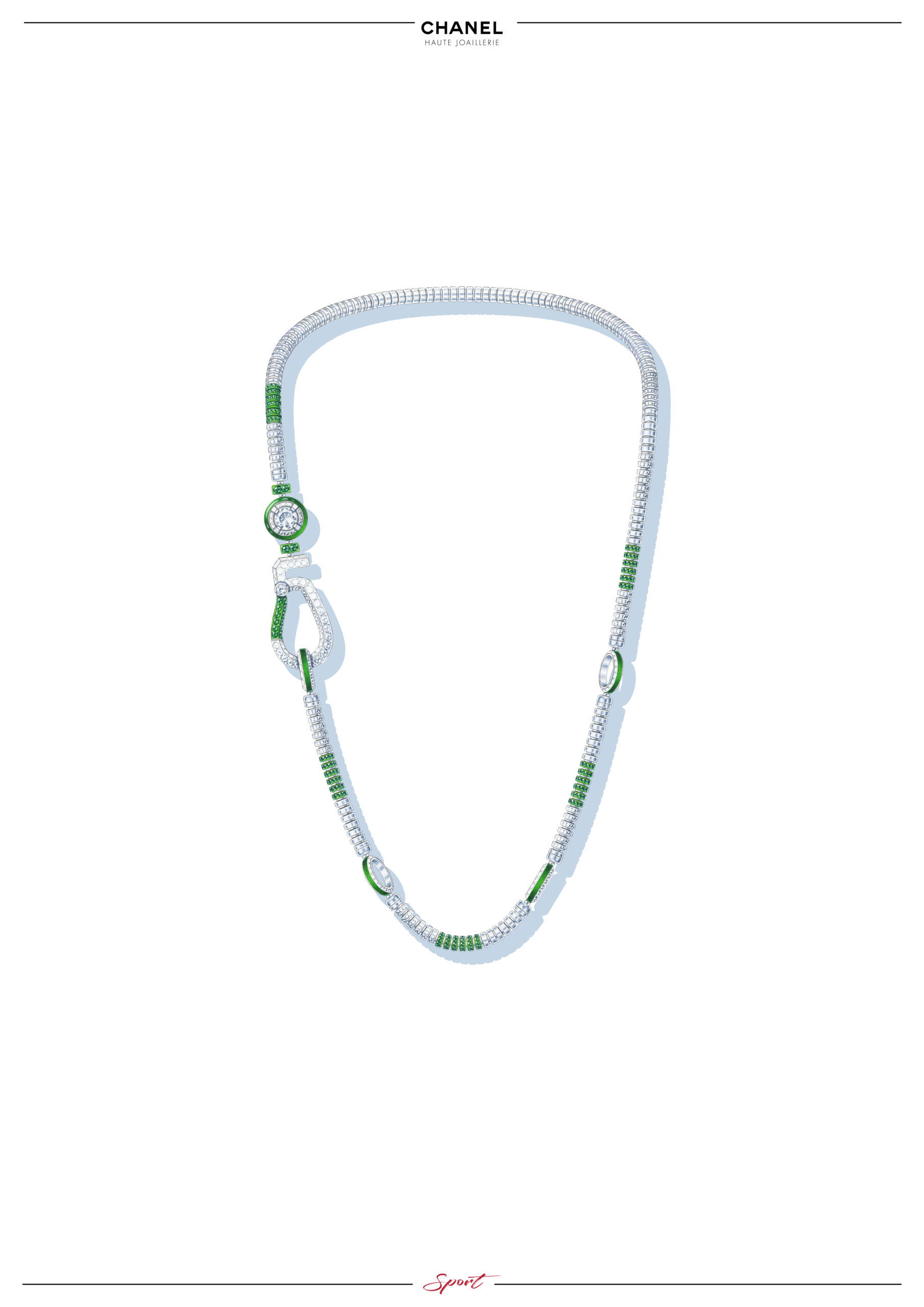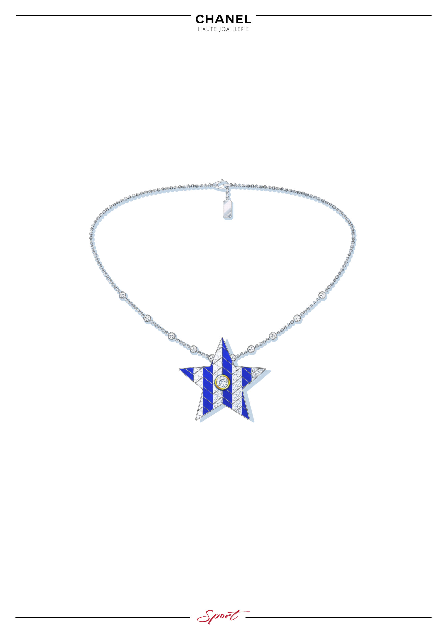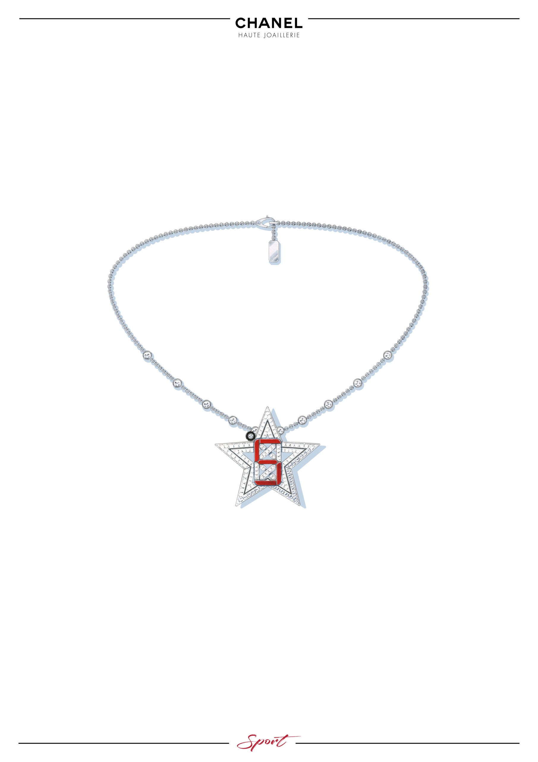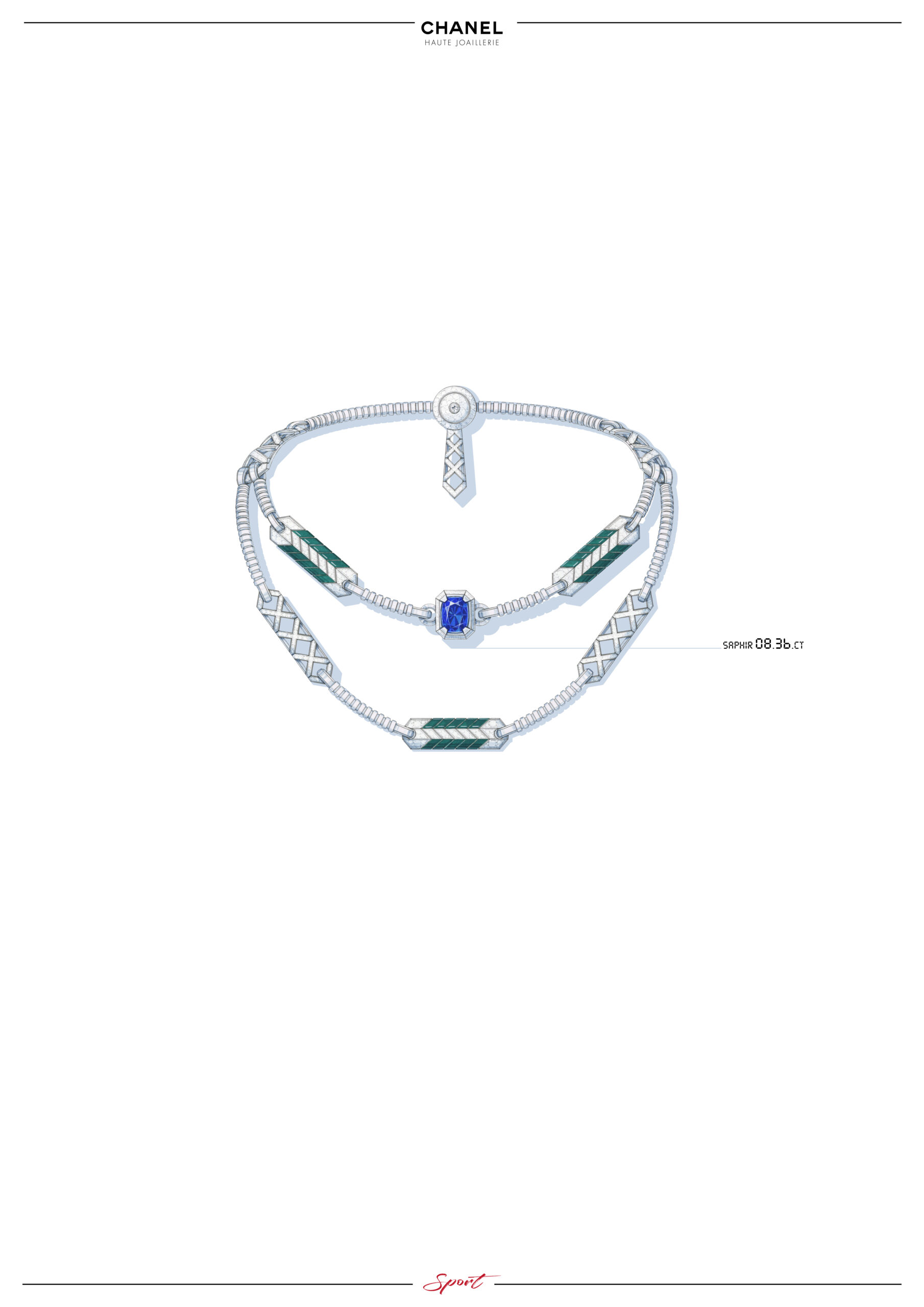 La collection Haute Joaillerie Sport s’inspire des codes de l’univers sportif en intégrant des motifs et des lignes dynamiques. Le chevron, symbole de rythme et de vitesse, est au cœur de cette collection, avec des volumes profilés qui rappellent l’anatomie du corps. Des graphismes et motifs emblématiques de CHANEL, comme le lion ou l’étoile, sont réinterprétés dans une version moderne et sportive. La signature CHANEL s’invite également à travers des imprimés ajourés pour la première fois dans la haute joaillerie.