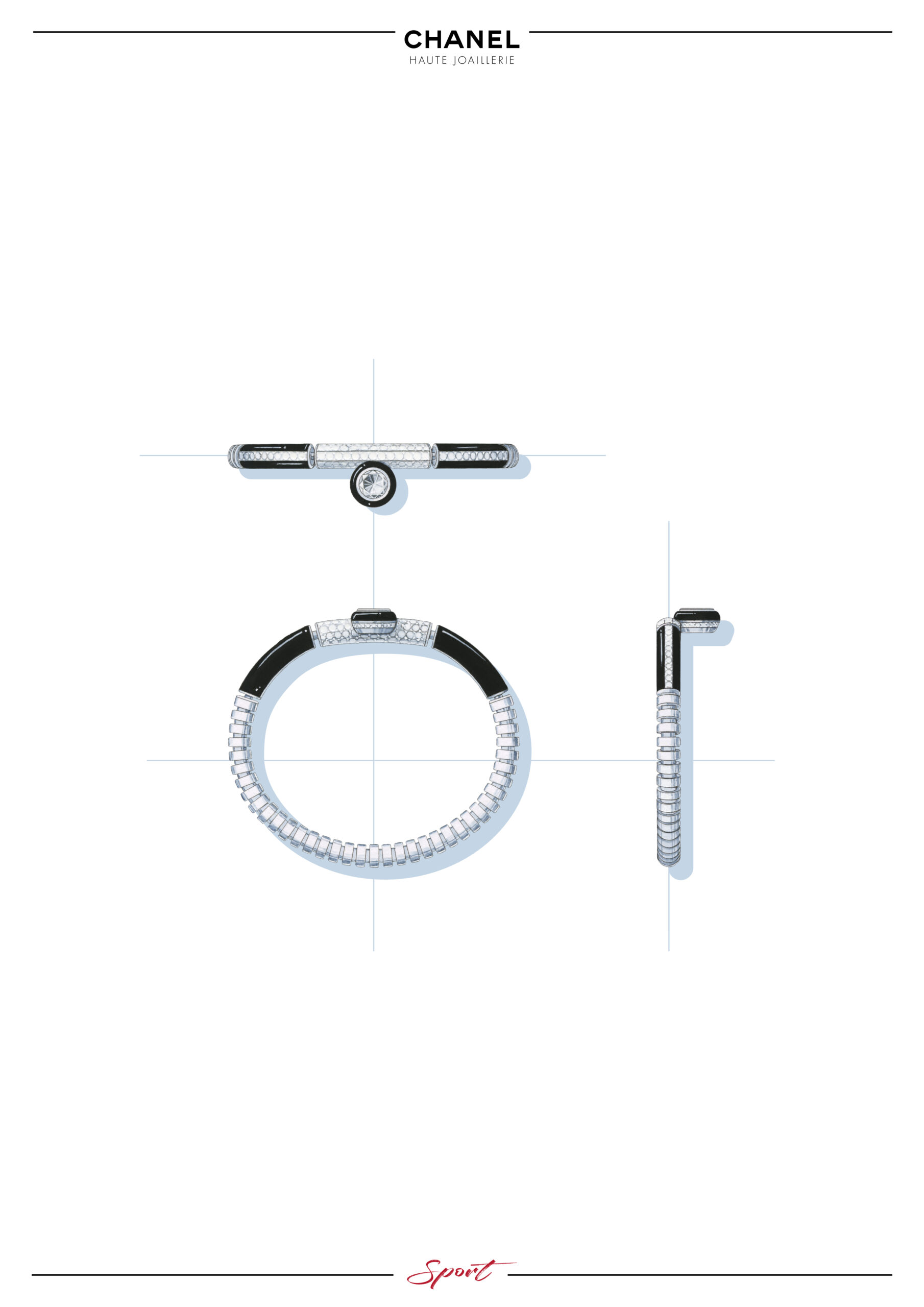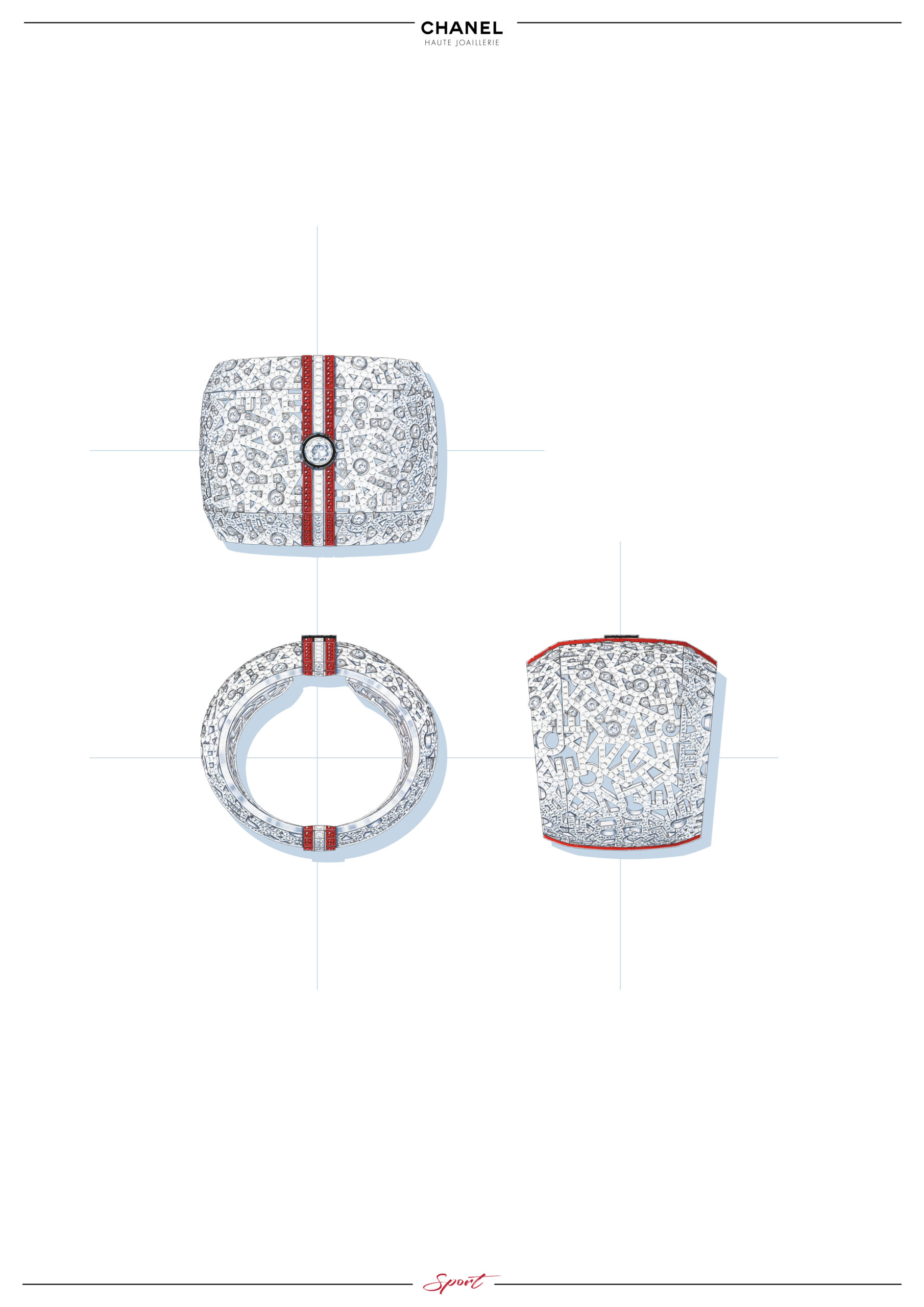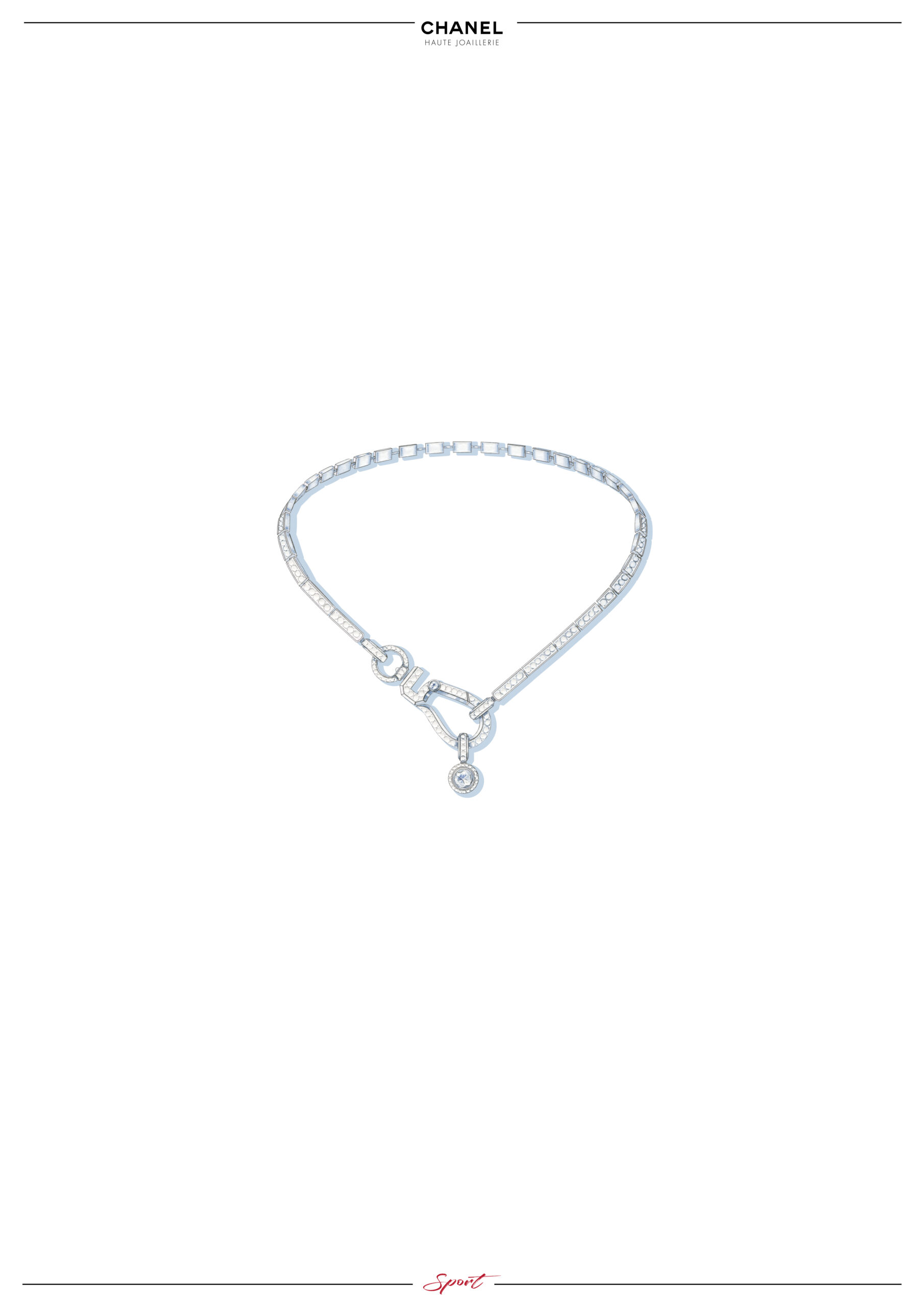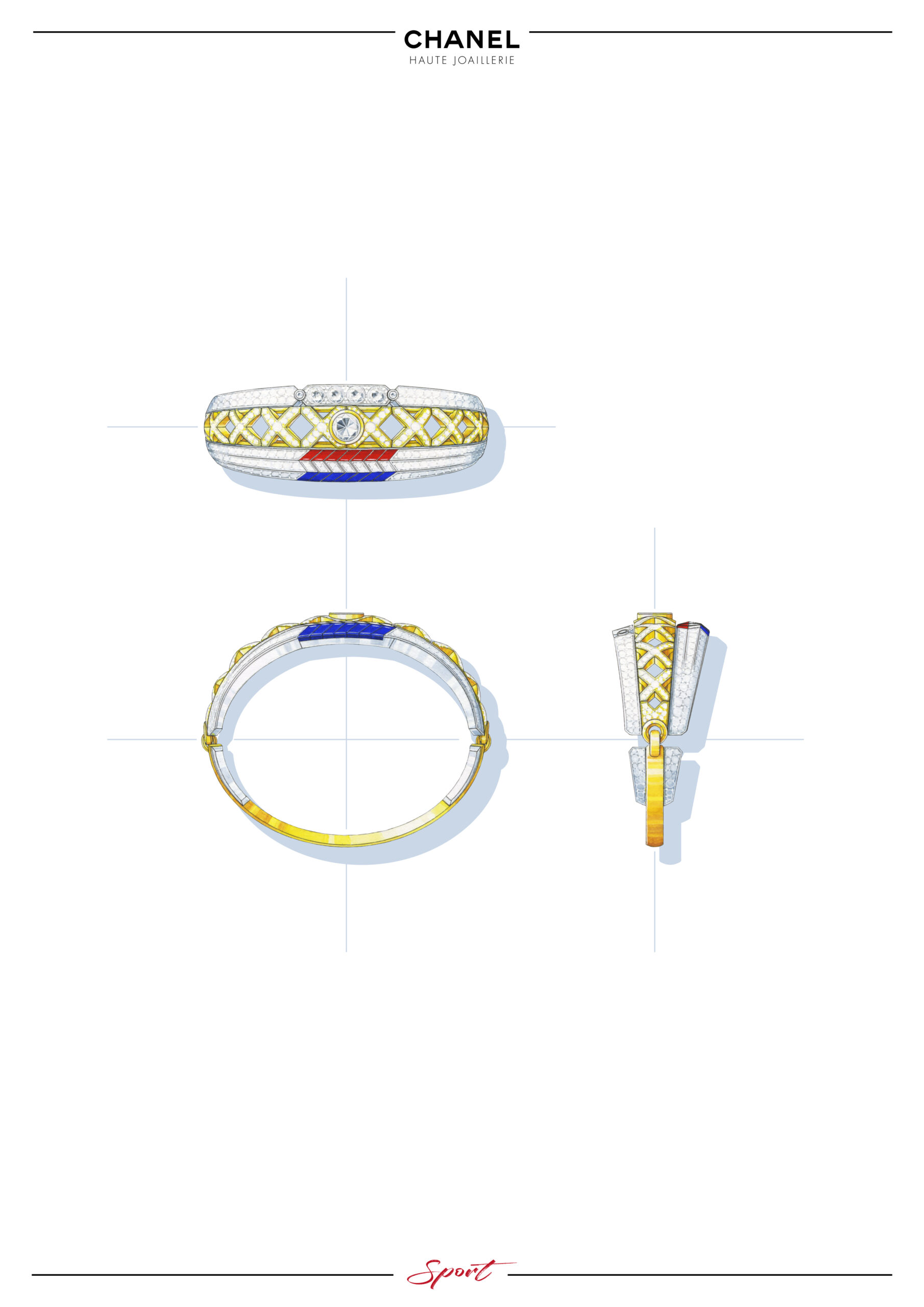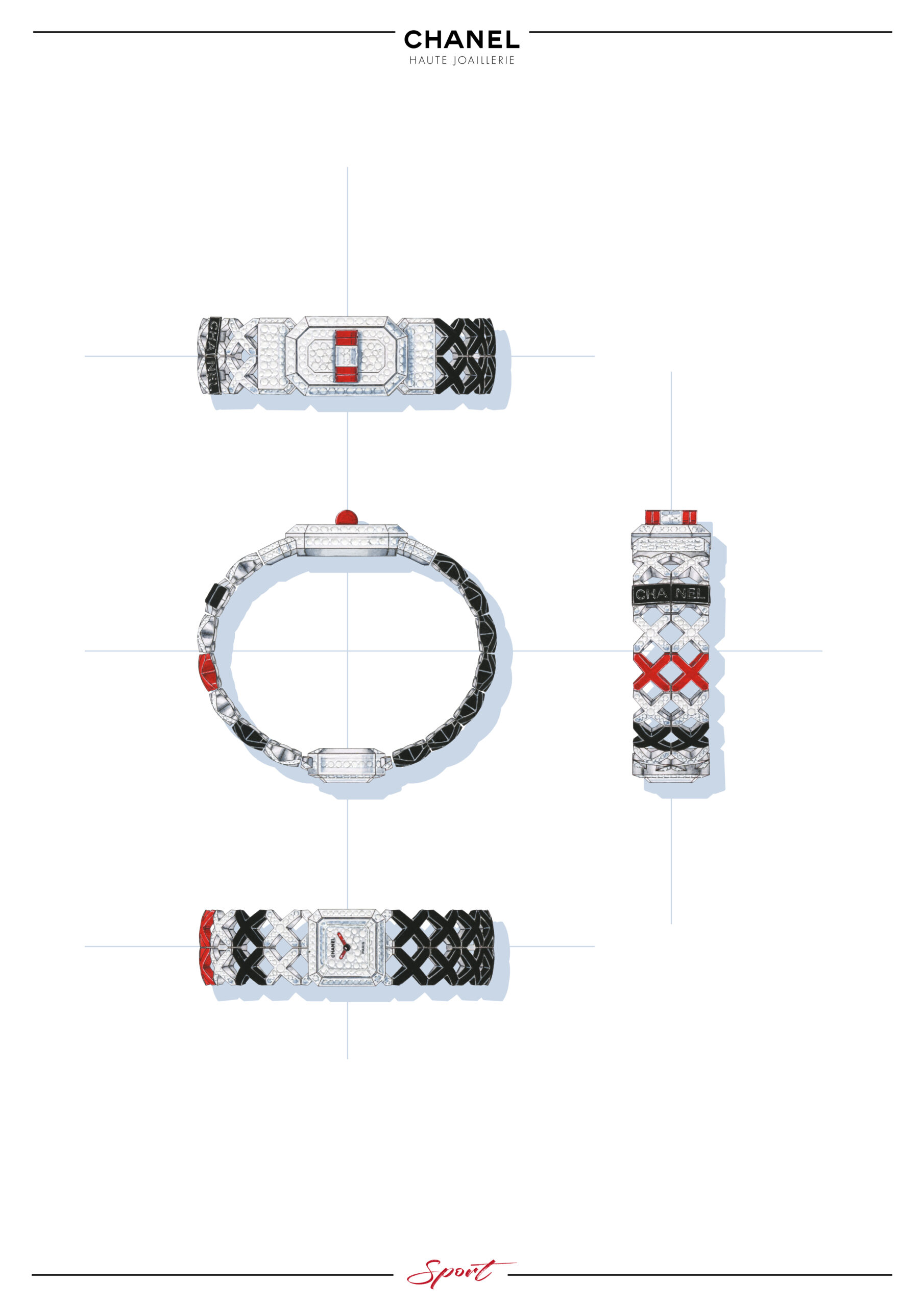 La collection Haute Joaillerie Sport s’inspire des codes de l’univers sportif en intégrant des motifs et des lignes dynamiques. Le chevron, symbole de rythme et de vitesse, est au cœur de cette collection, avec des volumes profilés qui rappellent l’anatomie du corps. Des graphismes et motifs emblématiques de CHANEL, comme le lion ou l’étoile, sont réinterprétés dans une version moderne et sportive. La signature CHANEL s’invite également à travers des imprimés ajourés pour la première fois dans la haute joaillerie.