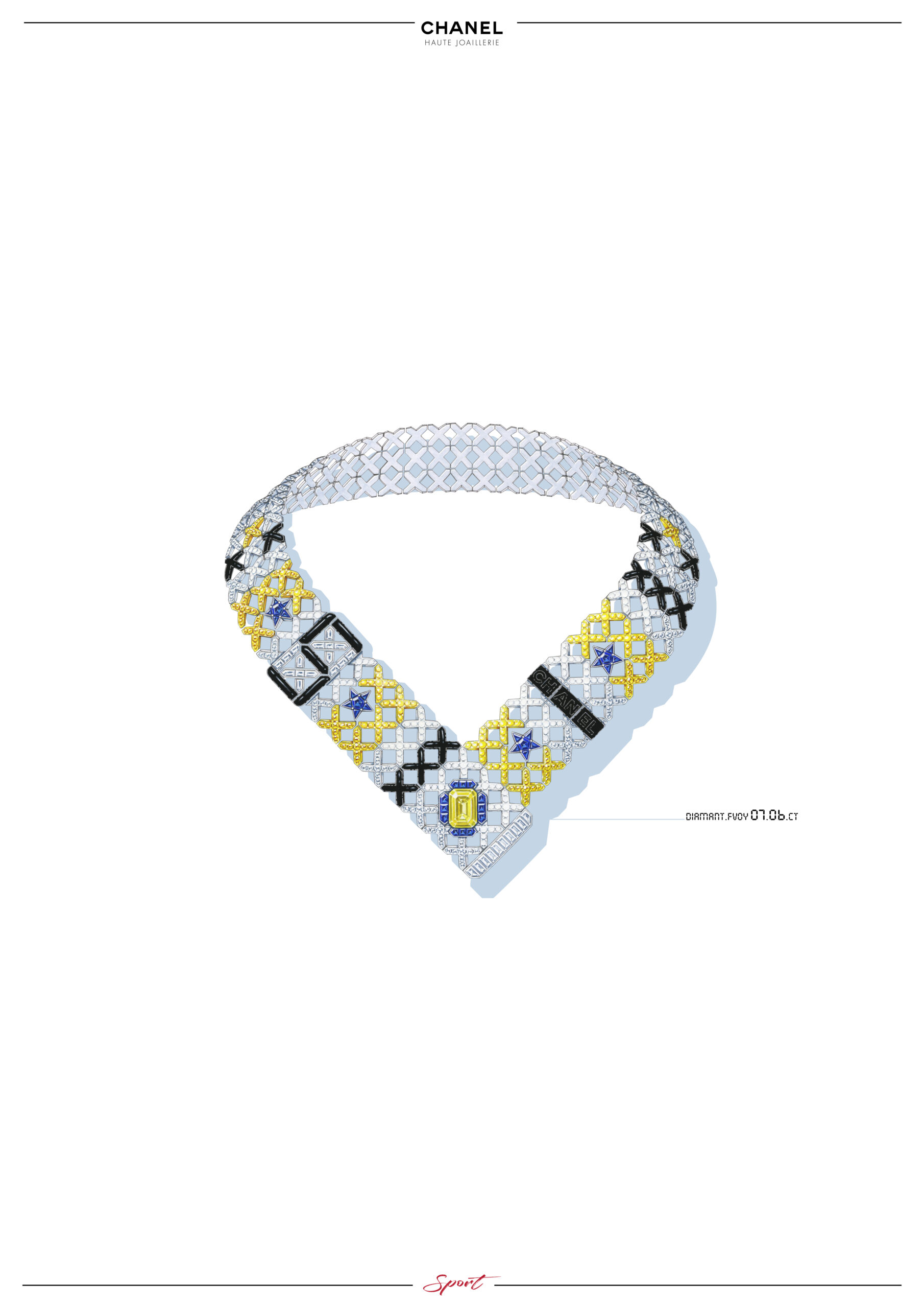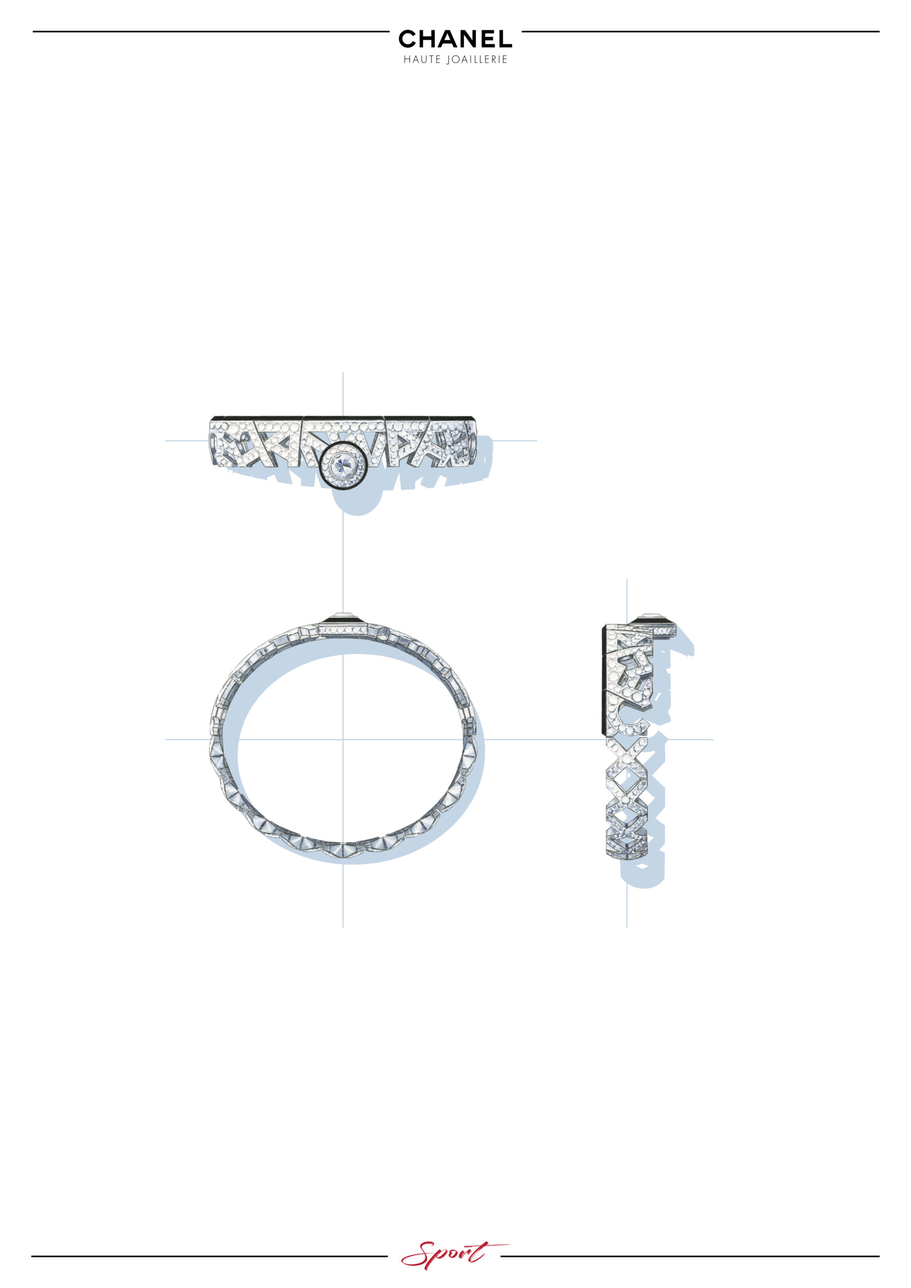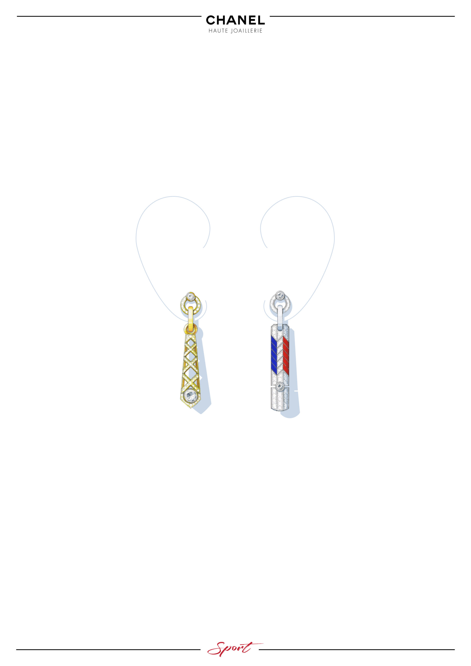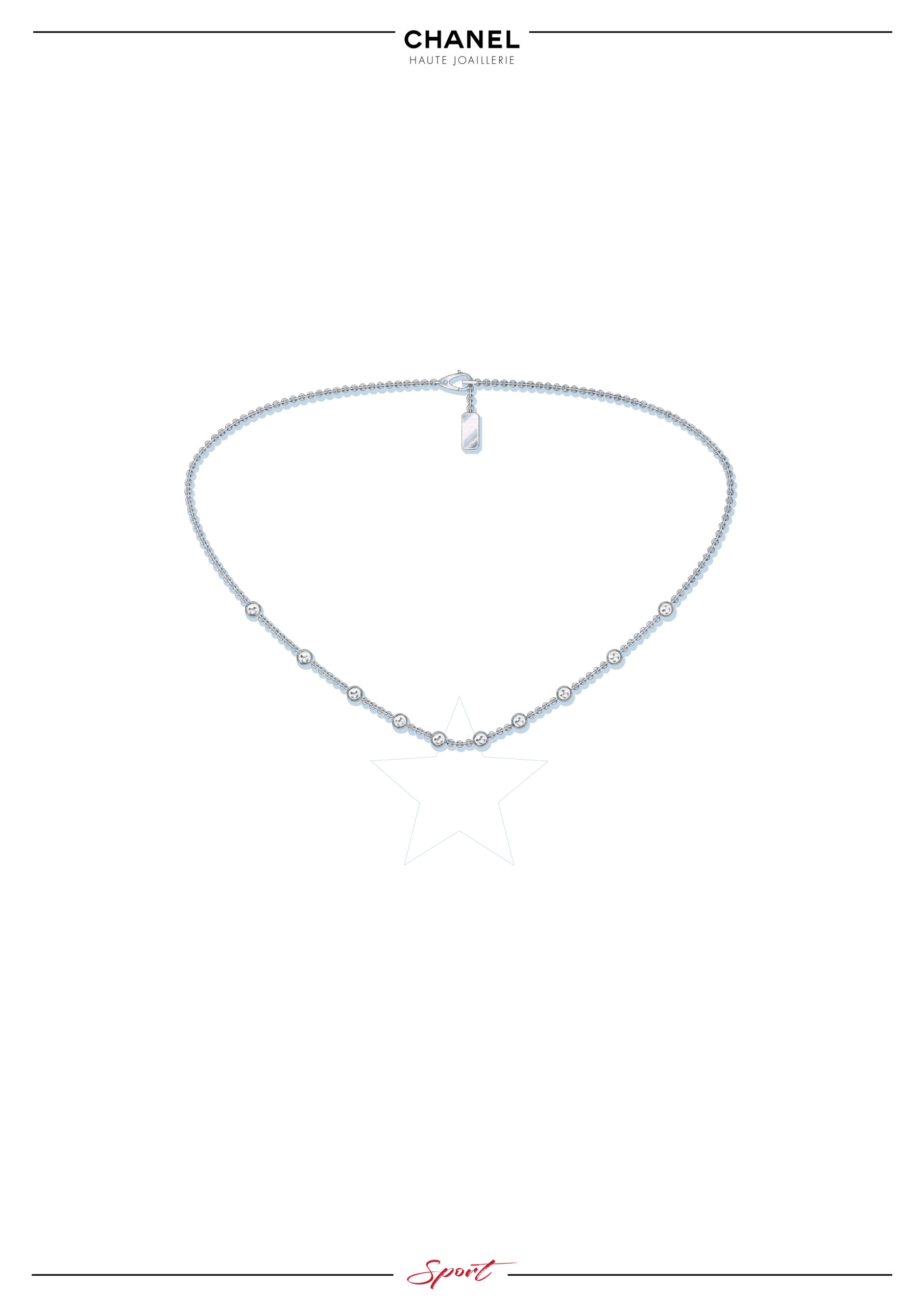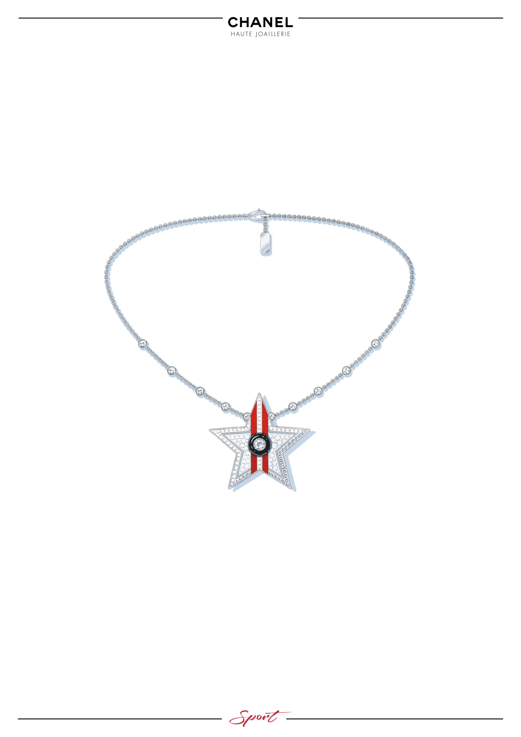 La collection Haute Joaillerie Sport s’inspire des codes de l’univers sportif en intégrant des motifs et des lignes dynamiques. Le chevron, symbole de rythme et de vitesse, est au cœur de cette collection, avec des volumes profilés qui rappellent l’anatomie du corps. Des graphismes et motifs emblématiques de CHANEL, comme le lion ou l’étoile, sont réinterprétés dans une version moderne et sportive. La signature CHANEL s’invite également à travers des imprimés ajourés pour la première fois dans la haute joaillerie.