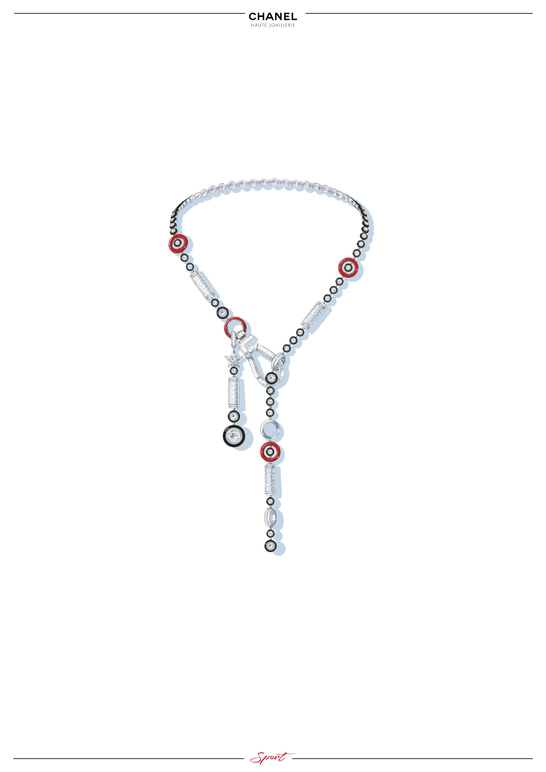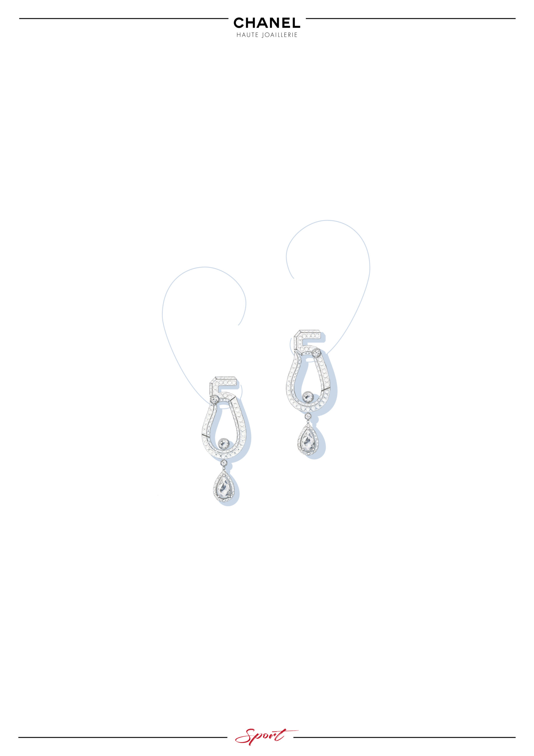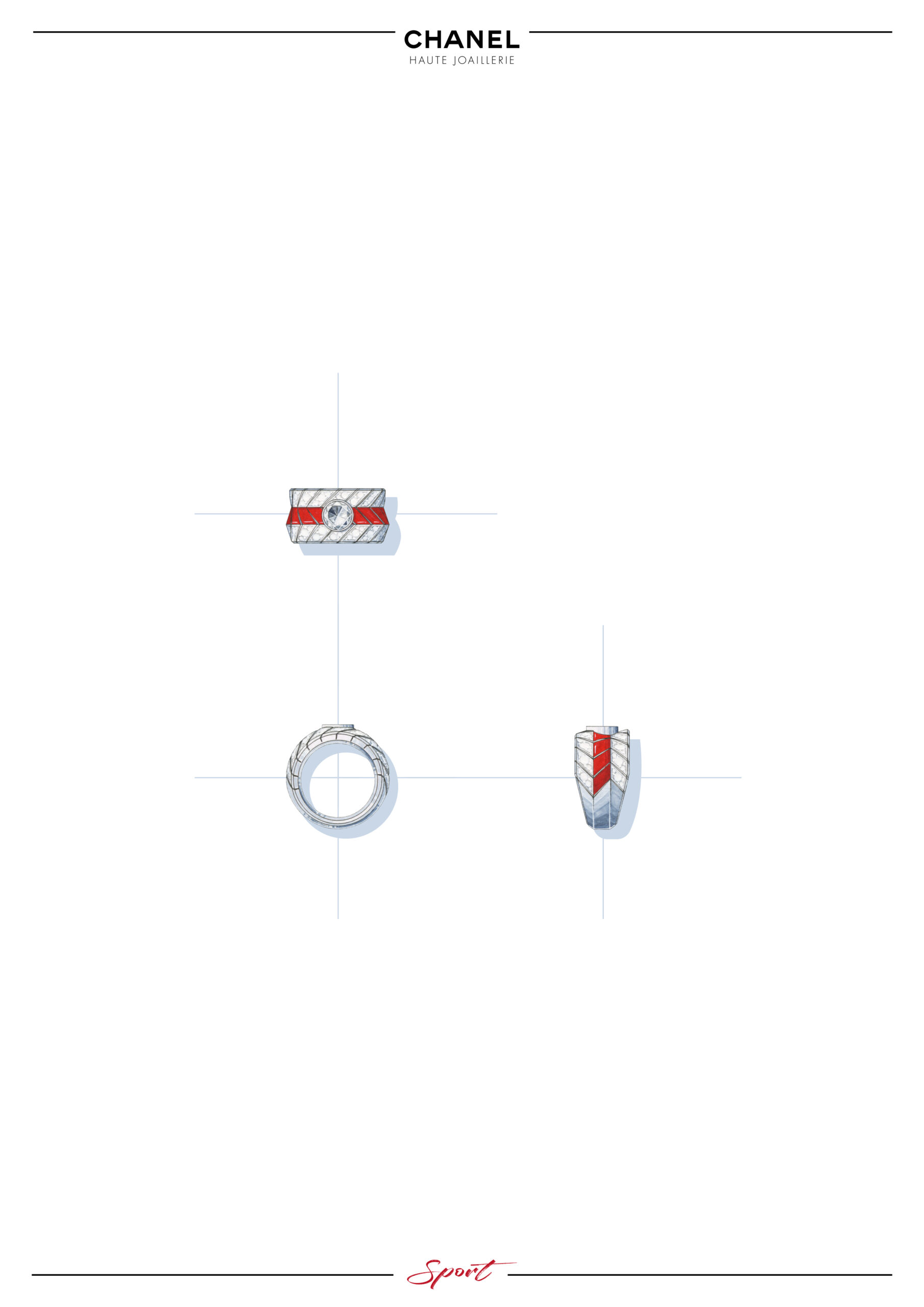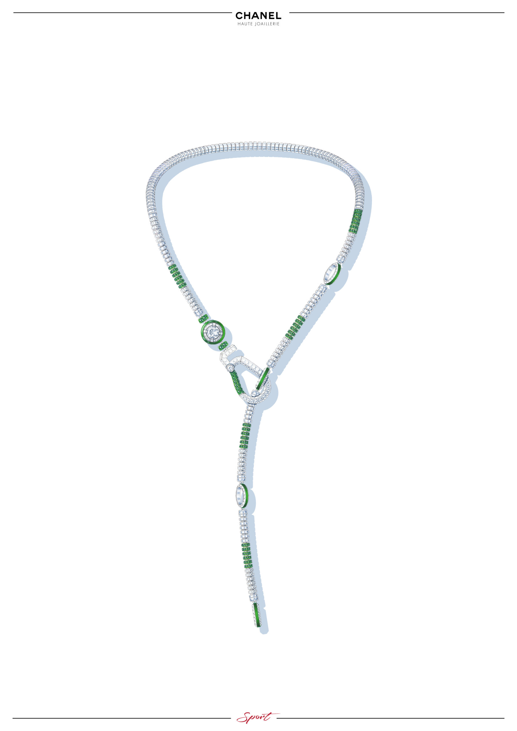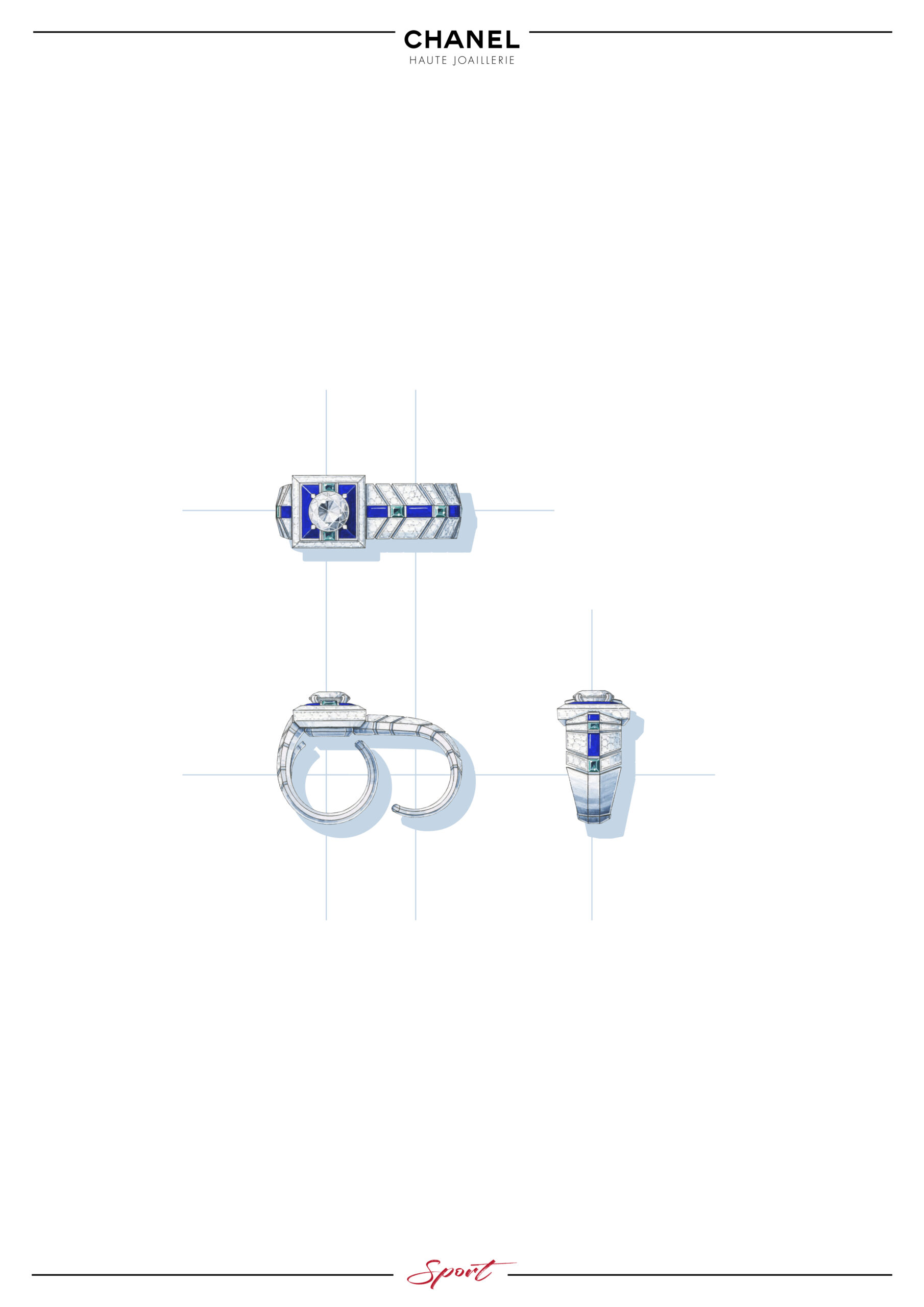 La collection Haute Joaillerie Sport s’inspire des codes de l’univers sportif en intégrant des motifs et des lignes dynamiques. Le chevron, symbole de rythme et de vitesse, est au cœur de cette collection, avec des volumes profilés qui rappellent l’anatomie du corps. Des graphismes et motifs emblématiques de CHANEL, comme le lion ou l’étoile, sont réinterprétés dans une version moderne et sportive. La signature CHANEL s’invite également à travers des imprimés ajourés pour la première fois dans la haute joaillerie.