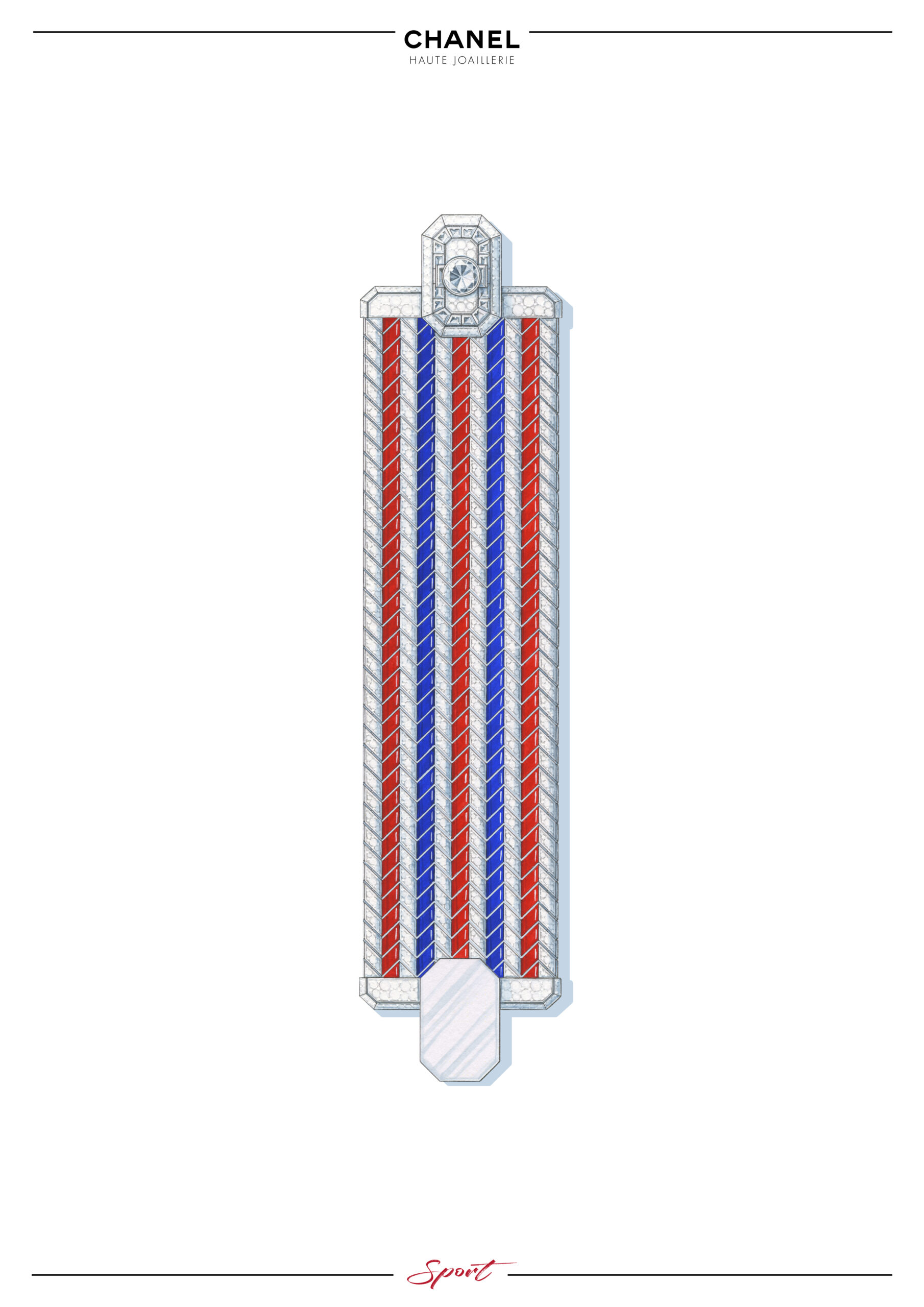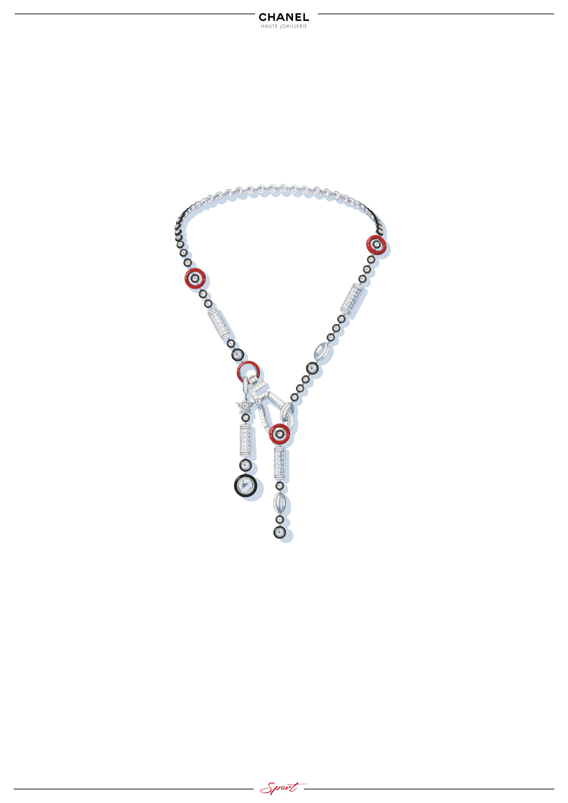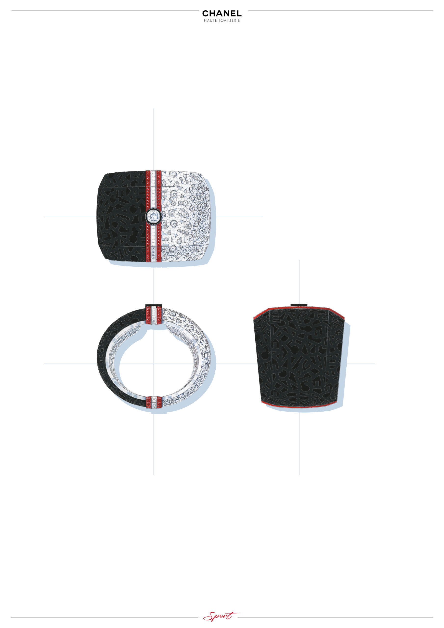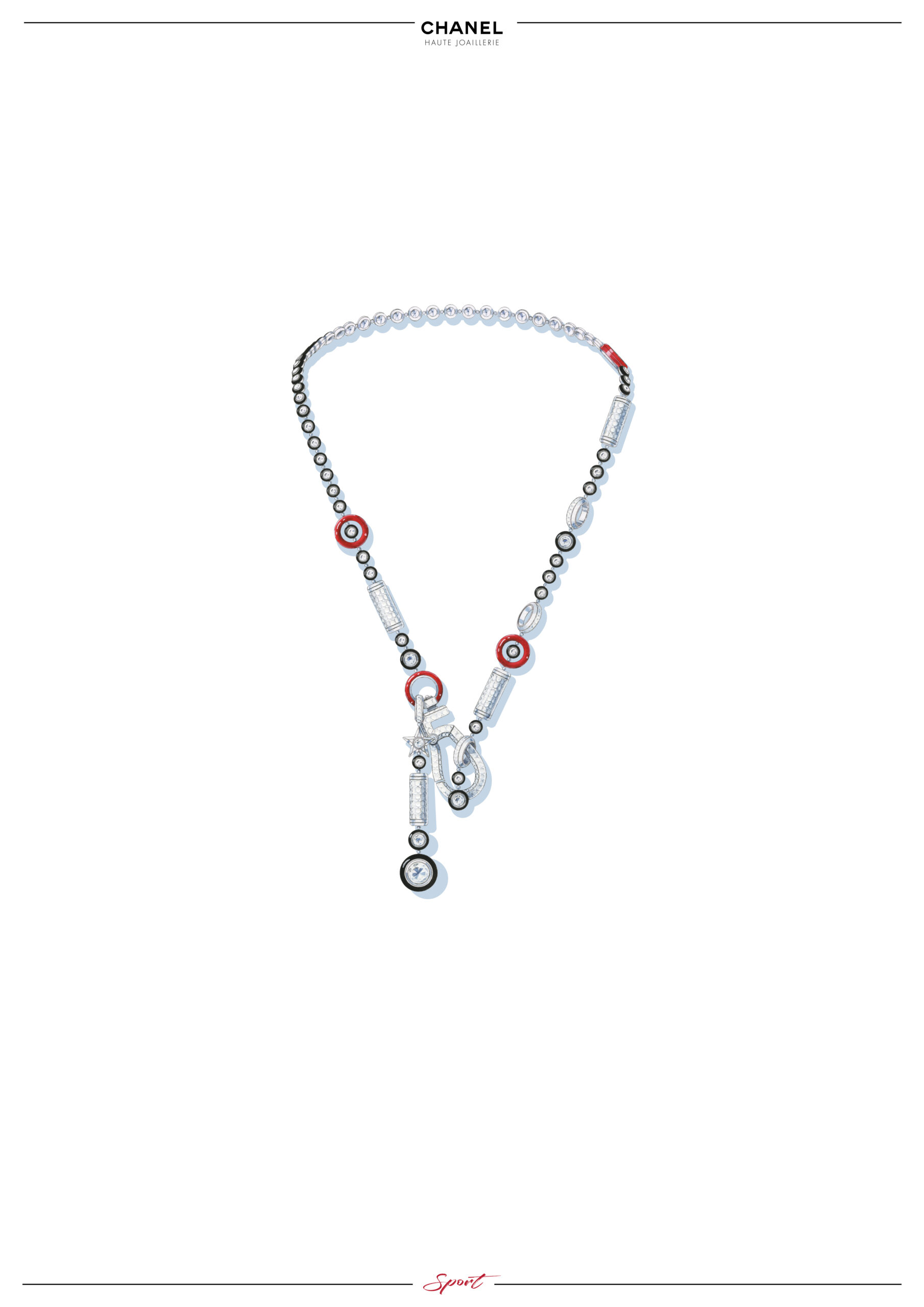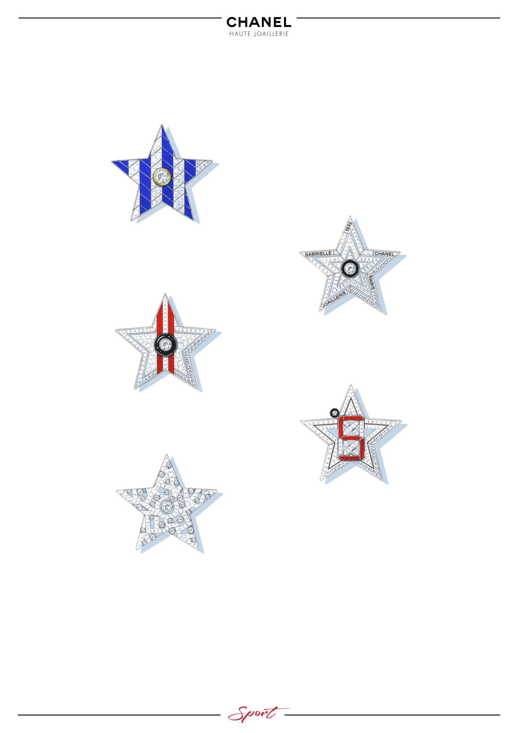 La collection Haute Joaillerie Sport s’inspire des codes de l’univers sportif en intégrant des motifs et des lignes dynamiques. Le chevron, symbole de rythme et de vitesse, est au cœur de cette collection, avec des volumes profilés qui rappellent l’anatomie du corps. Des graphismes et motifs emblématiques de CHANEL, comme le lion ou l’étoile, sont réinterprétés dans une version moderne et sportive. La signature CHANEL s’invite également à travers des imprimés ajourés pour la première fois dans la haute joaillerie.