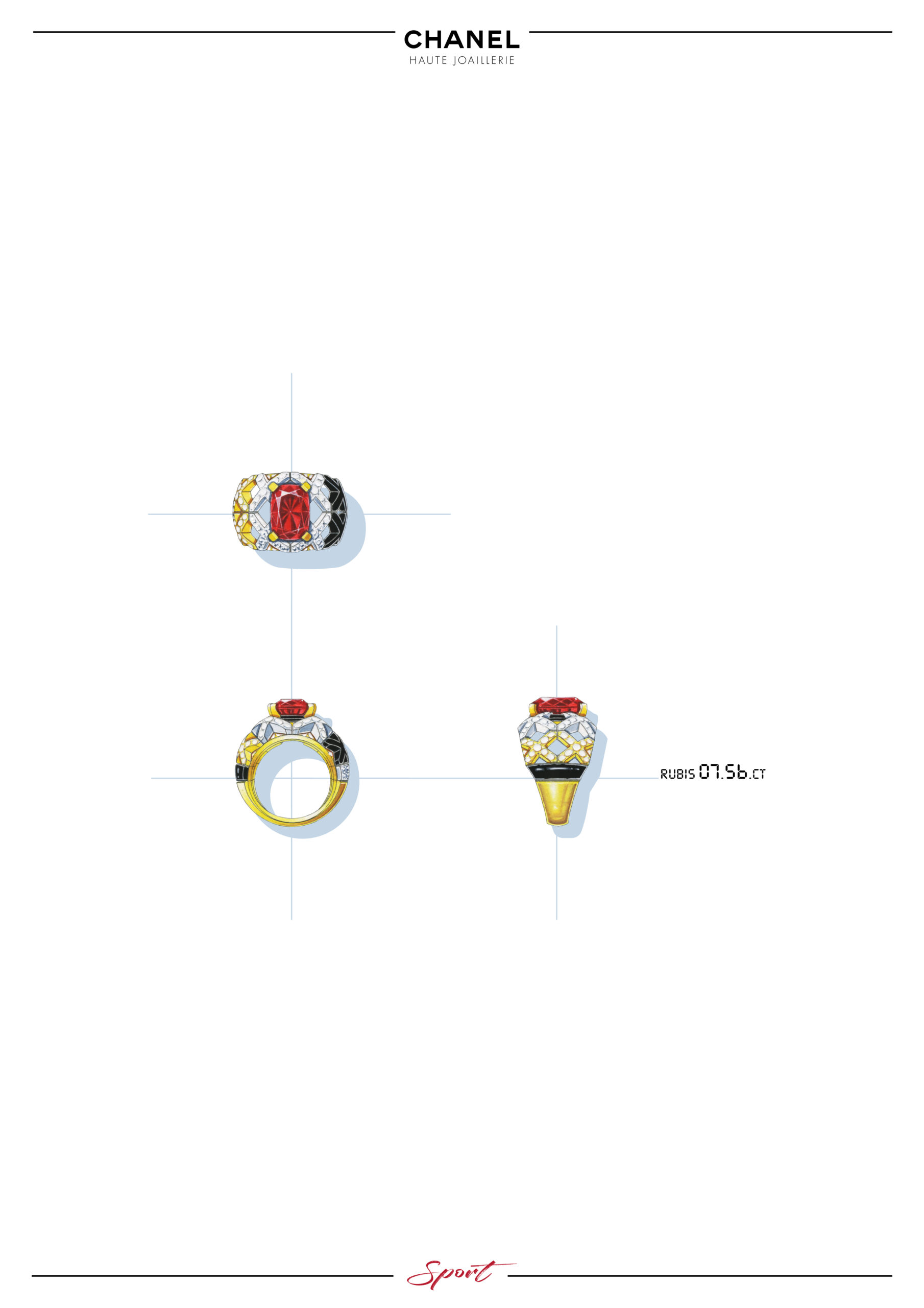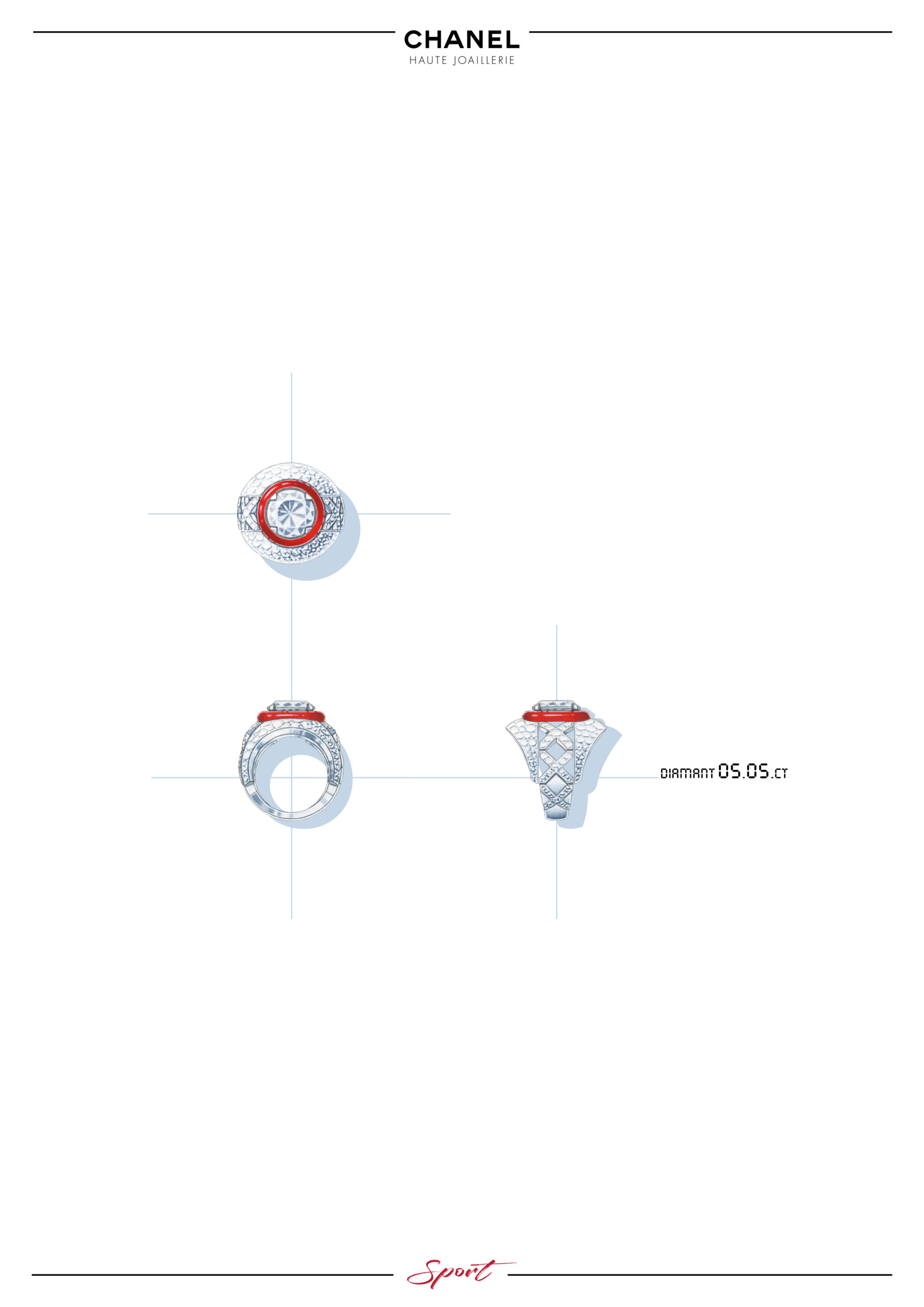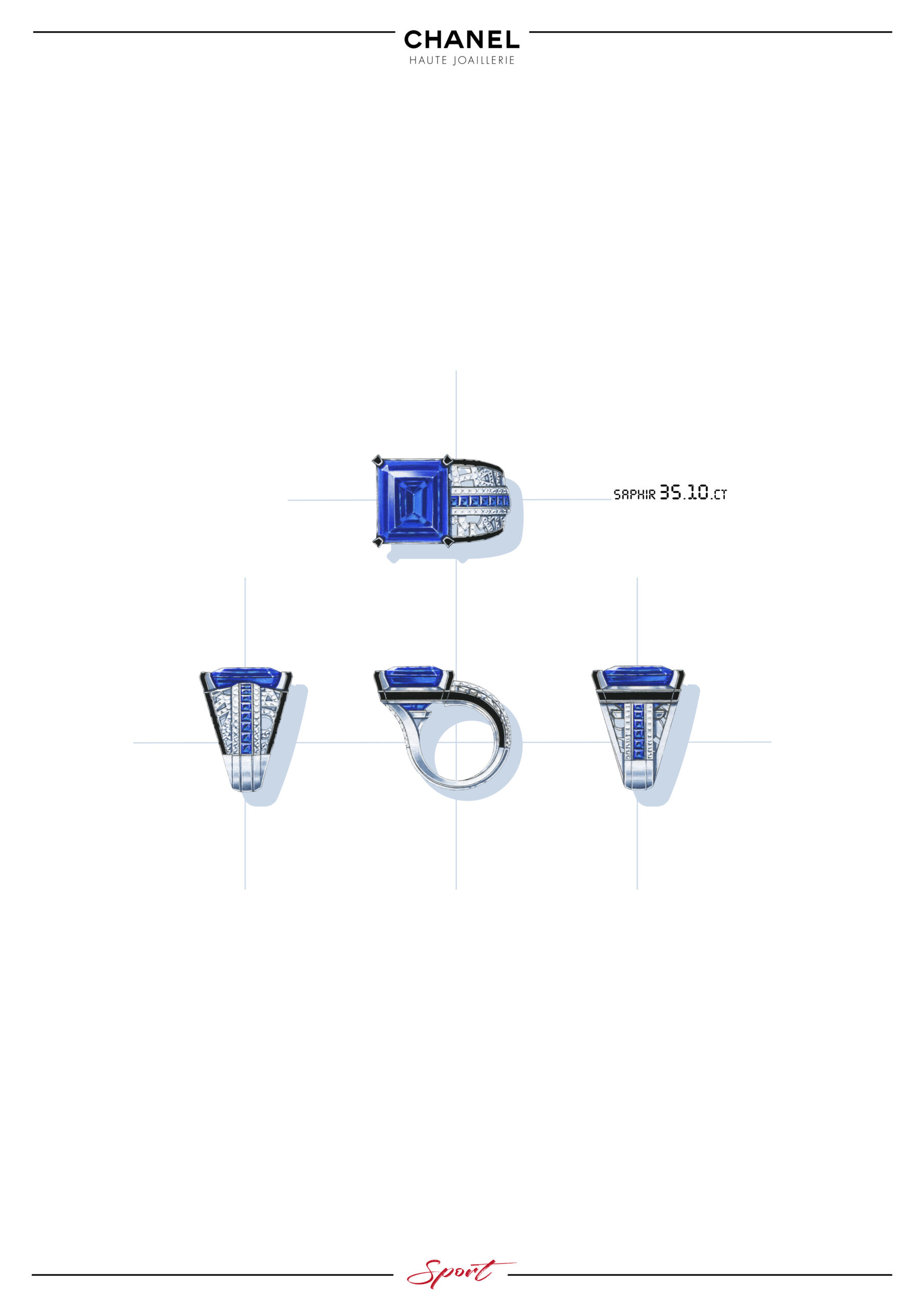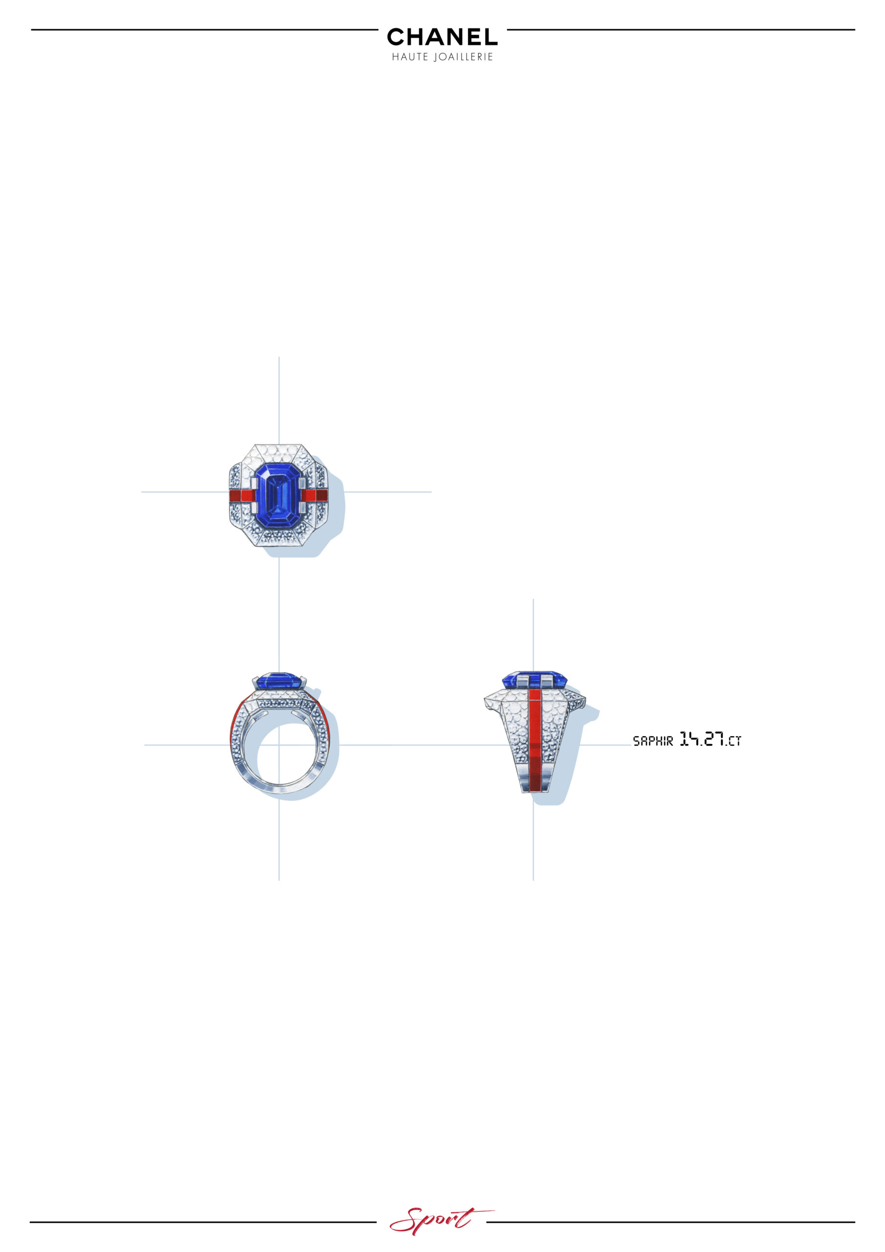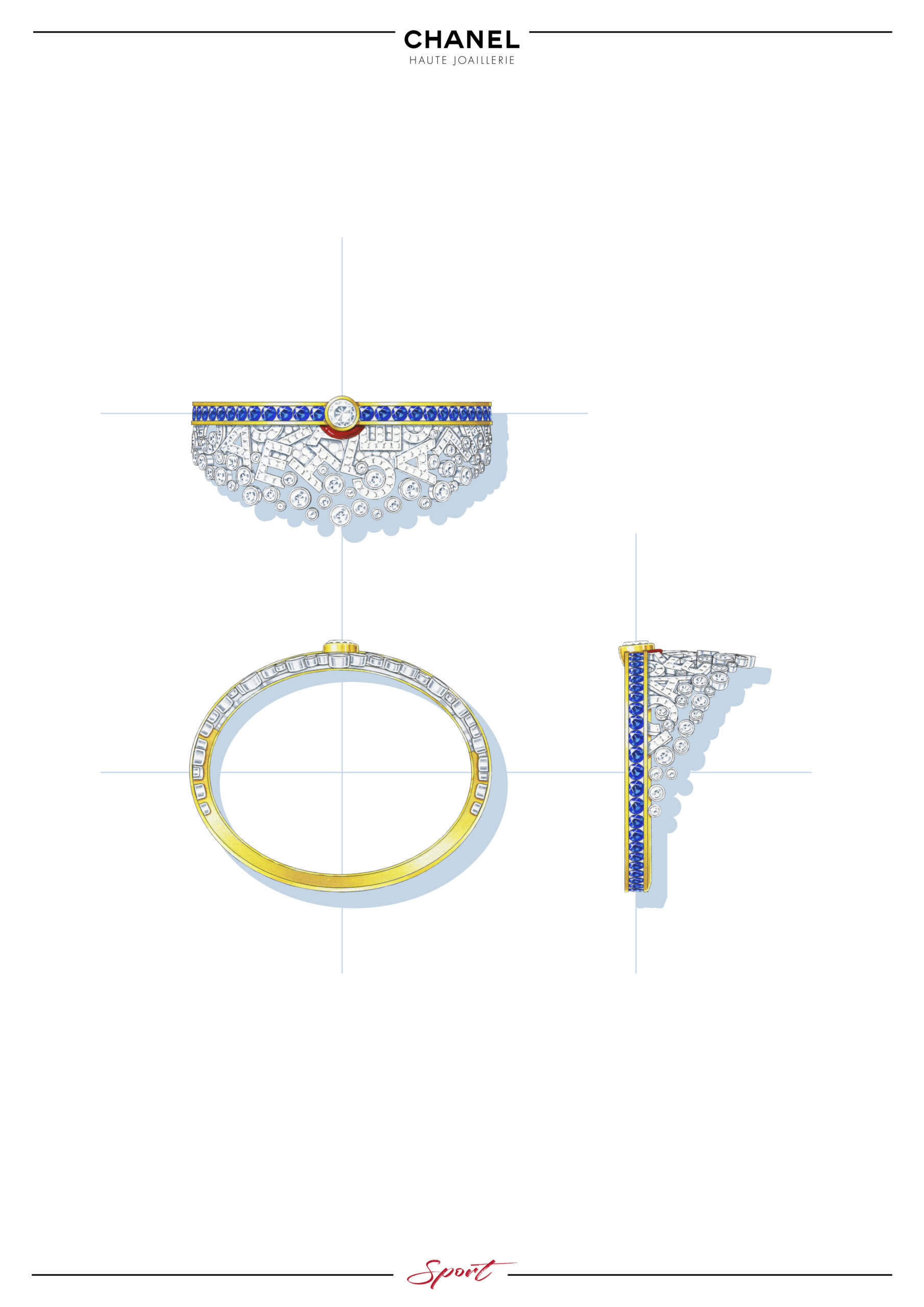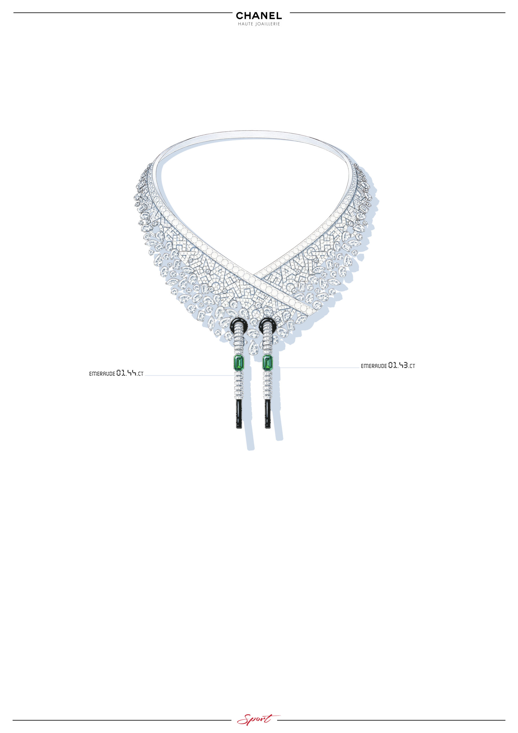 La collection Haute Joaillerie Sport s’inspire des codes de l’univers sportif en intégrant des motifs et des lignes dynamiques. Le chevron, symbole de rythme et de vitesse, est au cœur de cette collection, avec des volumes profilés qui rappellent l’anatomie du corps. Des graphismes et motifs emblématiques de CHANEL, comme le lion ou l’étoile, sont réinterprétés dans une version moderne et sportive. La signature CHANEL s’invite également à travers des imprimés ajourés pour la première fois dans la haute joaillerie.