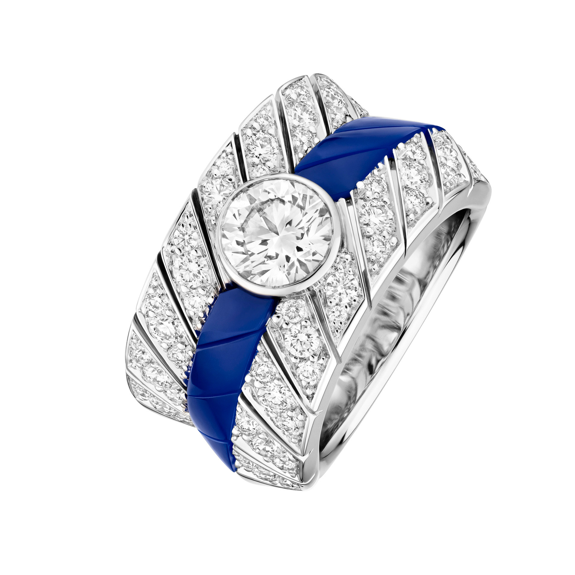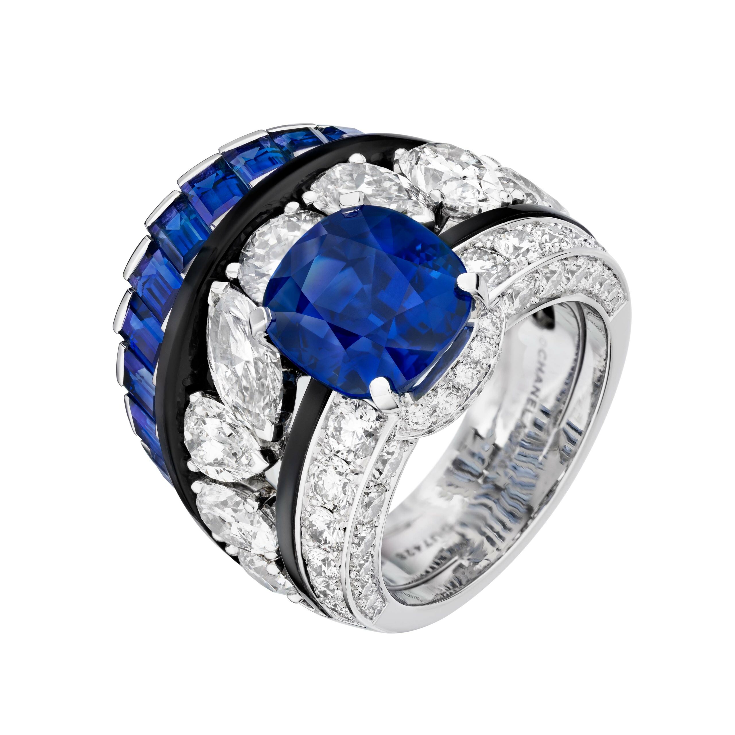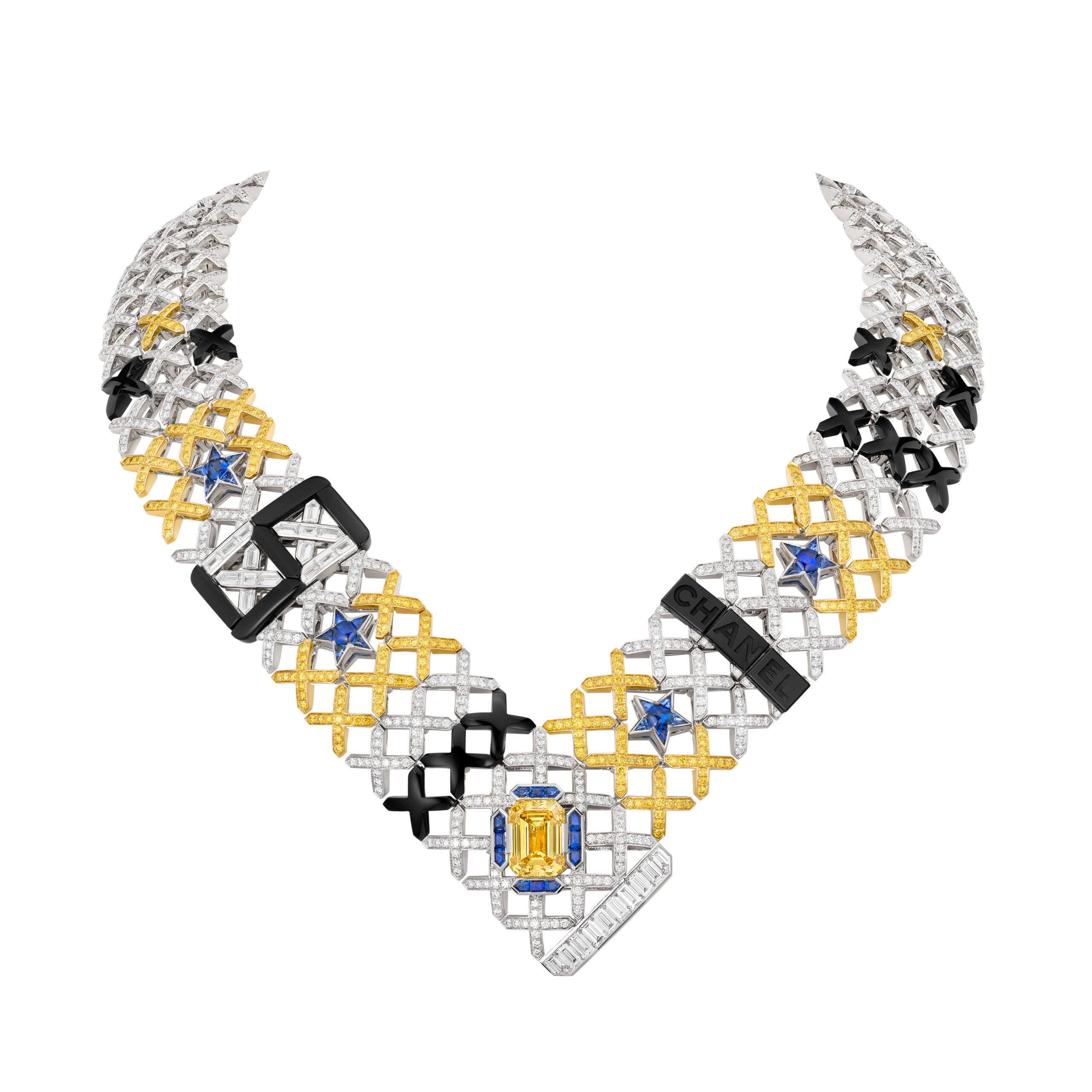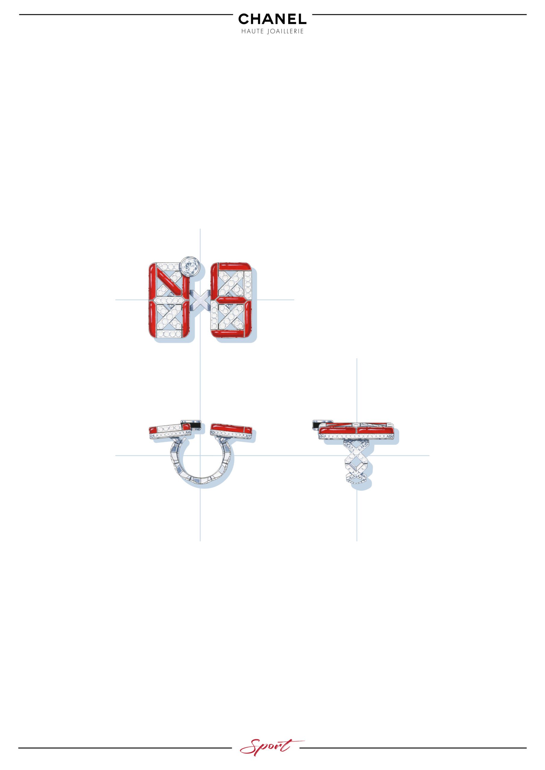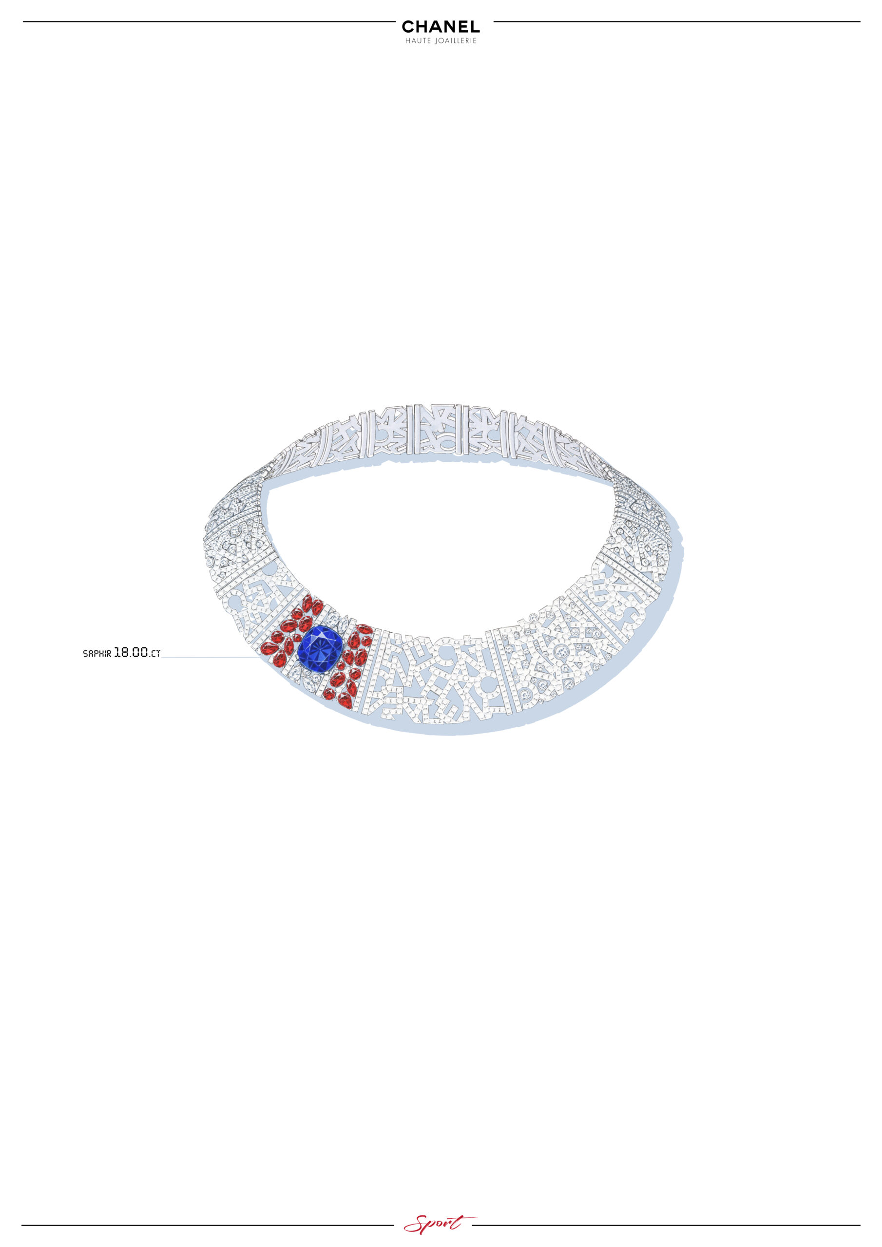 La collection Haute Joaillerie Sport s’inspire des codes de l’univers sportif en intégrant des motifs et des lignes dynamiques. Le chevron, symbole de rythme et de vitesse, est au cœur de cette collection, avec des volumes profilés qui rappellent l’anatomie du corps. Des graphismes et motifs emblématiques de CHANEL, comme le lion ou l’étoile, sont réinterprétés dans une version moderne et sportive. La signature CHANEL s’invite également à travers des imprimés ajourés pour la première fois dans la haute joaillerie.