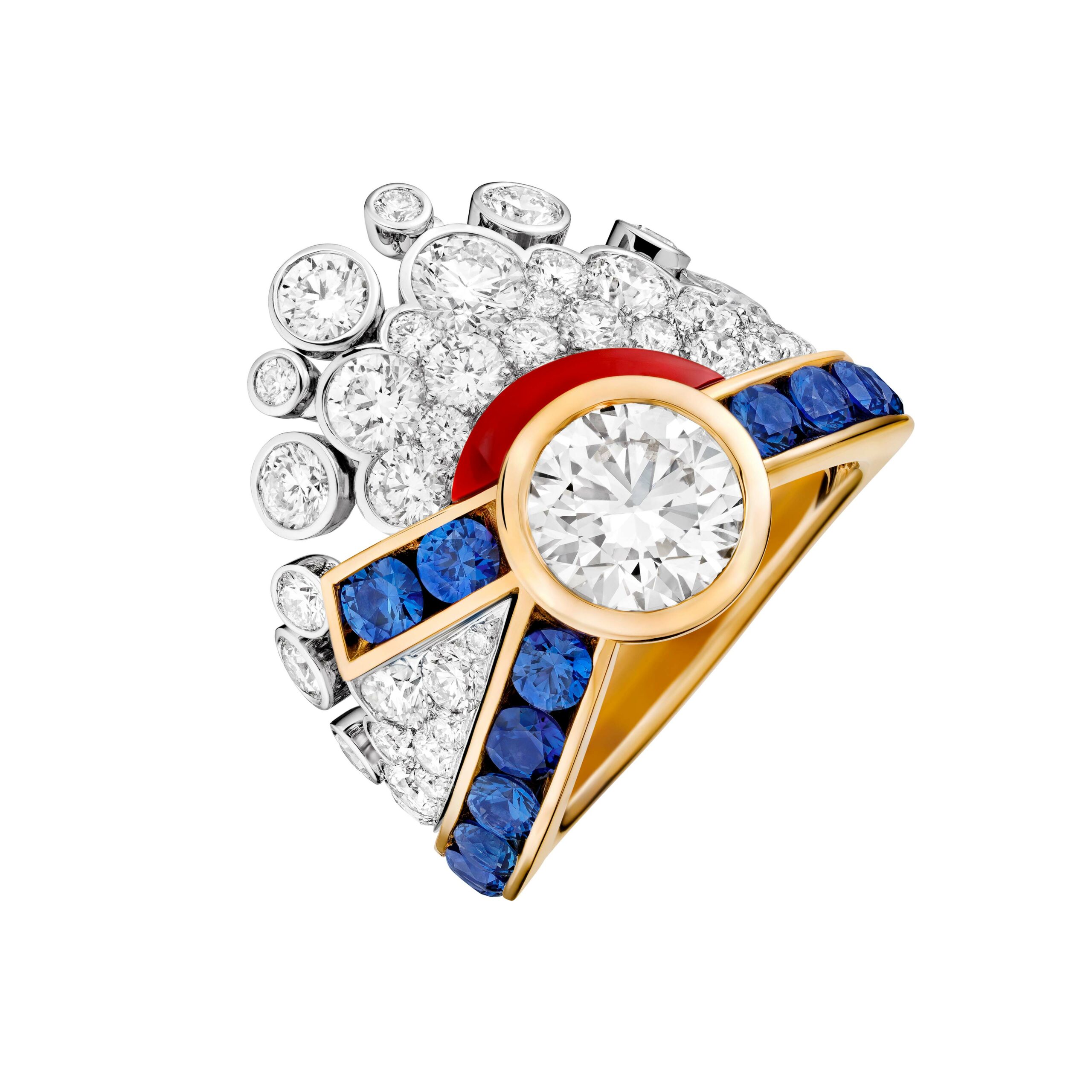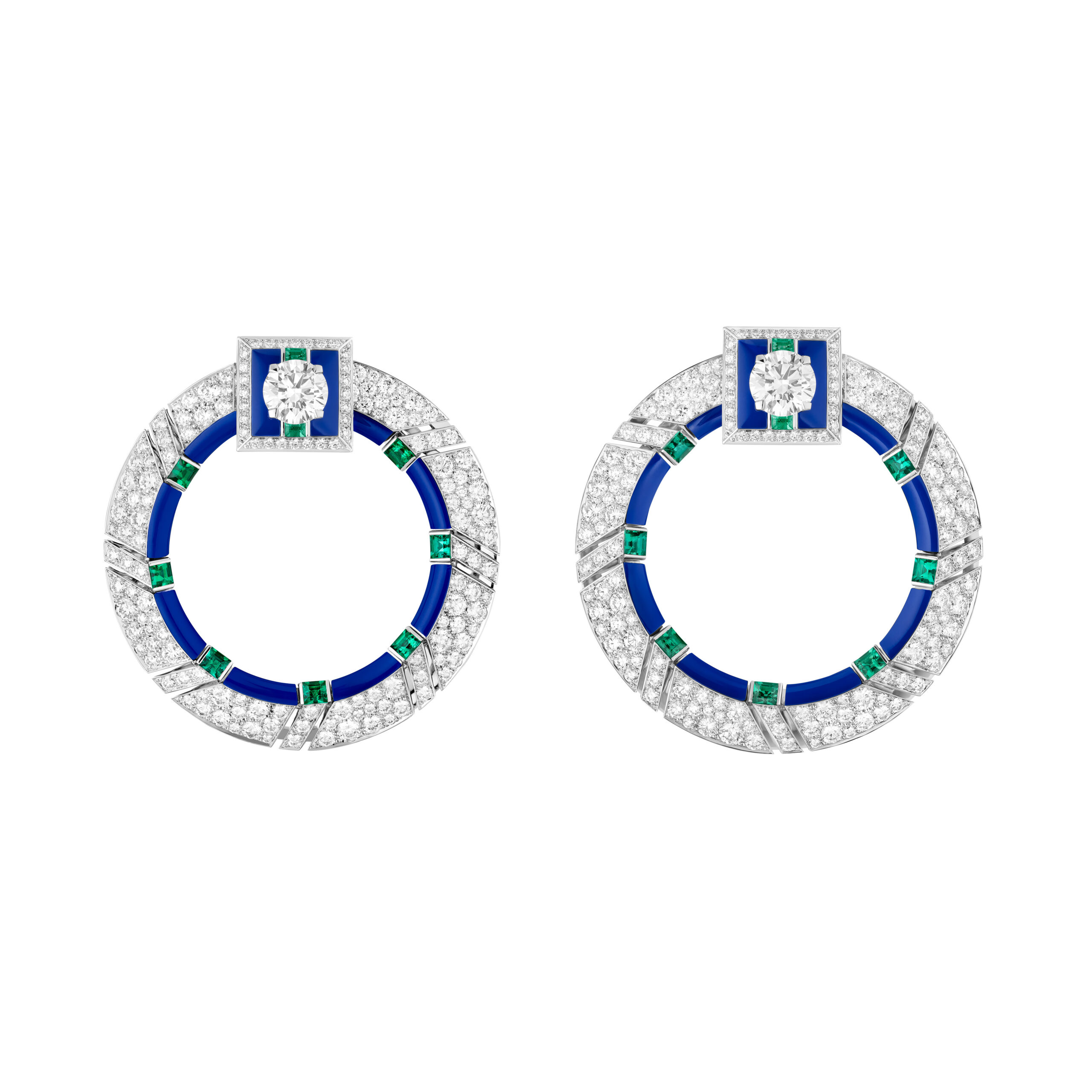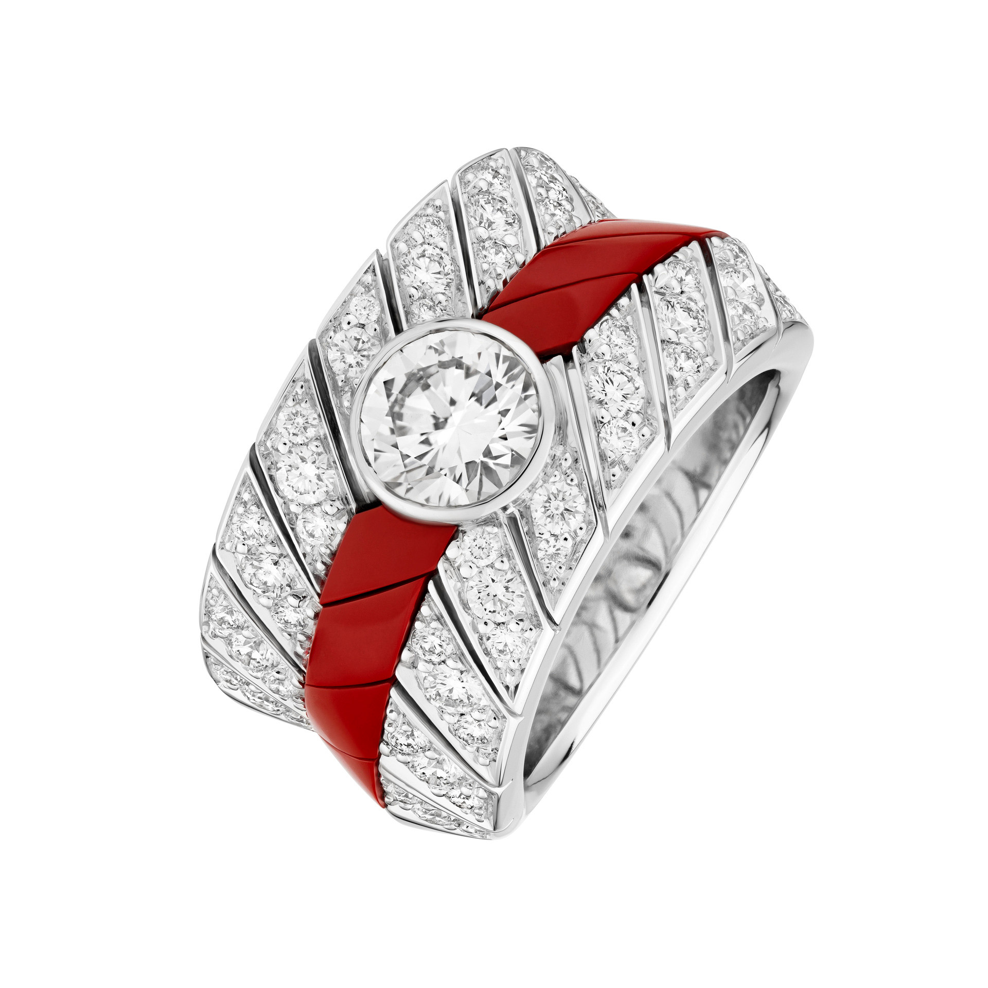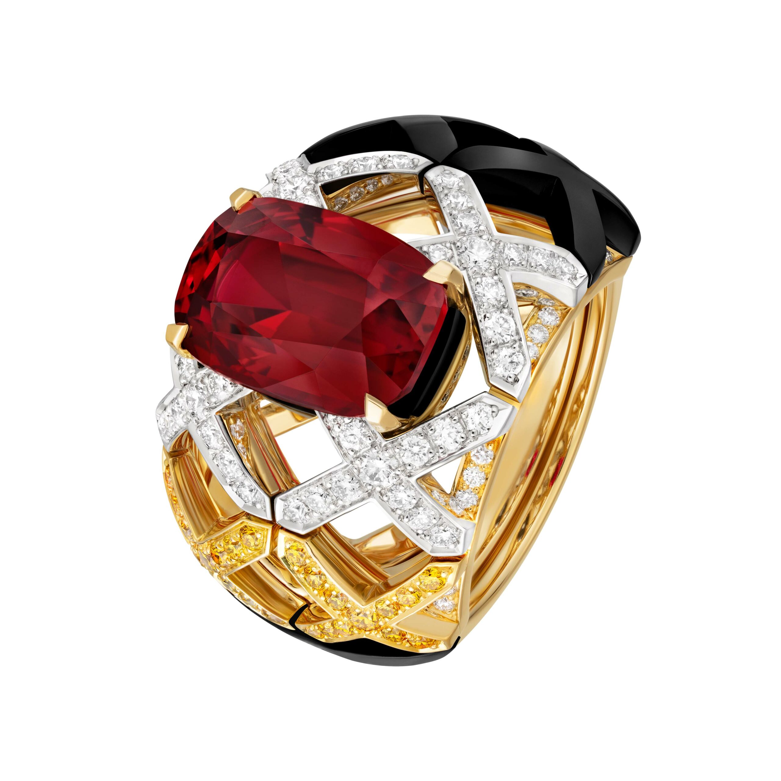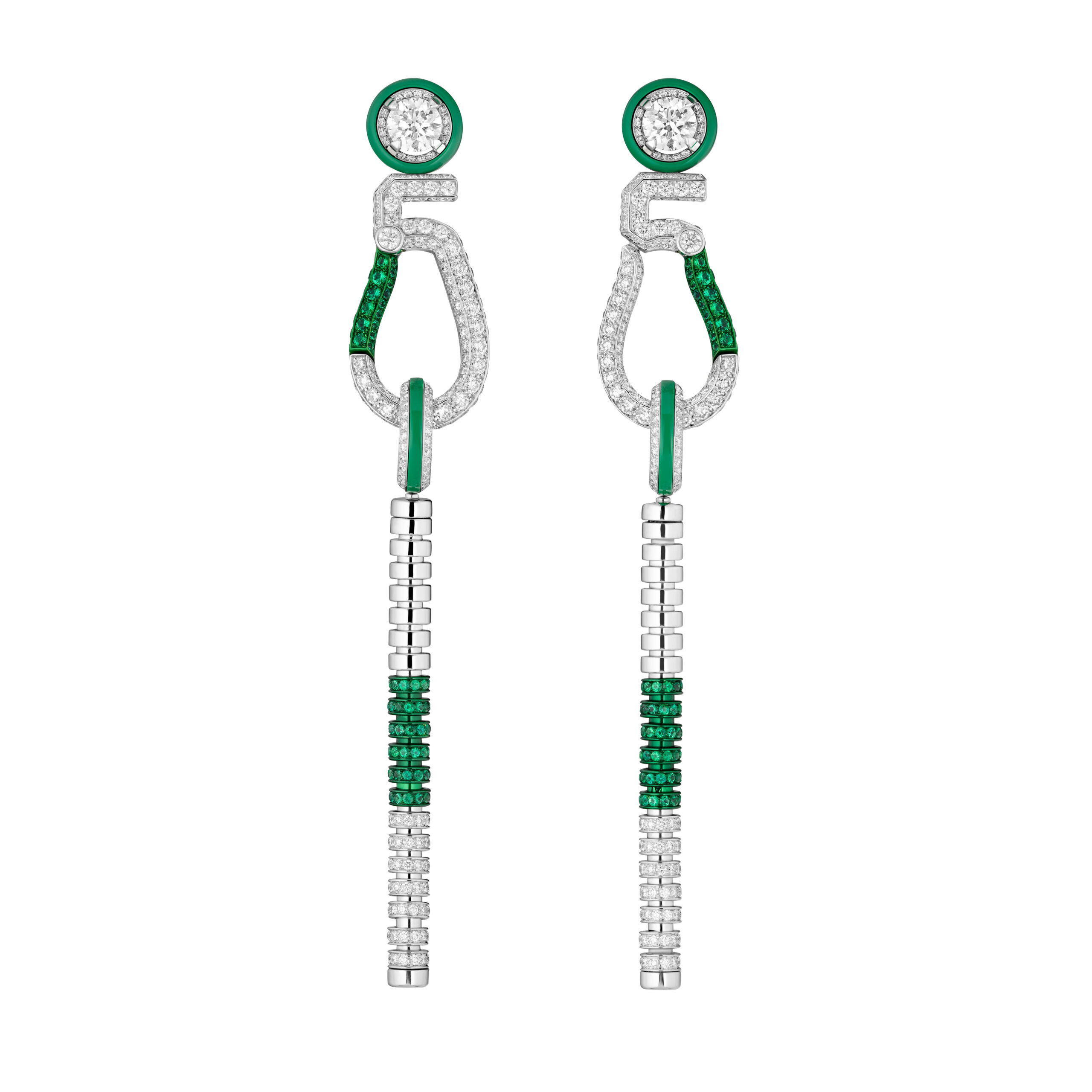 La collection Haute Joaillerie Sport s’inspire des codes de l’univers sportif en intégrant des motifs et des lignes dynamiques. Le chevron, symbole de rythme et de vitesse, est au cœur de cette collection, avec des volumes profilés qui rappellent l’anatomie du corps. Des graphismes et motifs emblématiques de CHANEL, comme le lion ou l’étoile, sont réinterprétés dans une version moderne et sportive. La signature CHANEL s’invite également à travers des imprimés ajourés pour la première fois dans la haute joaillerie.