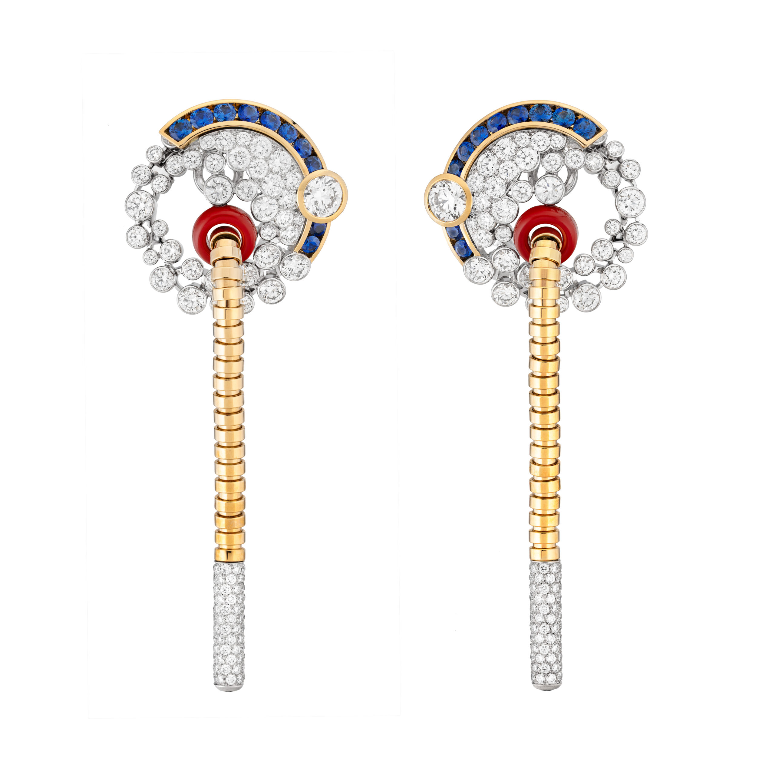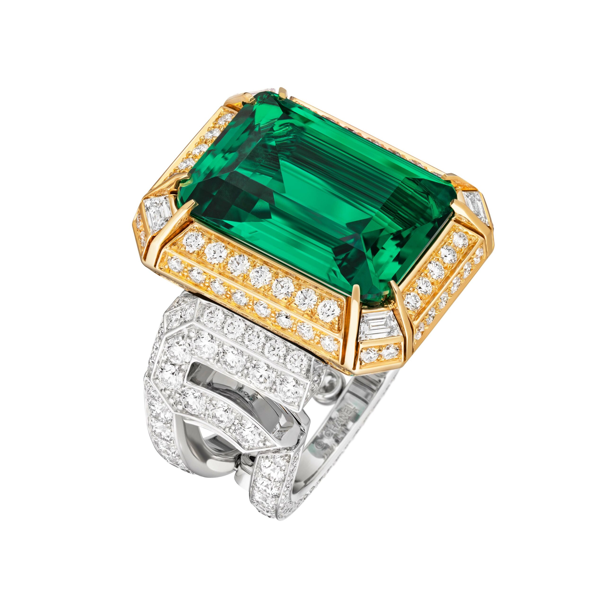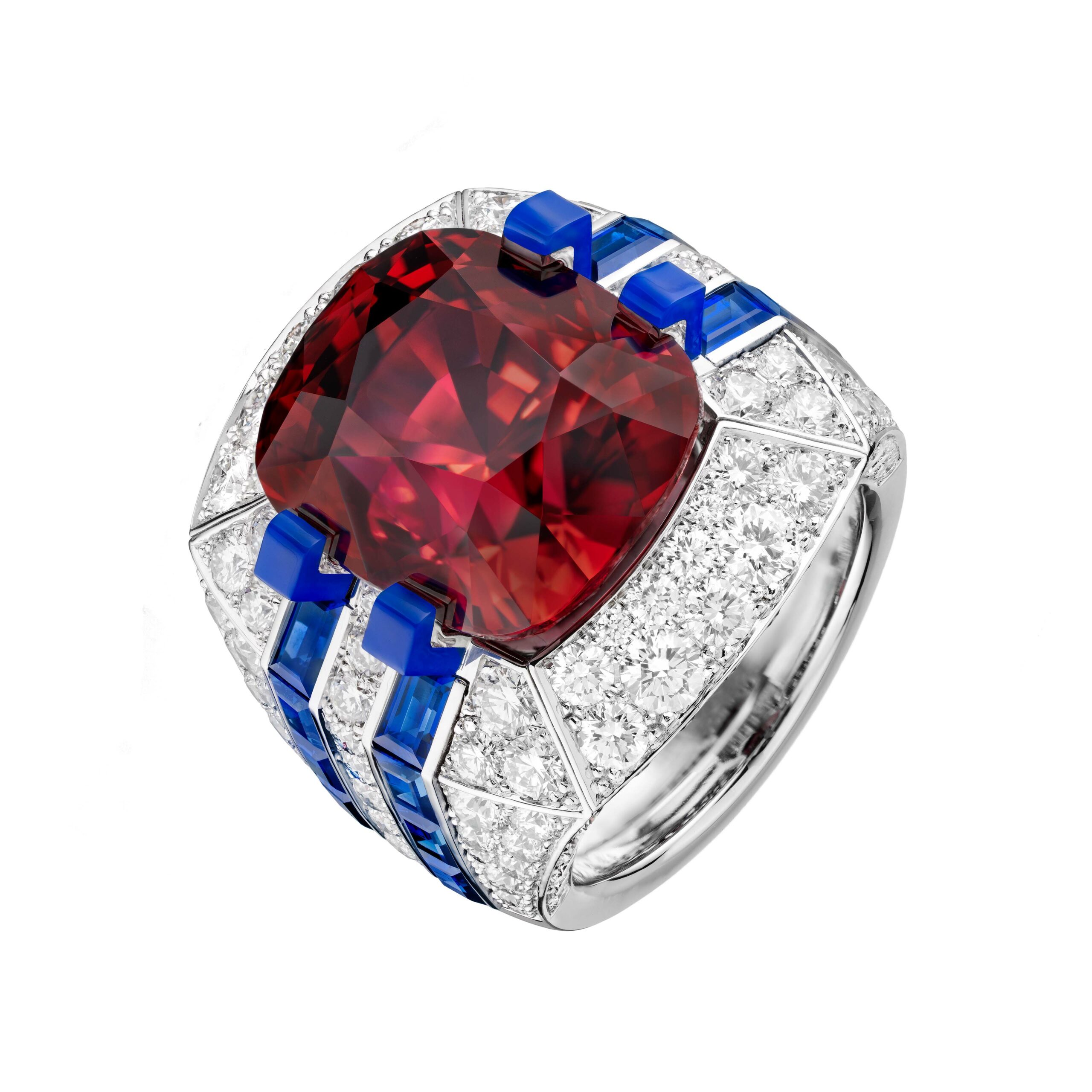 La collection Haute Joaillerie Sport propose une sélection de pierres précieuses de grande qualité, sublimant chaque pièce. Parmi elles, on retrouve un ensemble exceptionnel de saphirs Cachemire, résultat de plusieurs années de recherche. Ces pierres aux teintes vibrantes, contrastant avec des bicolores ou tricolores, apportent une profondeur et une luminosité incomparables. Le mariage de ces gemmes avec des métaux précieux et des matériaux innovants crée une harmonie parfaite entre tradition et modernité.