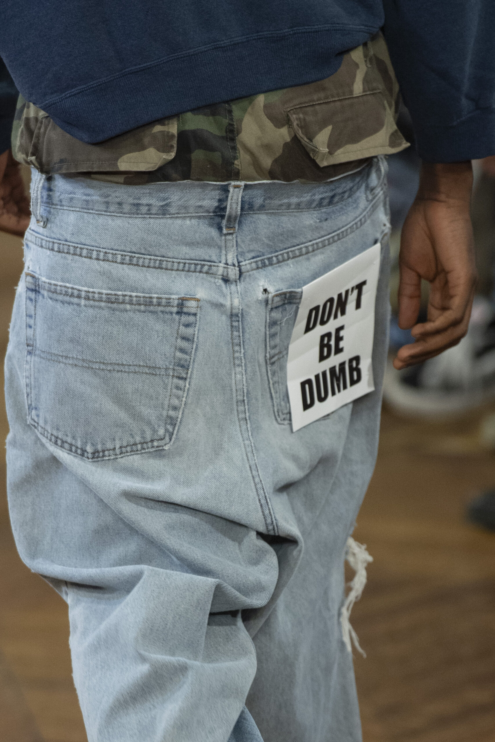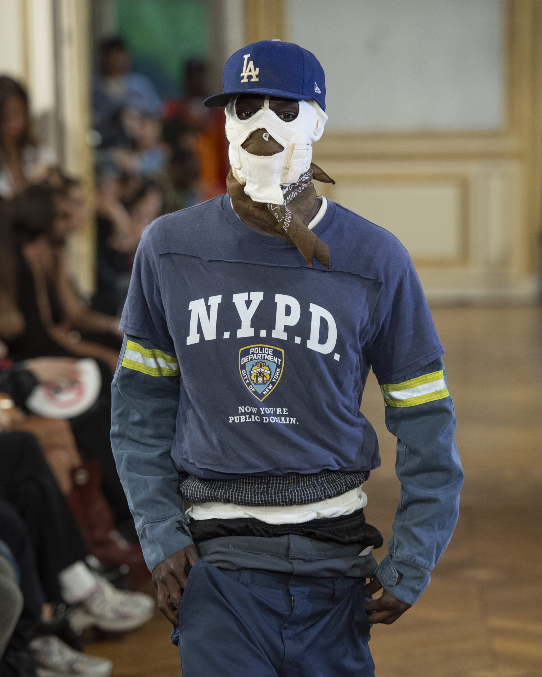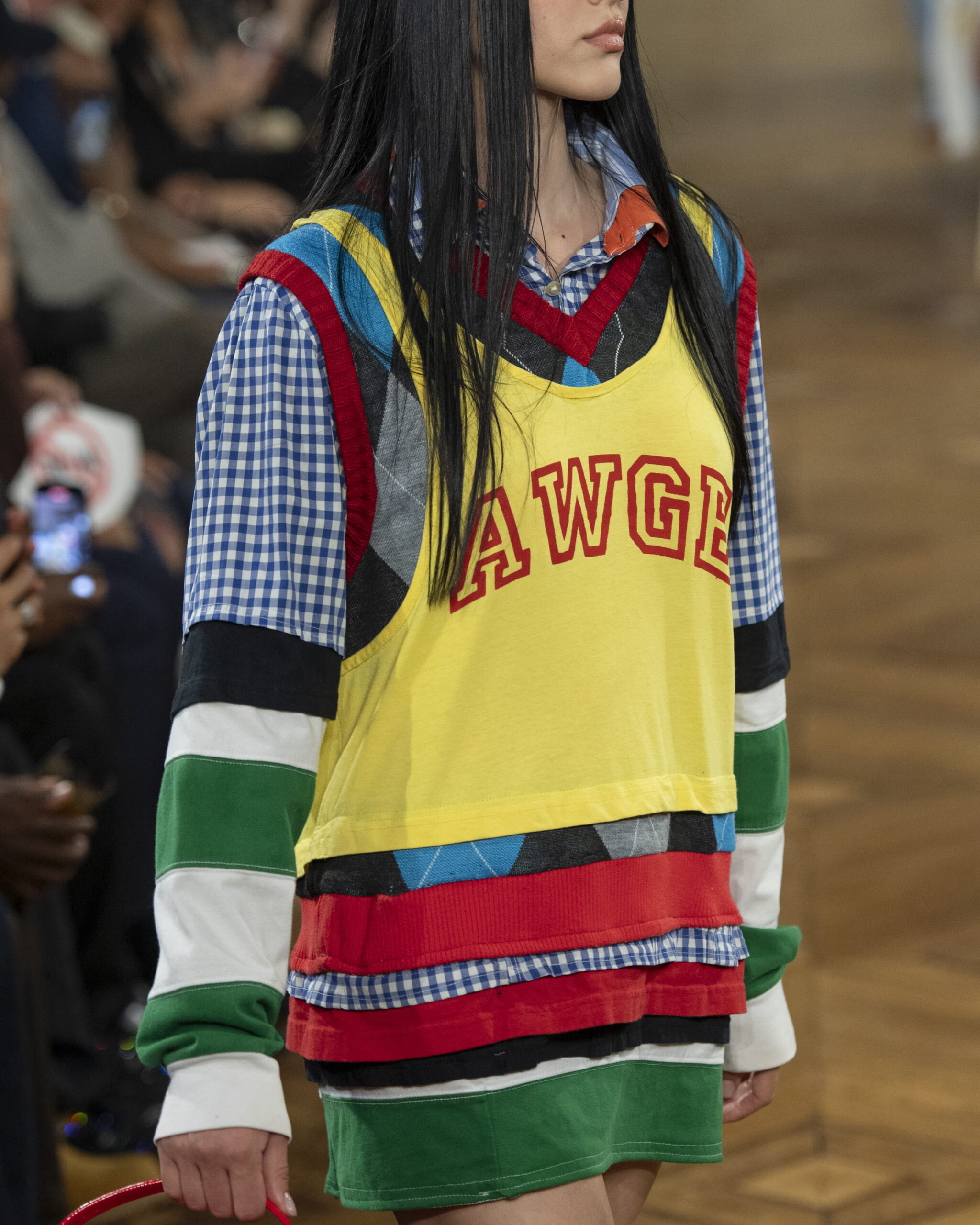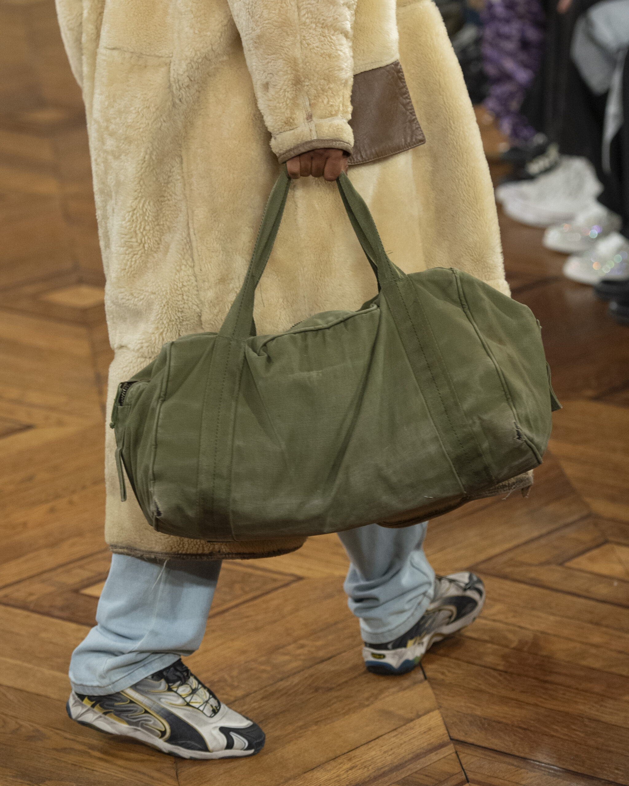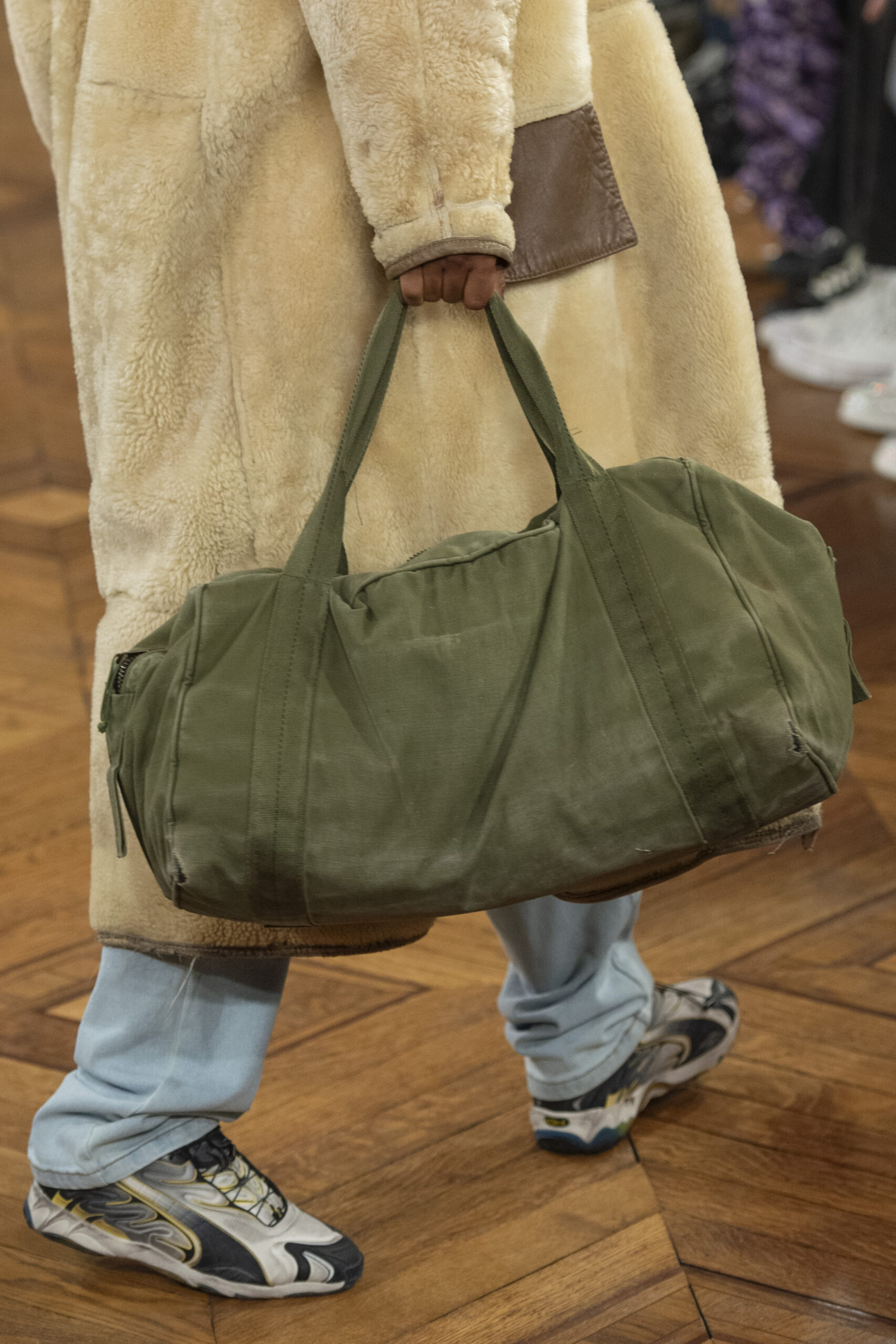 Le décor du défilé, comprenant des sacs poubelles transformés en chaises beanbag issues de la marque de mobilier Hommemade, en collaboration avec Crosby Studios, ajoutait une dimension immersive à cette expérience unique. Le défilé a été rythmé par la bande-son du prochain album d’A$AP Rocky, créant une synergie entre mode et musique.
