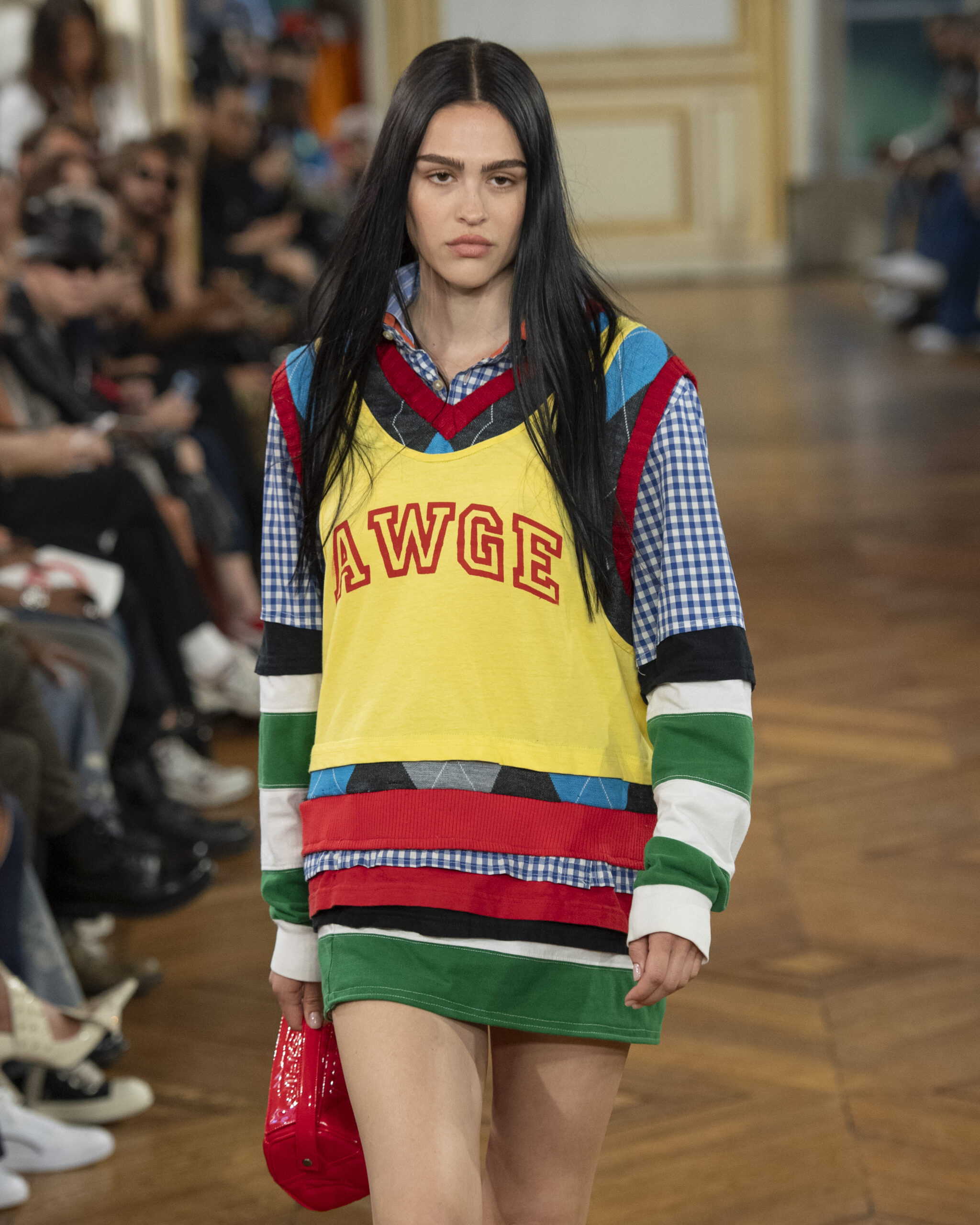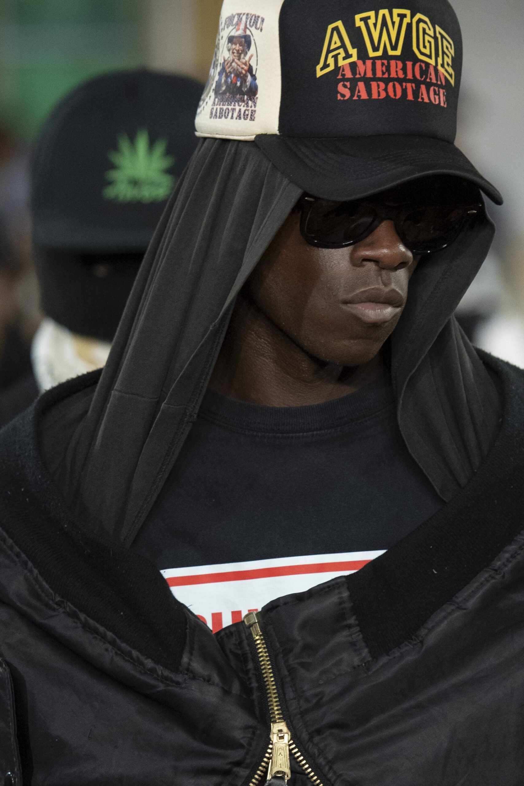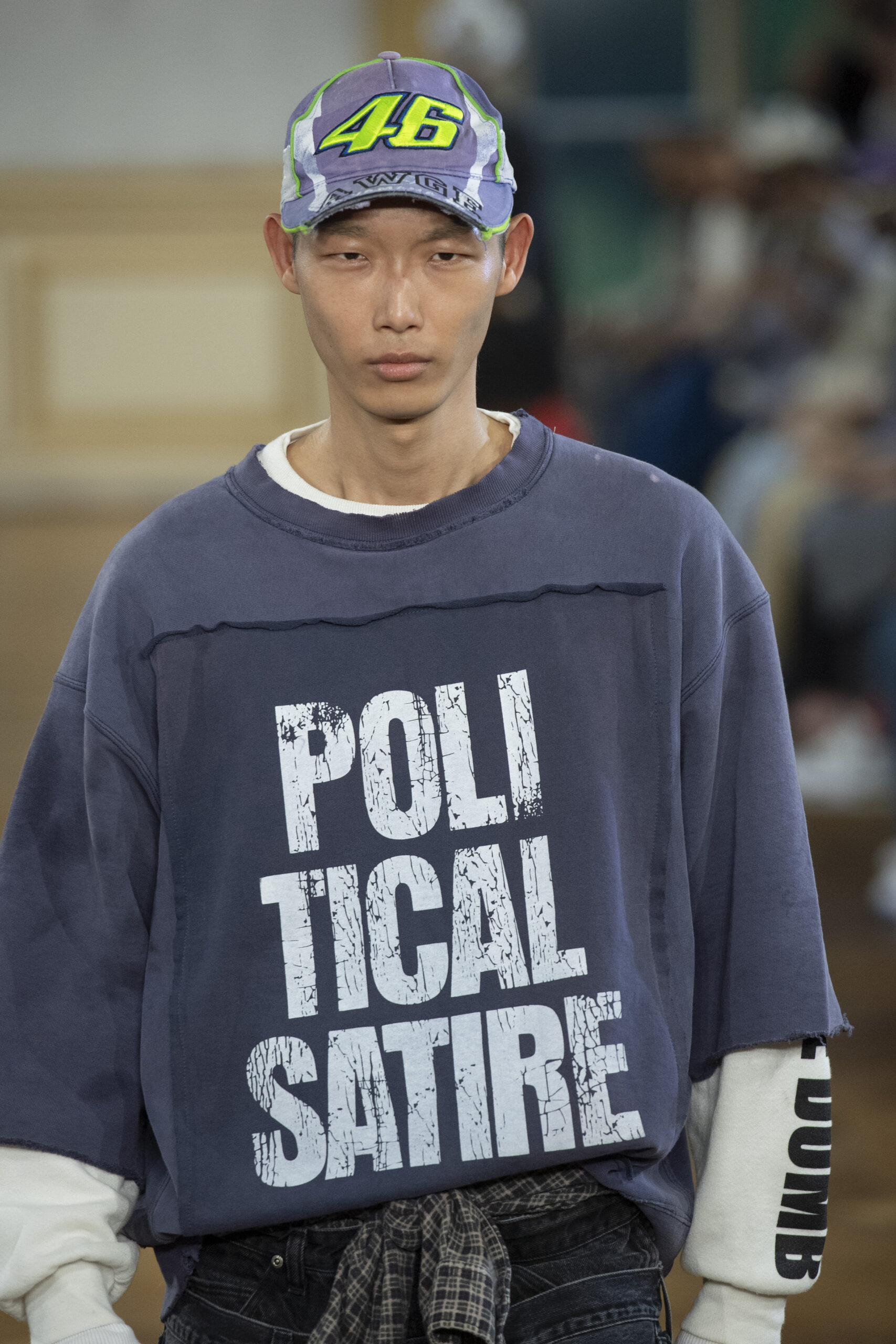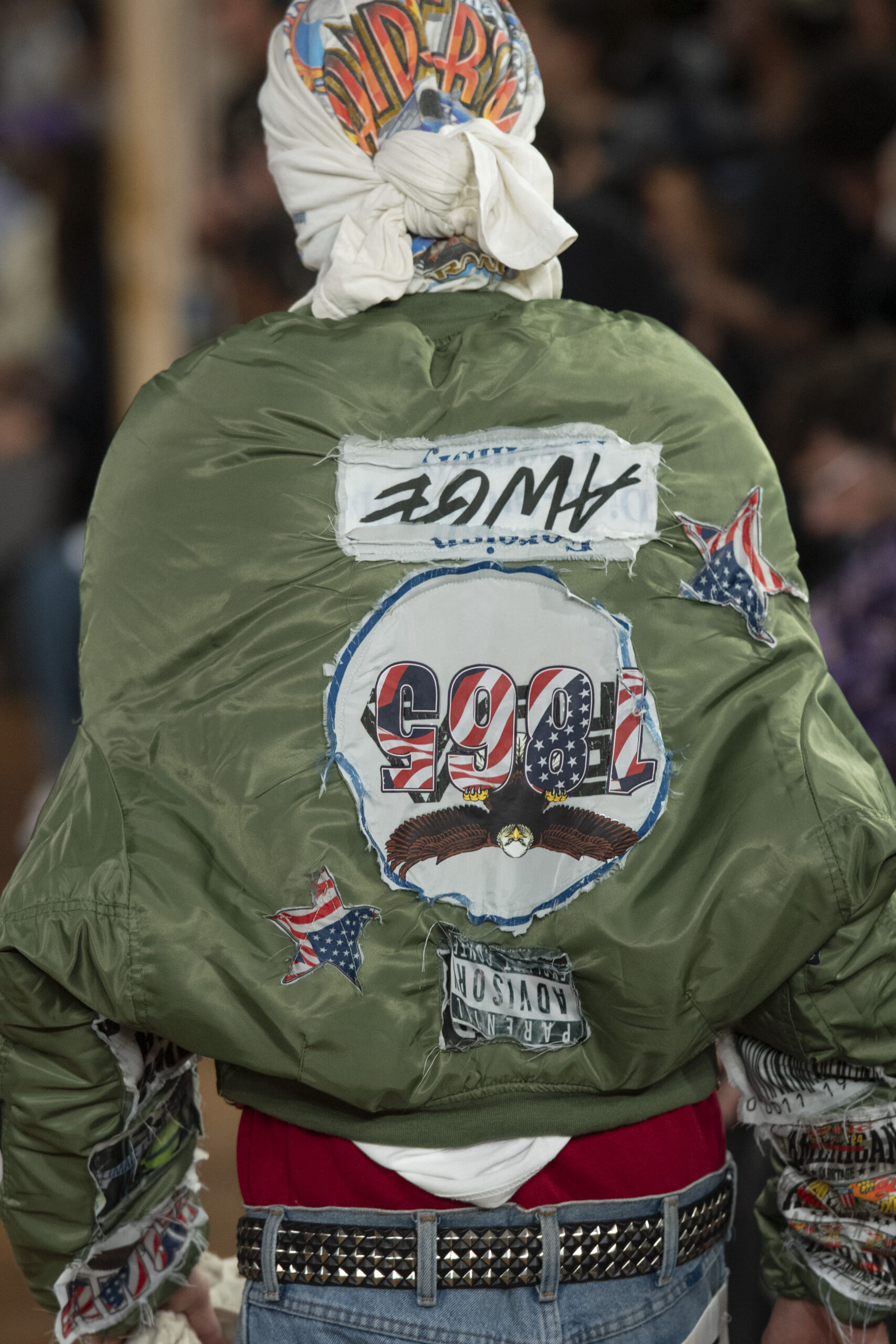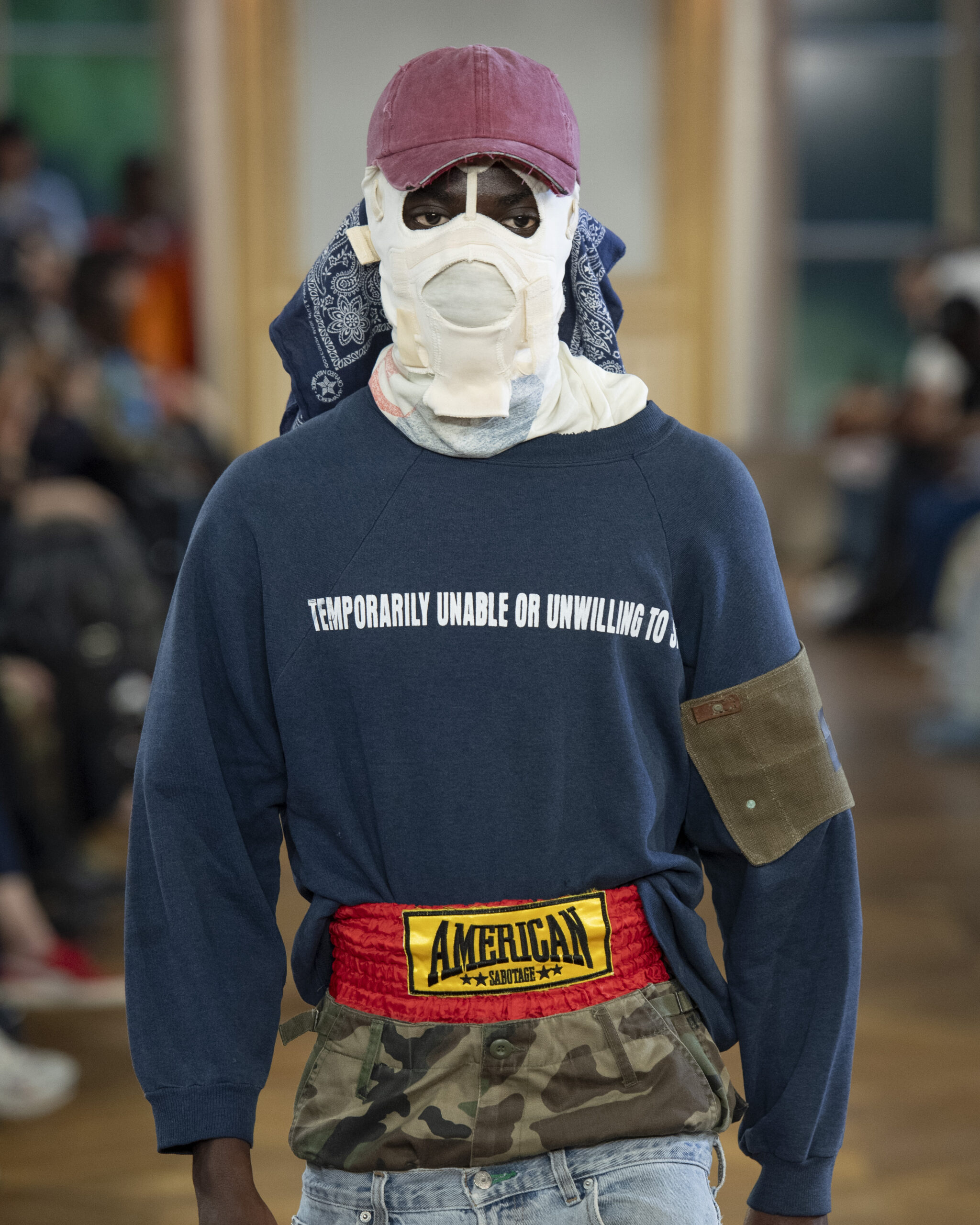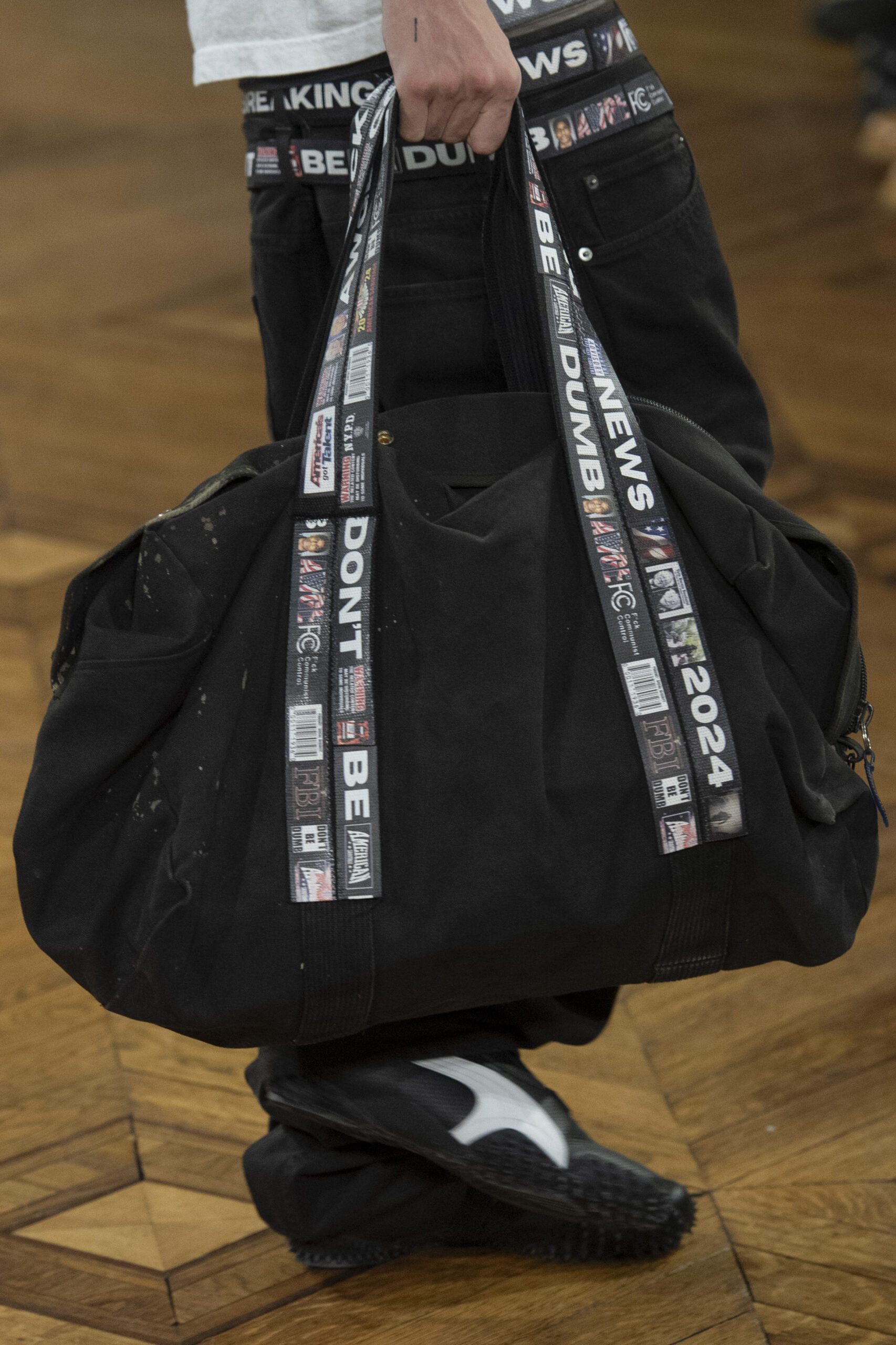 Le décor du défilé, comprenant des sacs poubelles transformés en chaises beanbag issues de la marque de mobilier Hommemade, en collaboration avec Crosby Studios, ajoutait une dimension immersive à cette expérience unique. Le défilé a été rythmé par la bande-son du prochain album d’A$AP Rocky, créant une synergie entre mode et musique.