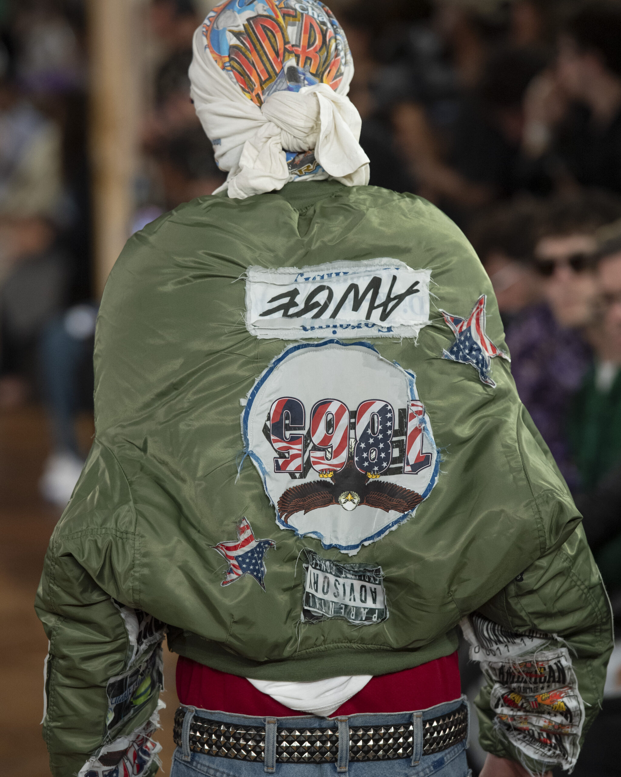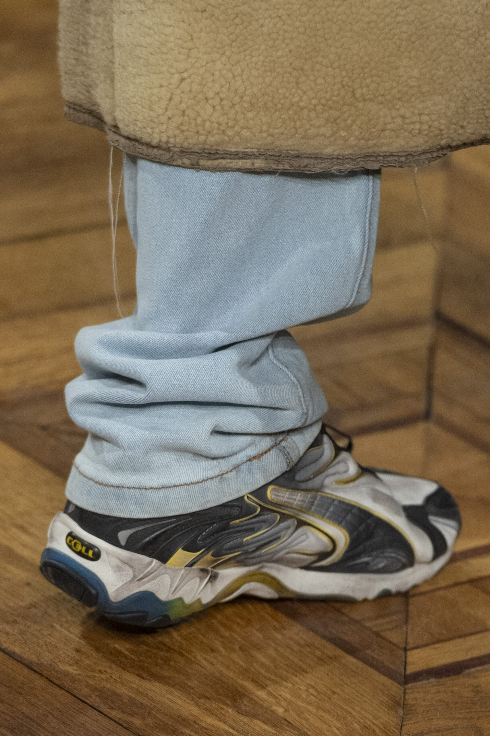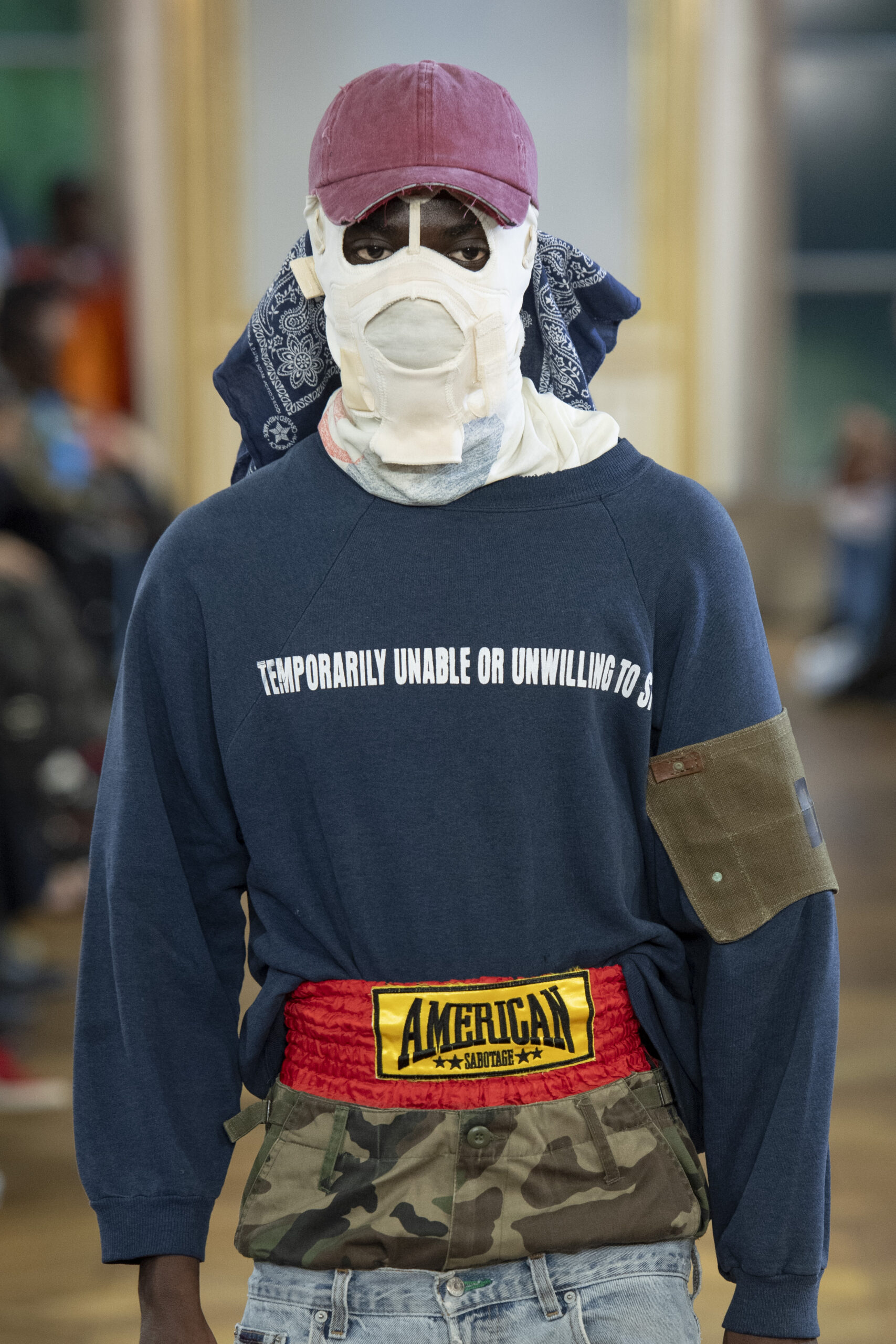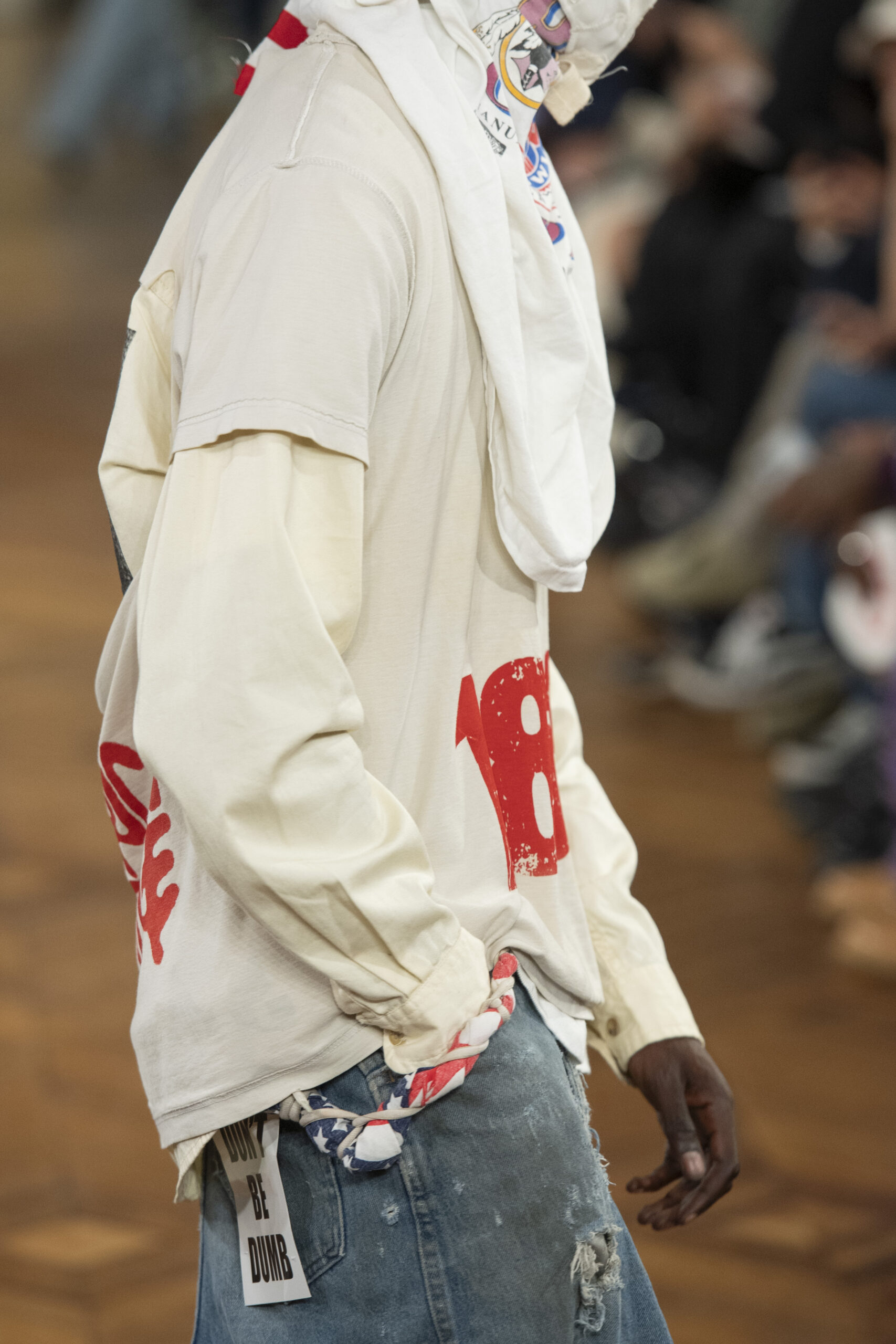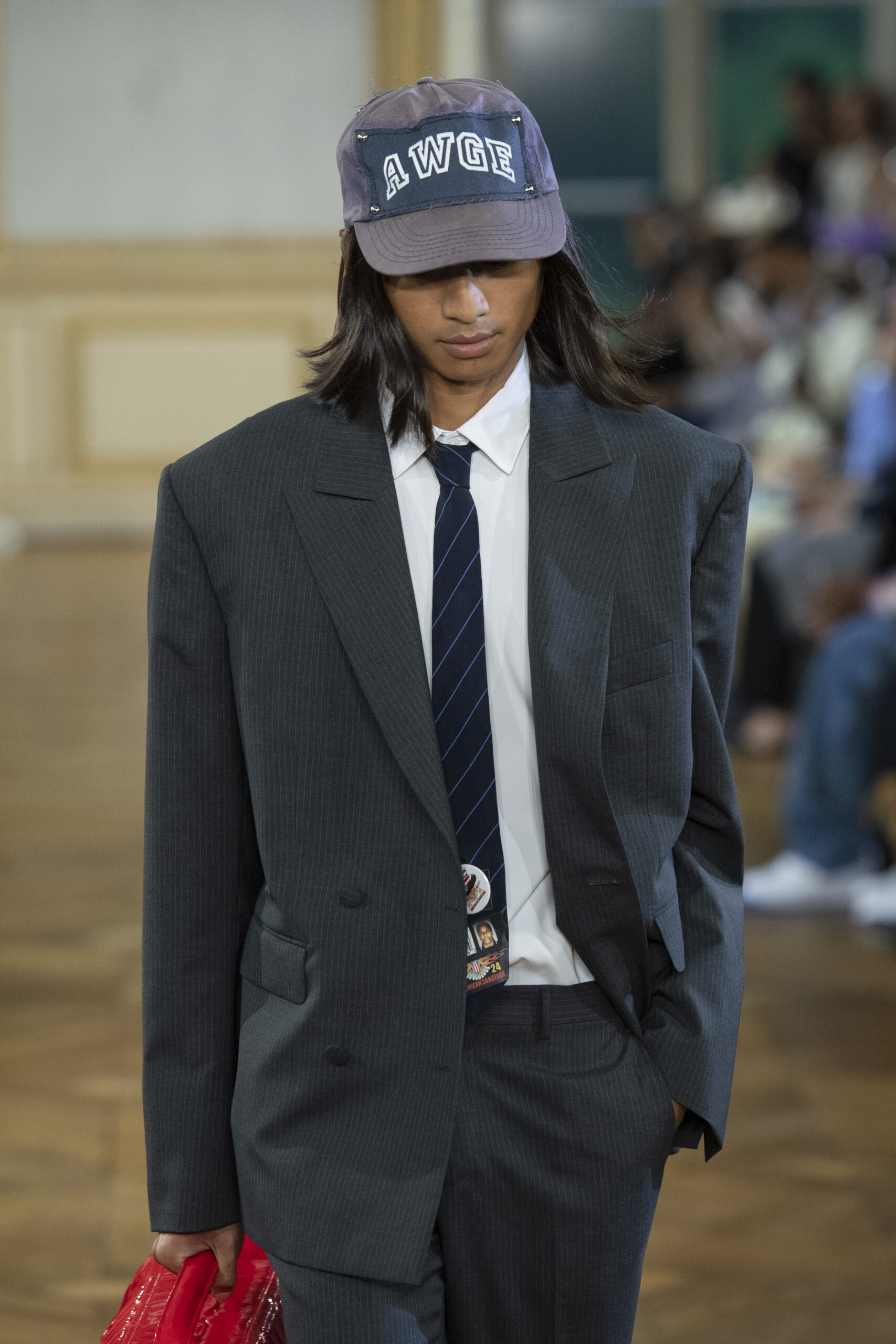 Le décor du défilé, comprenant des sacs poubelles transformés en chaises beanbag issues de la marque de mobilier Hommemade, en collaboration avec Crosby Studios, ajoutait une dimension immersive à cette expérience unique. Le défilé a été rythmé par la bande-son du prochain album d’A$AP Rocky, créant une synergie entre mode et musique.