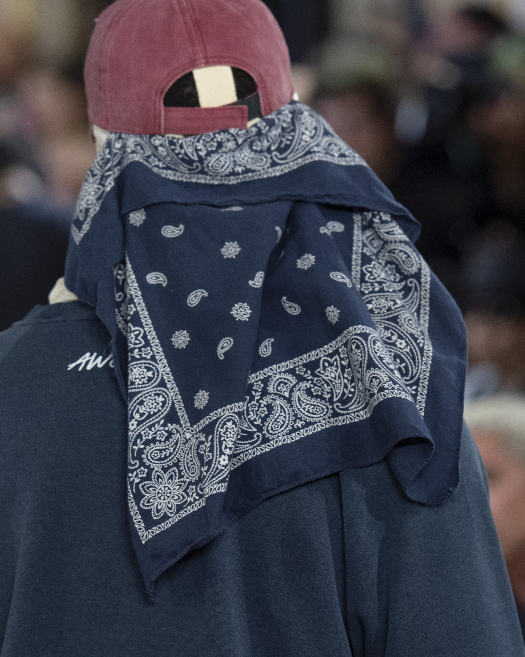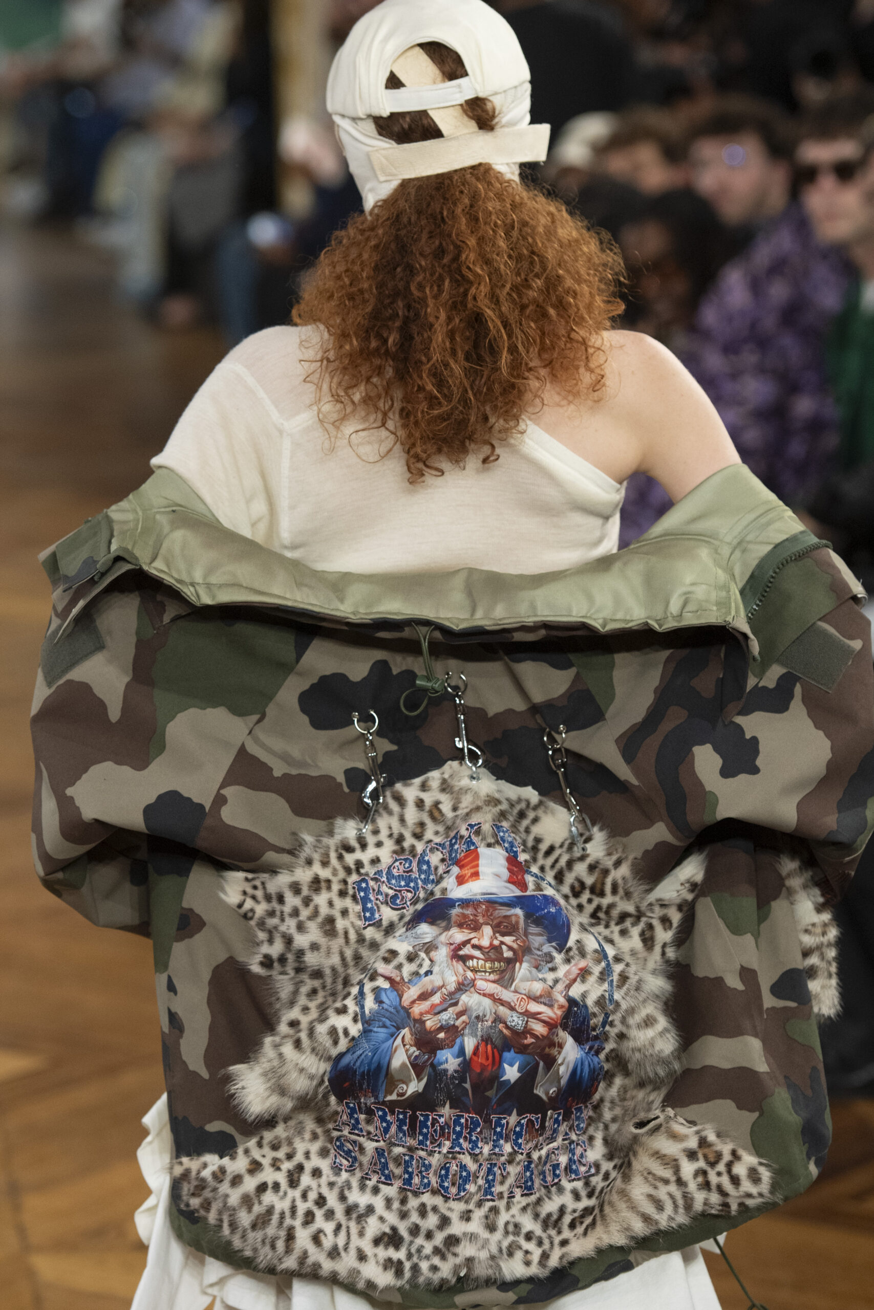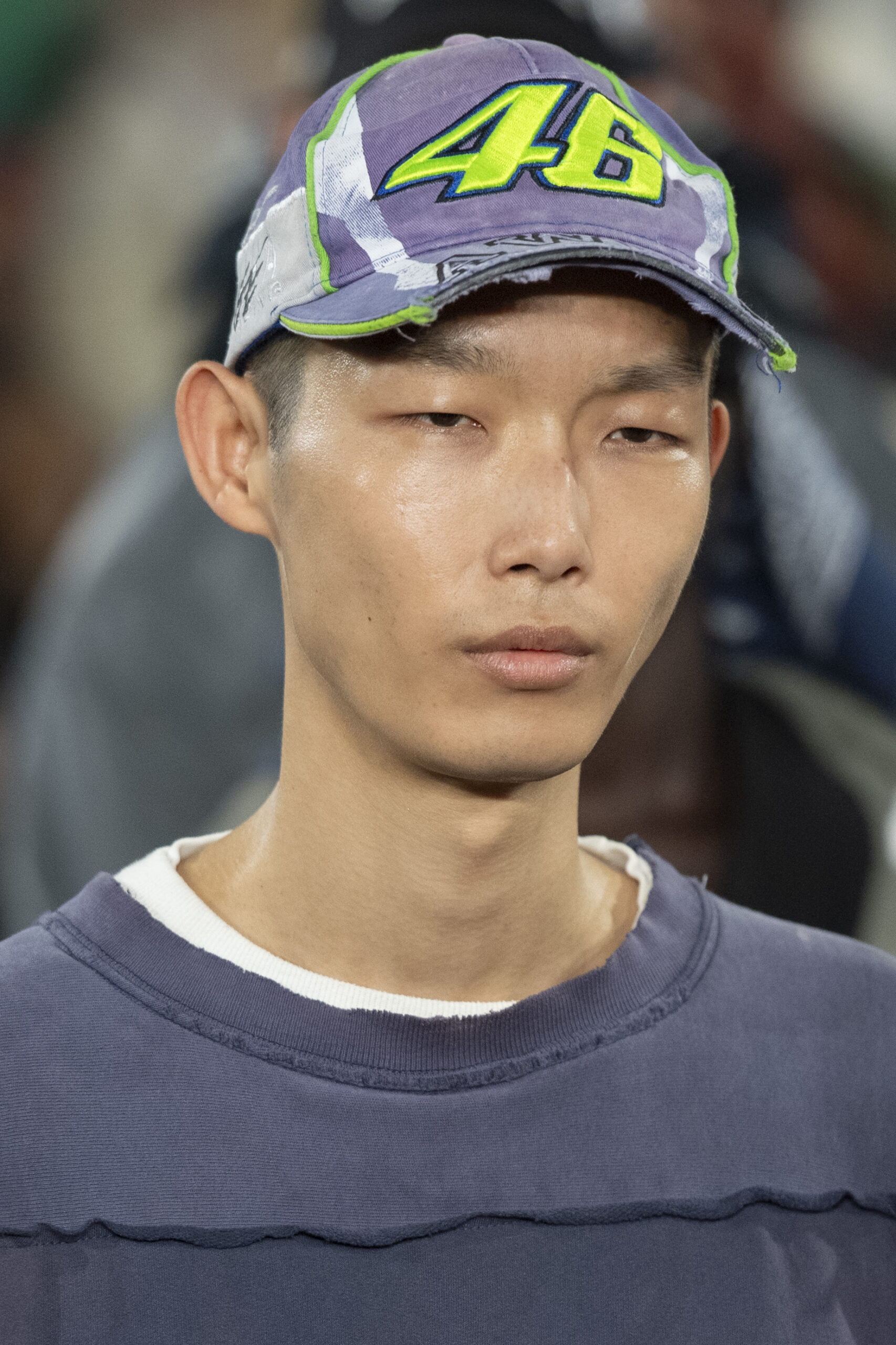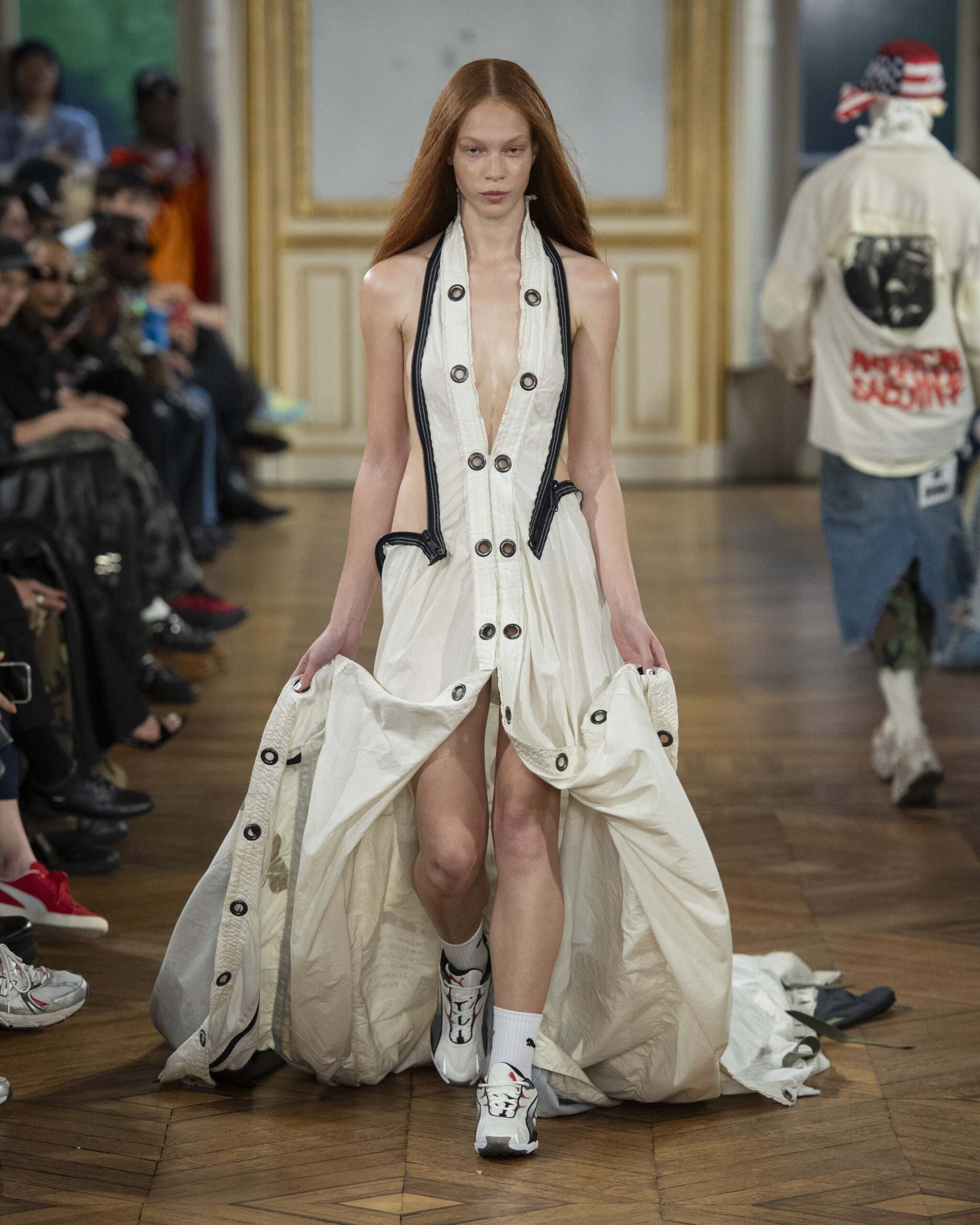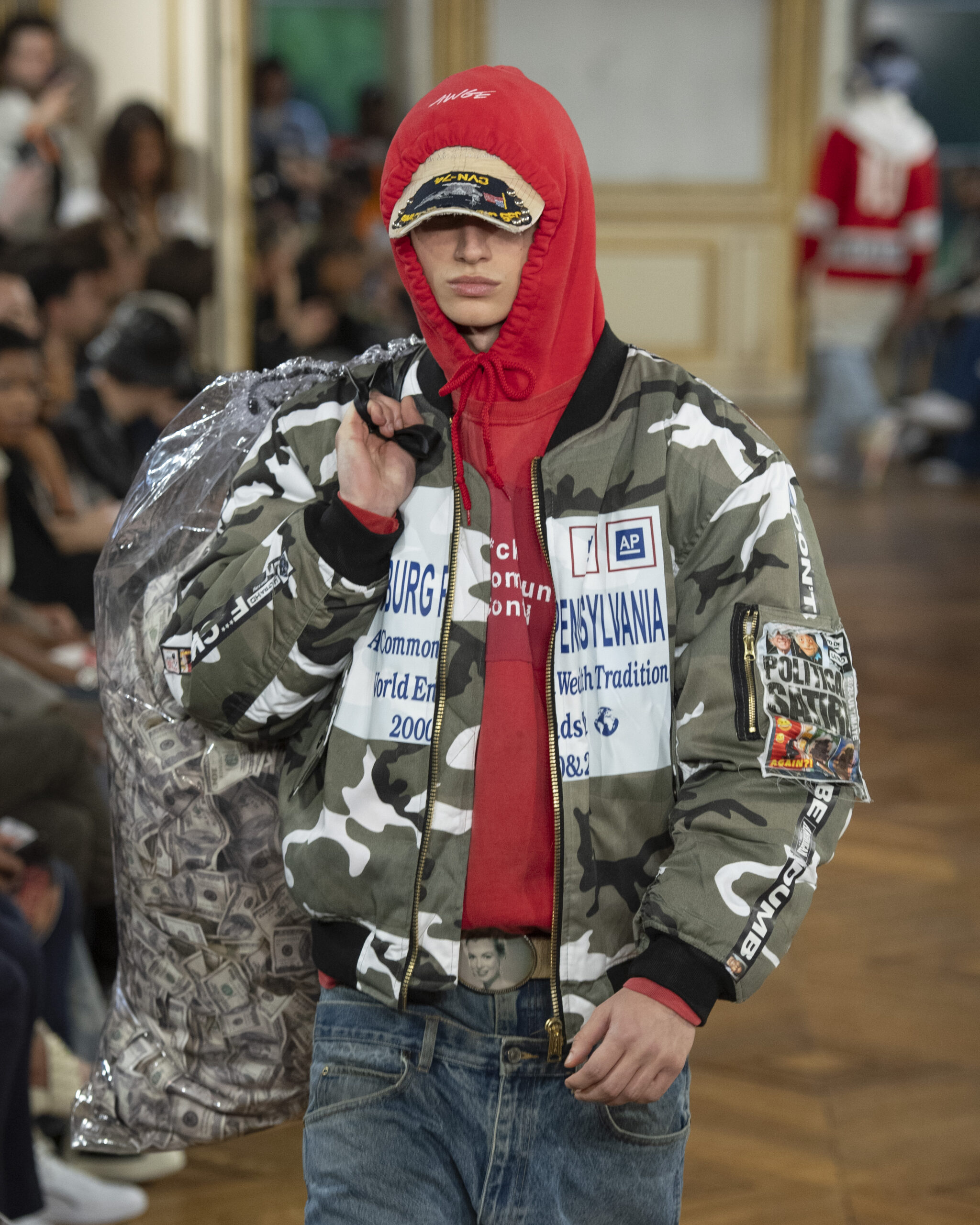Le décor du défilé, comprenant des sacs poubelles transformés en chaises beanbag issues de la marque de mobilier Hommemade, en collaboration avec Crosby Studios, ajoutait une dimension immersive à cette expérience unique. Le défilé a été rythmé par la bande-son du prochain album d’A$AP Rocky, créant une synergie entre mode et musique.