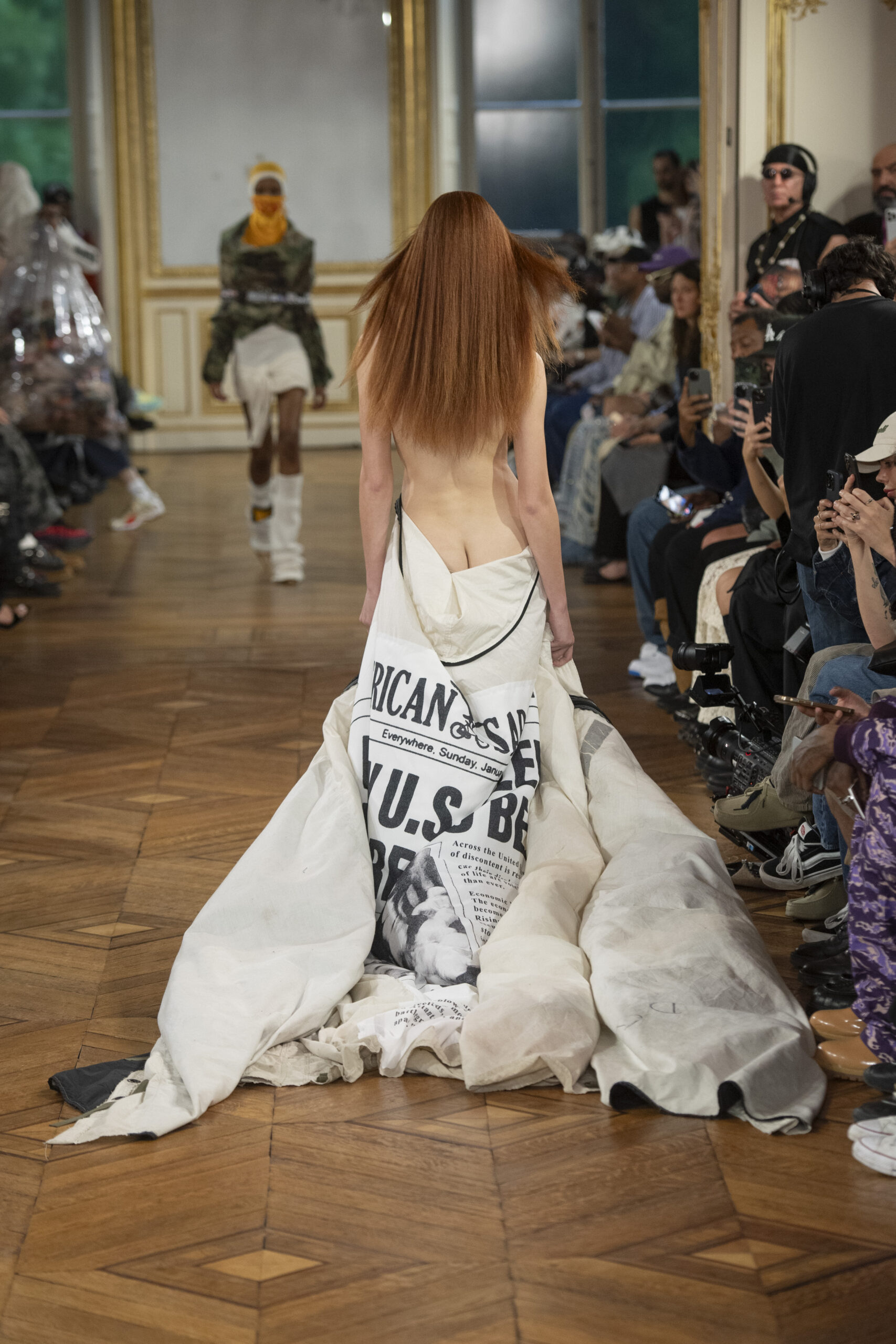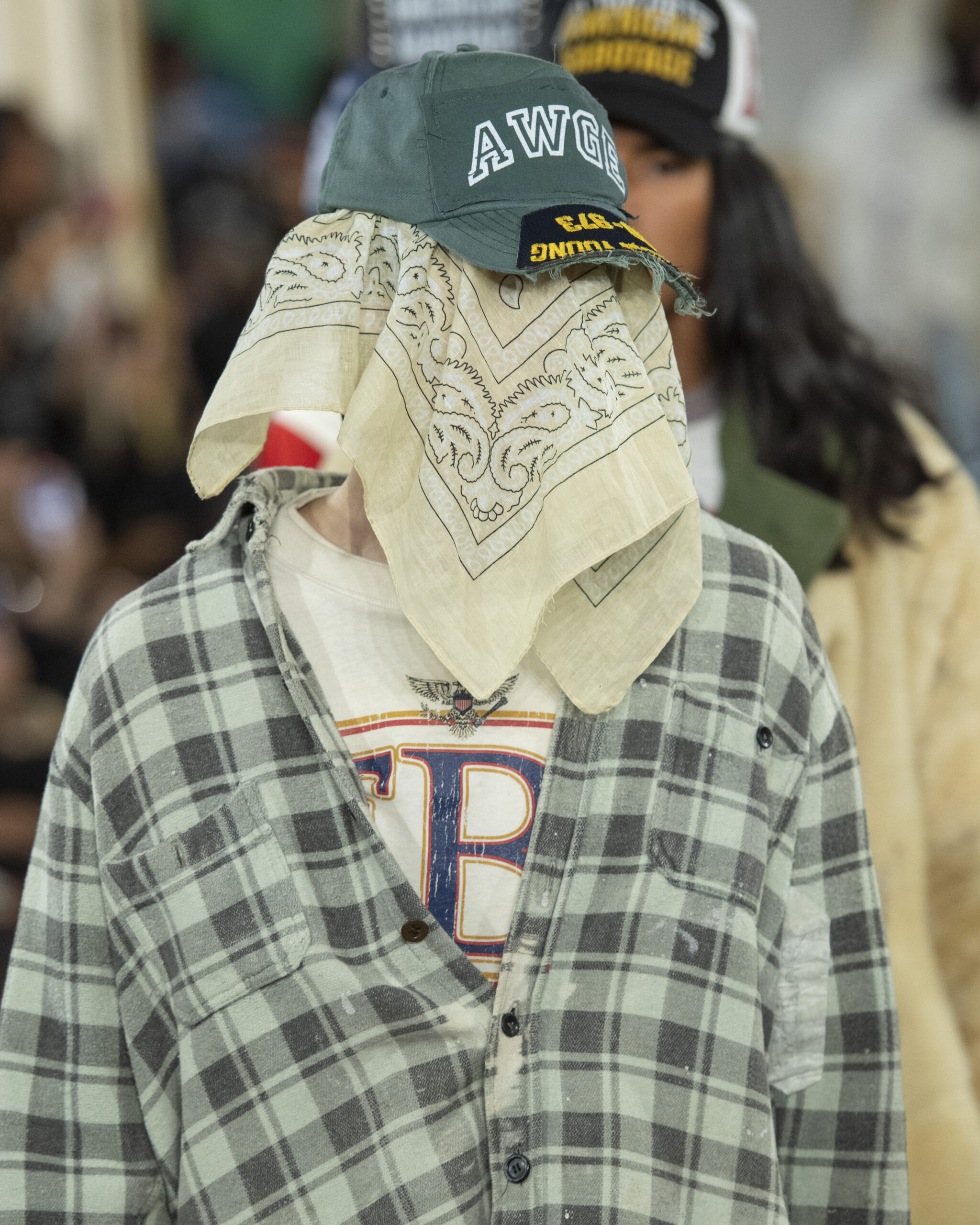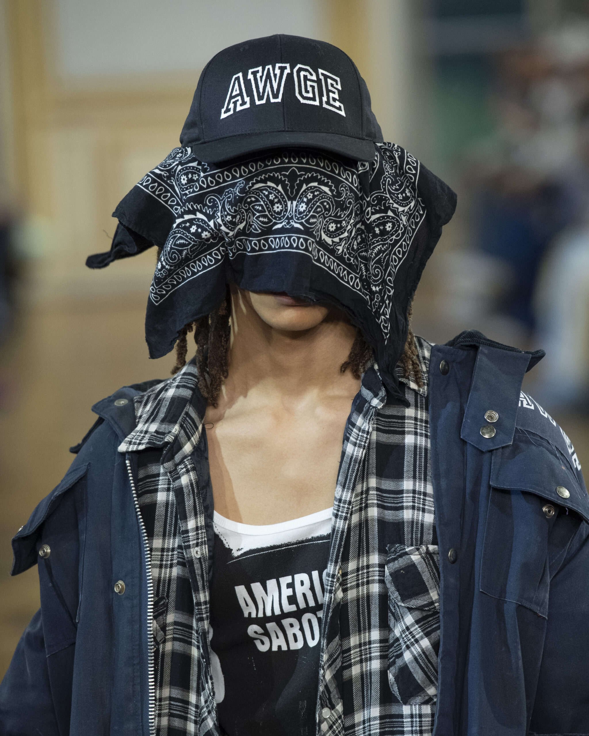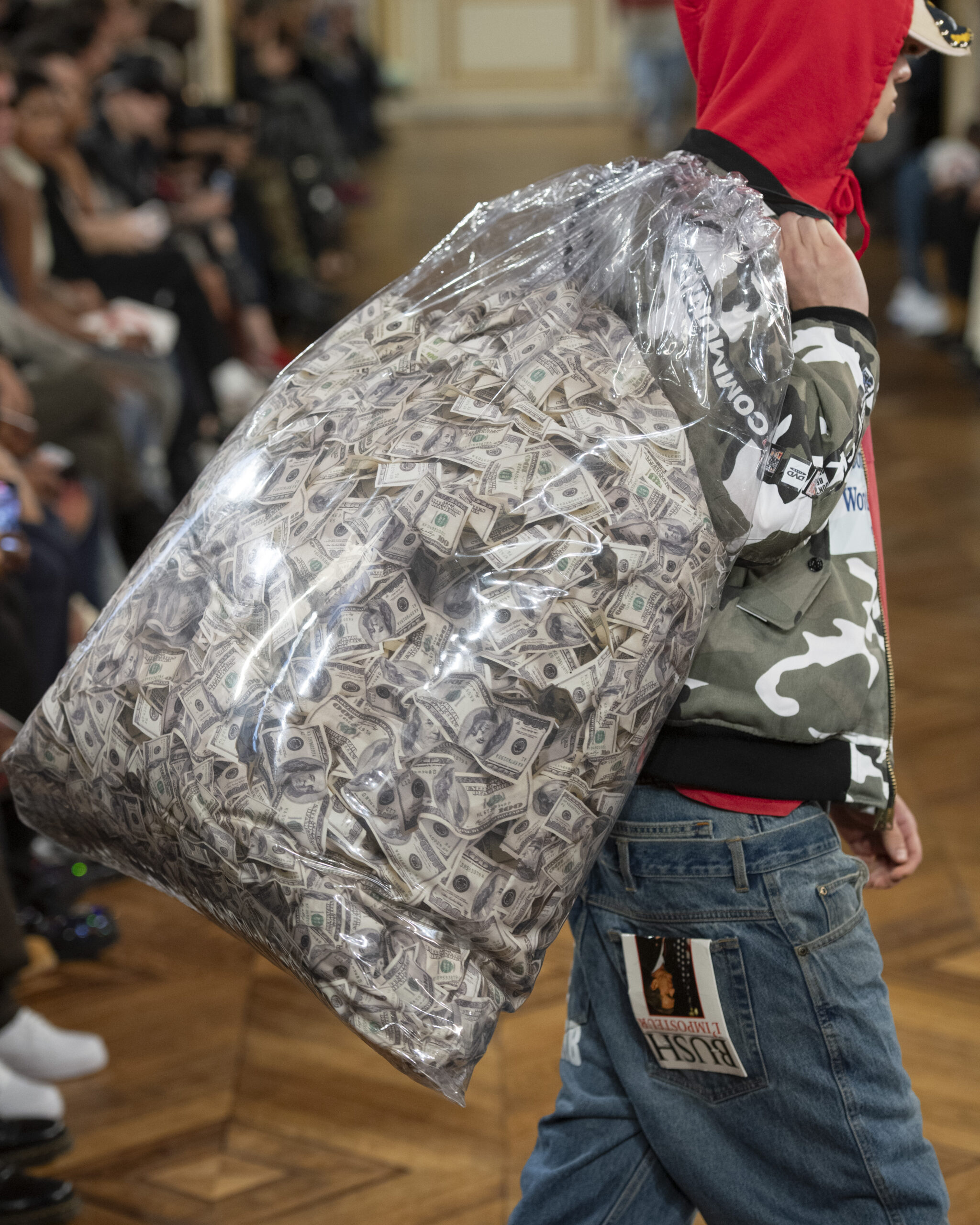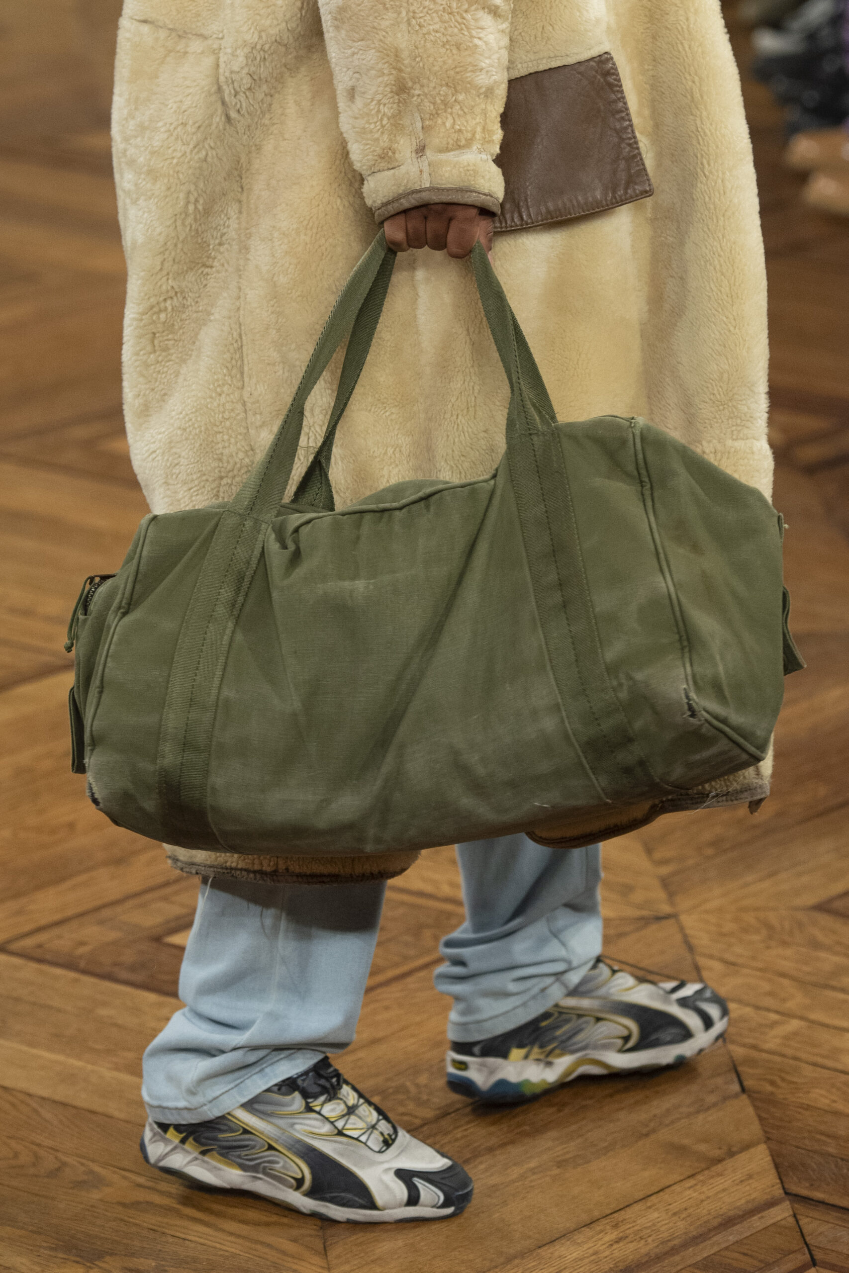 Le décor du défilé, comprenant des sacs poubelles transformés en chaises beanbag issues de la marque de mobilier Hommemade, en collaboration avec Crosby Studios, ajoutait une dimension immersive à cette expérience unique. Le défilé a été rythmé par la bande-son du prochain album d’A$AP Rocky, créant une synergie entre mode et musique.