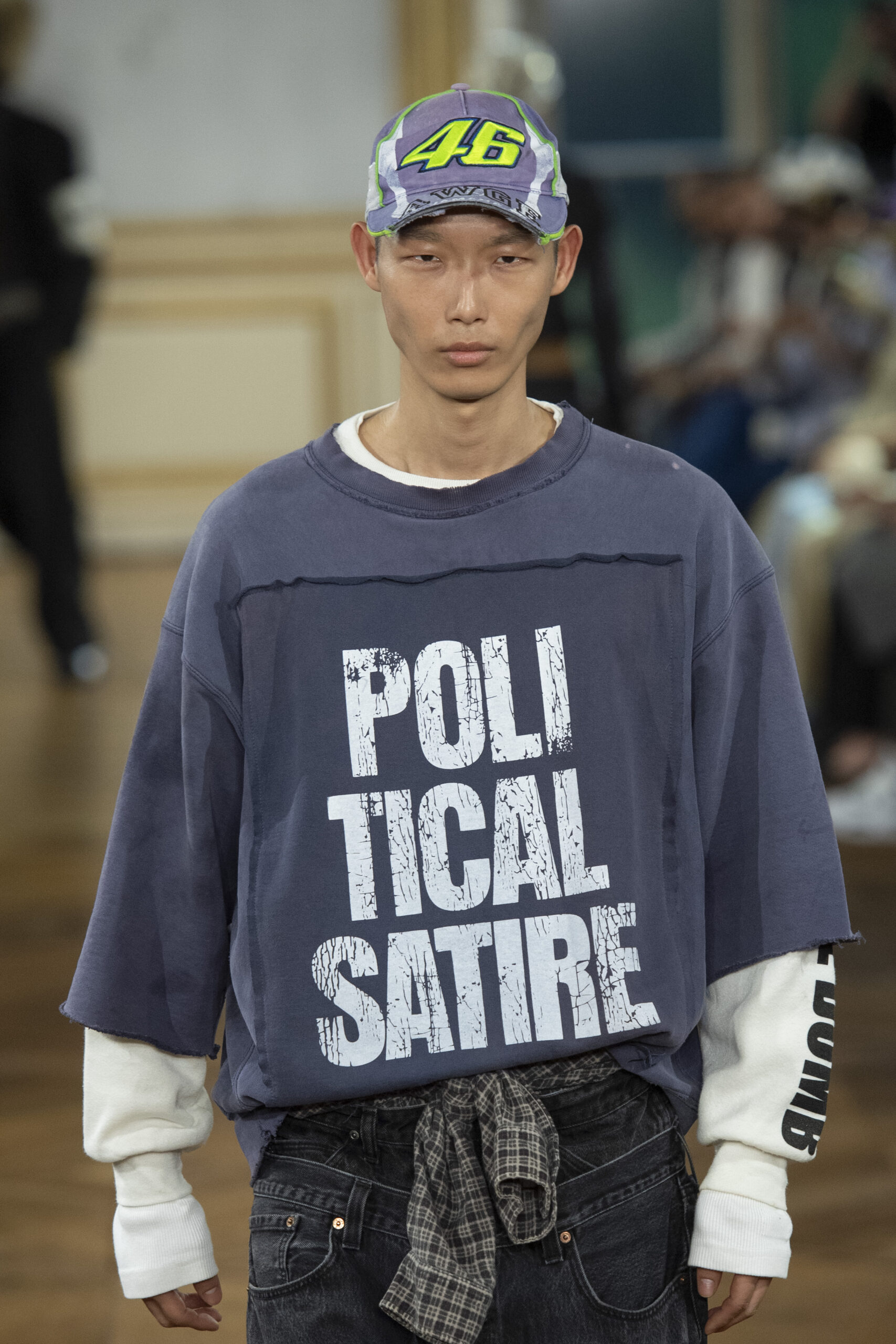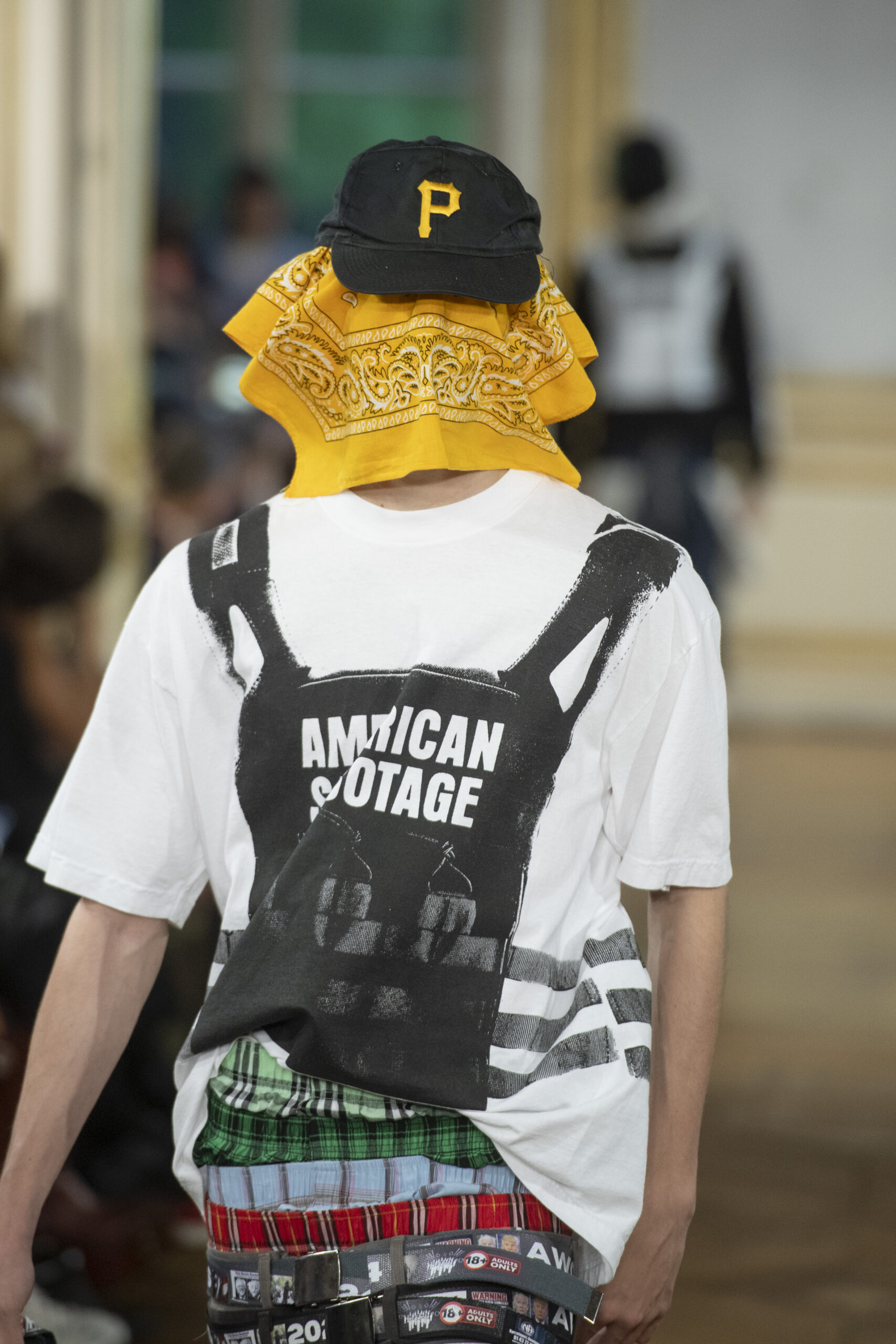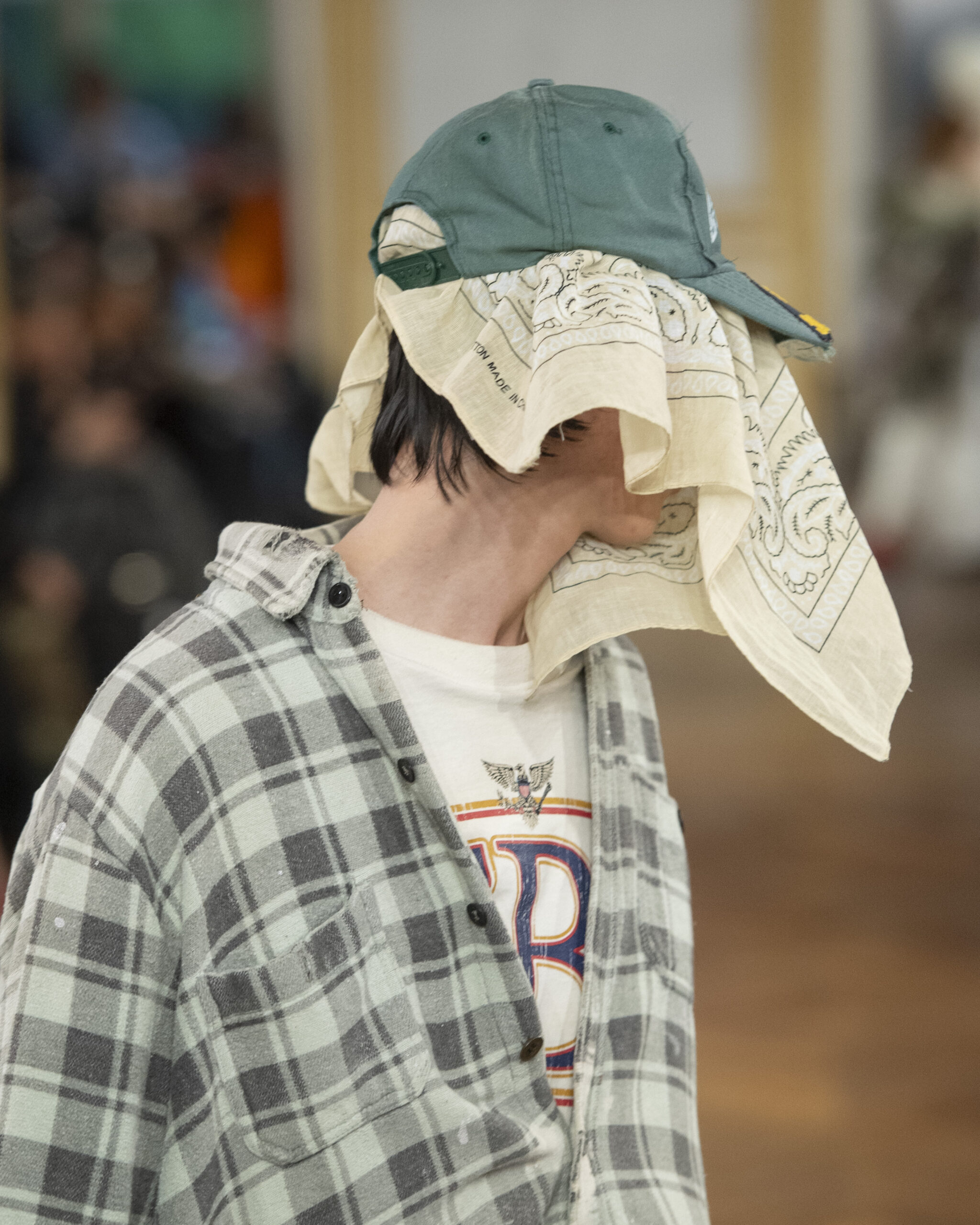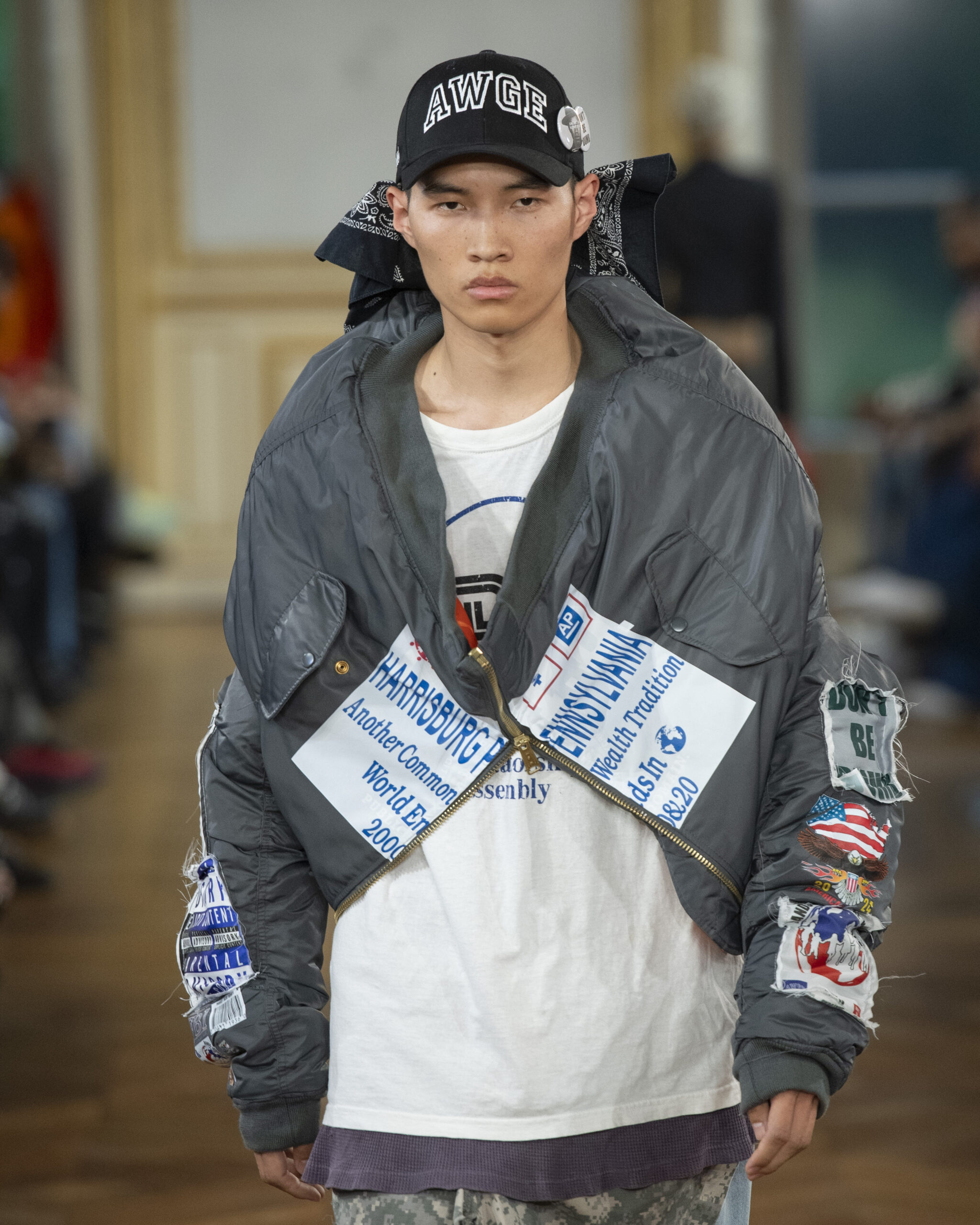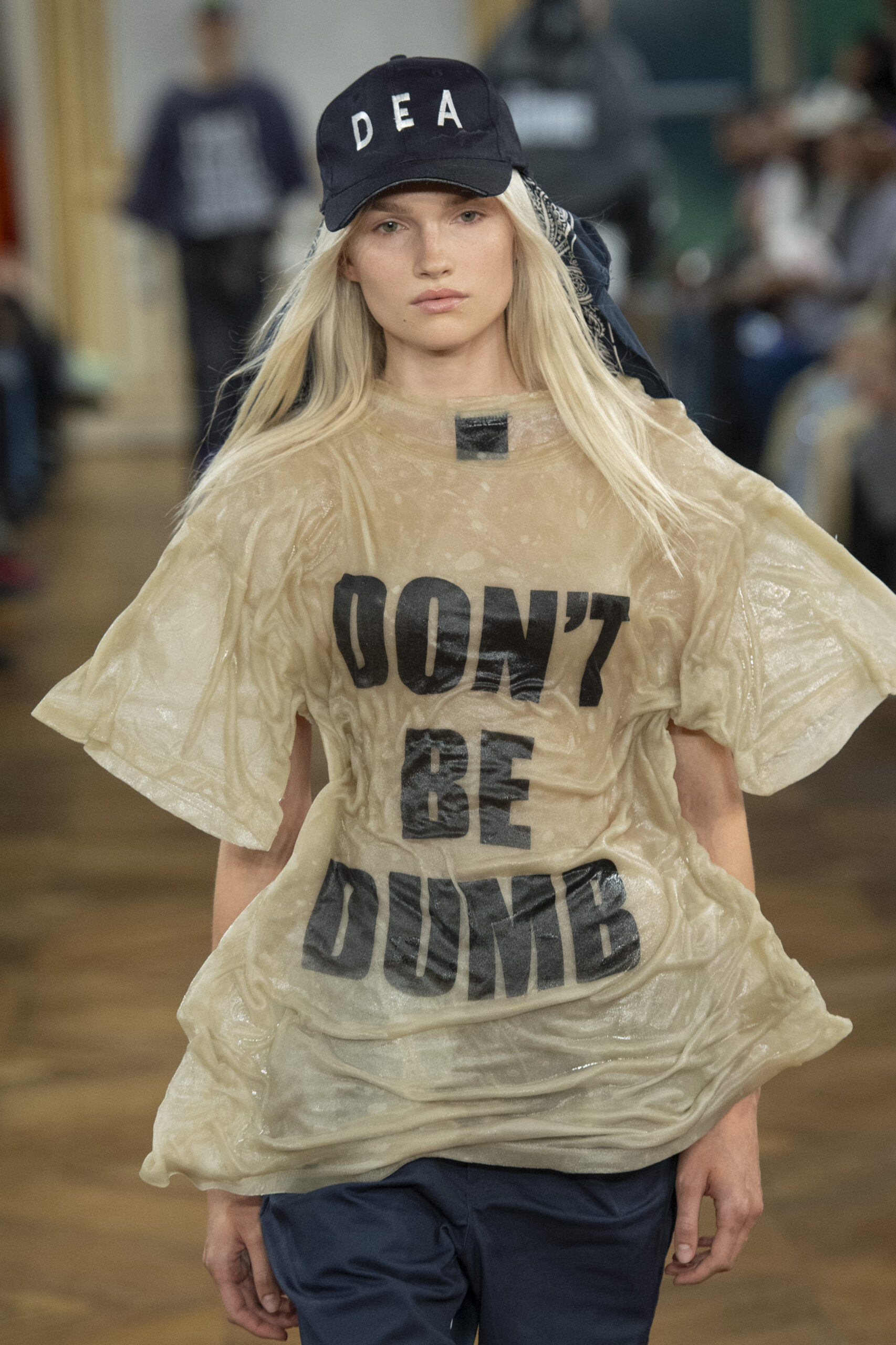 Le décor du défilé, comprenant des sacs poubelles transformés en chaises beanbag issues de la marque de mobilier Hommemade, en collaboration avec Crosby Studios, ajoutait une dimension immersive à cette expérience unique. Le défilé a été rythmé par la bande-son du prochain album d’A$AP Rocky, créant une synergie entre mode et musique.