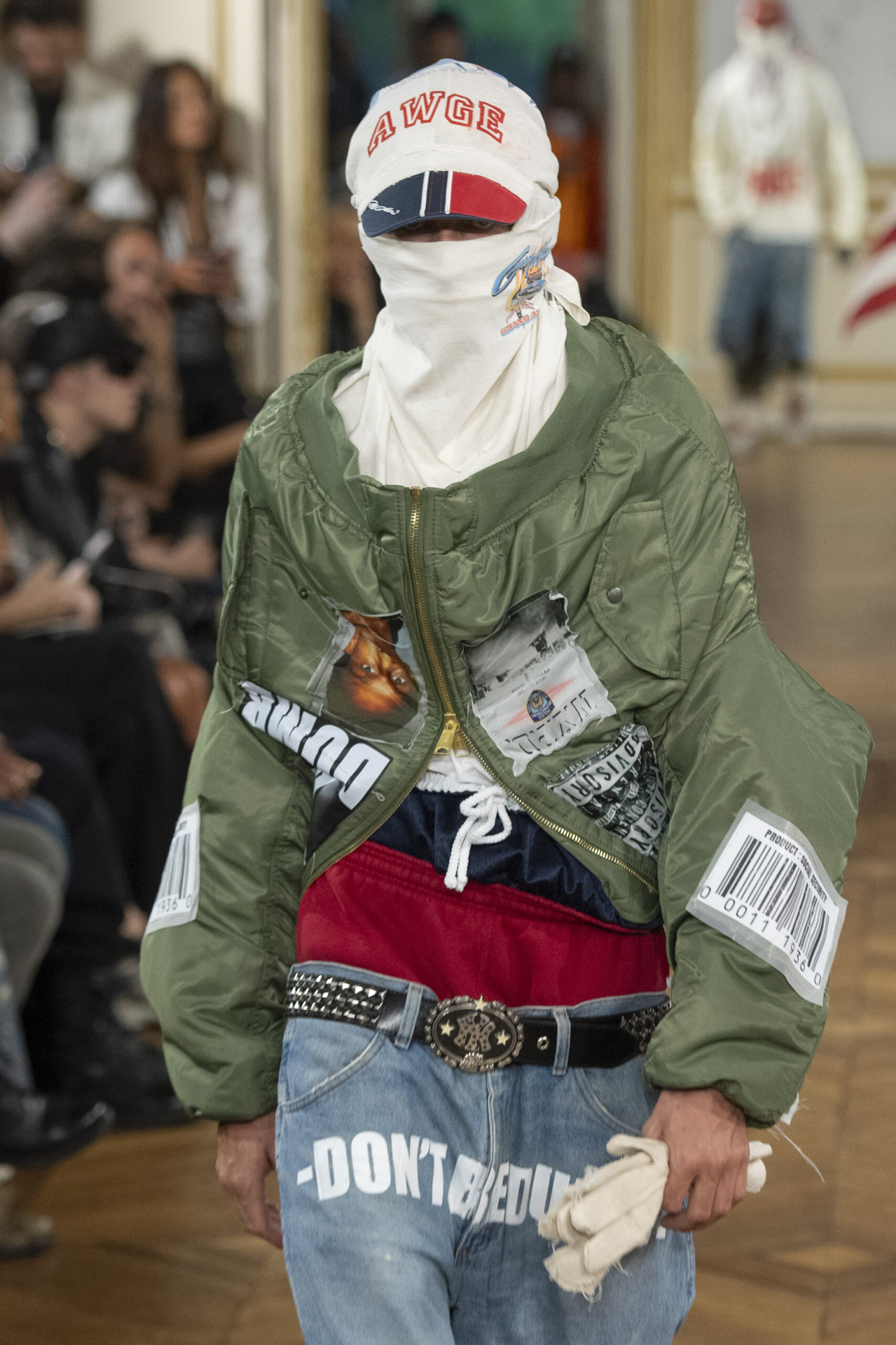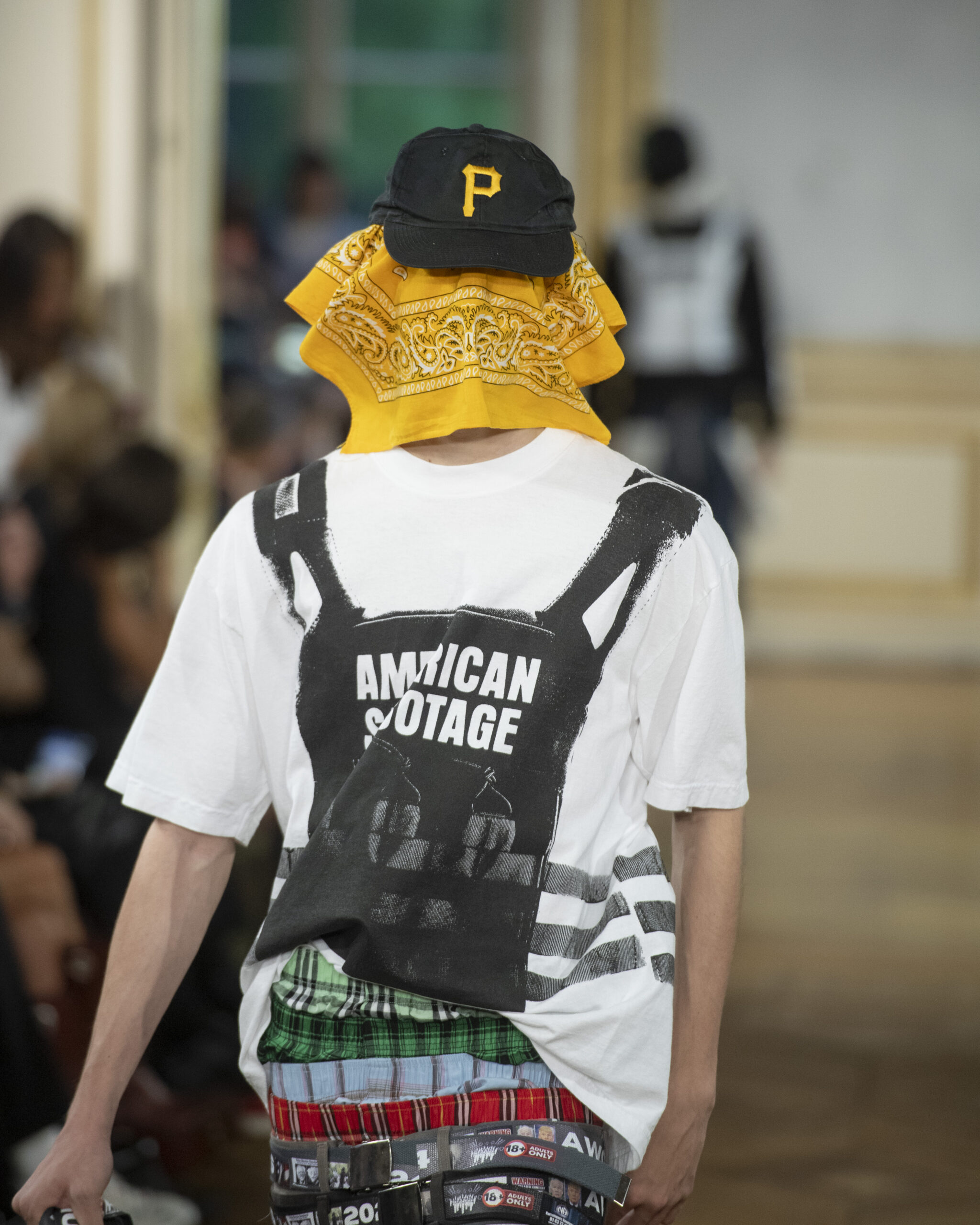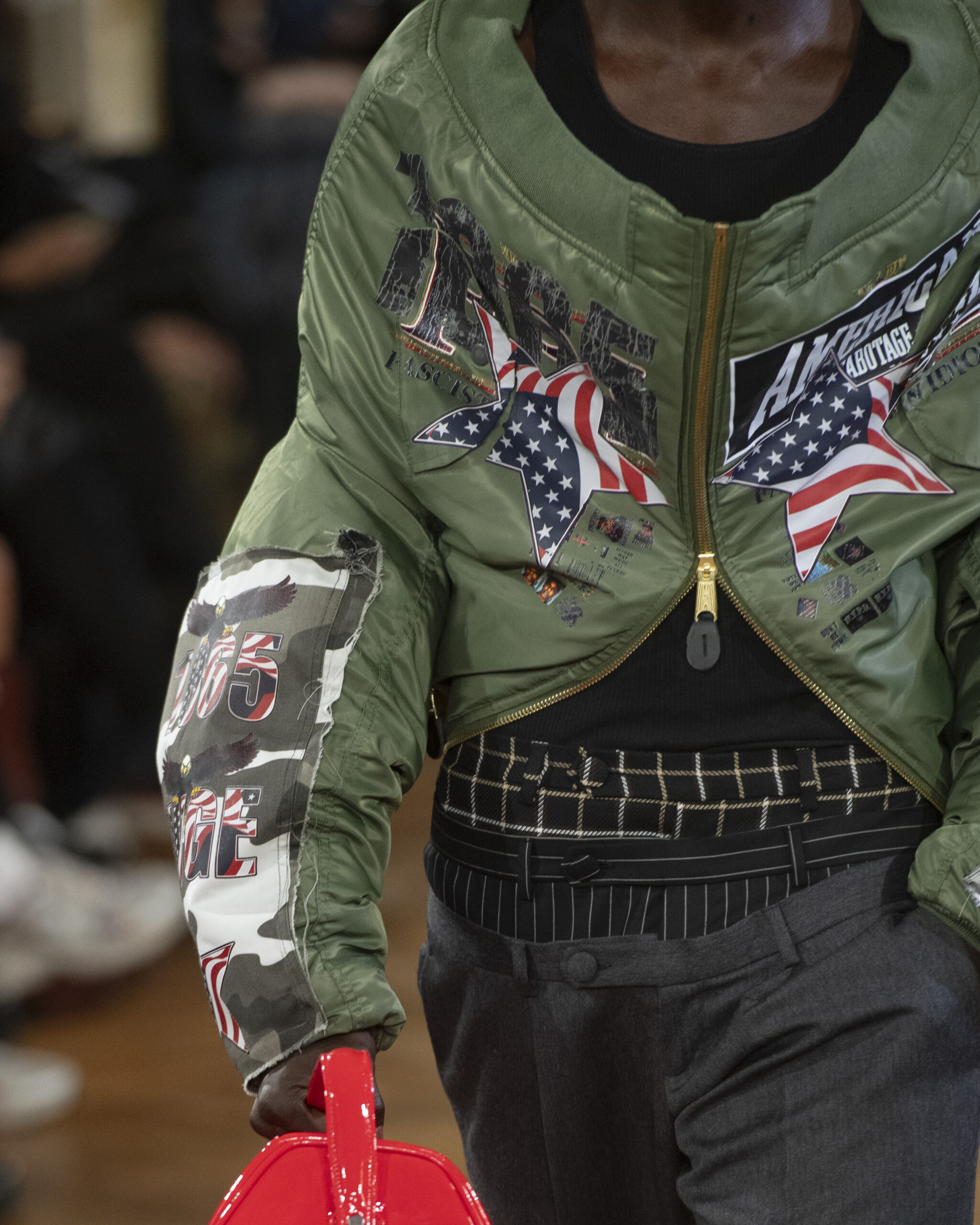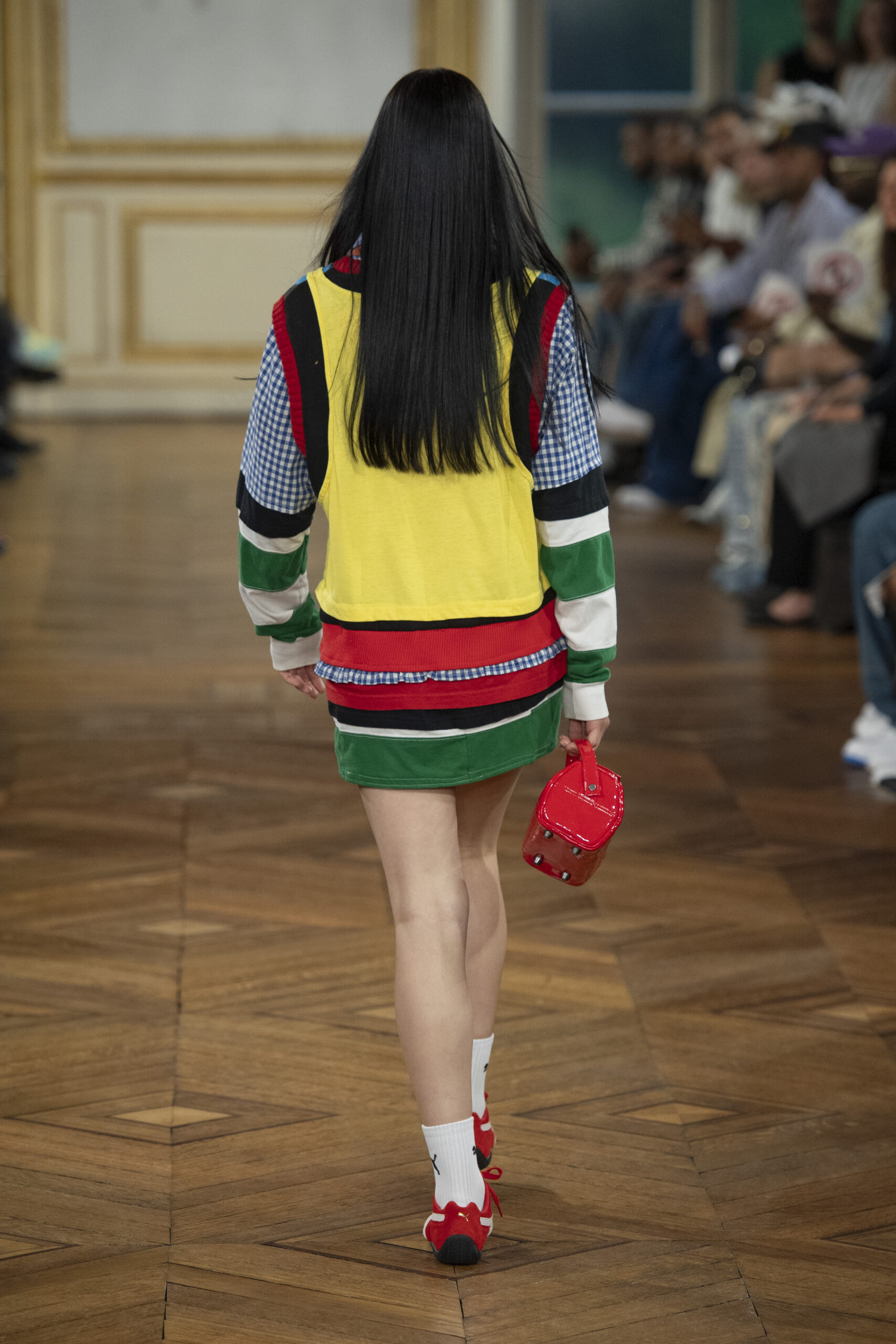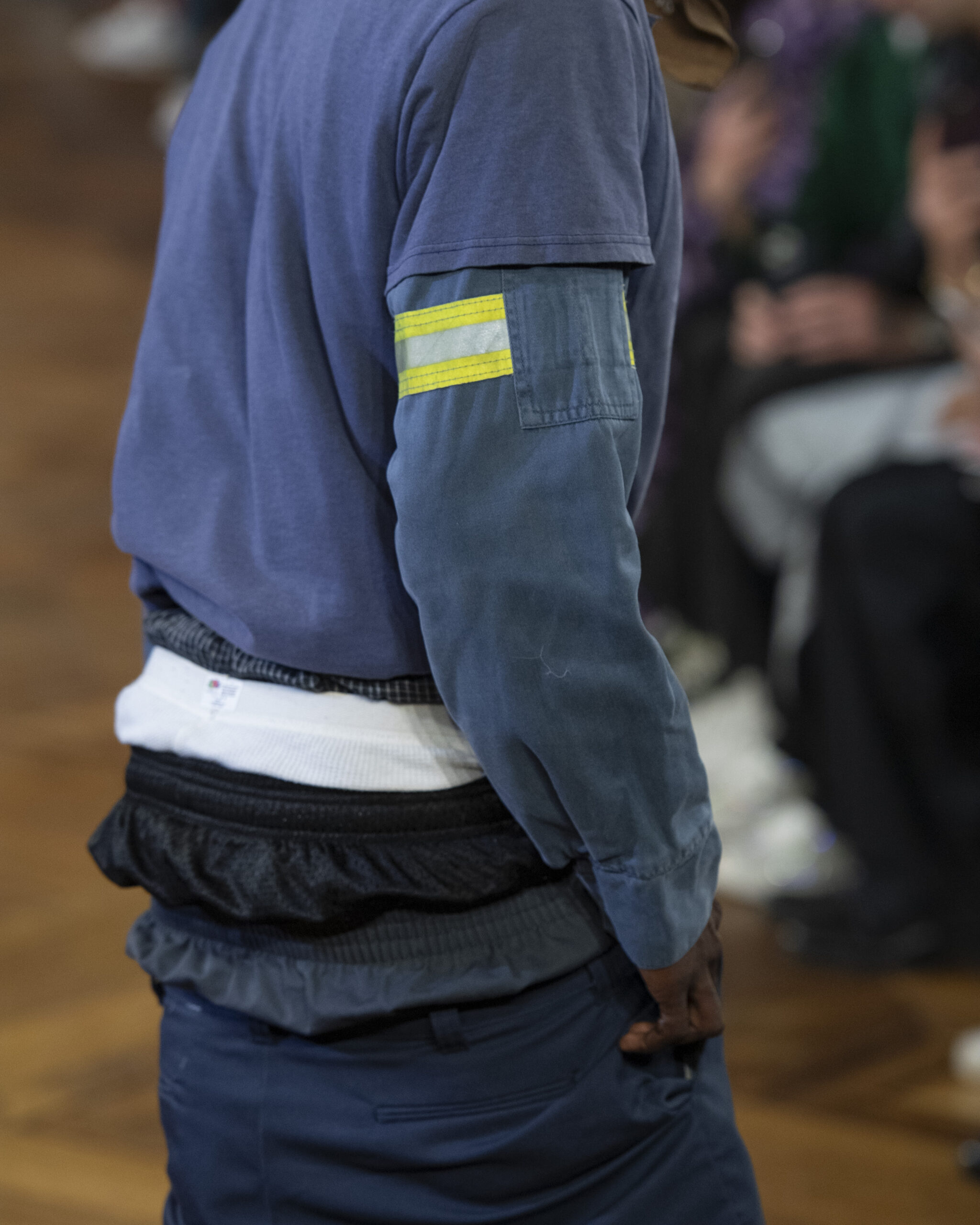 Le décor du défilé, comprenant des sacs poubelles transformés en chaises beanbag issues de la marque de mobilier Hommemade, en collaboration avec Crosby Studios, ajoutait une dimension immersive à cette expérience unique. Le défilé a été rythmé par la bande-son du prochain album d’A$AP Rocky, créant une synergie entre mode et musique.
