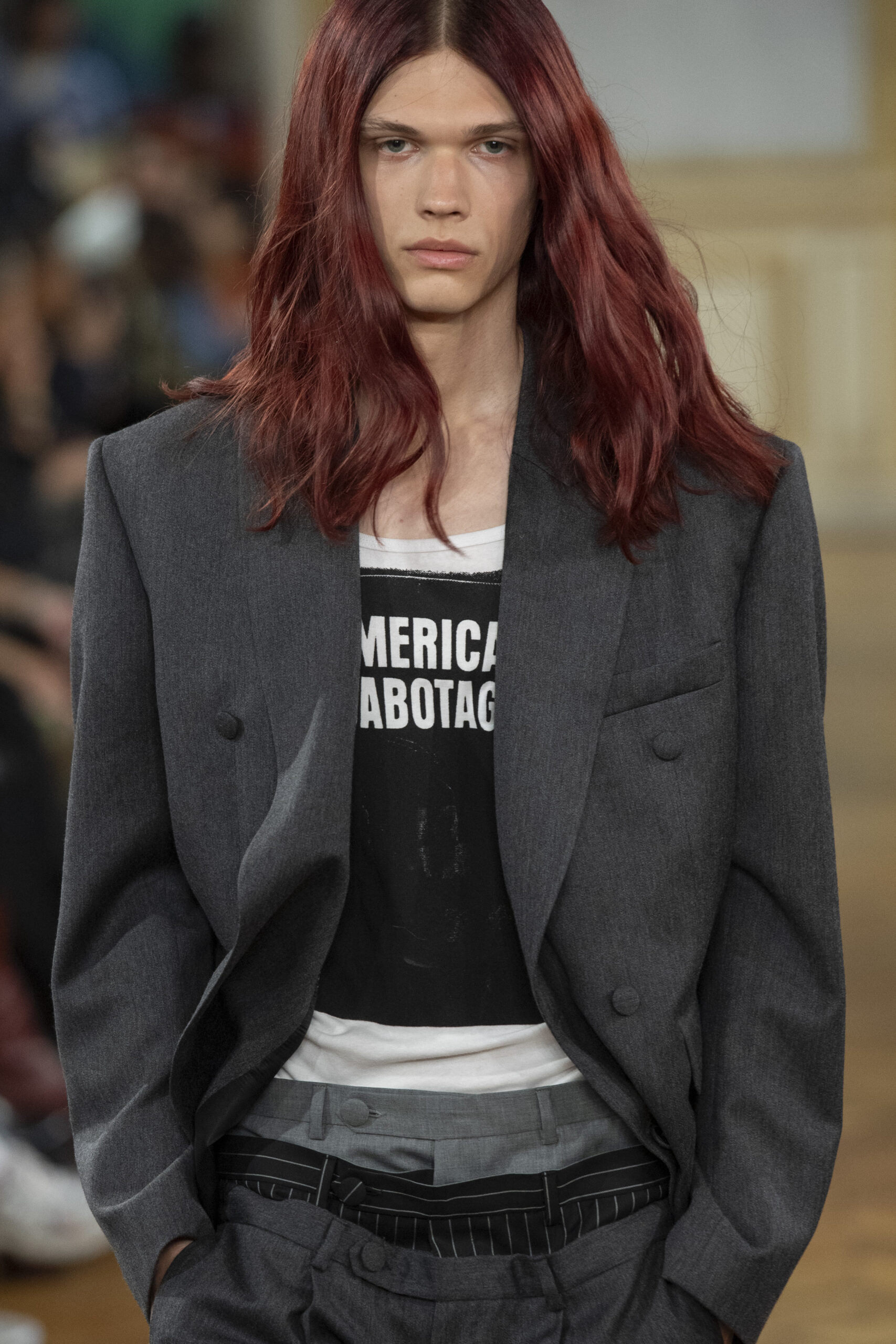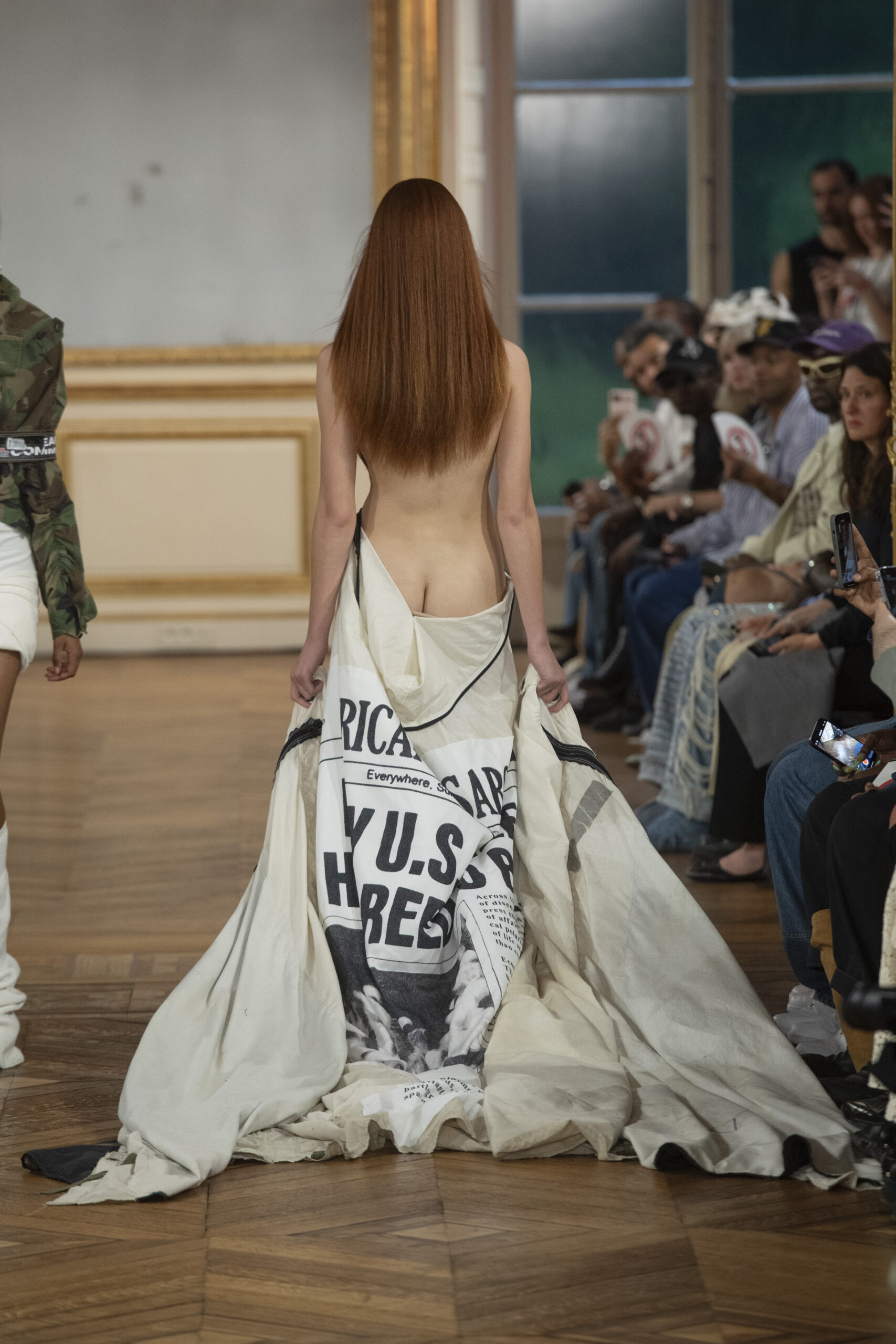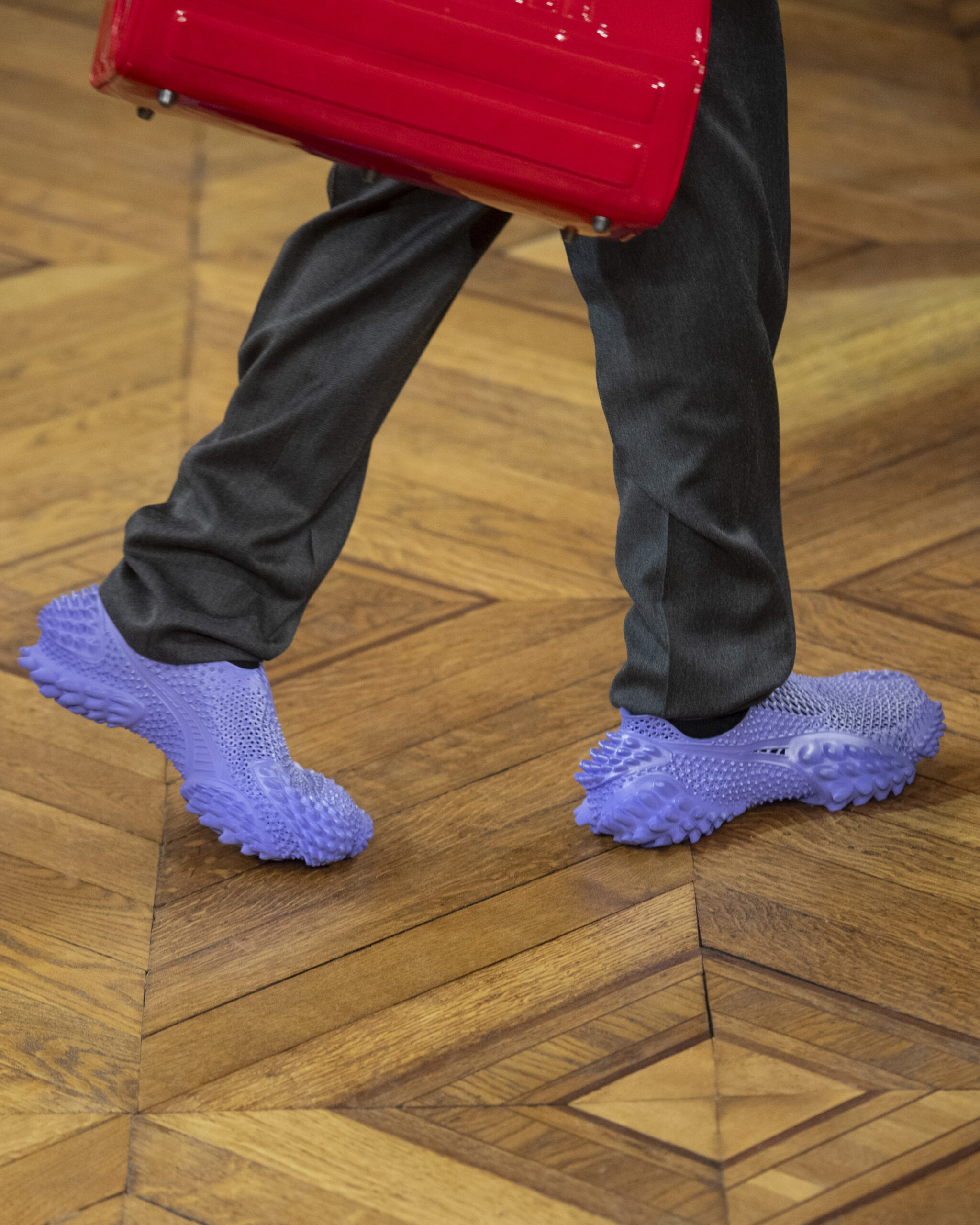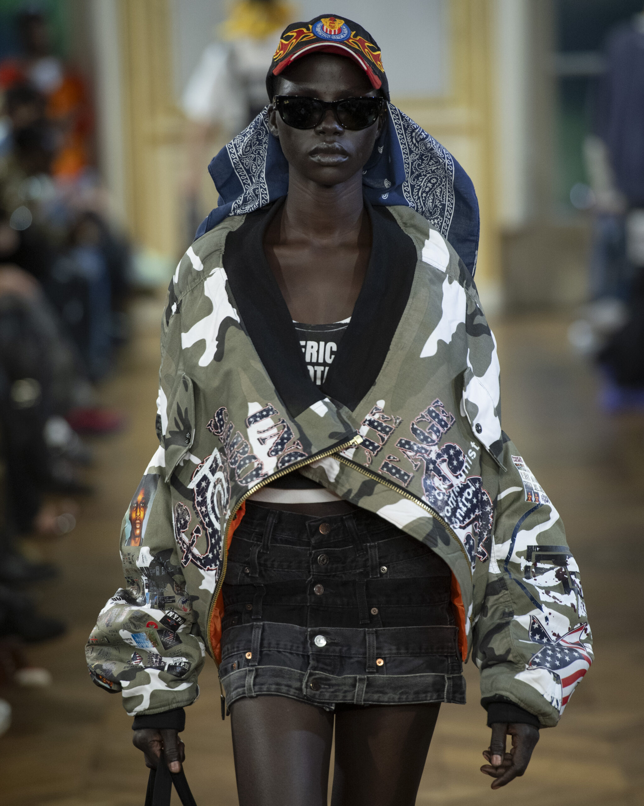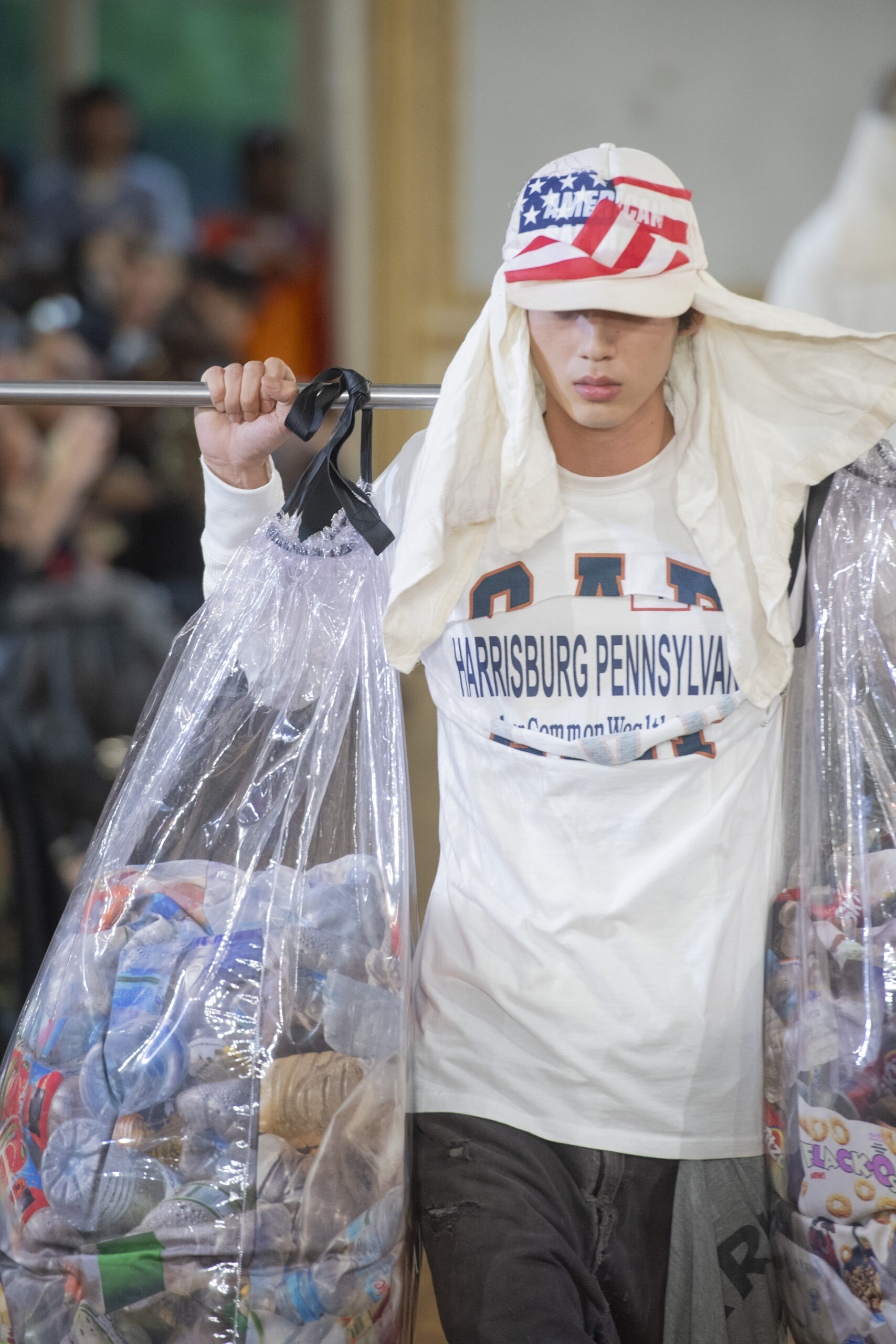 Le décor du défilé, comprenant des sacs poubelles transformés en chaises beanbag issues de la marque de mobilier Hommemade, en collaboration avec Crosby Studios, ajoutait une dimension immersive à cette expérience unique. Le défilé a été rythmé par la bande-son du prochain album d’A$AP Rocky, créant une synergie entre mode et musique.