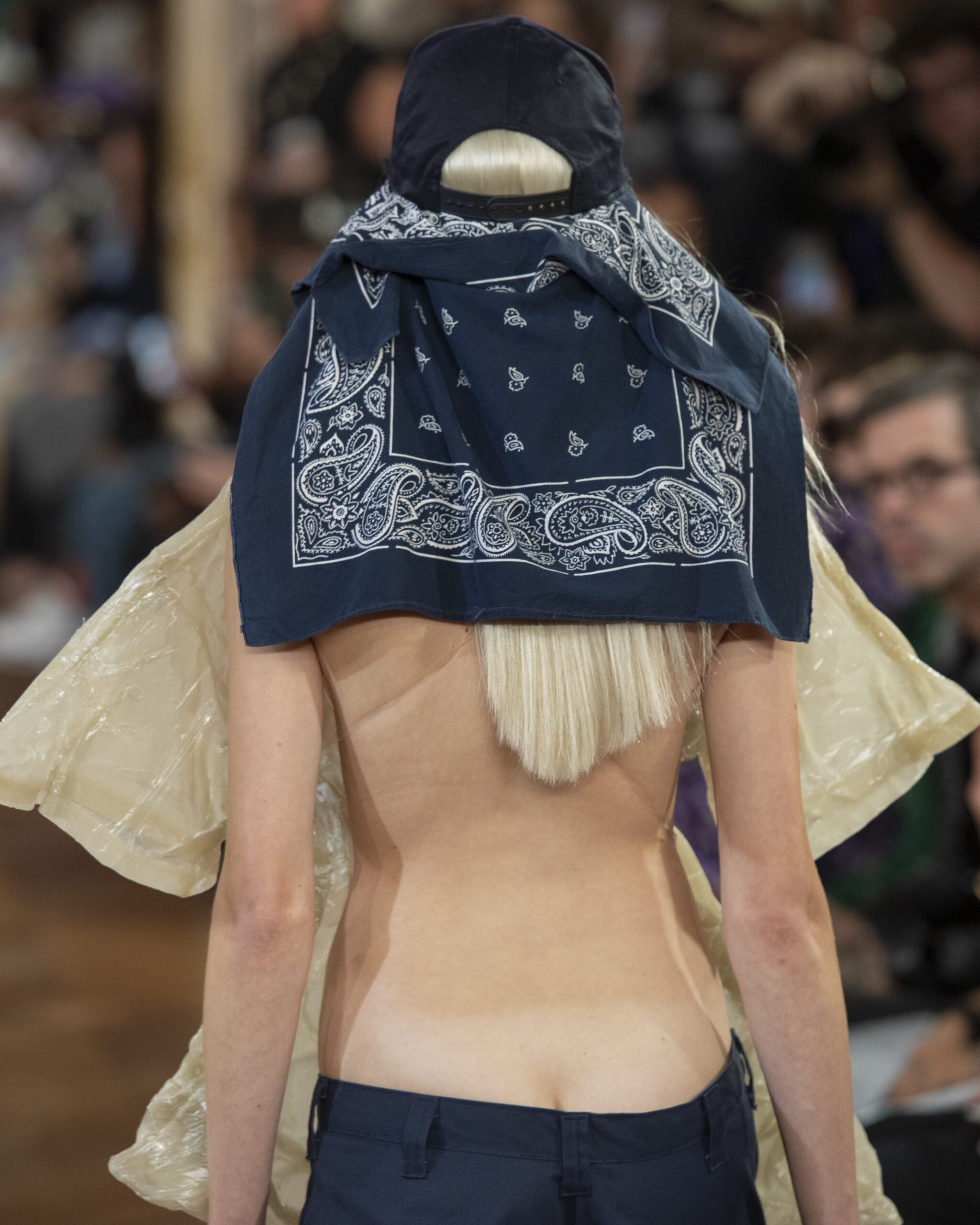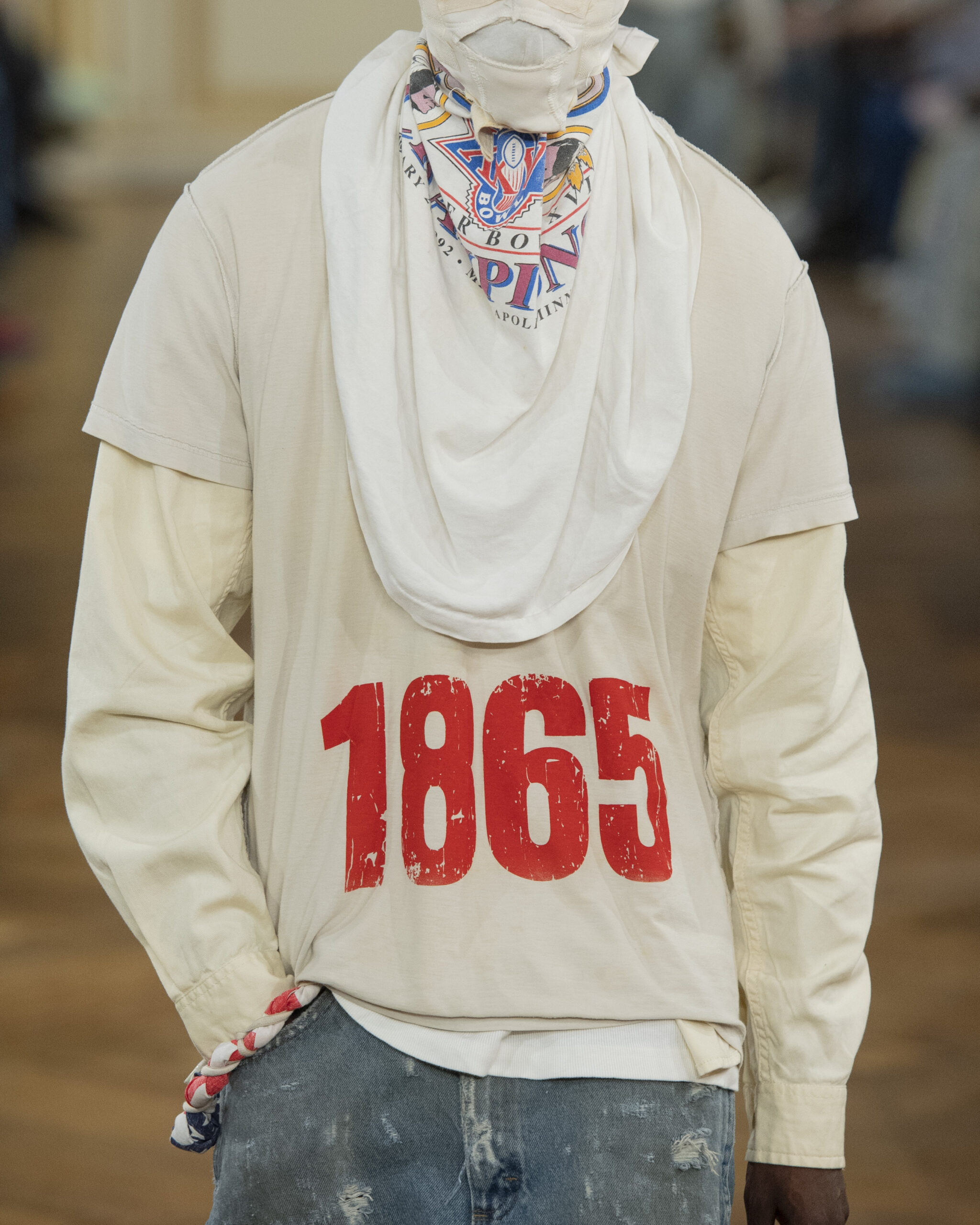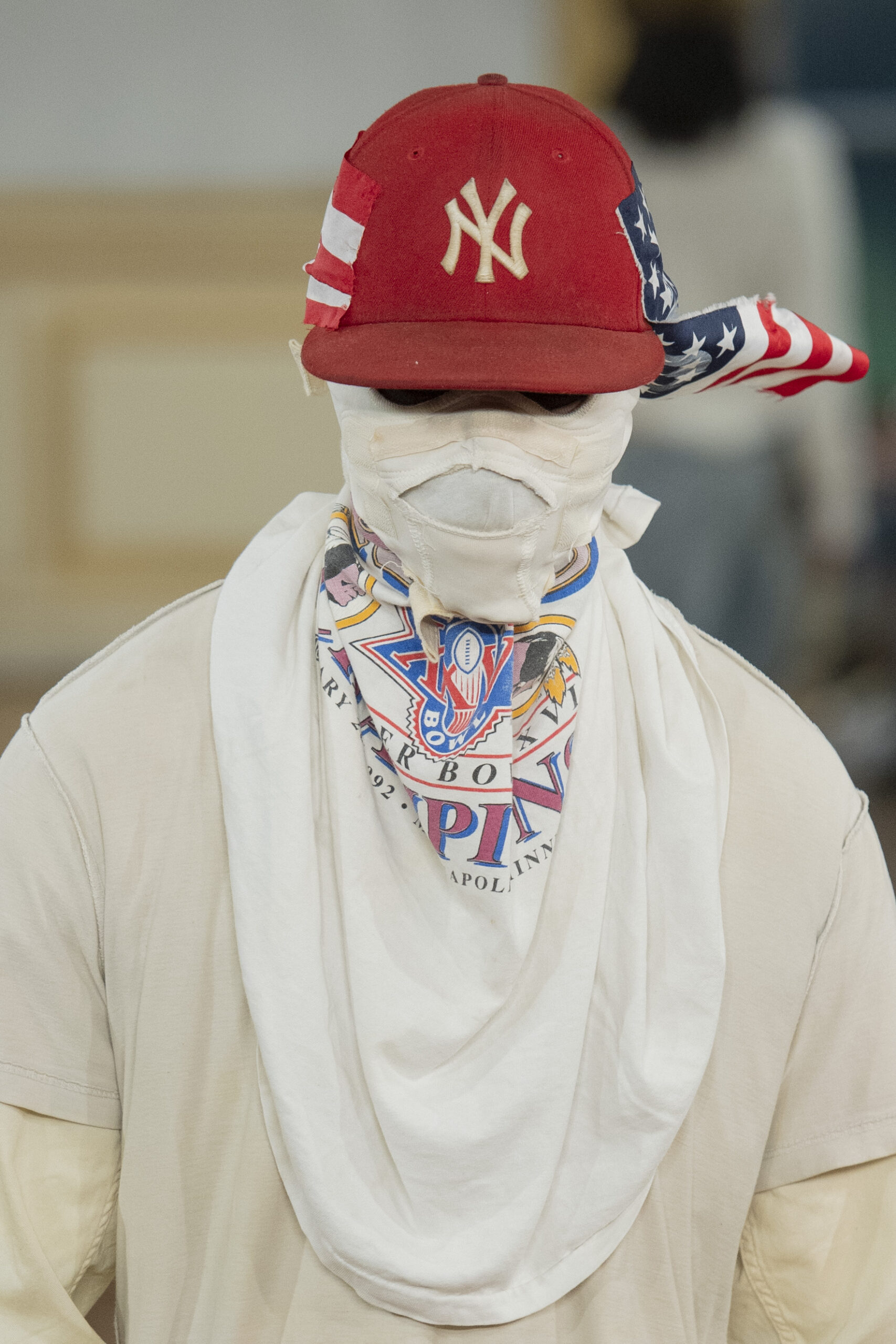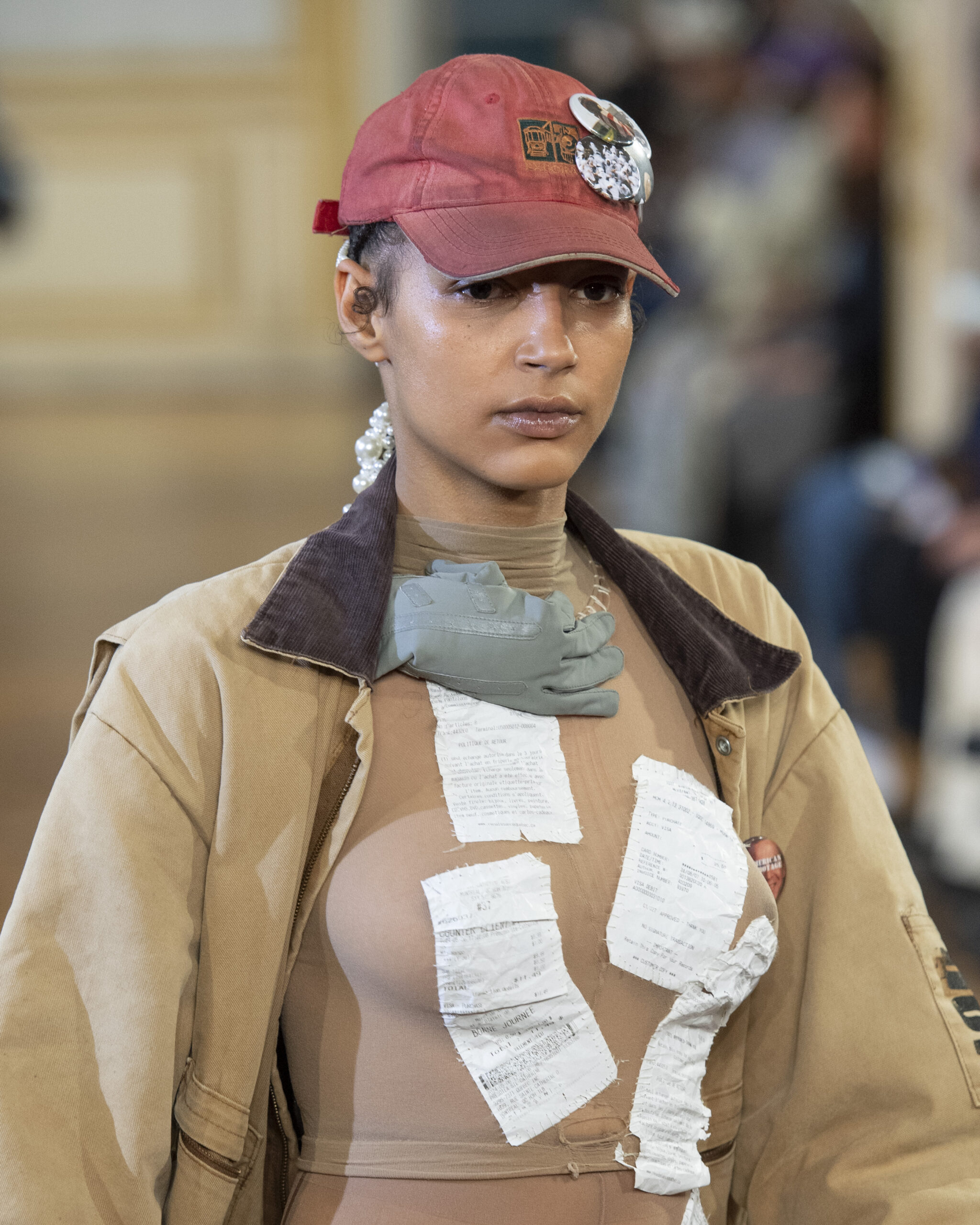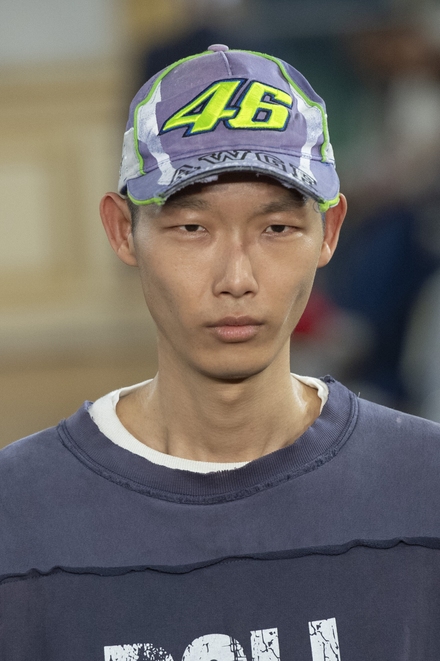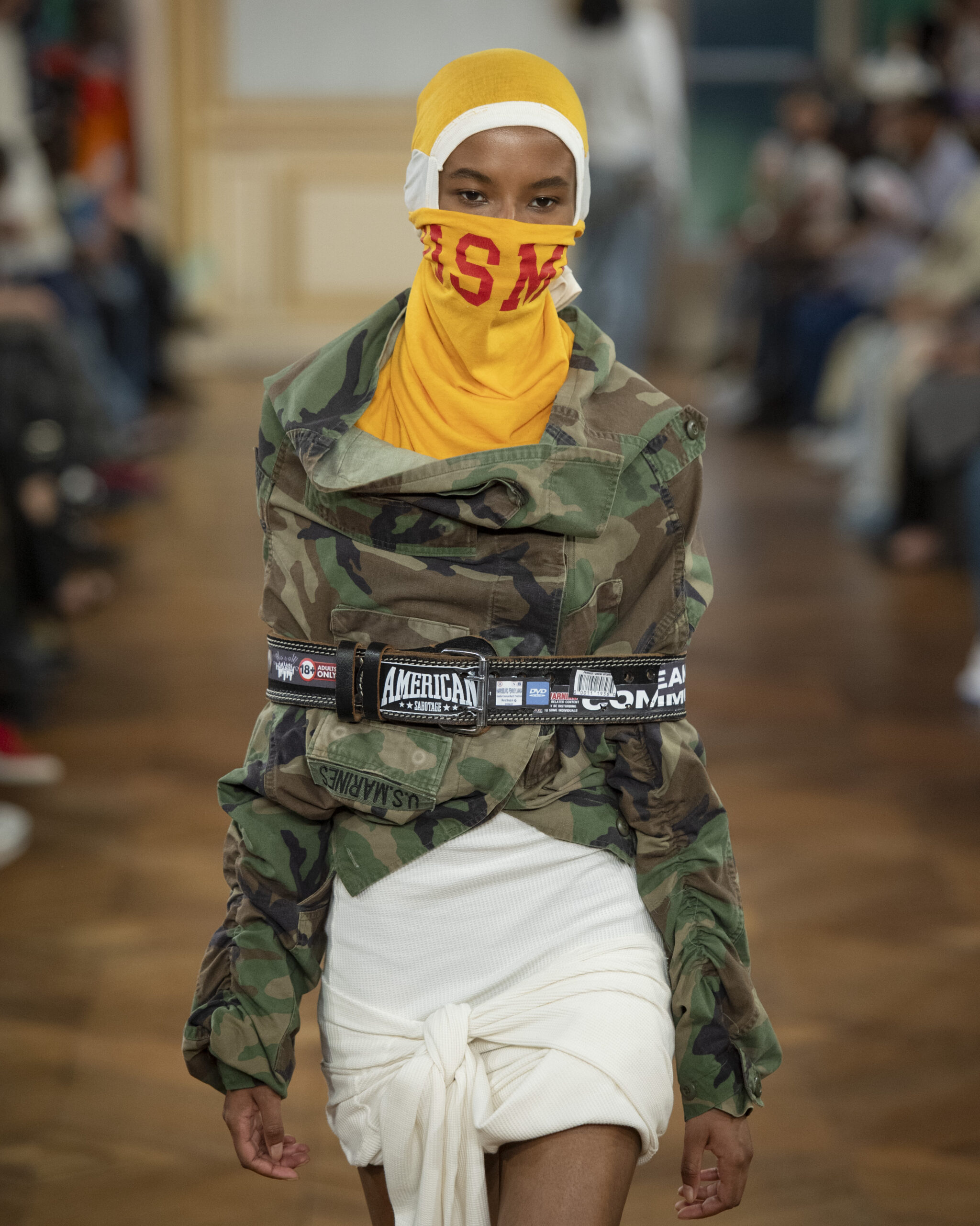 Le décor du défilé, comprenant des sacs poubelles transformés en chaises beanbag issues de la marque de mobilier Hommemade, en collaboration avec Crosby Studios, ajoutait une dimension immersive à cette expérience unique. Le défilé a été rythmé par la bande-son du prochain album d’A$AP Rocky, créant une synergie entre mode et musique.