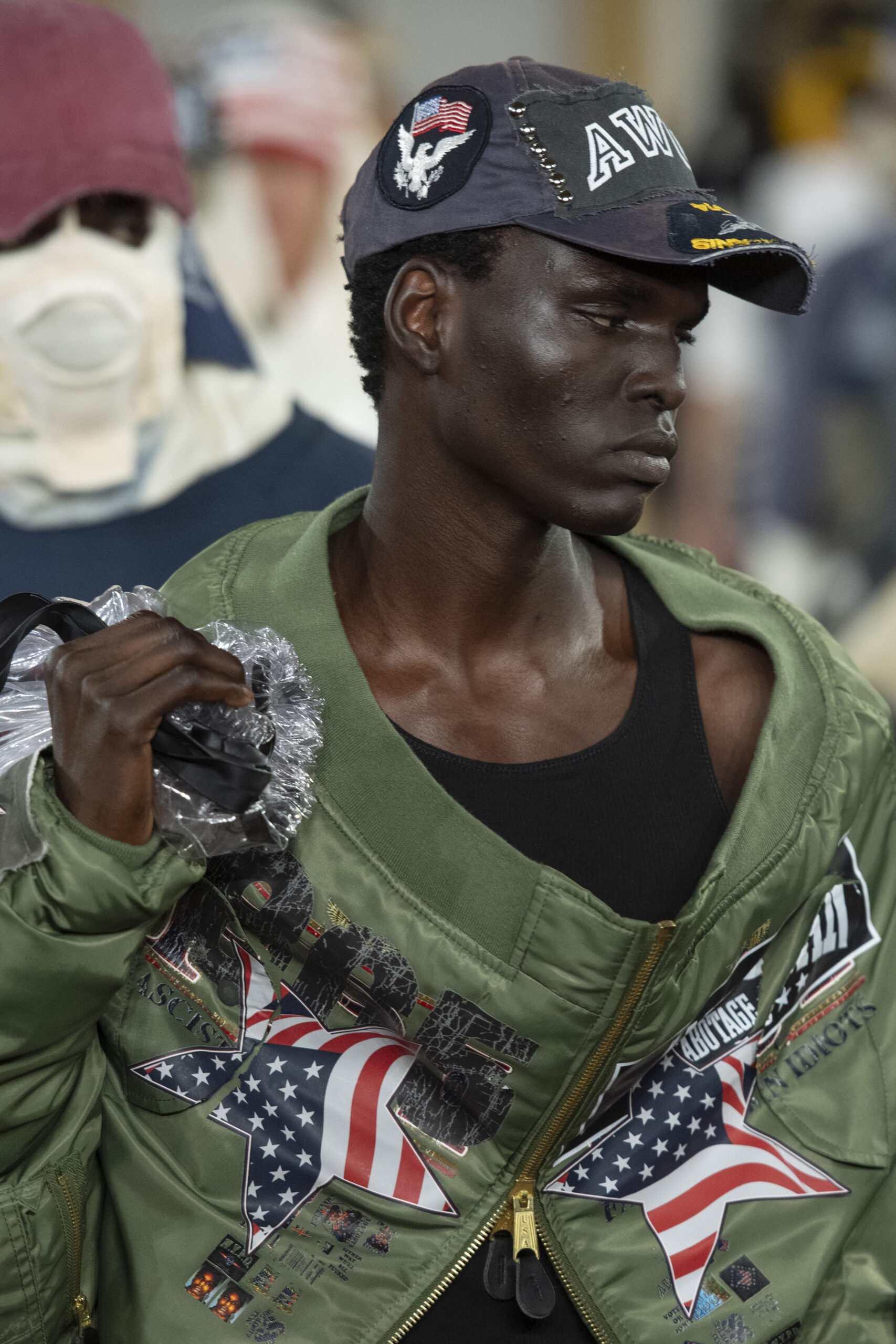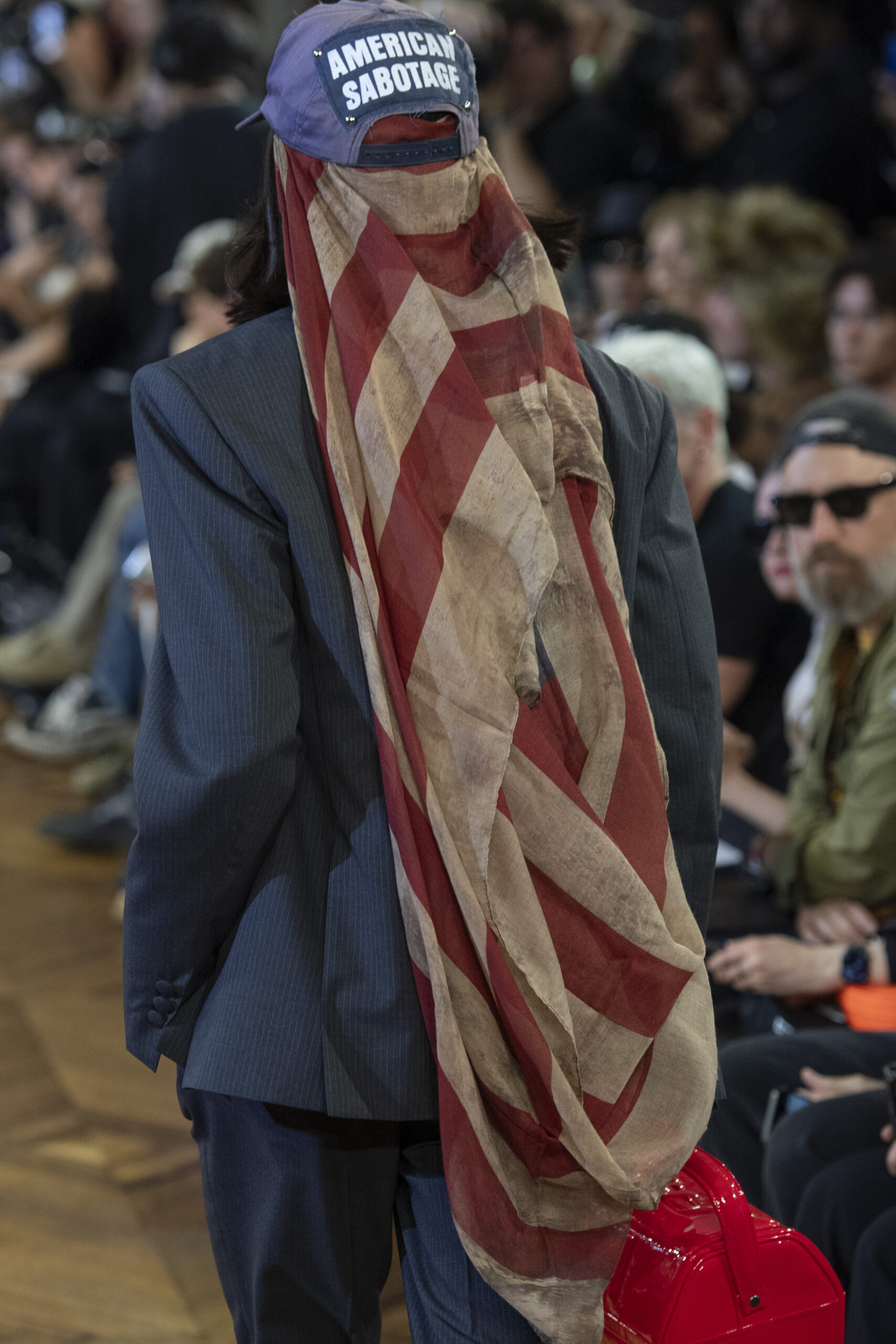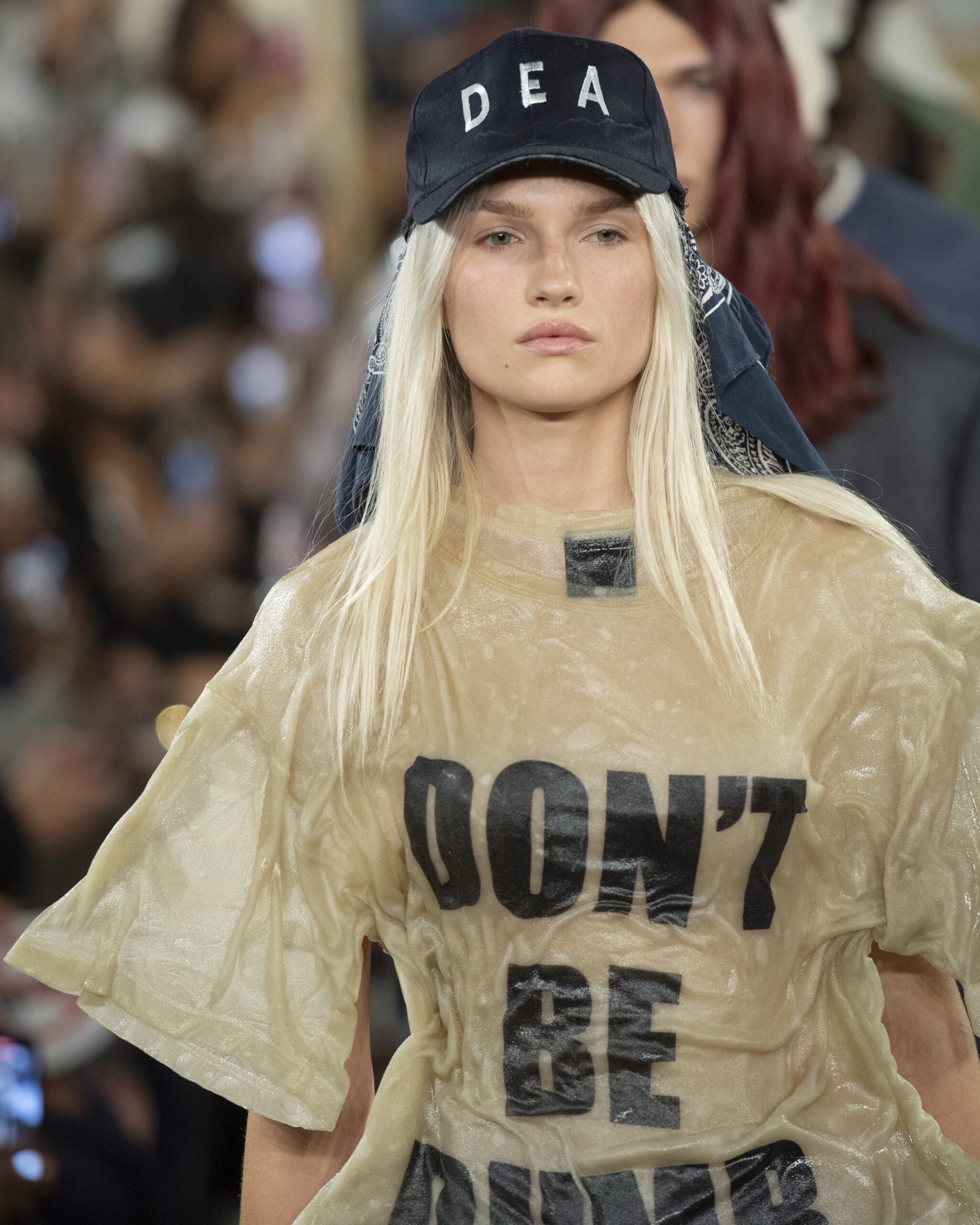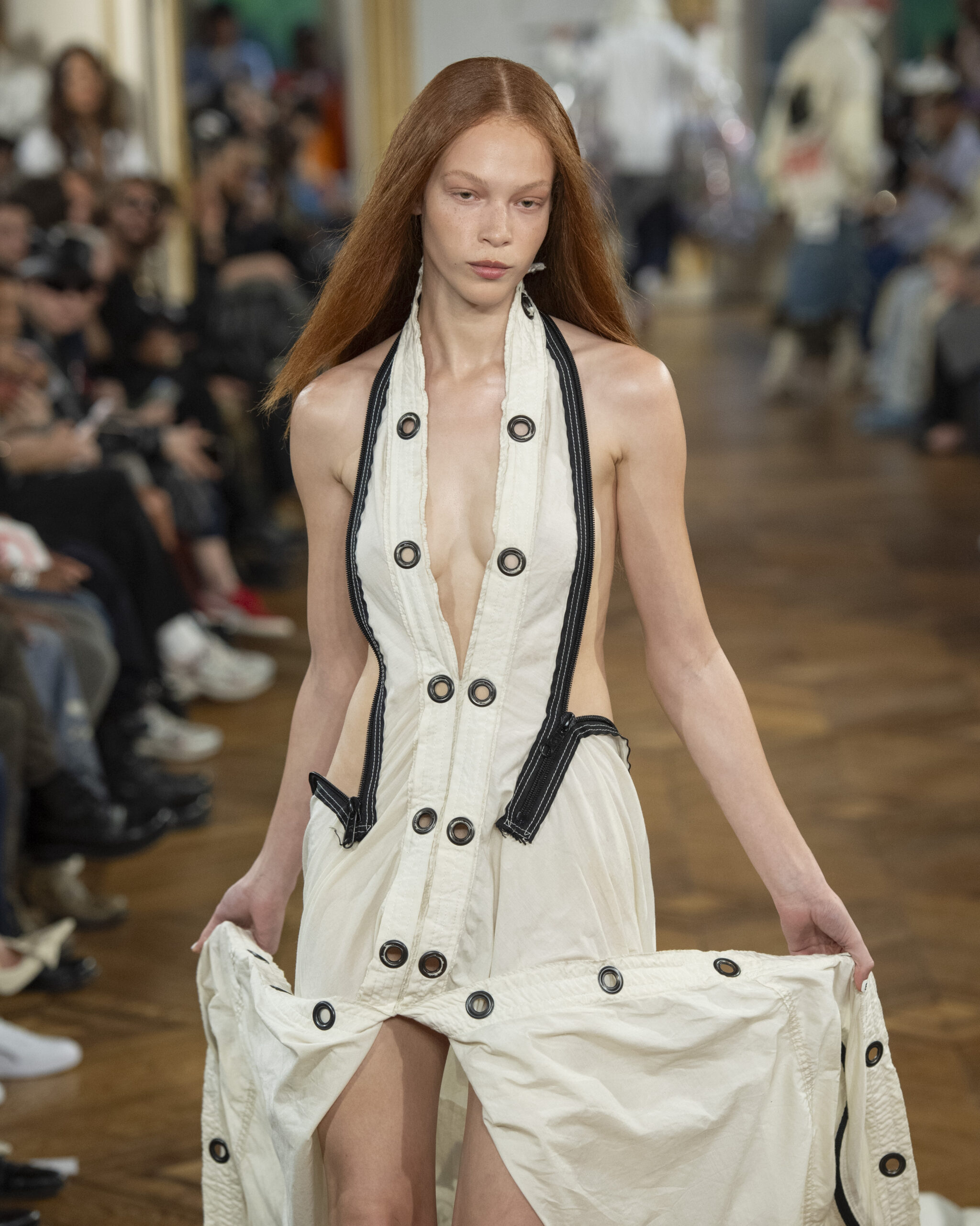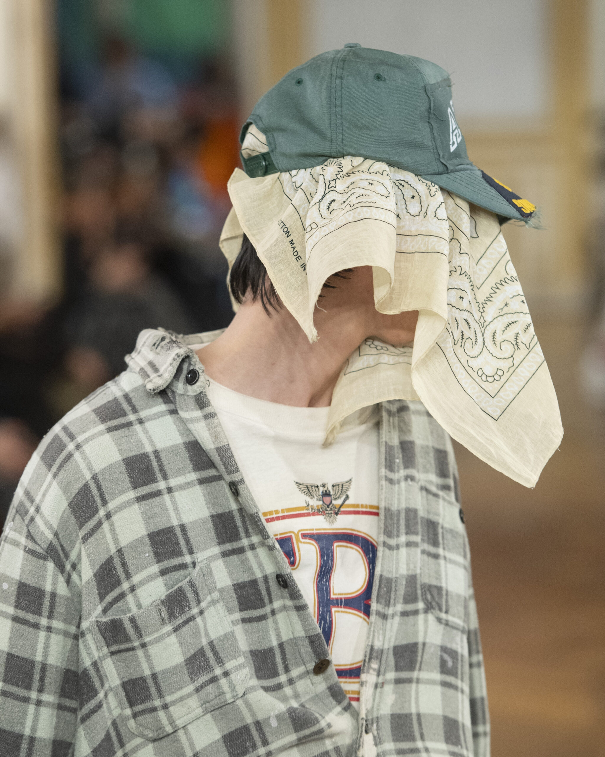 Le décor du défilé, comprenant des sacs poubelles transformés en chaises beanbag issues de la marque de mobilier Hommemade, en collaboration avec Crosby Studios, ajoutait une dimension immersive à cette expérience unique. Le défilé a été rythmé par la bande-son du prochain album d’A$AP Rocky, créant une synergie entre mode et musique.