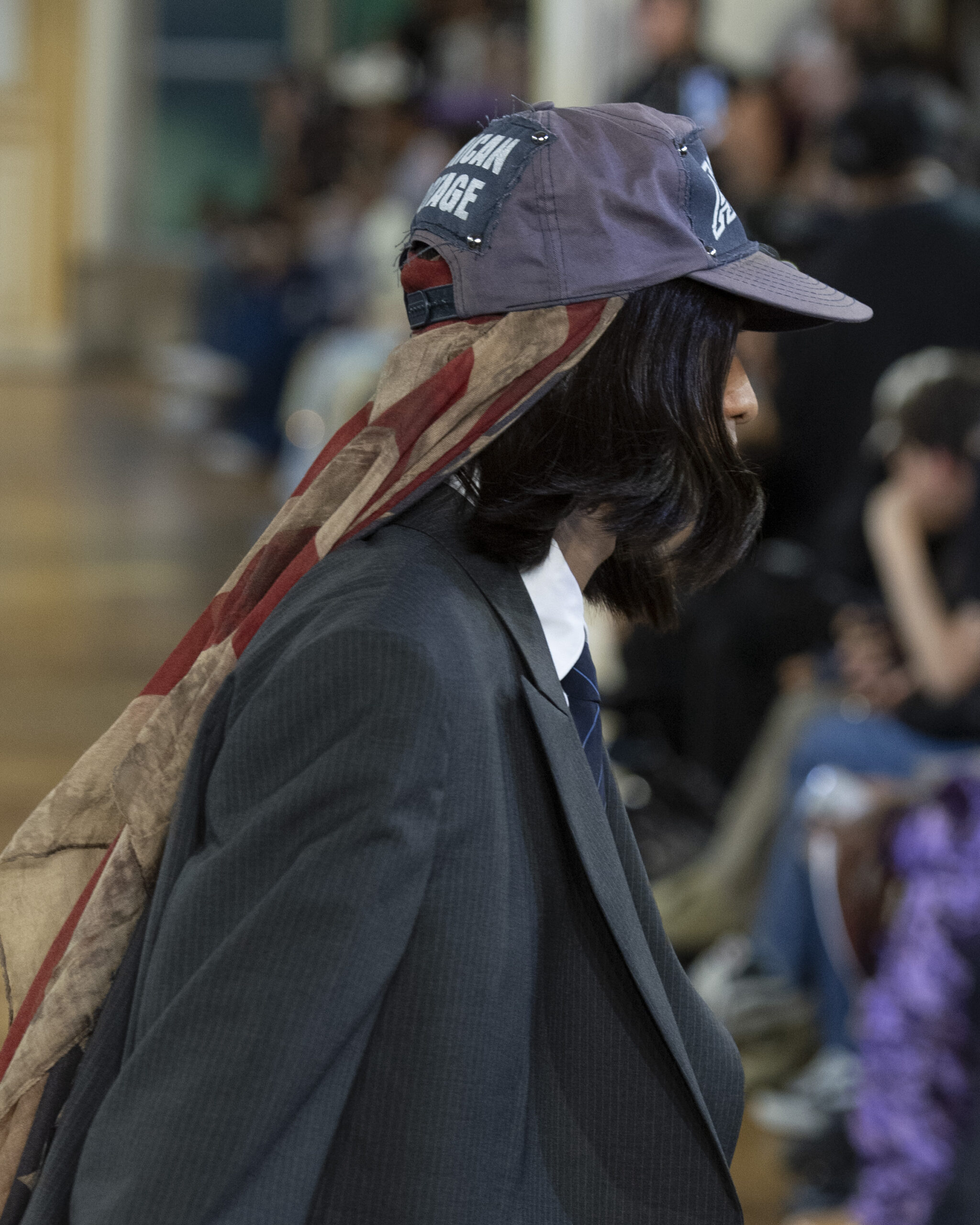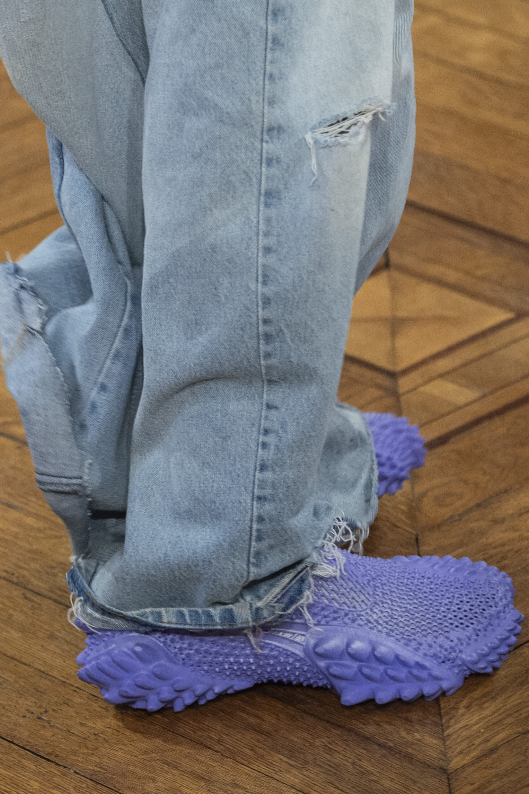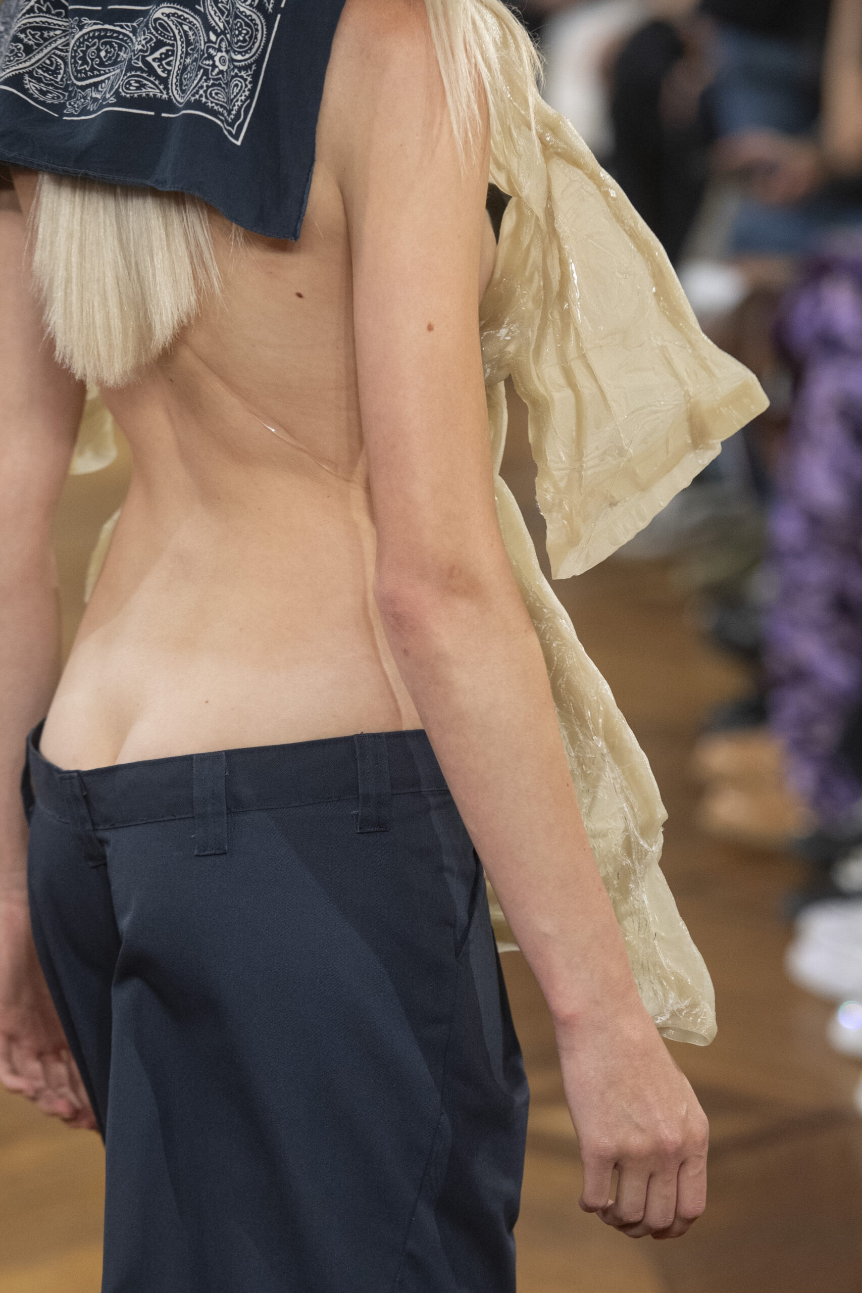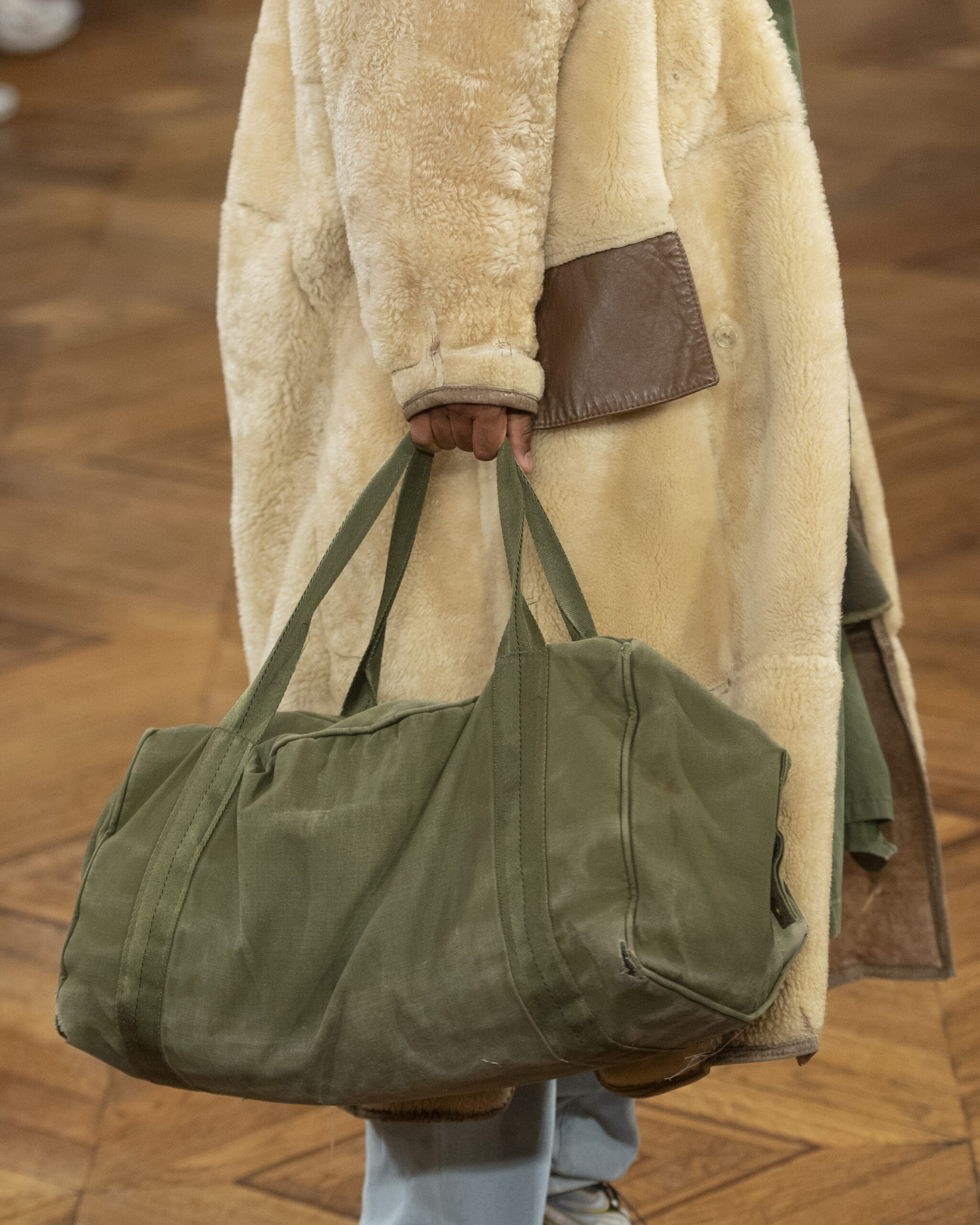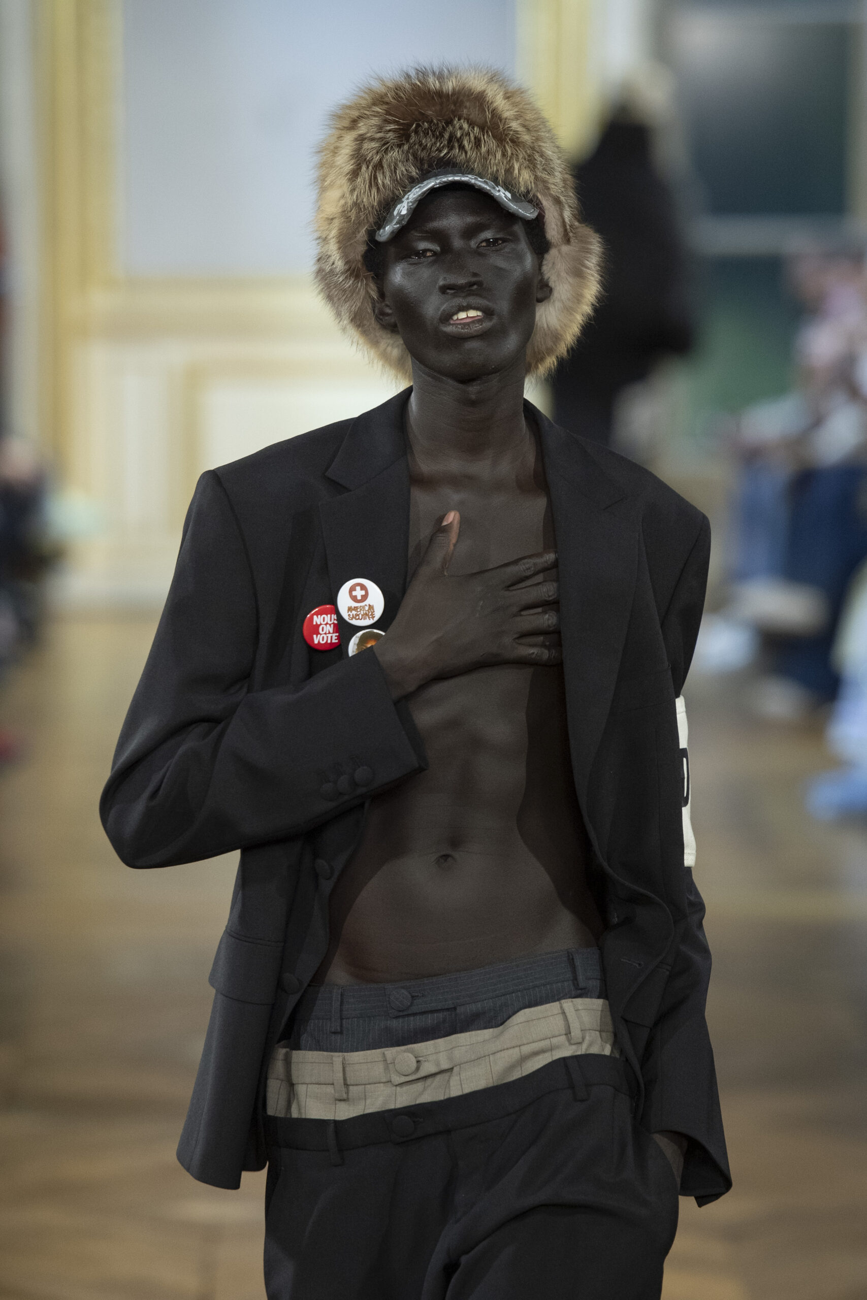 Le décor du défilé, comprenant des sacs poubelles transformés en chaises beanbag issues de la marque de mobilier Hommemade, en collaboration avec Crosby Studios, ajoutait une dimension immersive à cette expérience unique. Le défilé a été rythmé par la bande-son du prochain album d’A$AP Rocky, créant une synergie entre mode et musique.