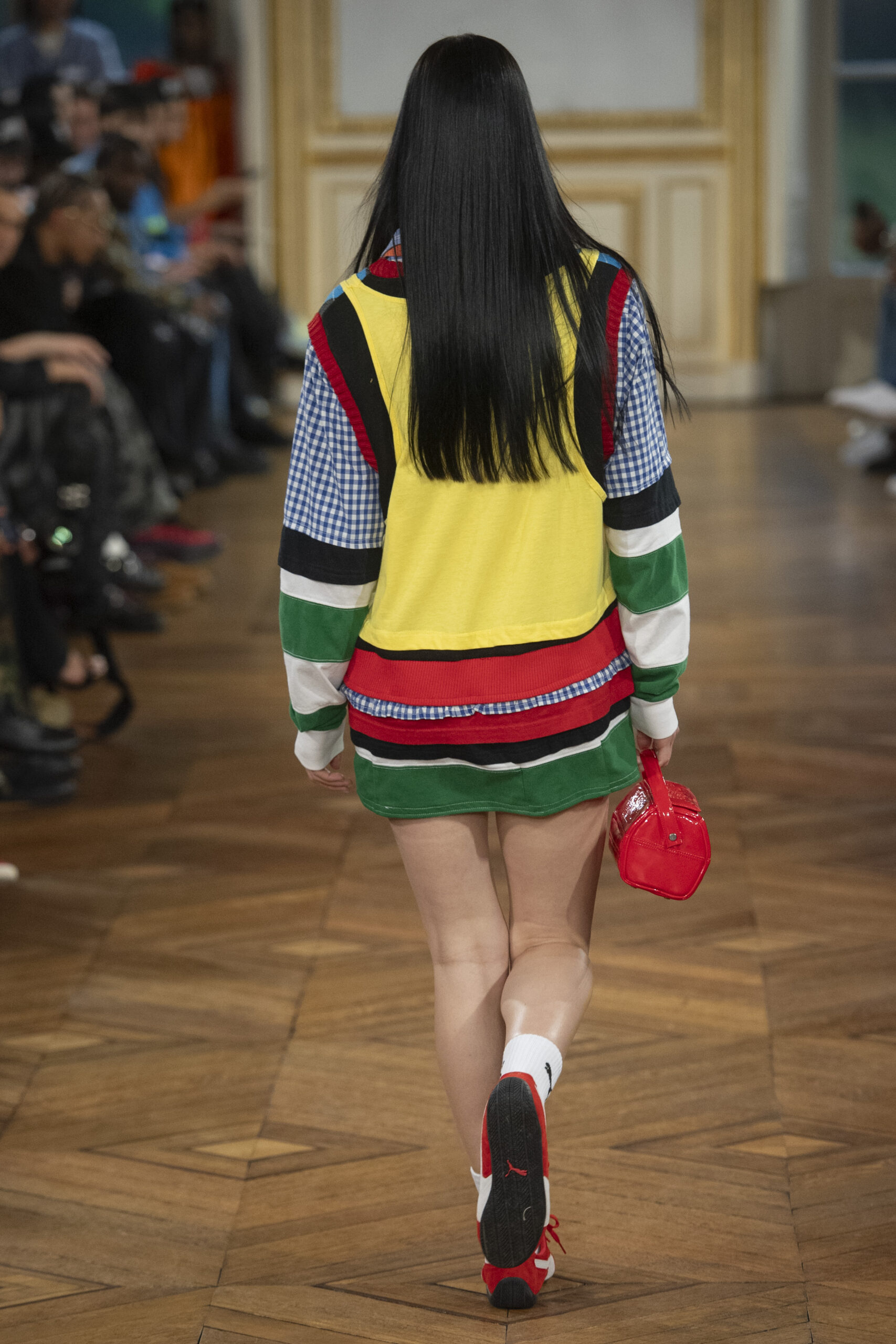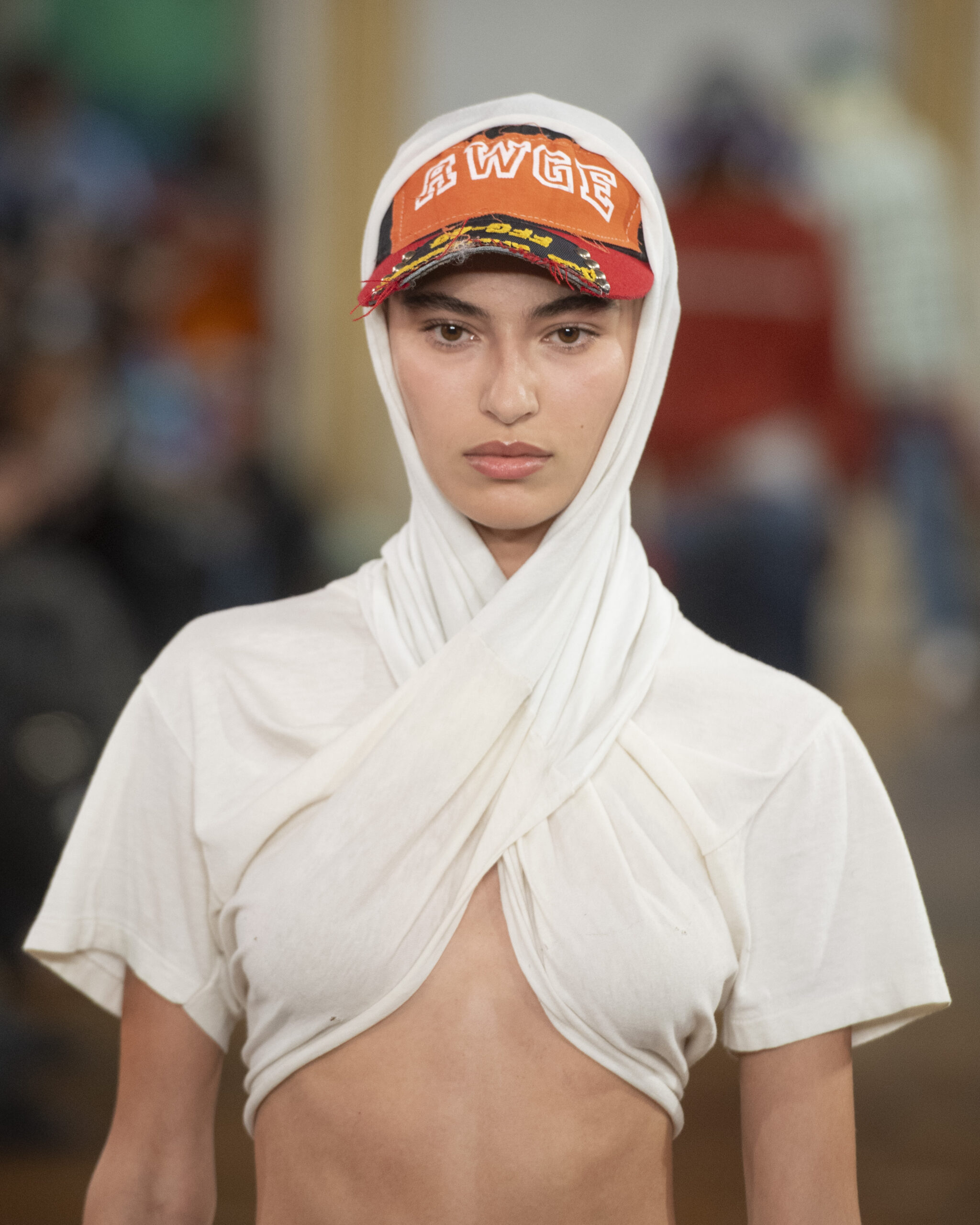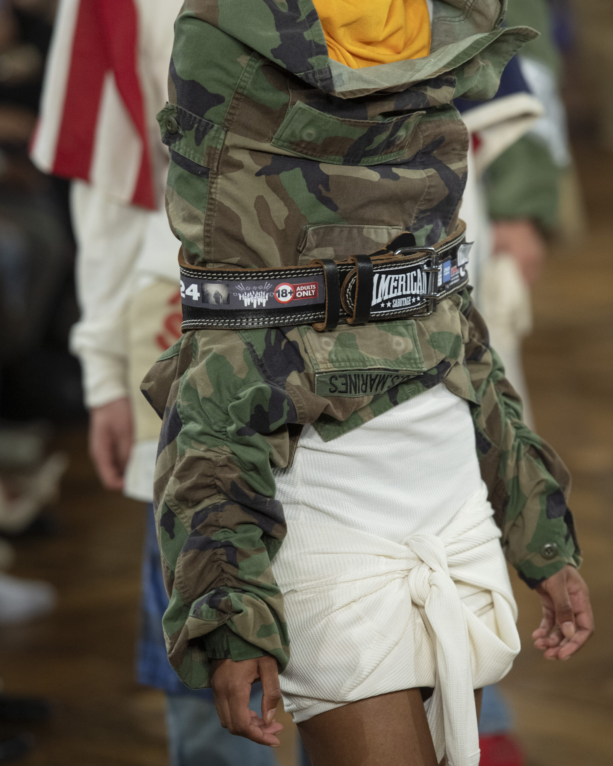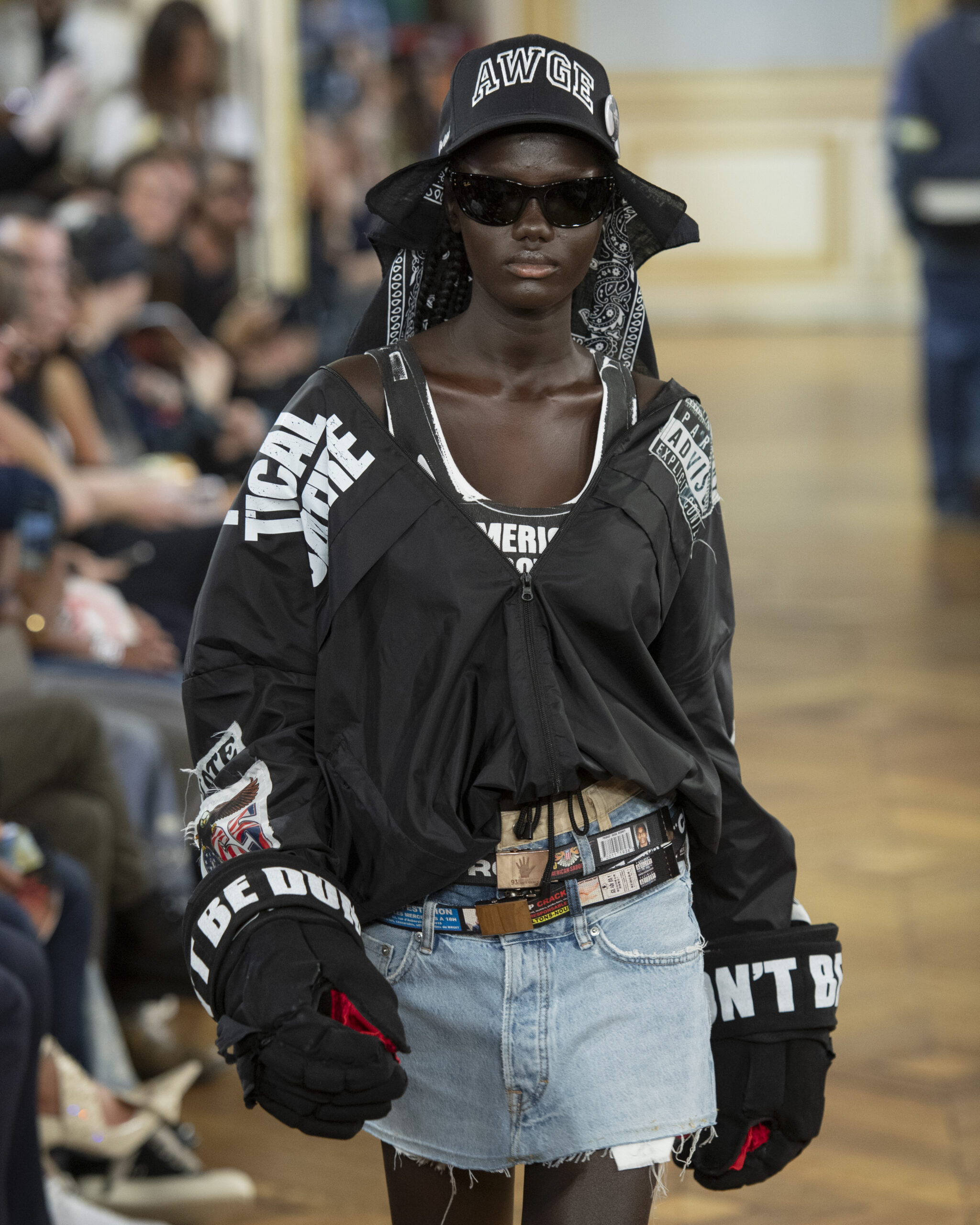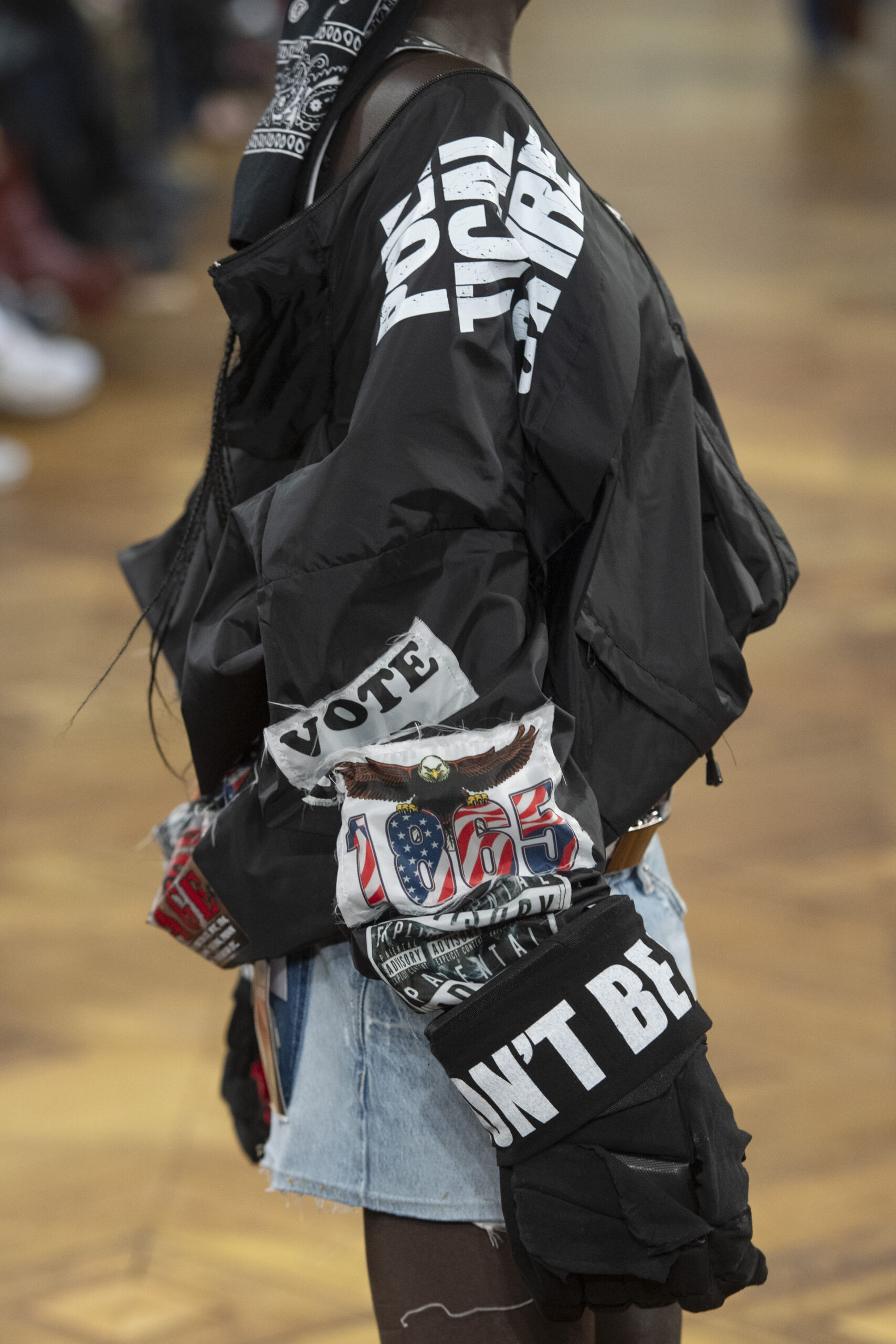 Le décor du défilé, comprenant des sacs poubelles transformés en chaises beanbag issues de la marque de mobilier Hommemade, en collaboration avec Crosby Studios, ajoutait une dimension immersive à cette expérience unique. Le défilé a été rythmé par la bande-son du prochain album d’A$AP Rocky, créant une synergie entre mode et musique.
