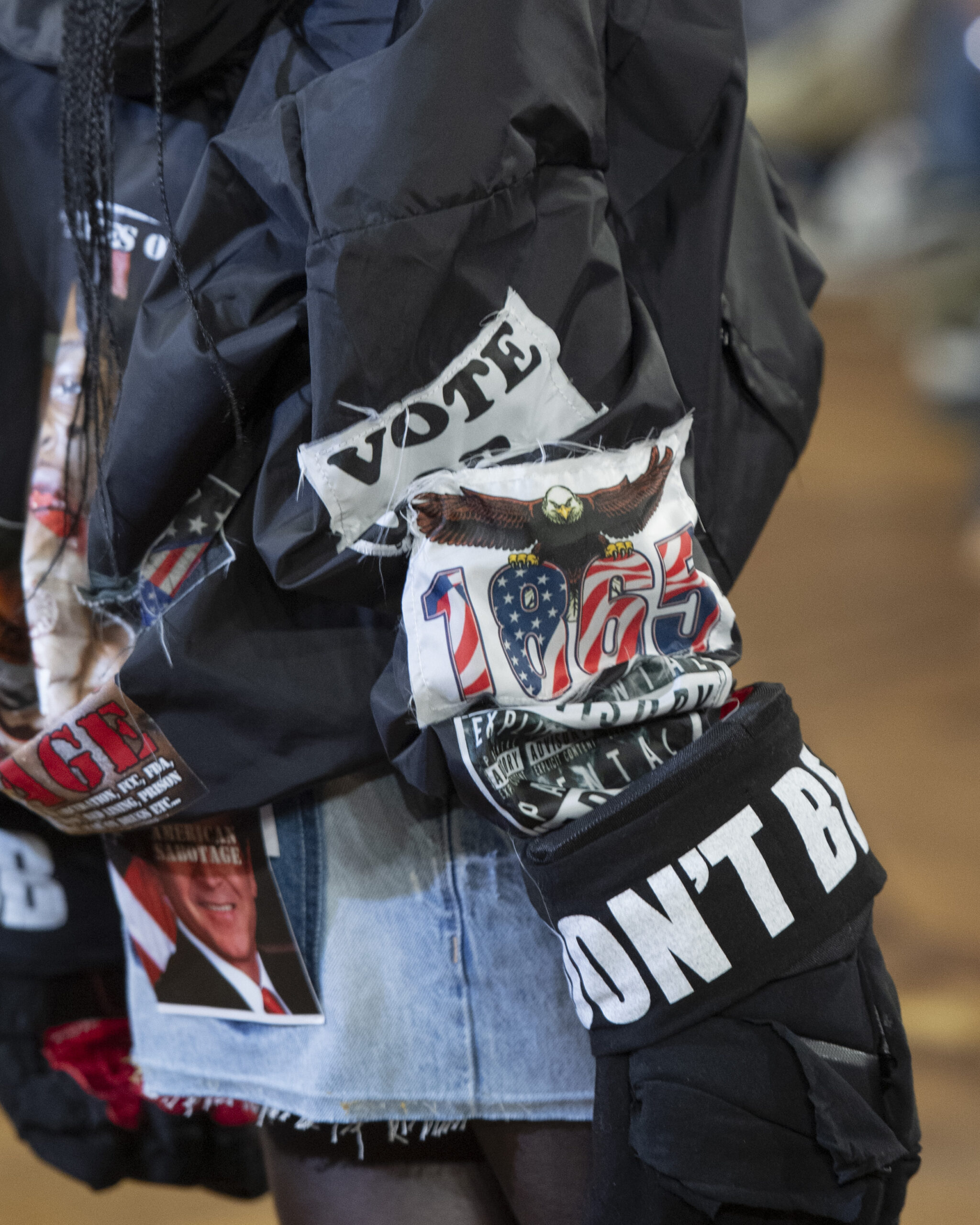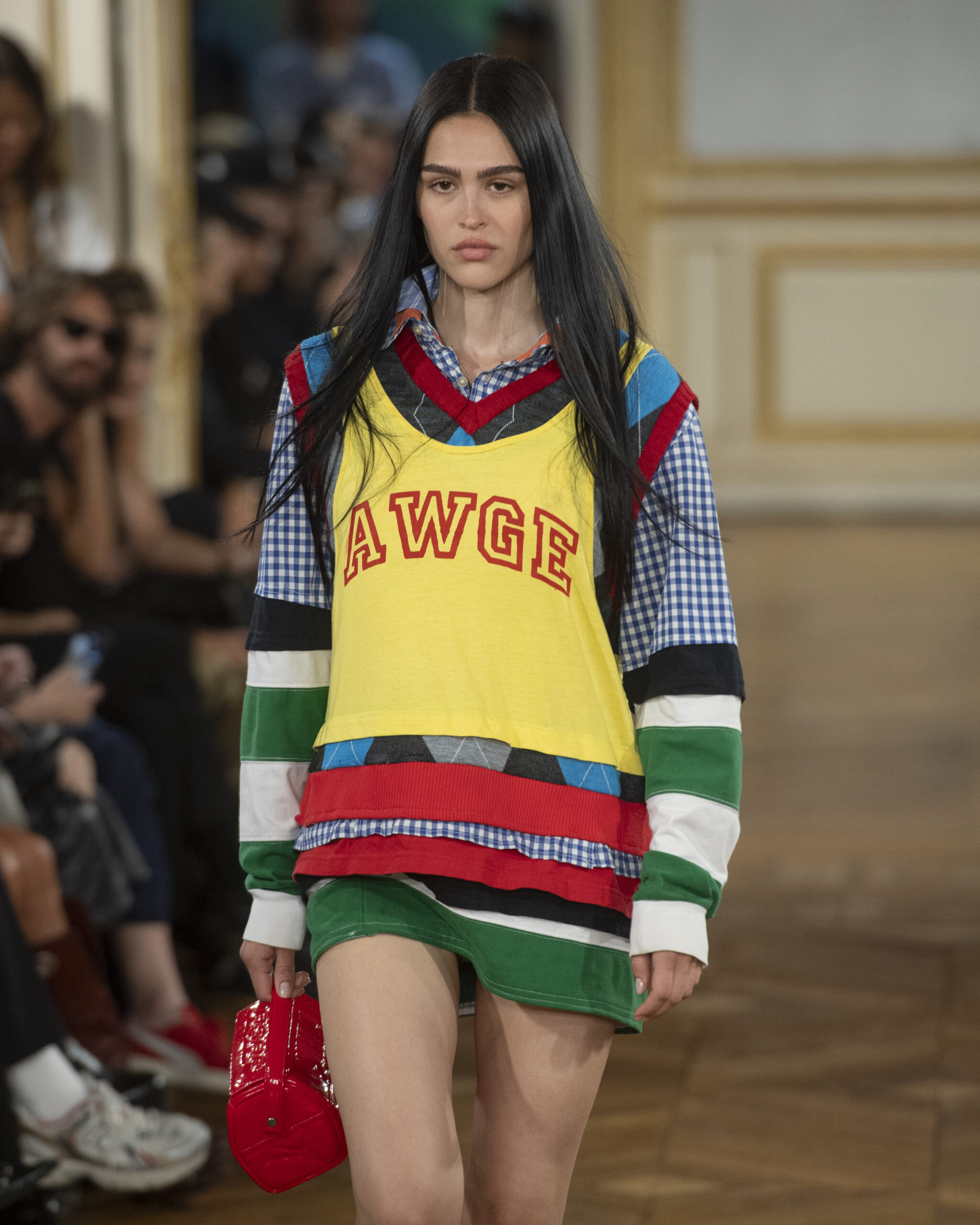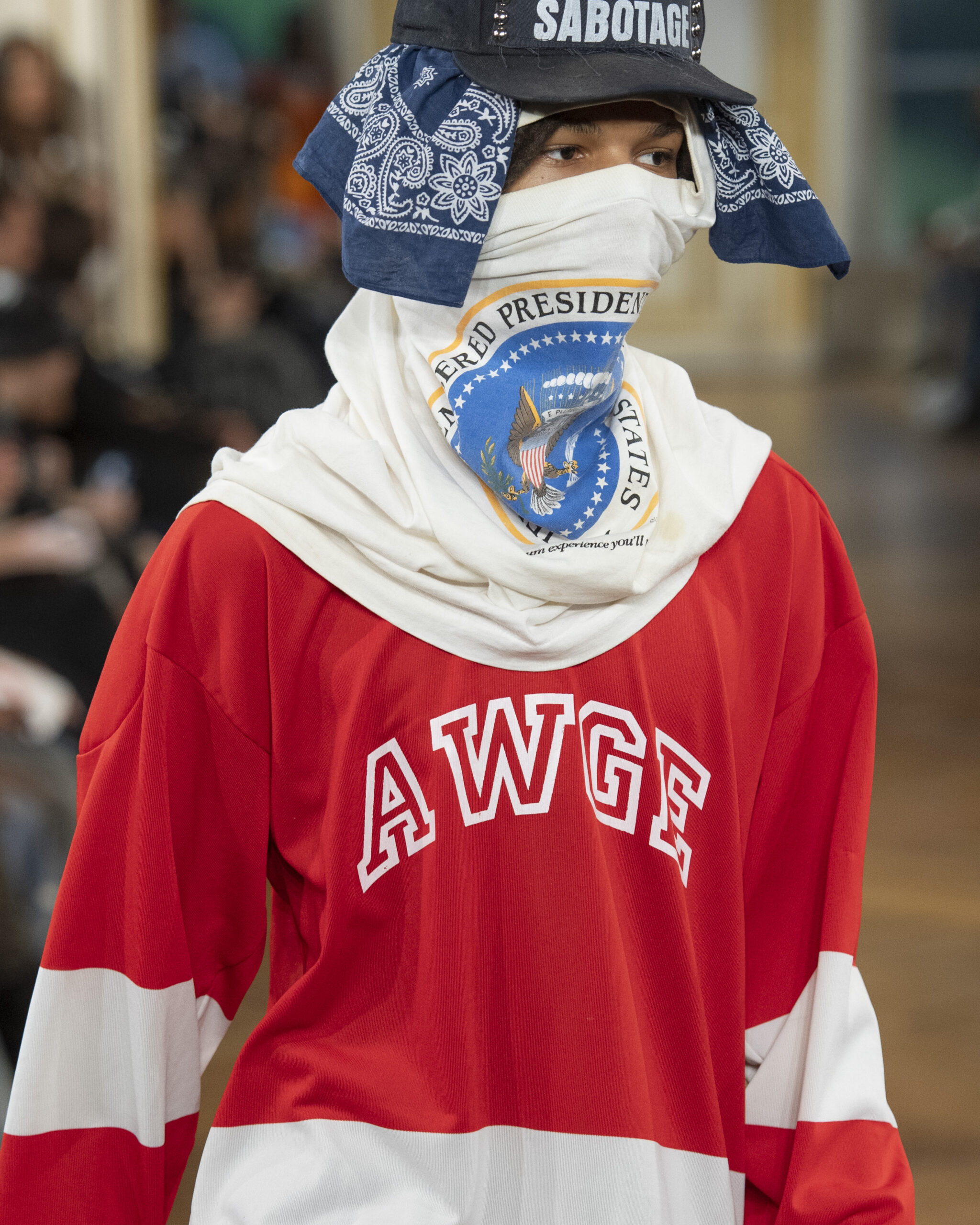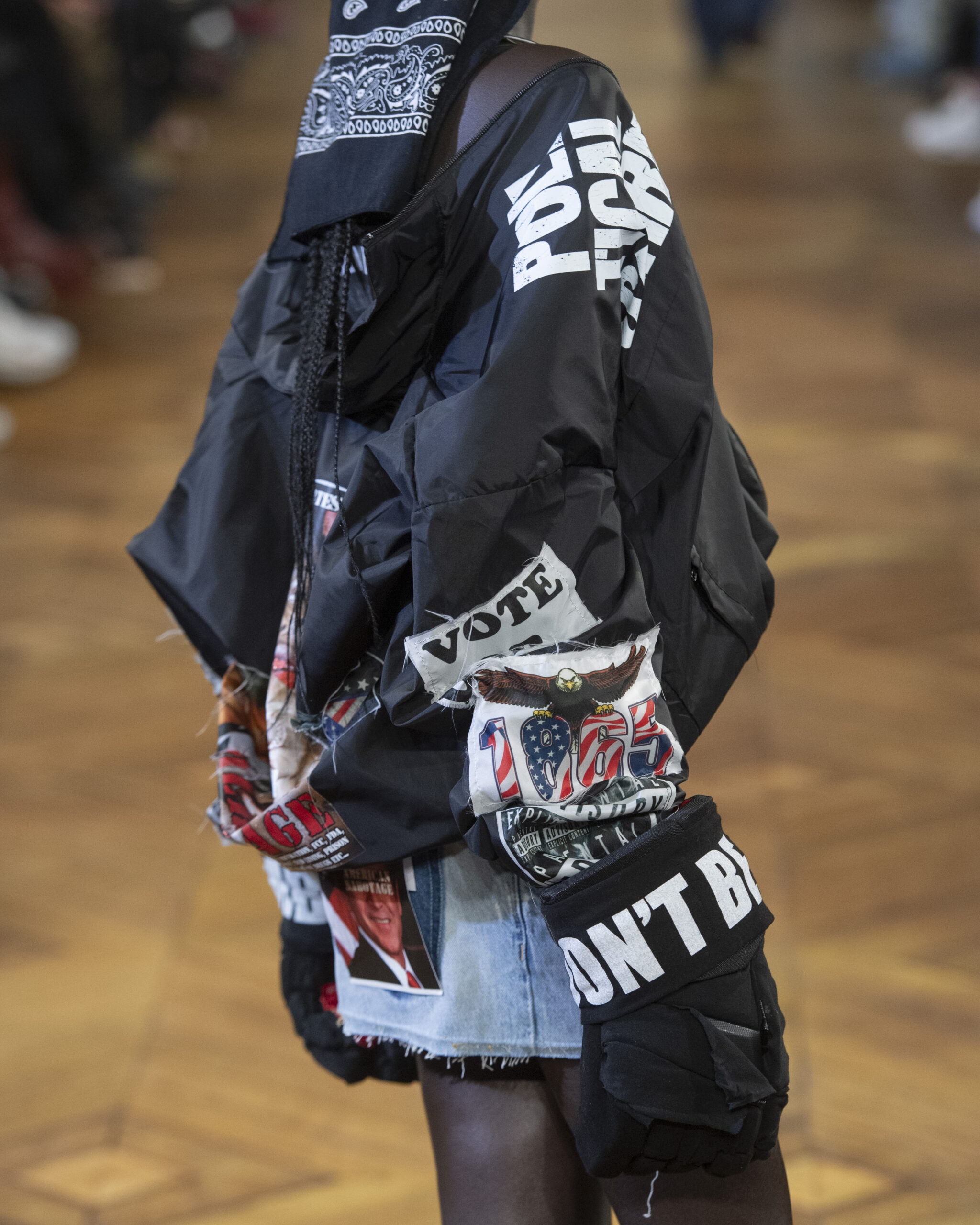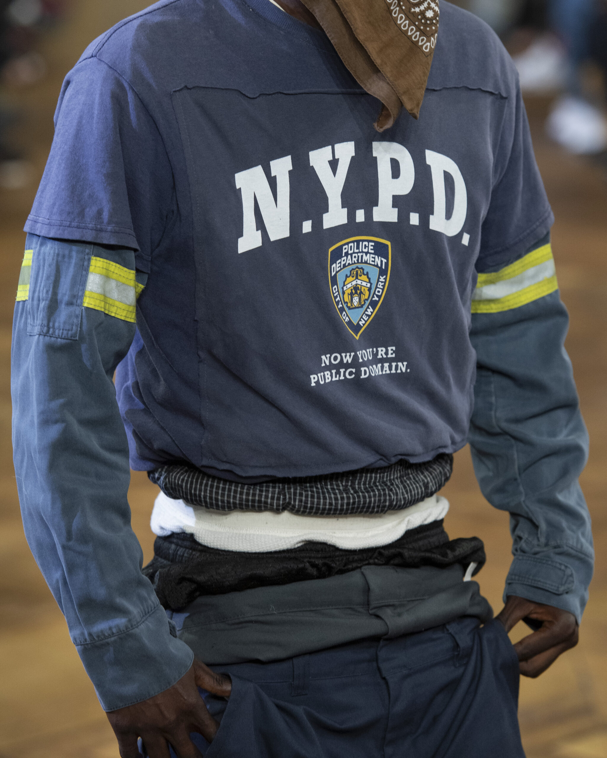 Le décor du défilé, comprenant des sacs poubelles transformés en chaises beanbag issues de la marque de mobilier Hommemade, en collaboration avec Crosby Studios, ajoutait une dimension immersive à cette expérience unique. Le défilé a été rythmé par la bande-son du prochain album d’A$AP Rocky, créant une synergie entre mode et musique.