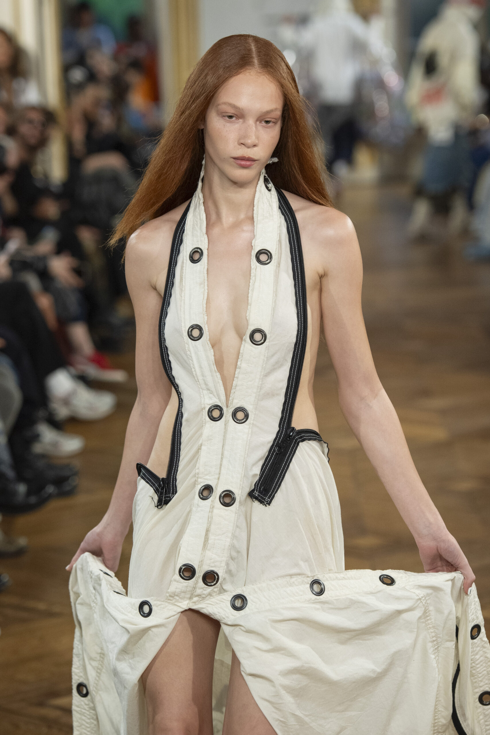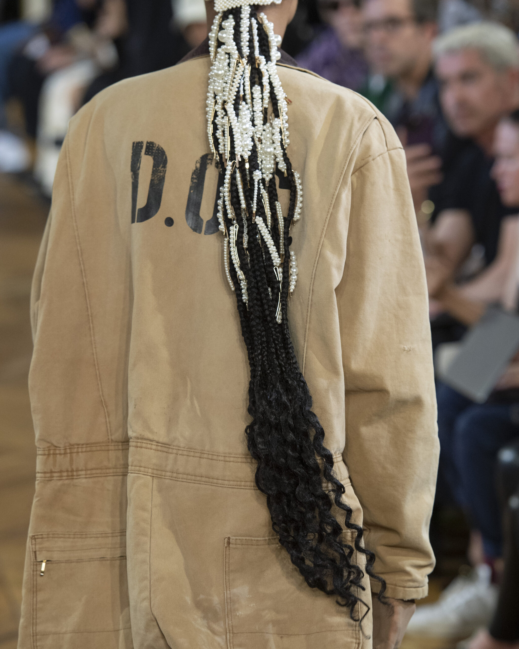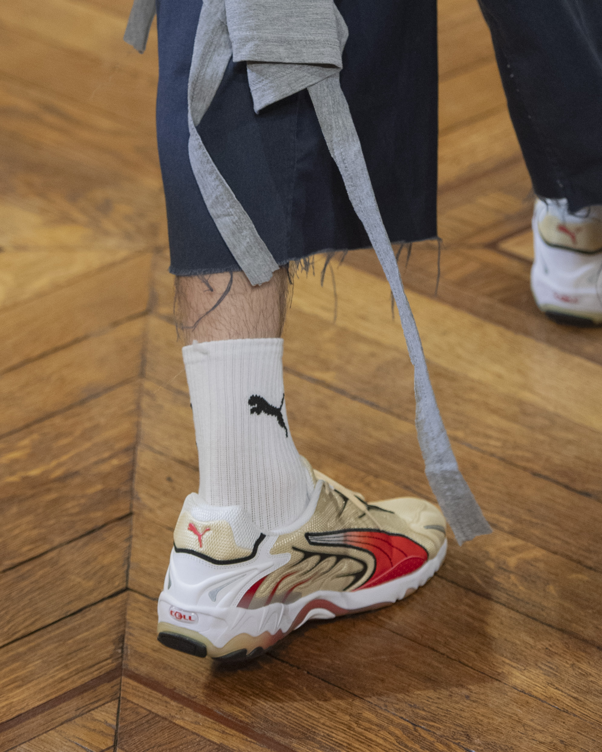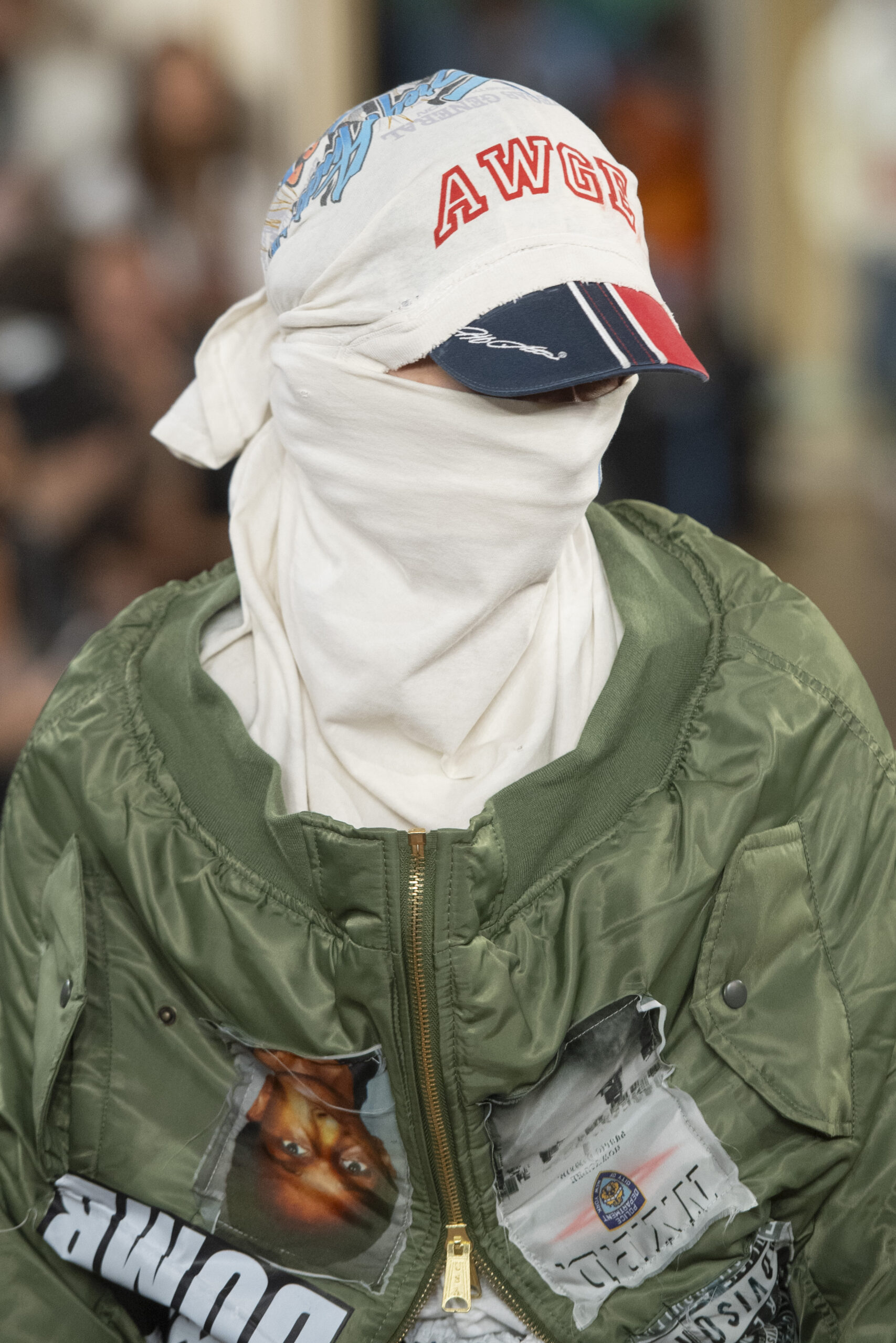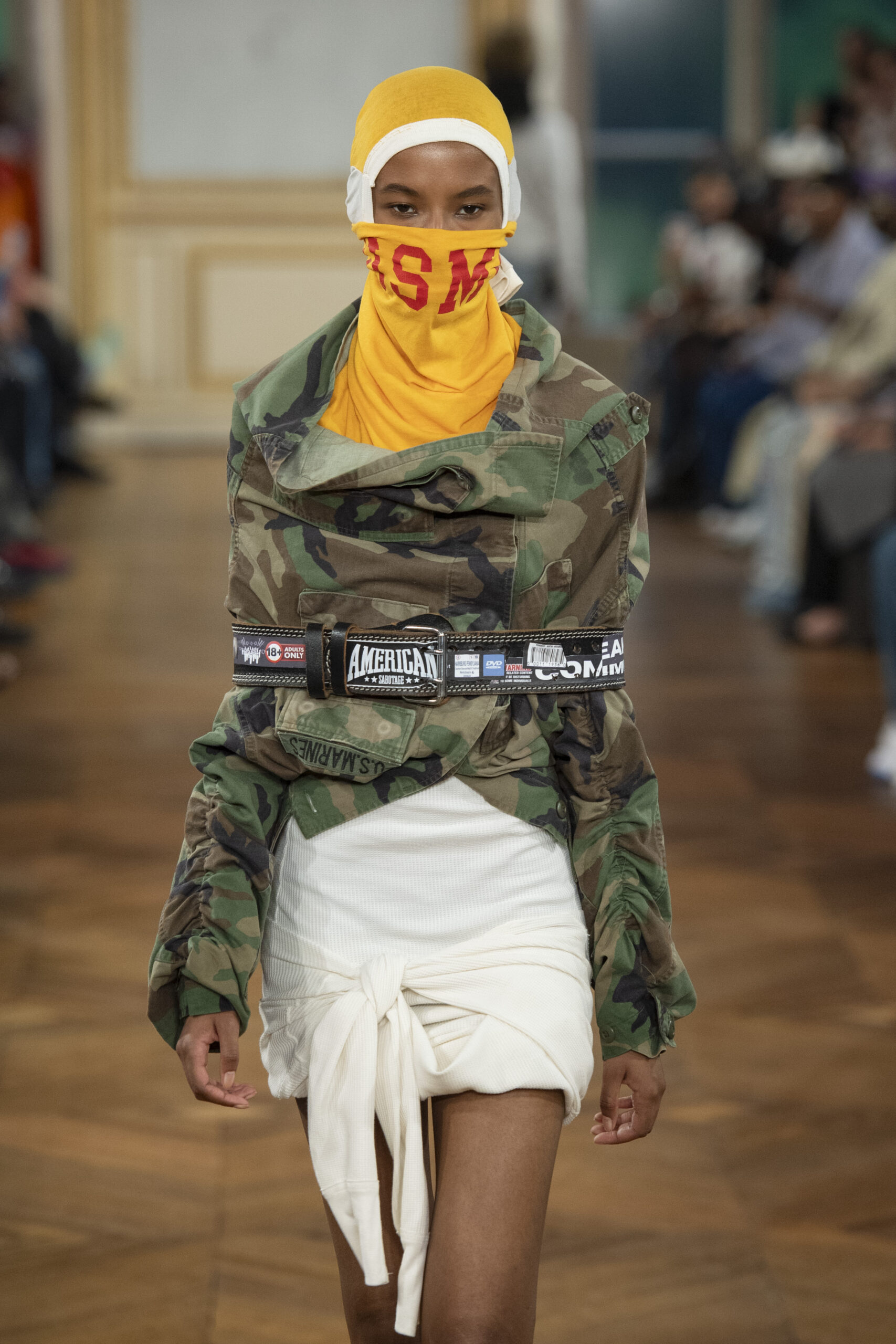 Le décor du défilé, comprenant des sacs poubelles transformés en chaises beanbag issues de la marque de mobilier Hommemade, en collaboration avec Crosby Studios, ajoutait une dimension immersive à cette expérience unique. Le défilé a été rythmé par la bande-son du prochain album d’A$AP Rocky, créant une synergie entre mode et musique.