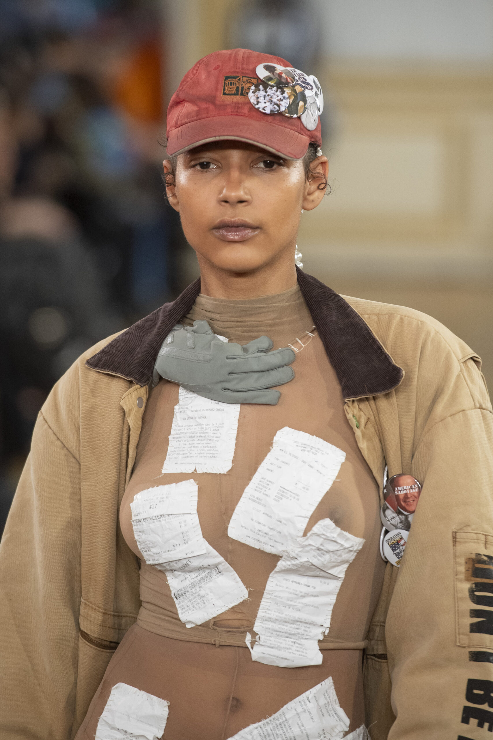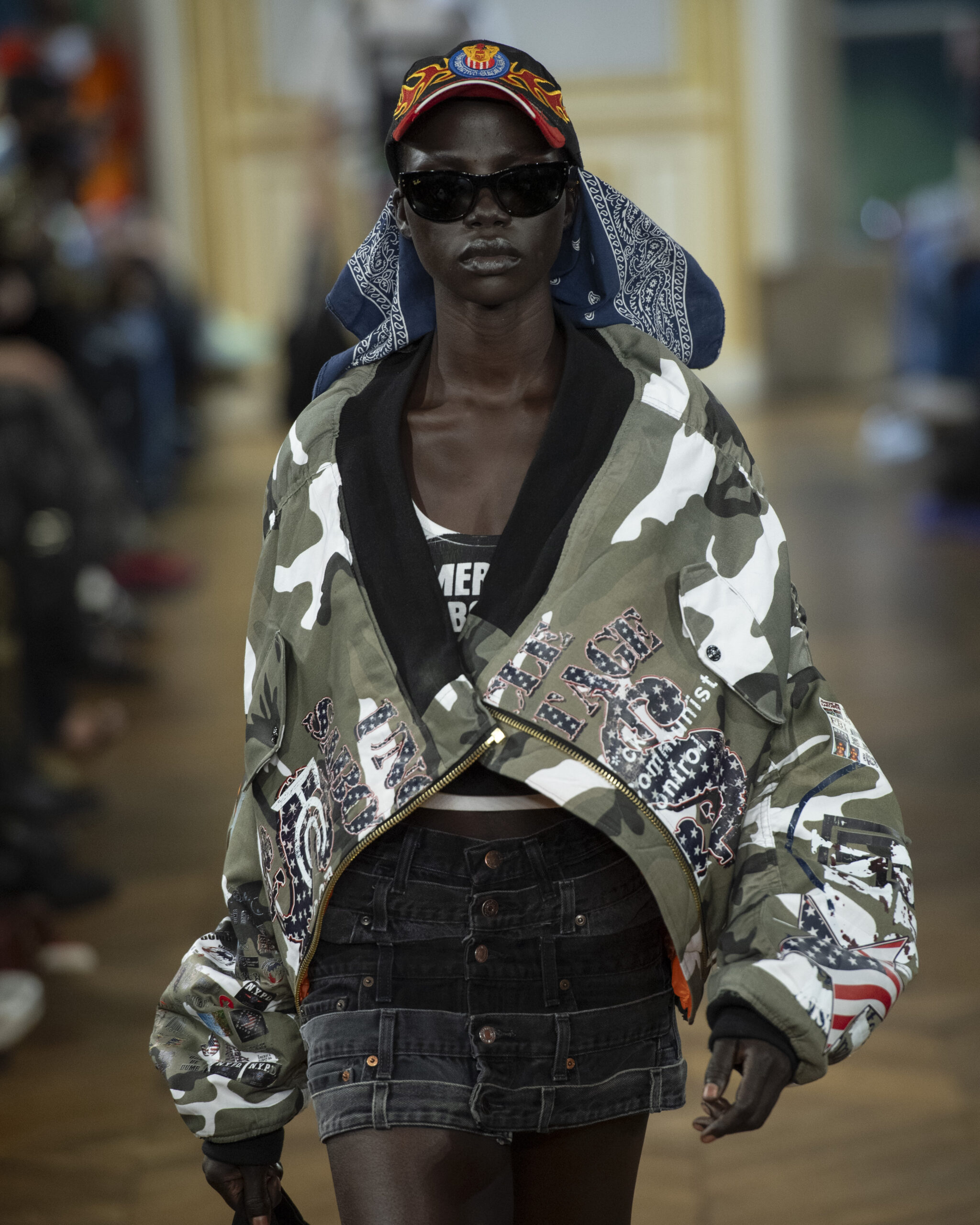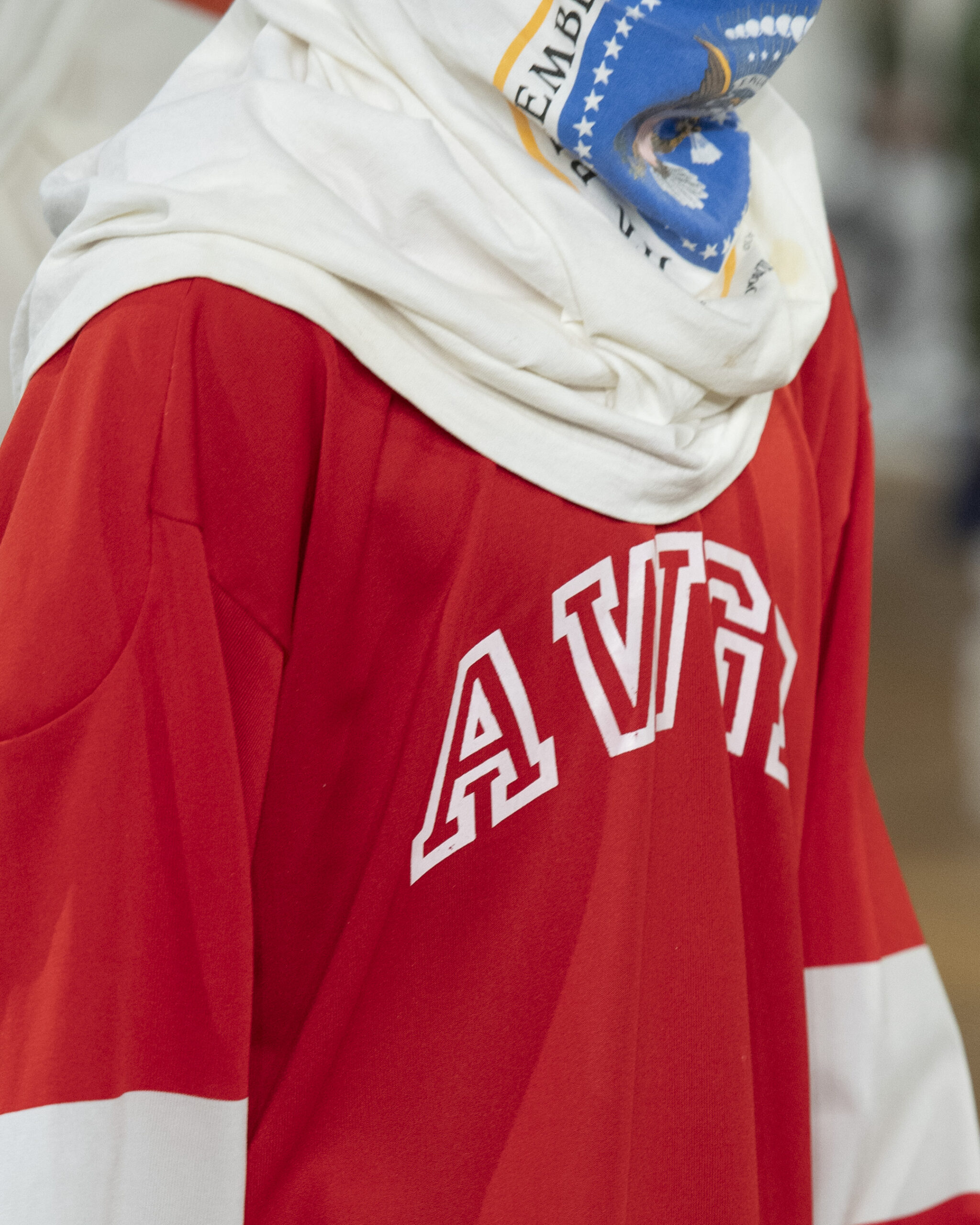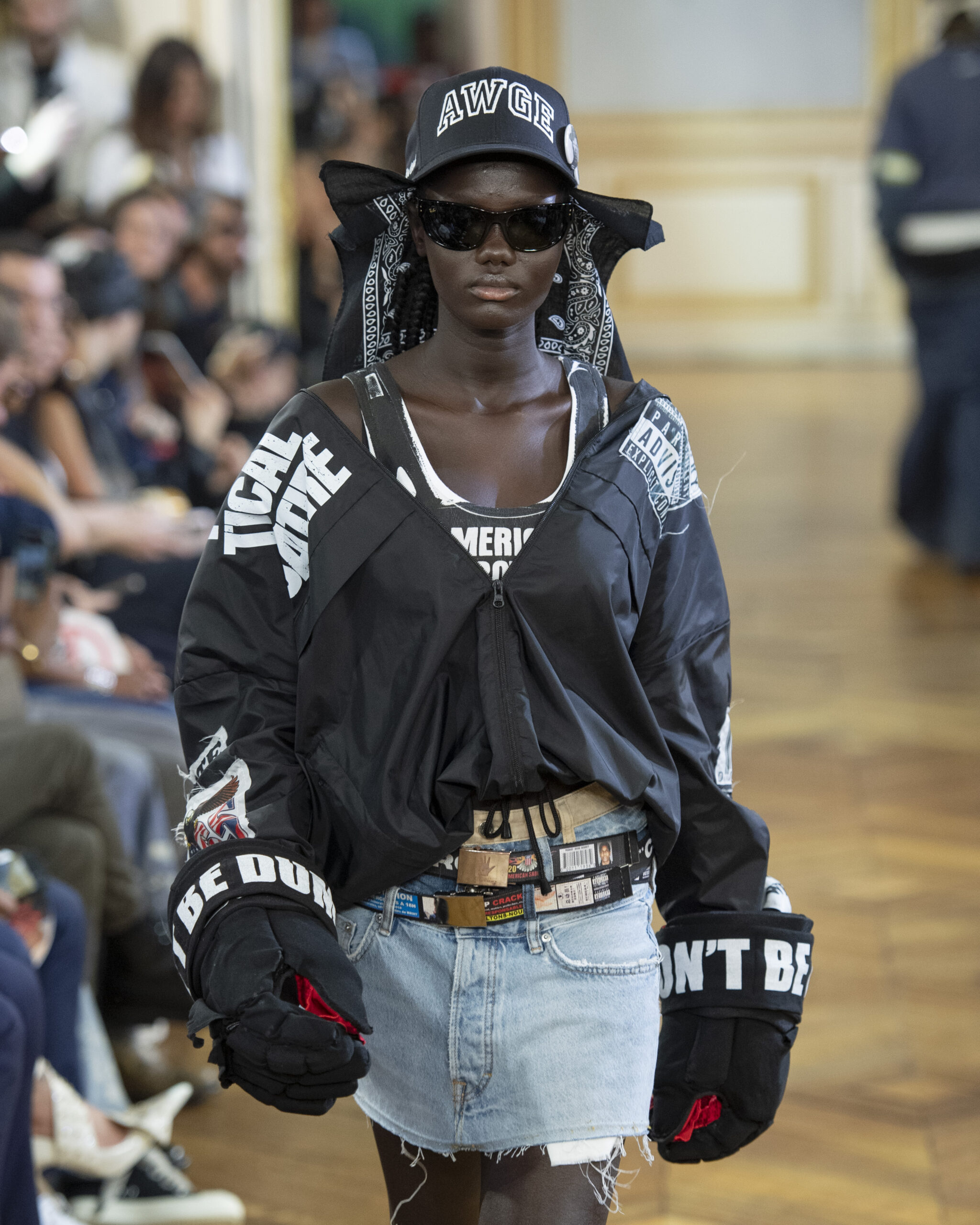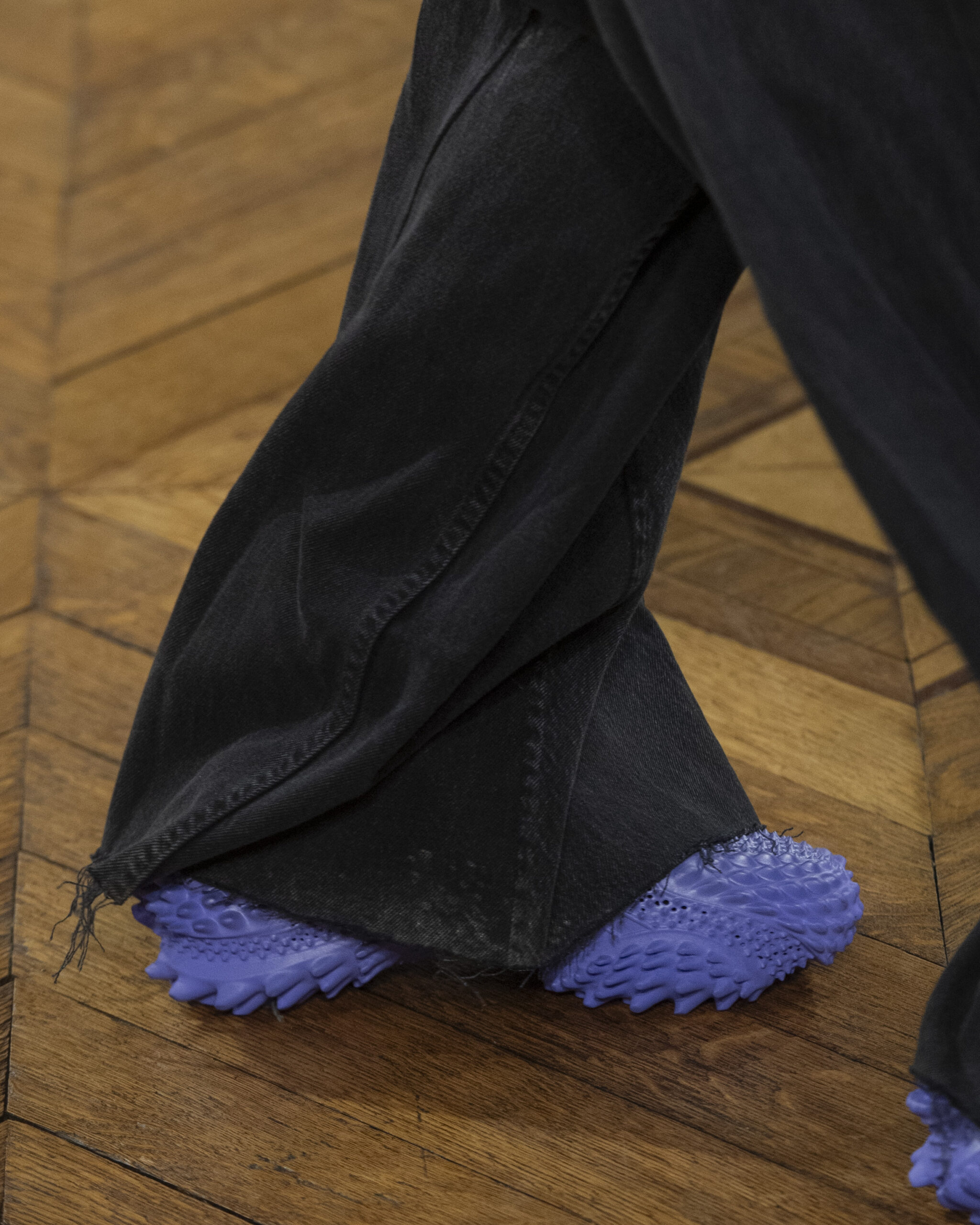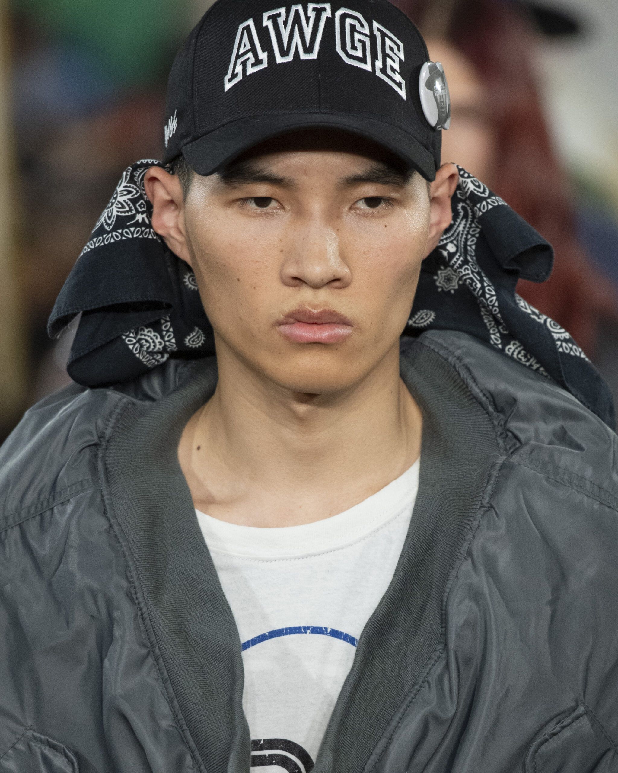 Le décor du défilé, comprenant des sacs poubelles transformés en chaises beanbag issues de la marque de mobilier Hommemade, en collaboration avec Crosby Studios, ajoutait une dimension immersive à cette expérience unique. Le défilé a été rythmé par la bande-son du prochain album d’A$AP Rocky, créant une synergie entre mode et musique.